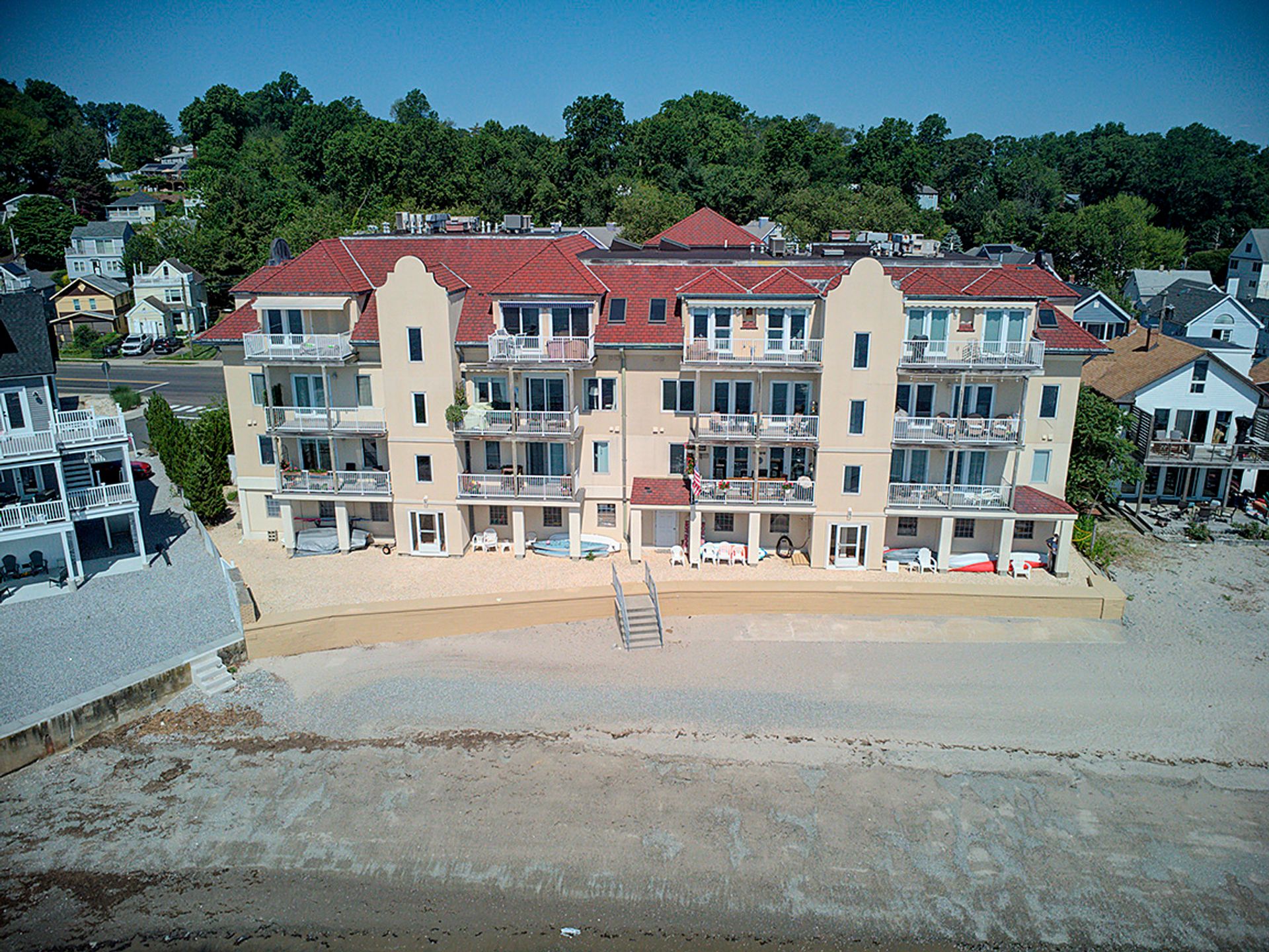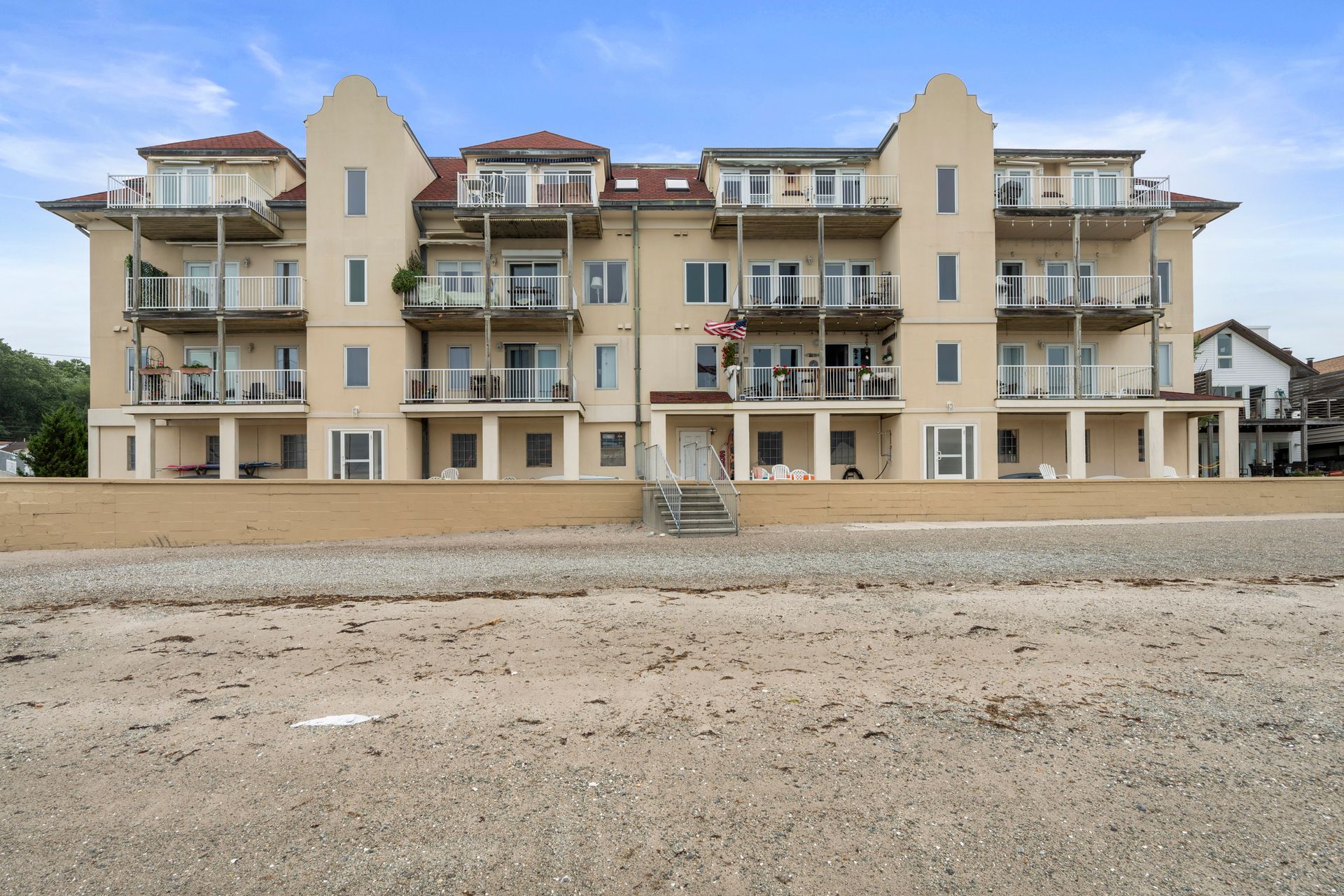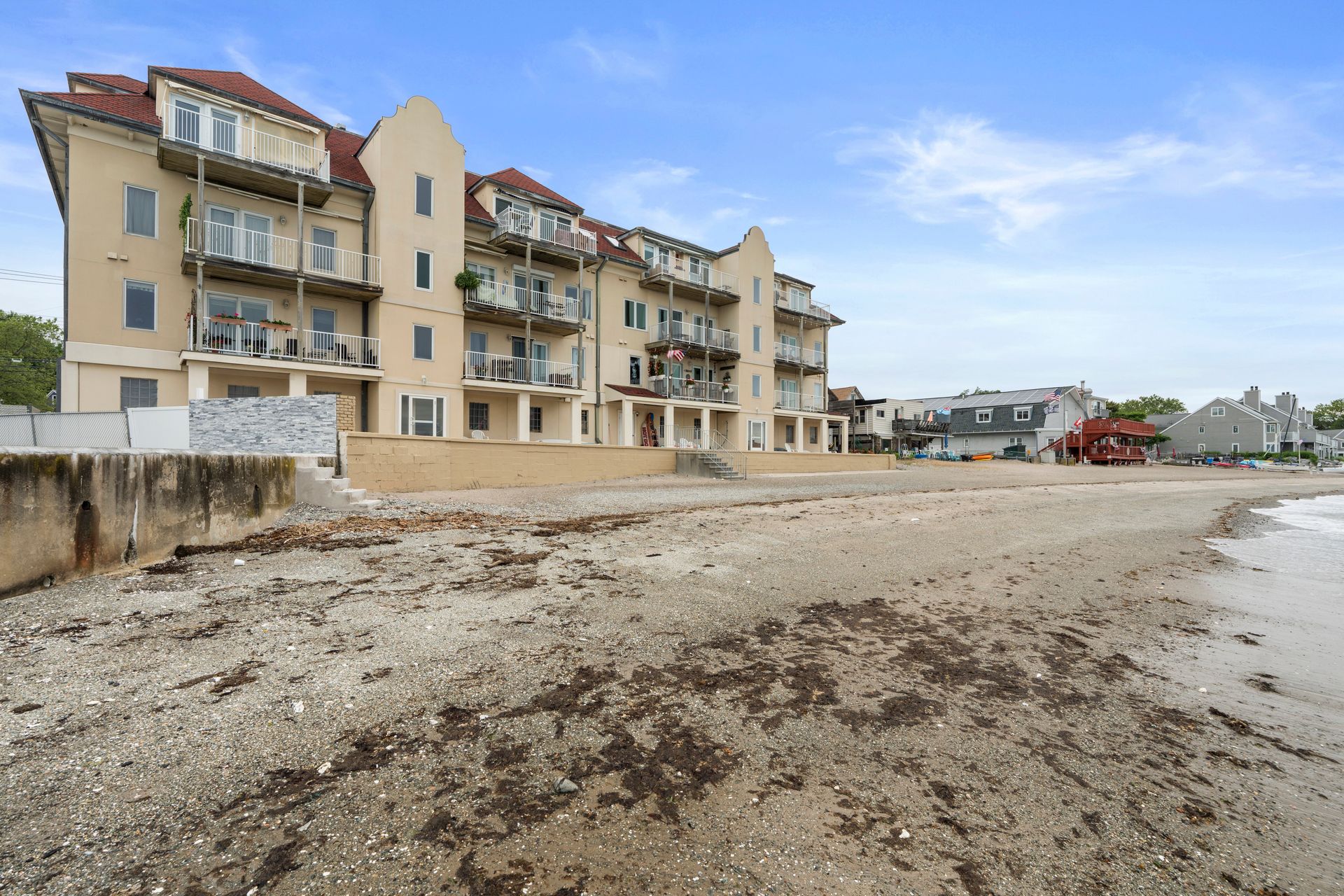 Experience the ultimate in coastal living w/this stunning direct waterfront condominium, offering breathtaking views of Long Island Sound & your very own private sandy beach. This light-filled, end-unit home features 2 spacious bedrooms & 2 full baths, all designed w/comfort and elegance in mind. The open floor plan seamlessly connects the living room, dining area, & kitchen-each space showcasing spectacular water views through expansive windows. Step out onto your generous private balcony to enjoy morning coffee or evening cocktails while overlooking the picturesque Milford shoreline. Inside, you'll find quality craftsmanship throughout, including gleaming wood floors & a recently renovated kitchen complete with granite countertops & stainless steel appliances. A cozy gas fireplace in the living room adds warmth and charm, while the master suite offers a peaceful retreat w/abundant closet space, a luxurious soaking tub, and double sinks. Convenience is key with ELEVATOR access to all floors and two staircases-one leading directly to the beach. As an end unit, this home boasts exceptional natural light, superior views, and enhanced privacy. Embrace the best of shoreline living with swimming, fishing, kayaking, sunbathing, and beach walks just steps from your door. Other amenities include a 2 car tandem garage and CAC. Located close to restaurants, shopping, Milford Train Station, I-95, Route 15, Yale, & Downtown New Haven, this is a rare opportunity you won't want to miss!!