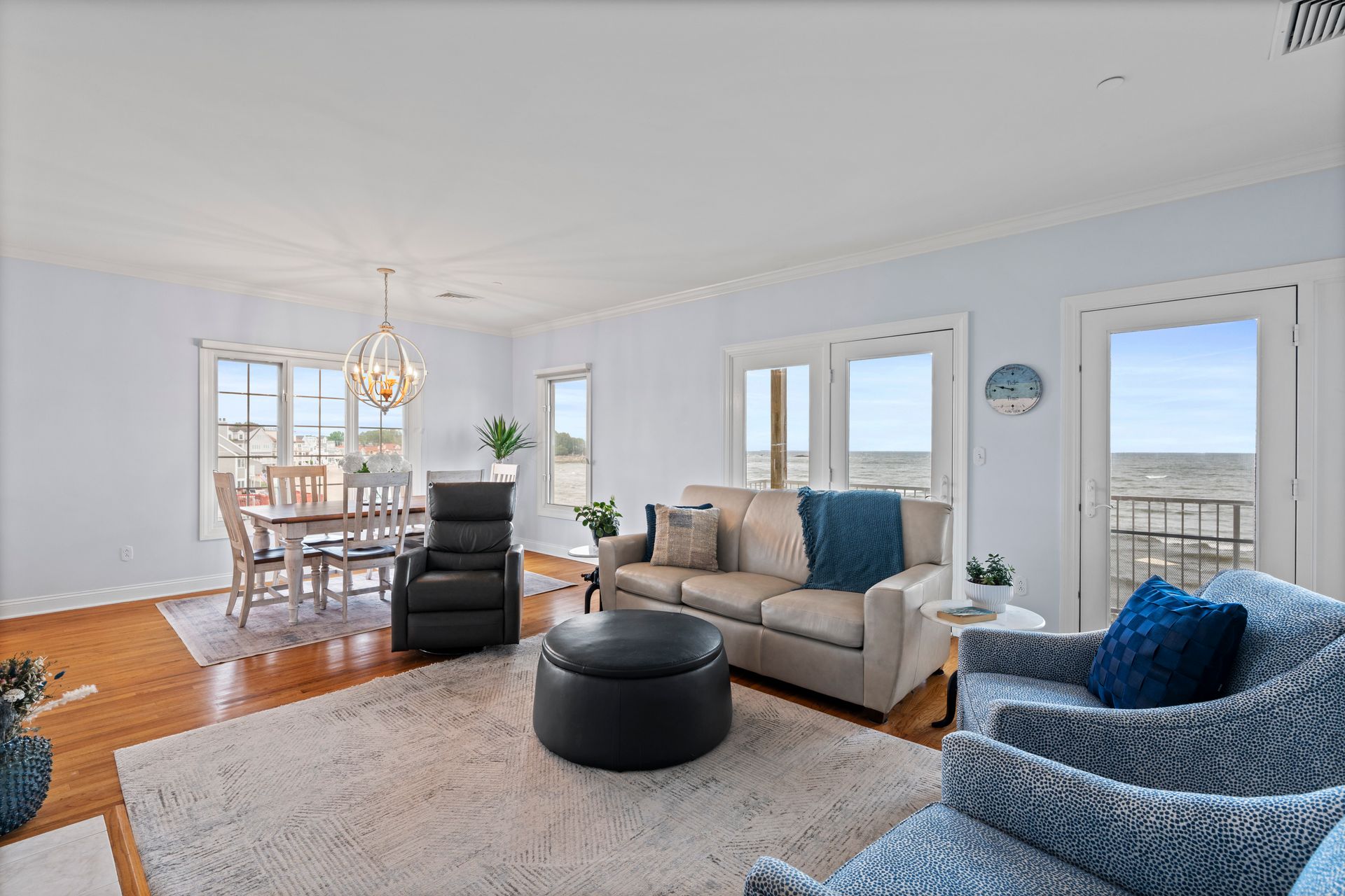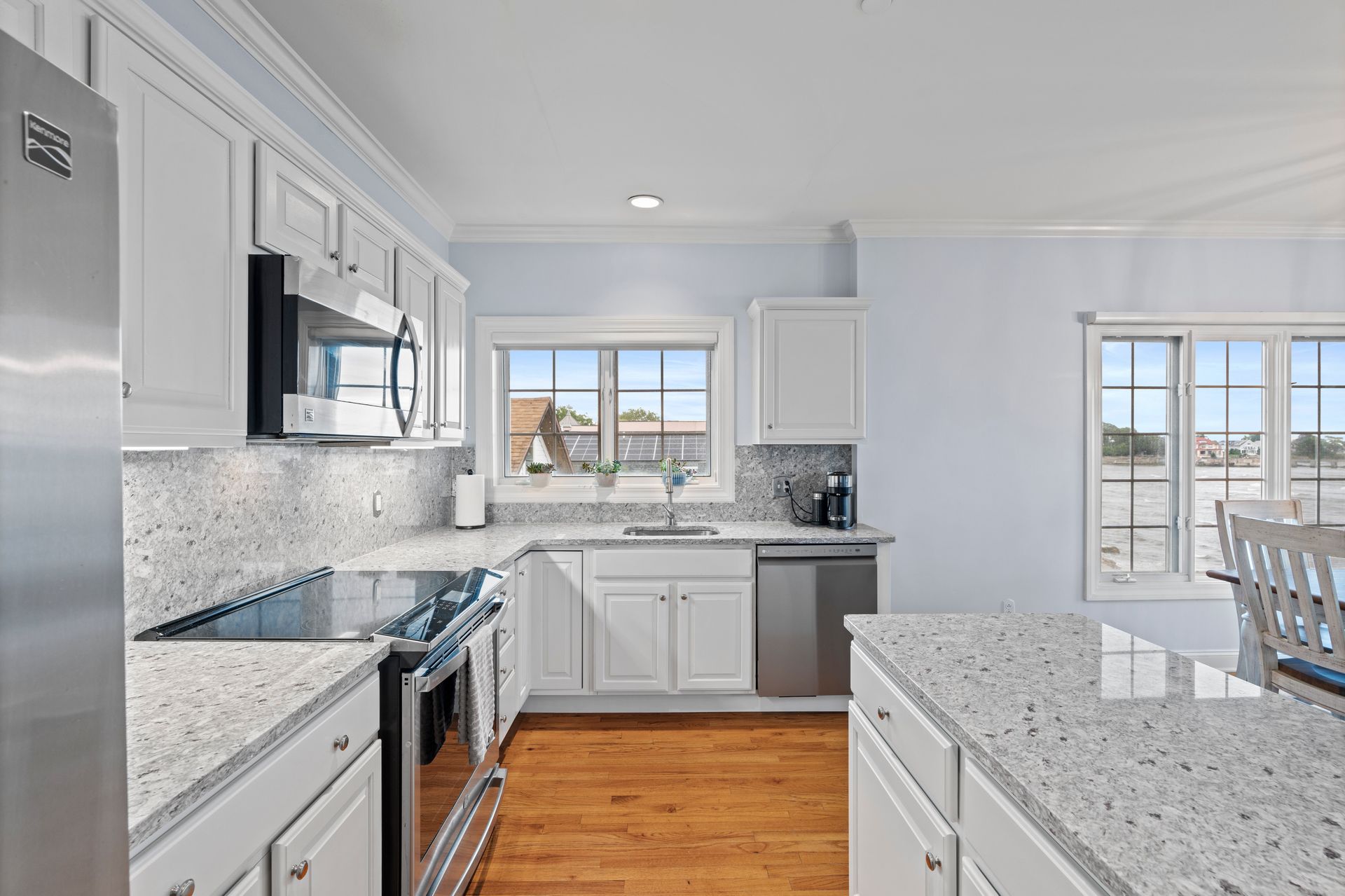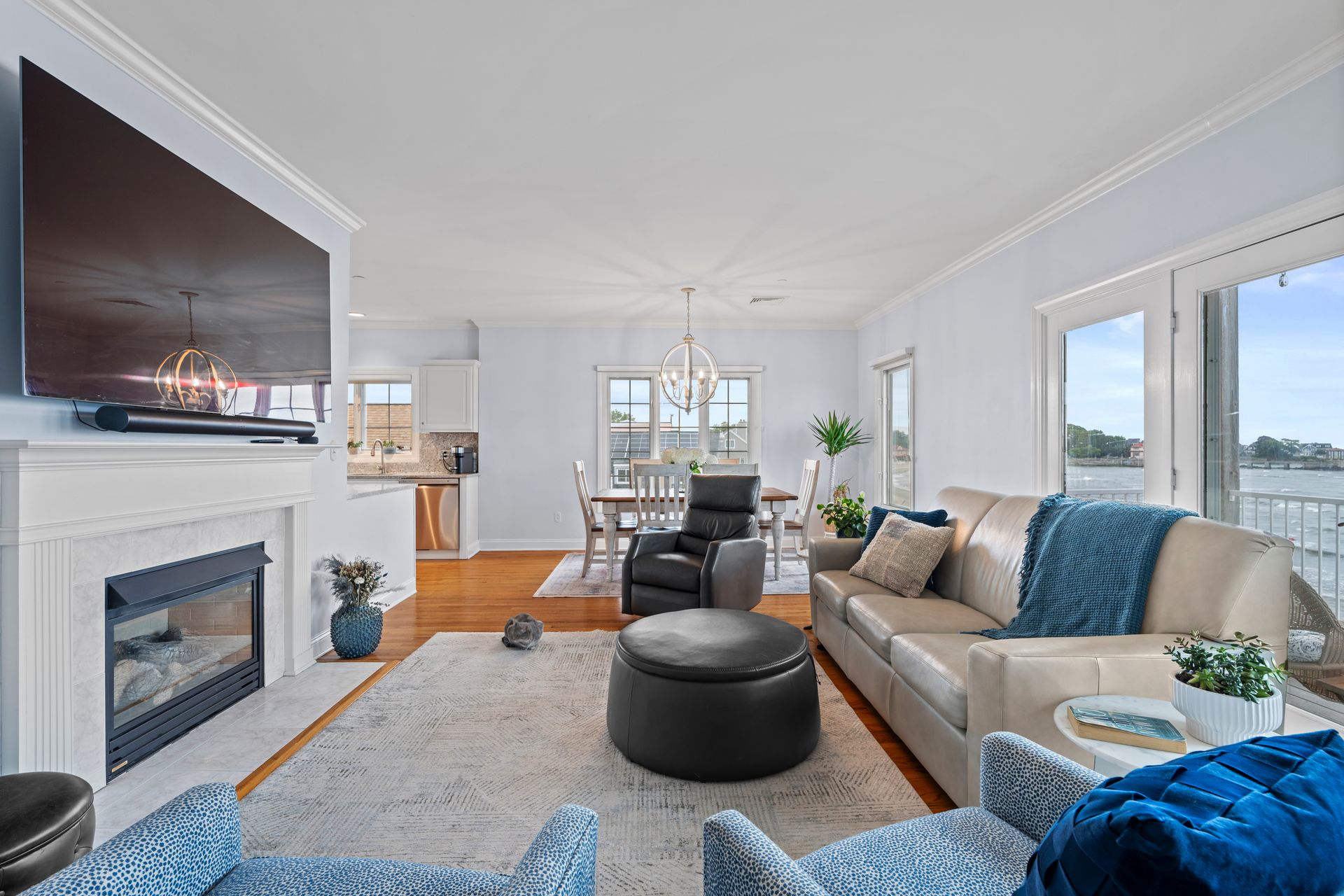 Experience the ultimate in coastal living w/this stunning direct waterfront condominium, offering breathtaking views of Long Island Sound & your very own private sandy beach. This light-filled, end-unit home features 2 spacious bedrooms & 2 full baths, all designed w/comfort and elegance in mind. The open floor plan seamlessly connects the living room, dining area, & kitchen-each space showcasing spectacular water views through expansive windows. Step out onto your generous private balcony to enjoy morning coffee or evening cocktails while overlooking the picturesque Milford shoreline. Inside, you'll find quality craftsmanship throughout, including gleaming wood floors & a recently renovated kitchen complete with granite countertops & stainless steel appliances. A cozy gas fireplace in the living room adds warmth and charm, while the master suite offers a peaceful retreat w/abundant closet space, a luxurious soaking tub, and double sinks. Convenience is key with ELEVATOR access to all floors and two staircases-one leading directly to the beach. As an end unit, this home boasts exceptional natural light, superior views, and enhanced privacy. Embrace the best of shoreline living with swimming, fishing, kayaking, sunbathing, and beach walks just steps from your door. Other amenities include a 2 car tandem garage and CAC. Located close to restaurants, shopping, Milford Train Station, I-95, Route 15, Yale, & Downtown New Haven, this is a rare opportunity you won't want to miss!!