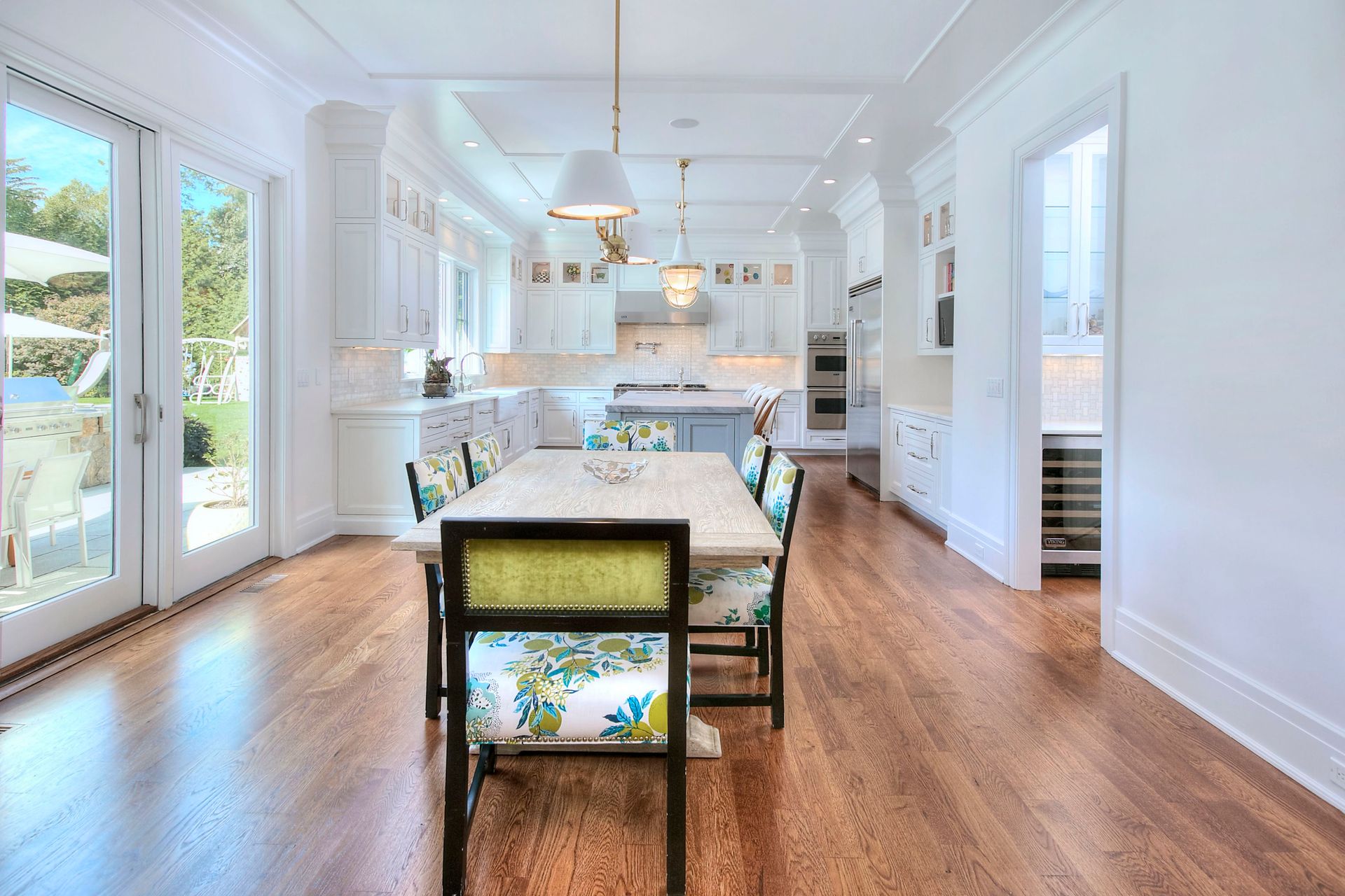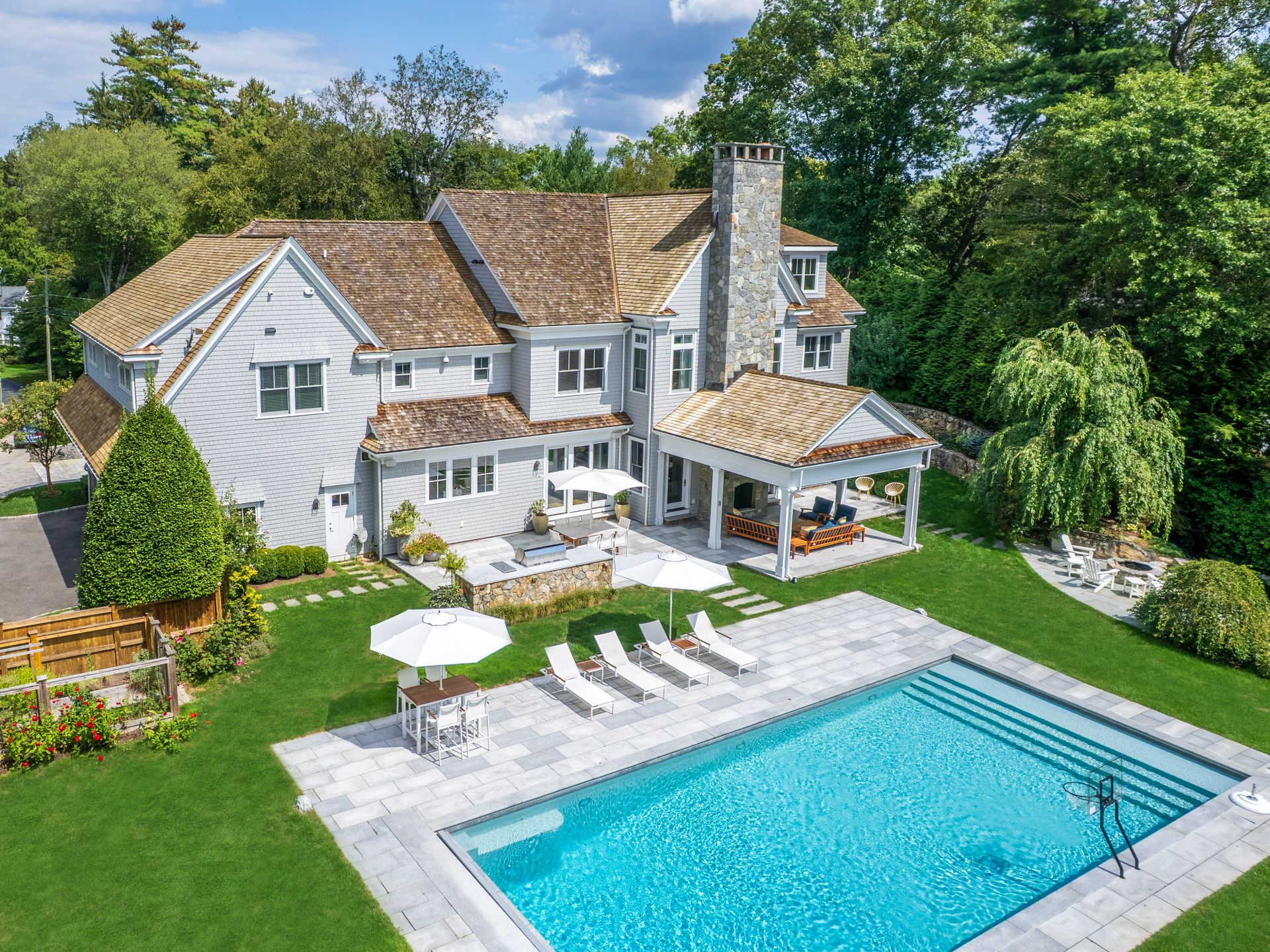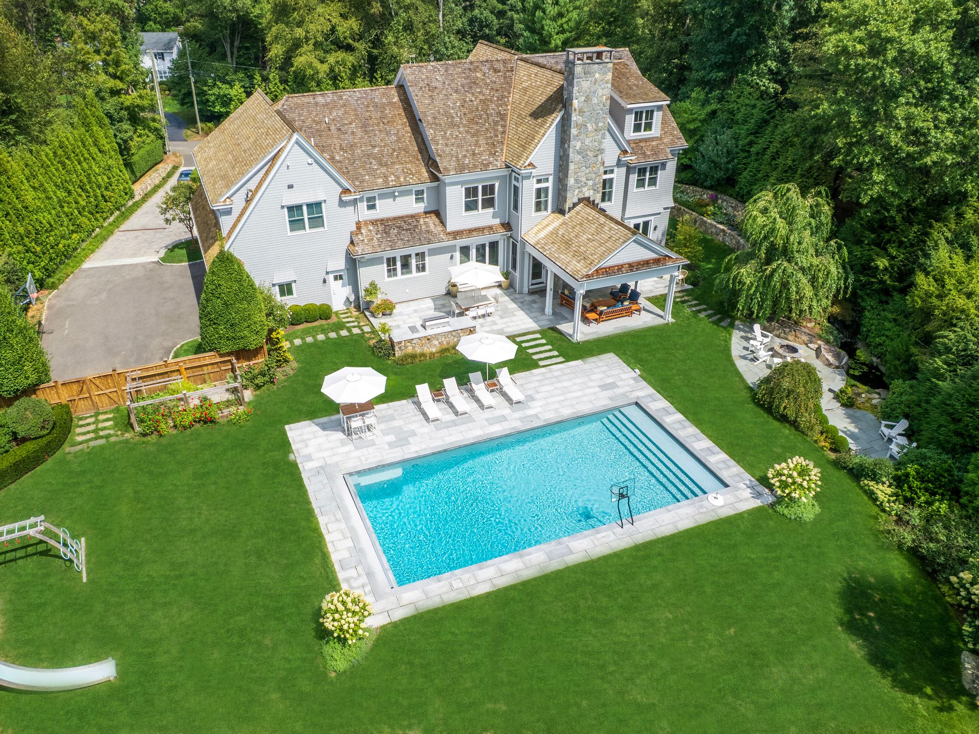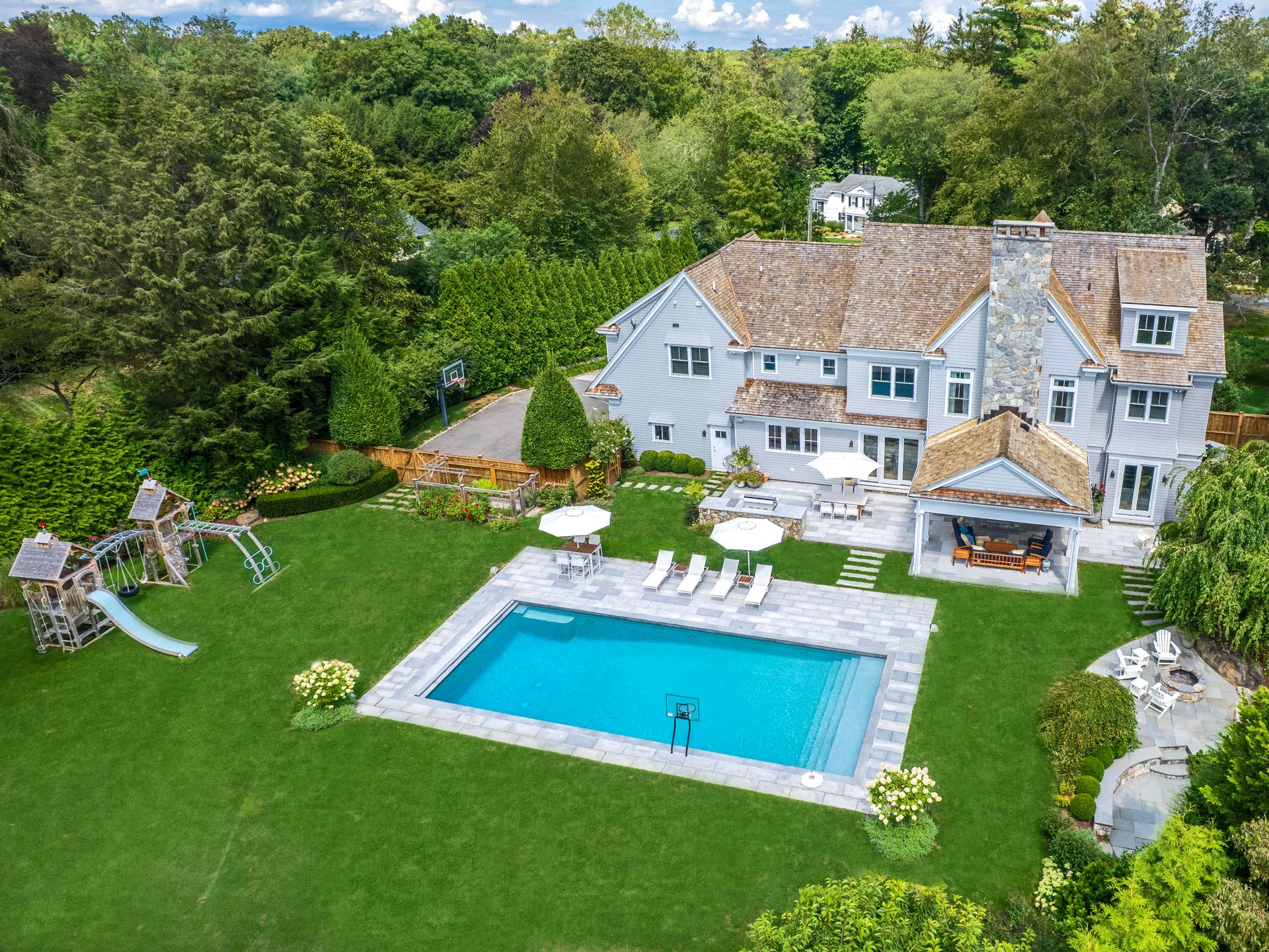 The state-of-the-art gourmet Kitchen flows seamlessly into the grand Family Room, both opening to a covered bluestone patio featuring a fireplace, remote-controlled phantom screens, and a built-in outdoor kitchen-perfect for entertaining. The 1st floor office also opens to the peaceful yard and Patio.