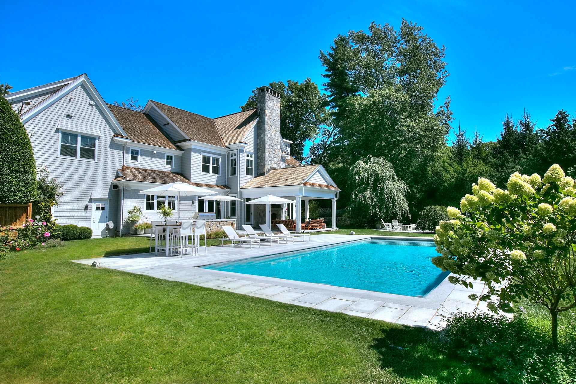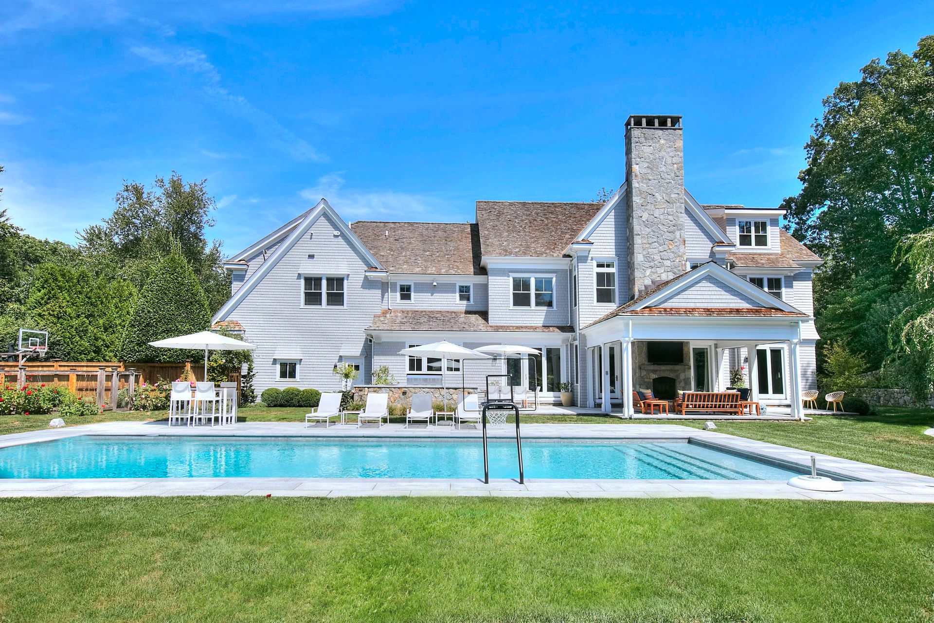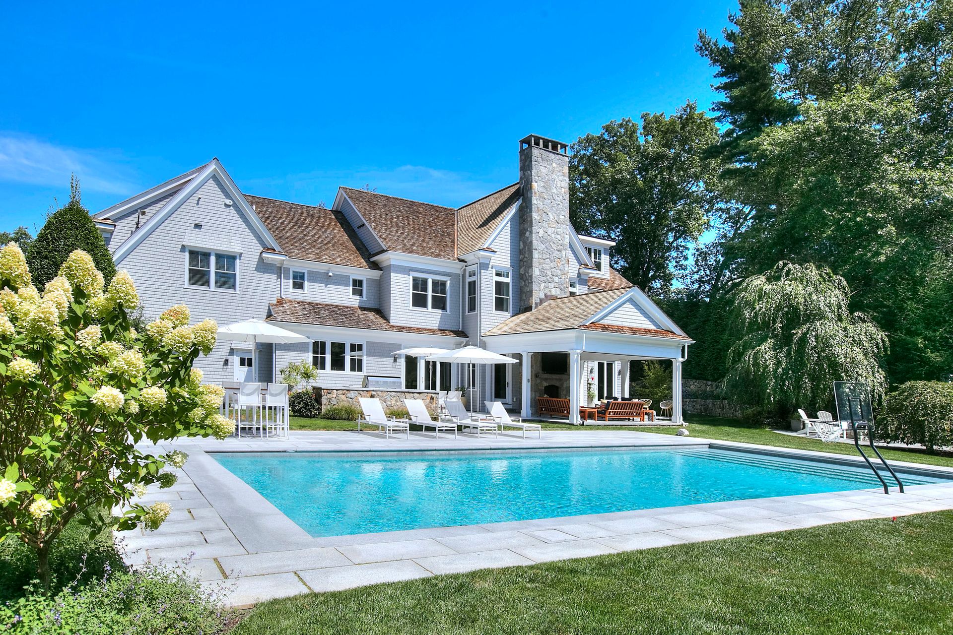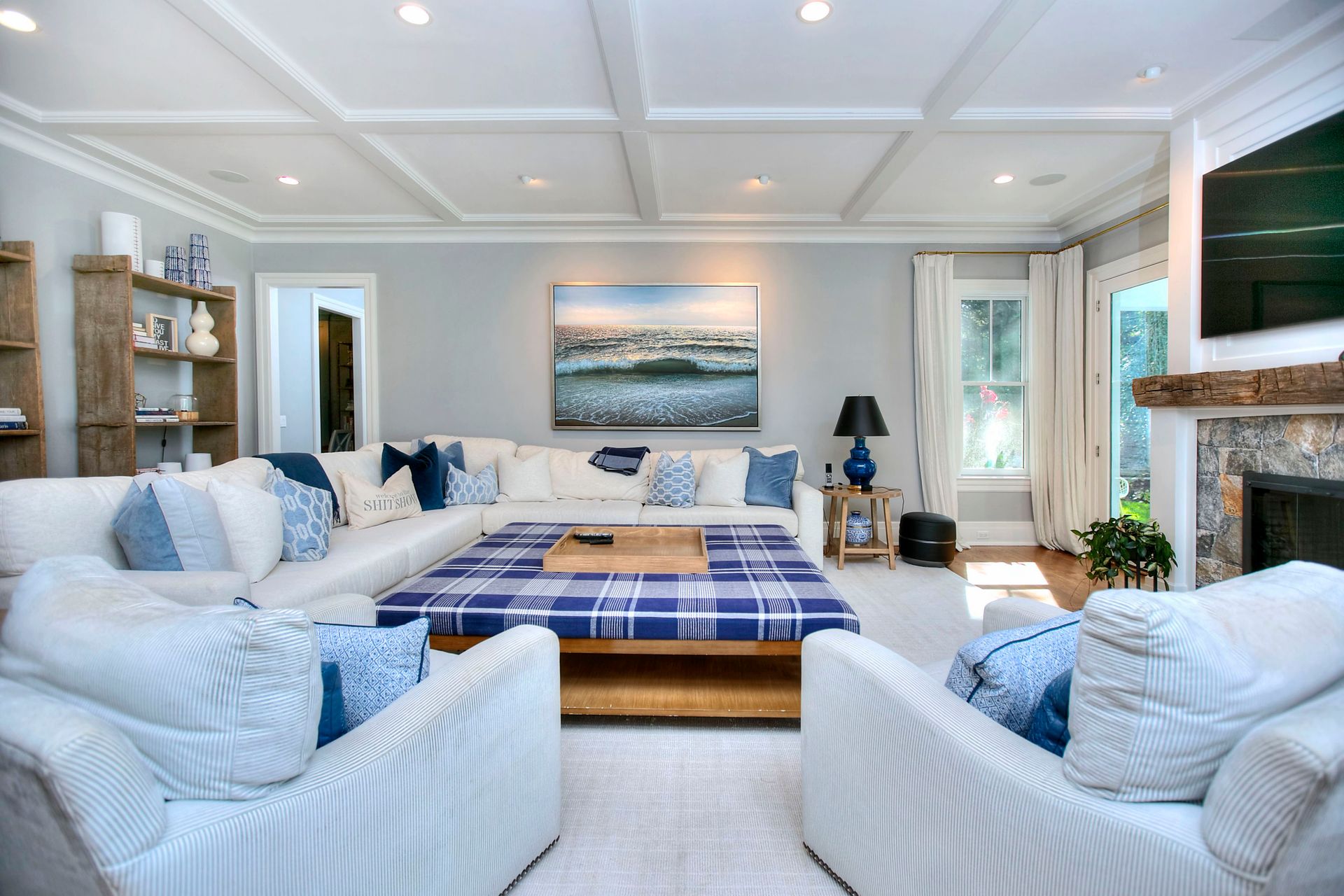 Stunning 6 Bedroom 9600SF Colonial in the heart of Westport. Built by Bluewater Home Builders, this spectacular custom 2015 residence is situated on a private cul-de-sac in the central Hunt Club area. The traditional design boasts exceptional interior details, including soaring ceilings, beamed and coffered accents, shiplap paneling, and sleek millwork throughout all finished levels.
