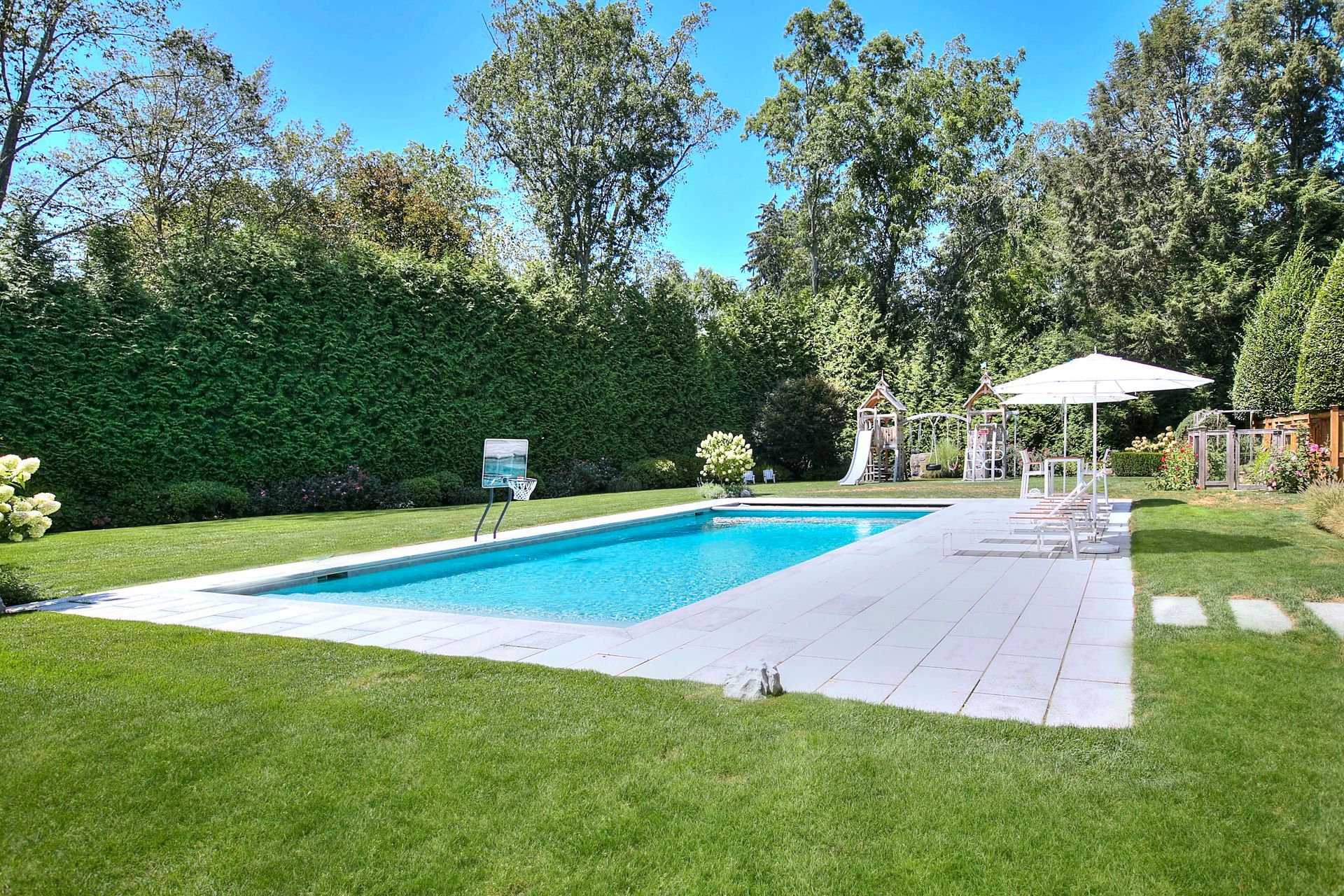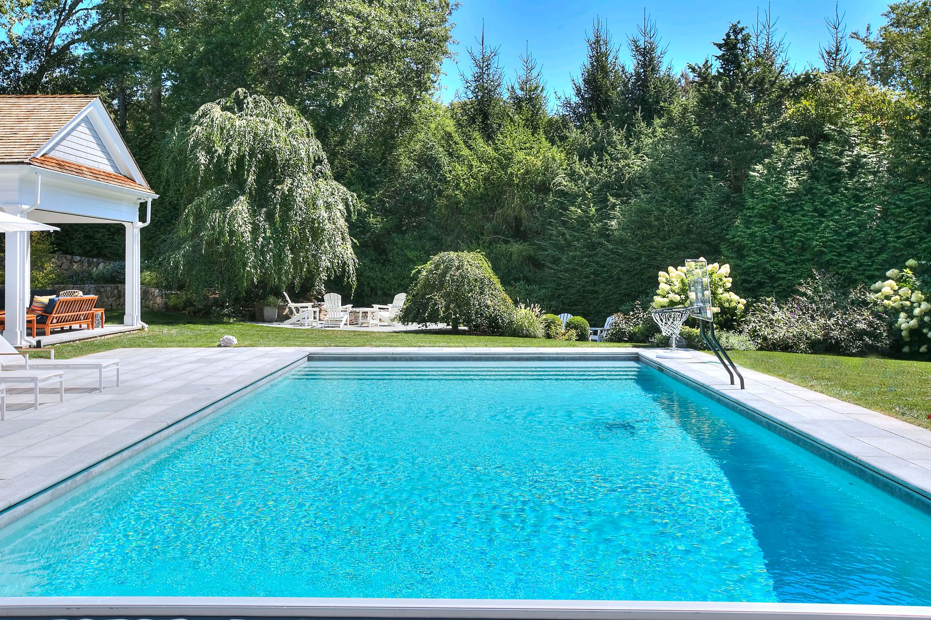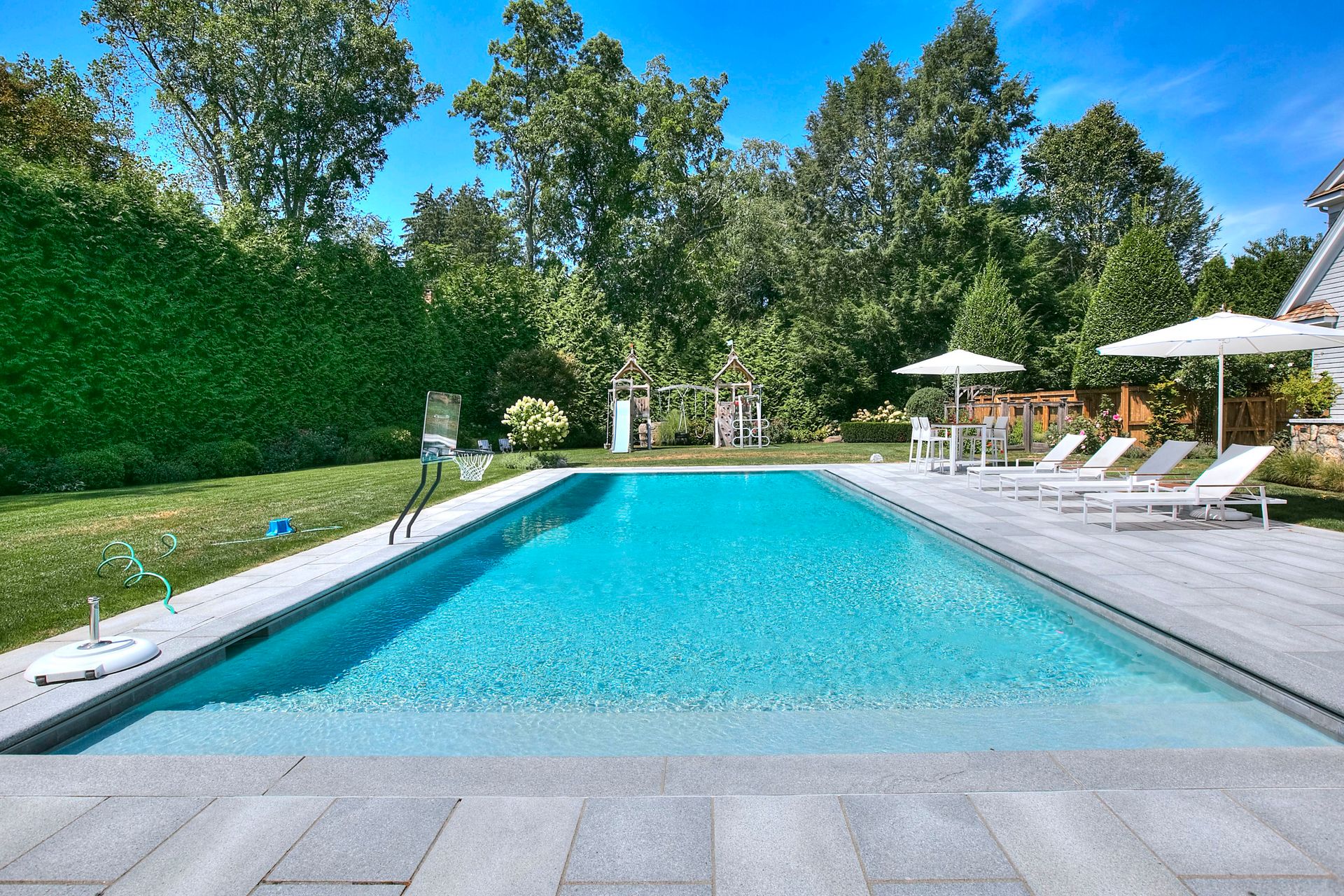 A 20'x45' saltwater Pool with automatic cover and sun ledge adds a resort-like touch, complemented by mature landscaping, a koi pond, multiple gathering areas and a fire pit.