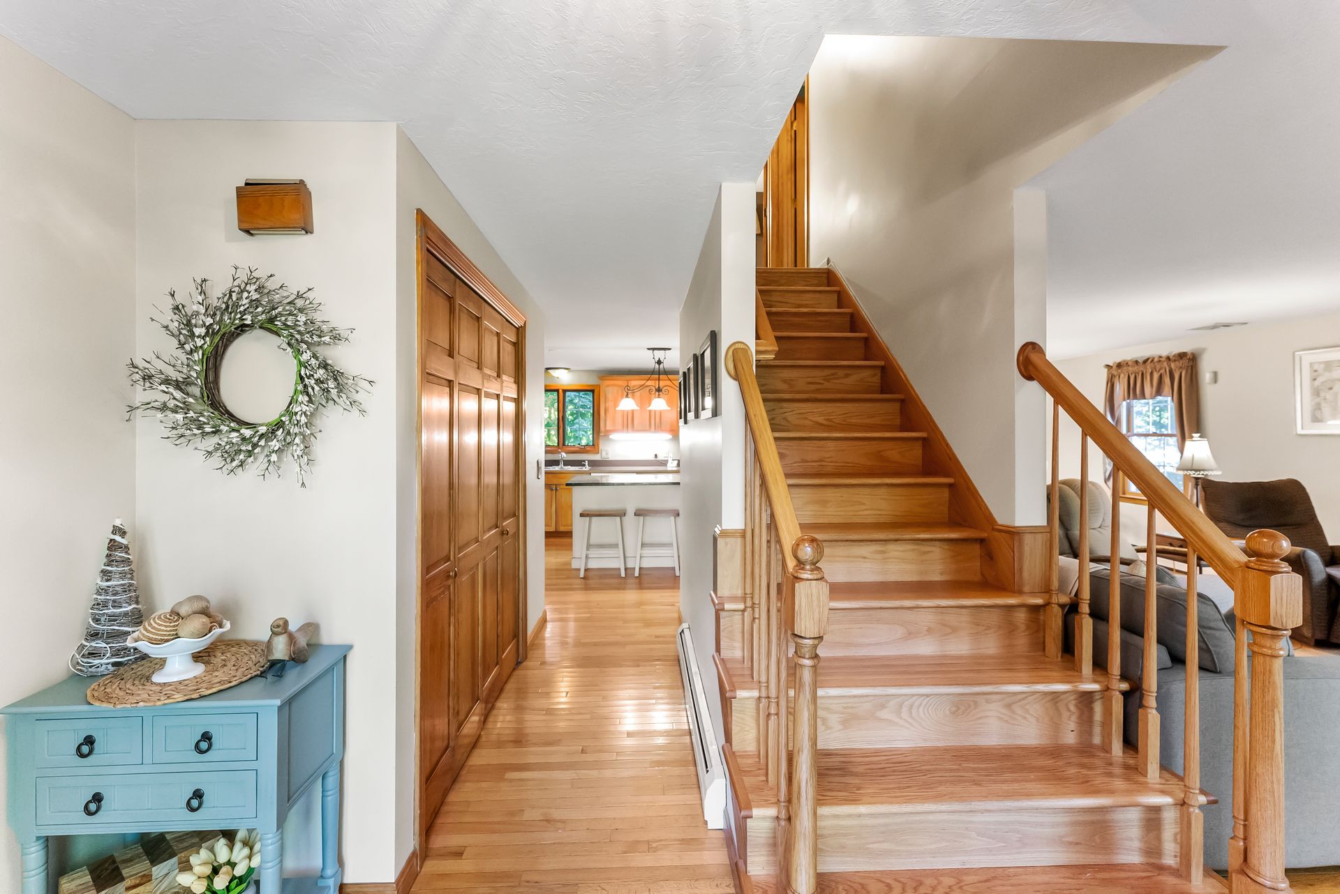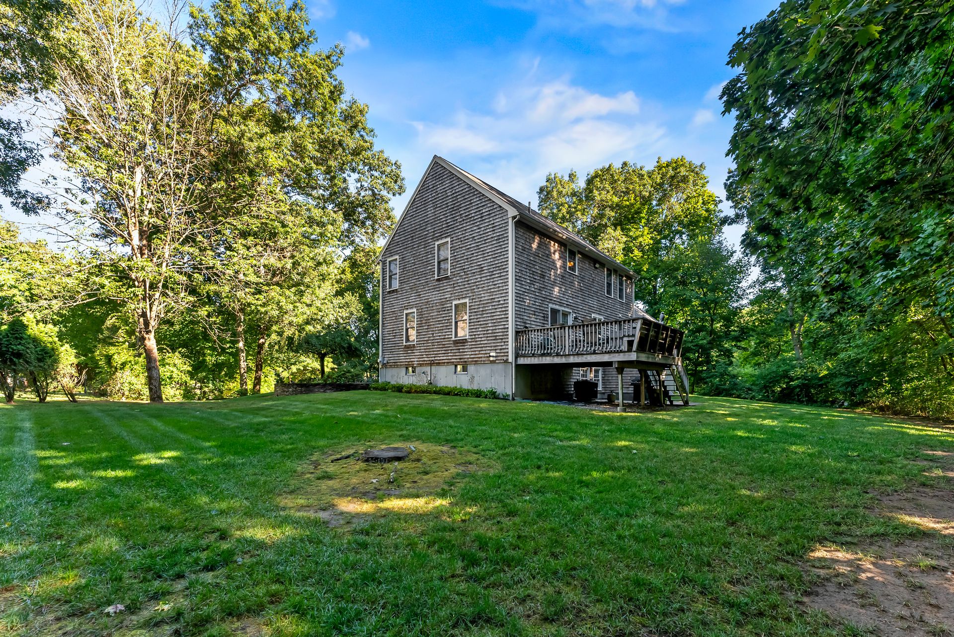 Inside, you’ll find hardwood flooring throughout the first level, staircase and 2nd level hallway, first floor laundry, central A/C, town water and town gas for both cooking and heating. The spacious floor plan is ideal for entertaining and everyday living! Outdoors, the beautifully landscaped grounds feature numerous perennials such as Forsythia, Weeping Cherry, Hydrangeas, Azaleas, and a Kousa Dogwood tree. A multi-zone irrigation system, run off a private well, ensures easy lawn care and a lush setting all season long. The lot itself is extremely private, set back from the road and surrounded by trees, creating a peaceful retreat.