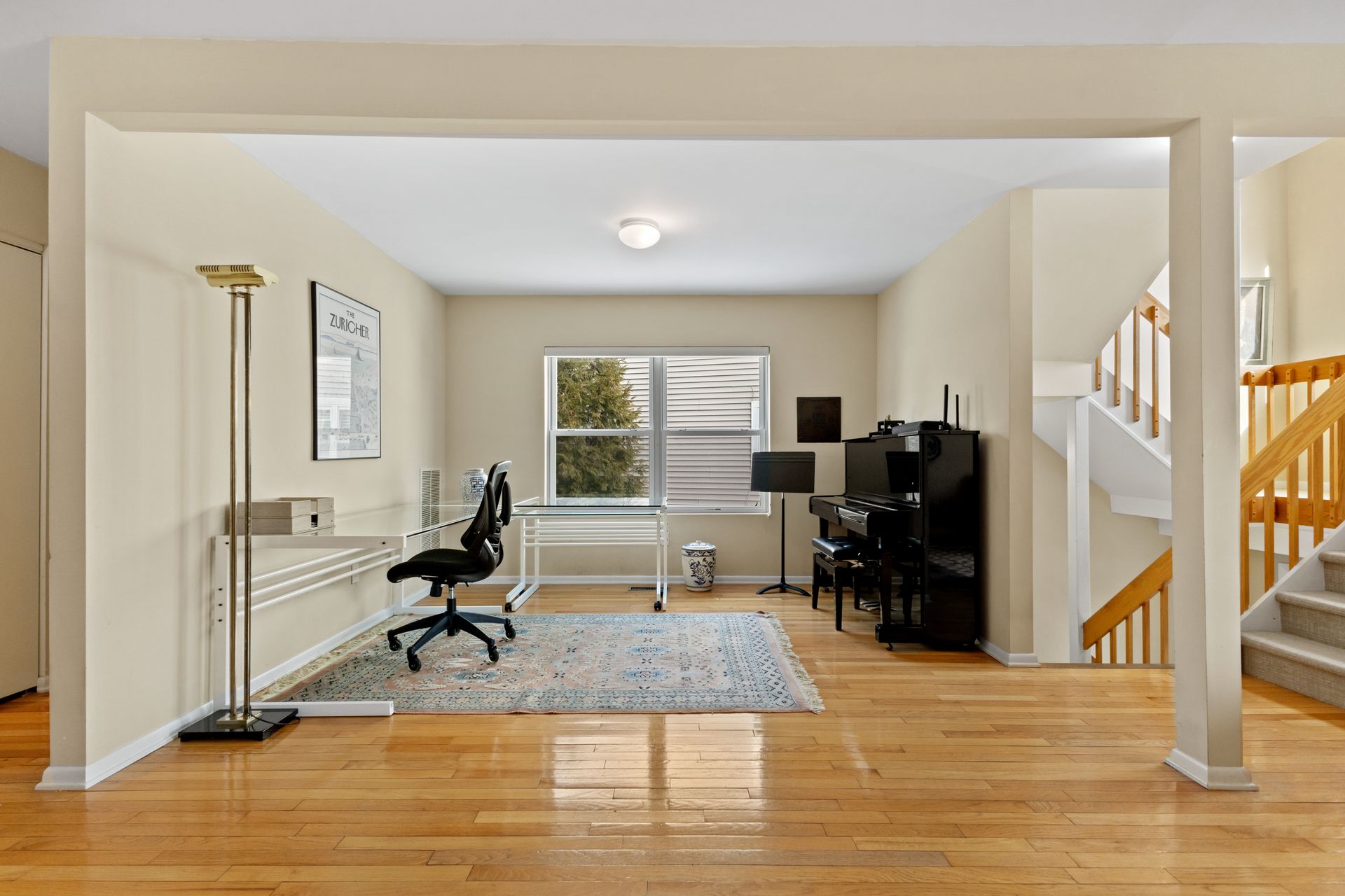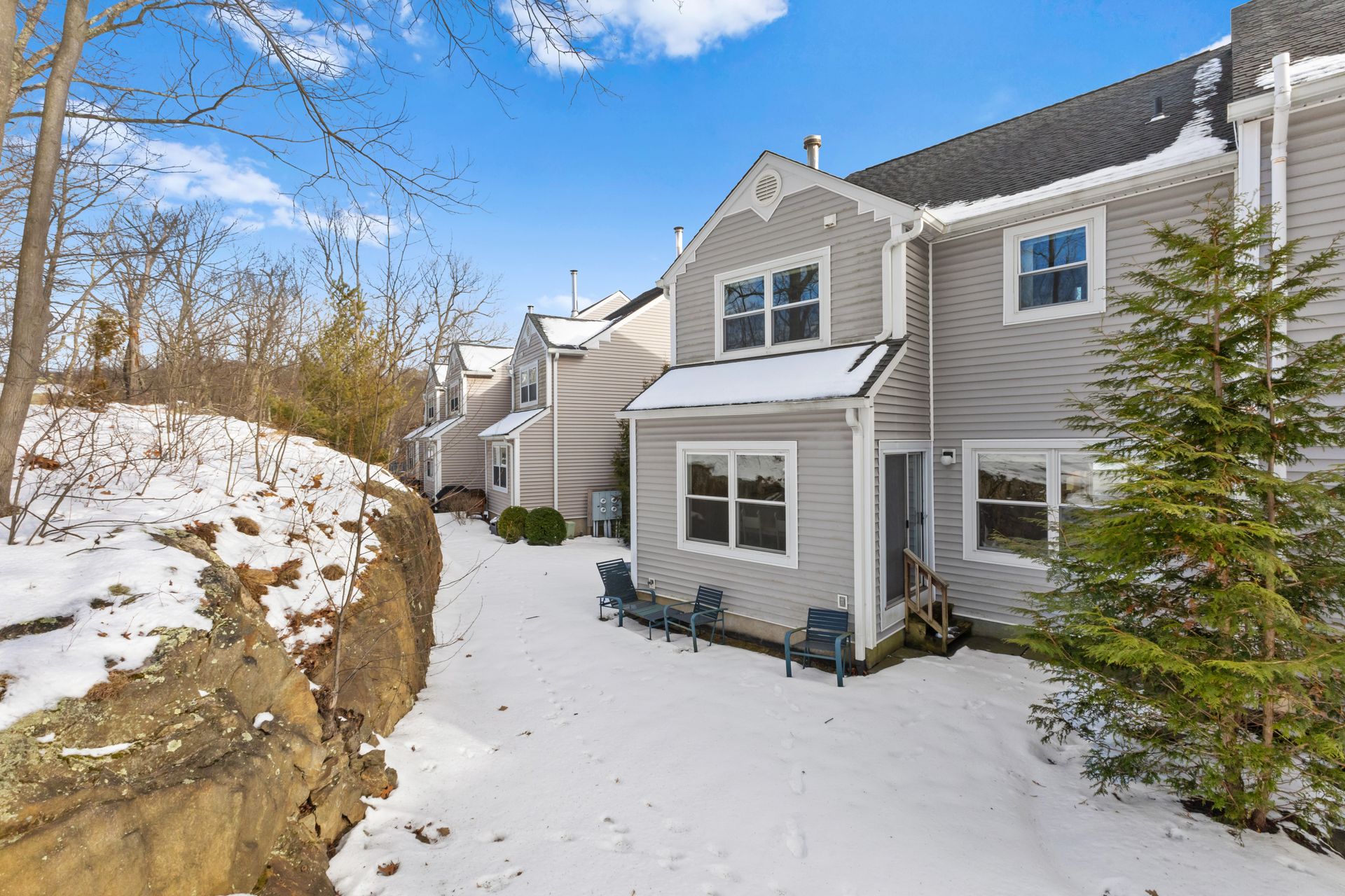 The main level welcomes you with a two-story entry, hardwood floors and recessed lighting. Enjoy a large eat-in kitchen with a peninsula, formal dining room, living room, powder room, and additional flexible space ideal for a home office, sitting area, TV, Music or Media Area. Sliding glass doors open to a private backyard surrounded by rock outcroppings and woods—ideal for relaxing or entertaining.