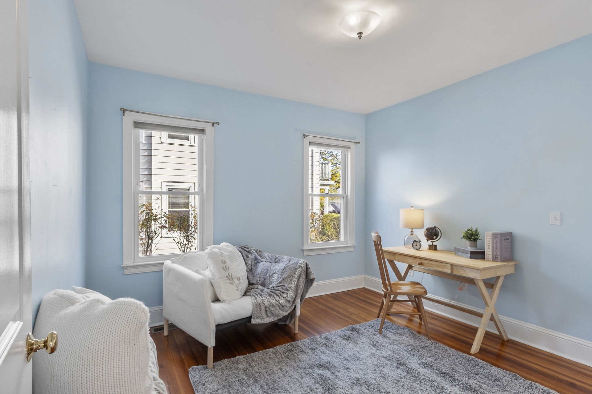 This charming two-bedroom, one-bathroom condominium located in Belmont's sought-after Strawberry Hill neighborhood offers spacious living enhanced by soaring high ceilings and beautifully refinished hardwood flooring. Notable amenities include a brand-new, energy-efficient heat pump, central AC, new hot water tank, secure off-street, deeded parking for two cars, a private porch area, convenient in-unit laundry, and generous basement storage. It is conveniently situated near popular Harvard Square bus lines, lovely parks, the scenic Fresh Pond area, and a wide array of diverse dining options. Perfect for discerning first-time buyers or as a smart investment within a vibrant community.