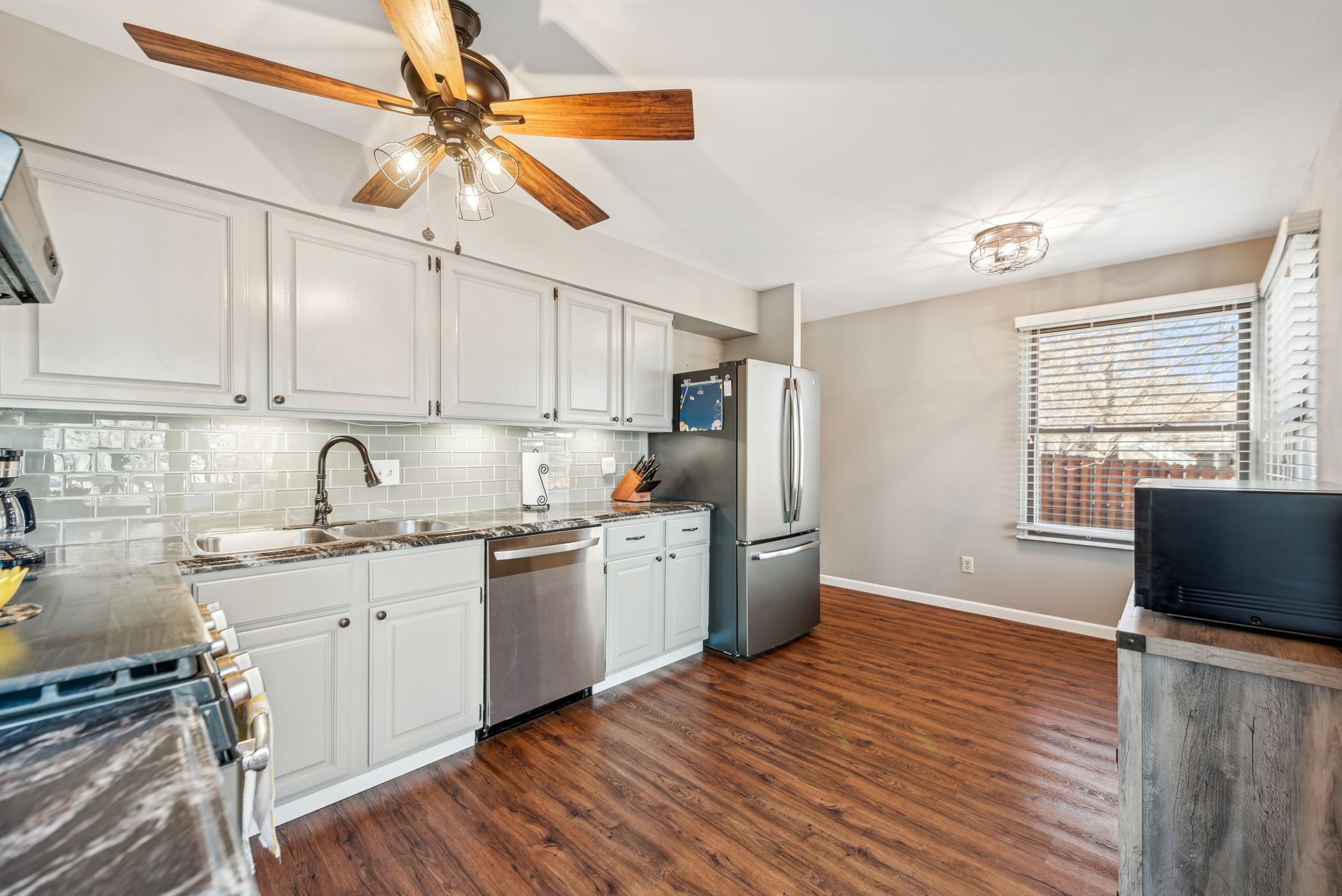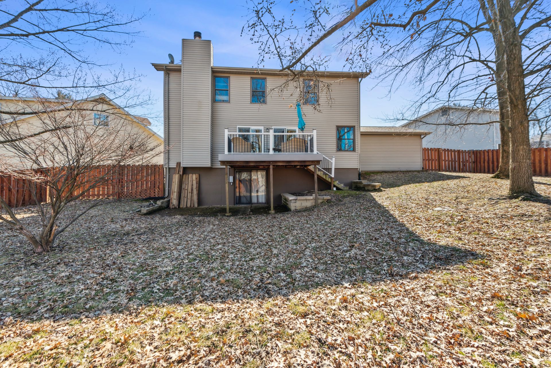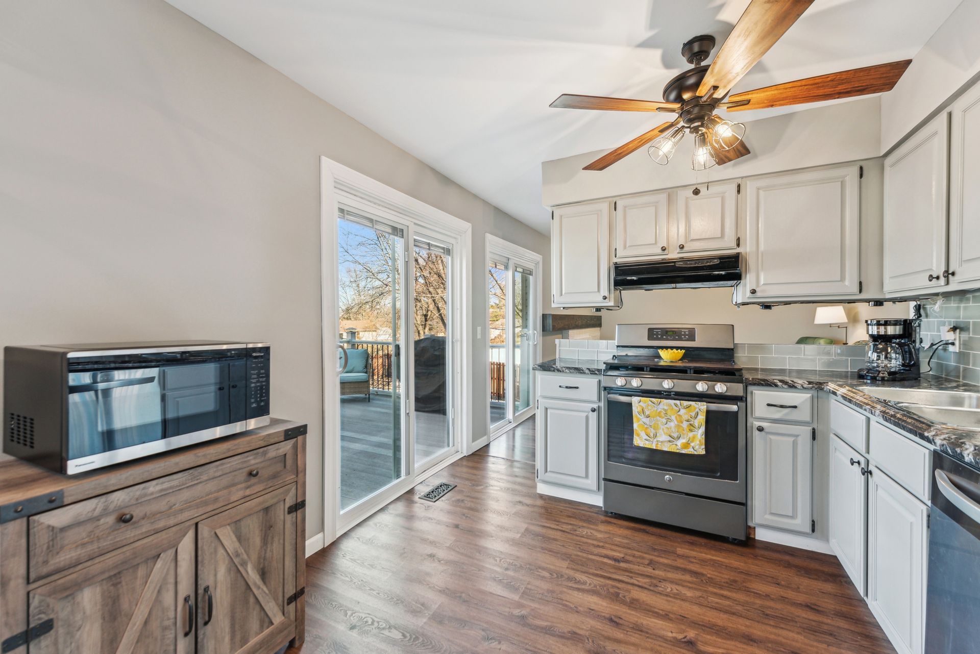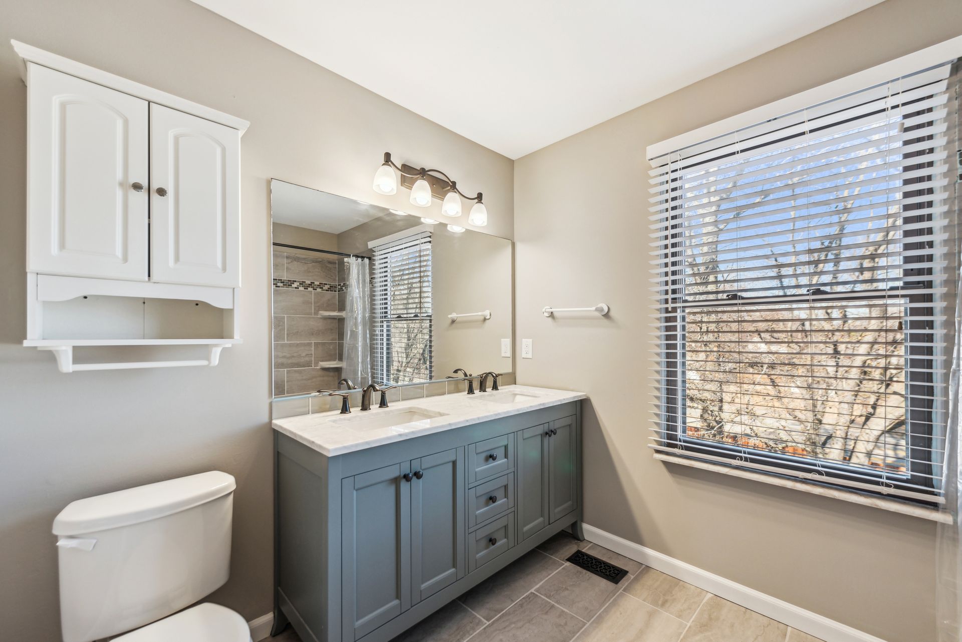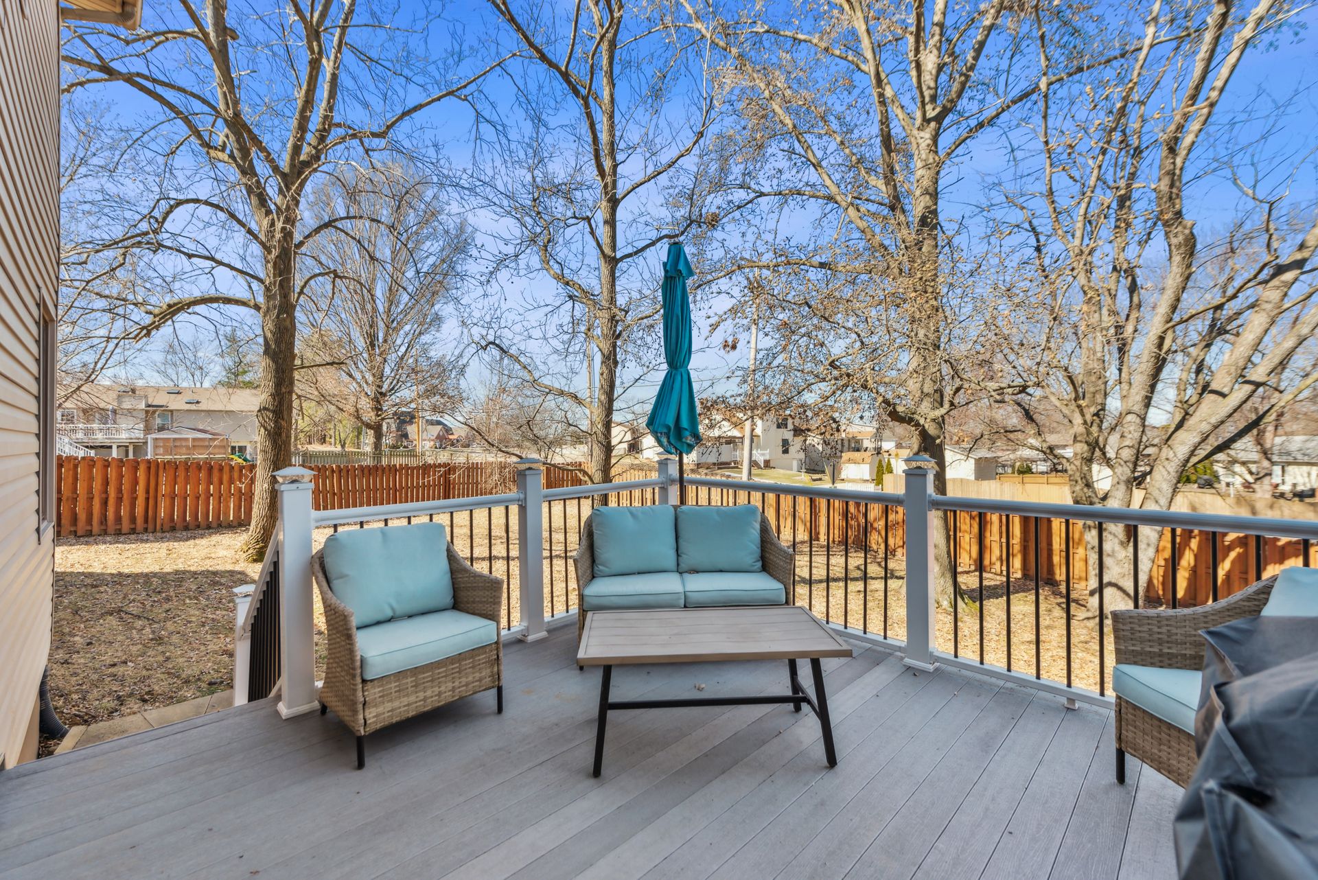 This beautiful 3 bedroom, 2.5 bath home is nestled at the end of a cul-de-sac and radiates warmth from the moment you step inside! The main floor features a spacious dining room and a versatile office or den. The generous family room, complete with a cozy wood-burning fireplace, flows into the bright and airy kitchen, which is filled with natural light. Step outside to the low-maintenance deck, great for enjoying views of the huge, fenced backyard. Upstairs, you'll discover a large, luxurious primary suite, with a walk-in closet and a beautifully updated bath with tiled floors, walk-in shower, and double vanity. The secondary bedrooms are spacious, and the second full bath has also been beautifully renovated. The walkout lower level offers a large finished room, ideal for many uses with additional space to finish for even more living area.