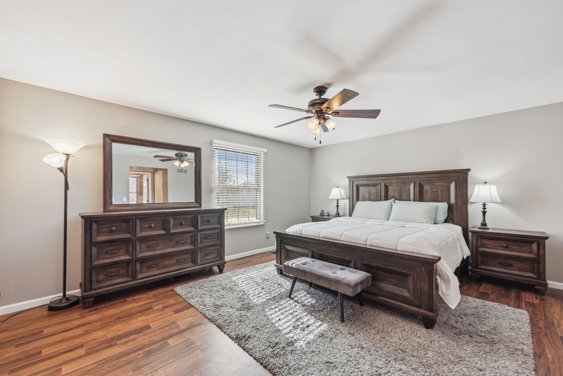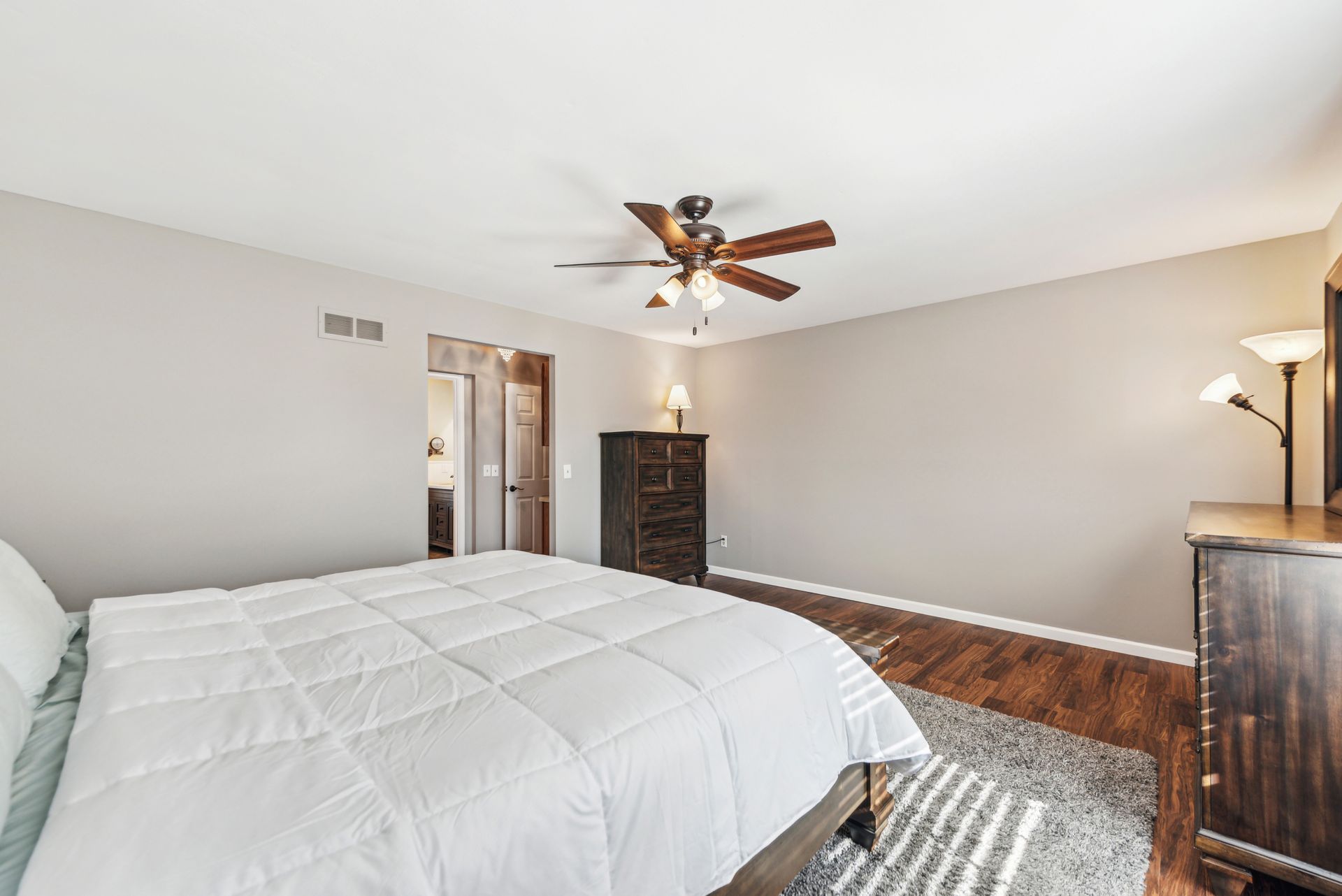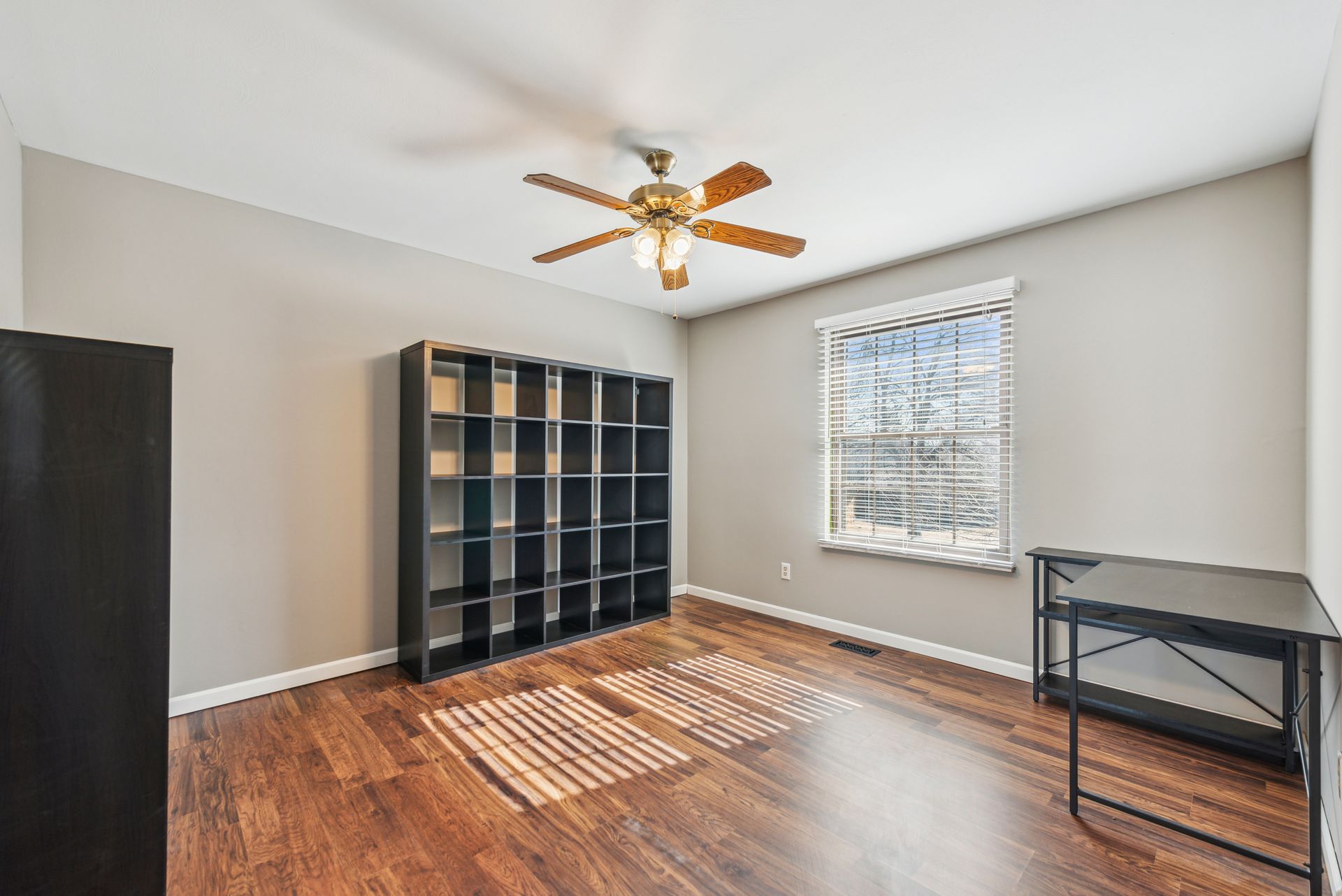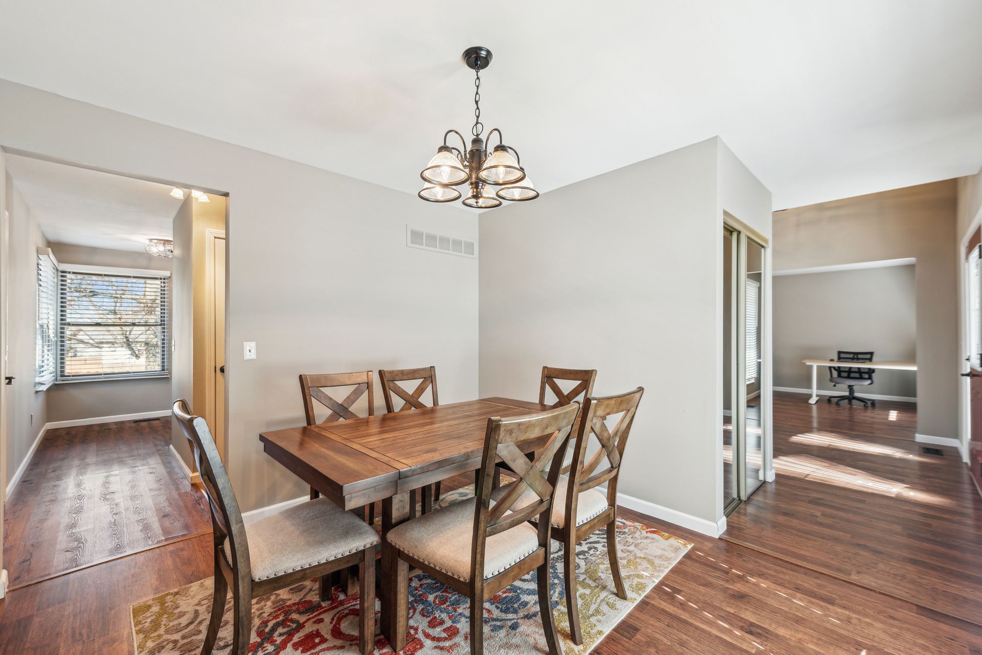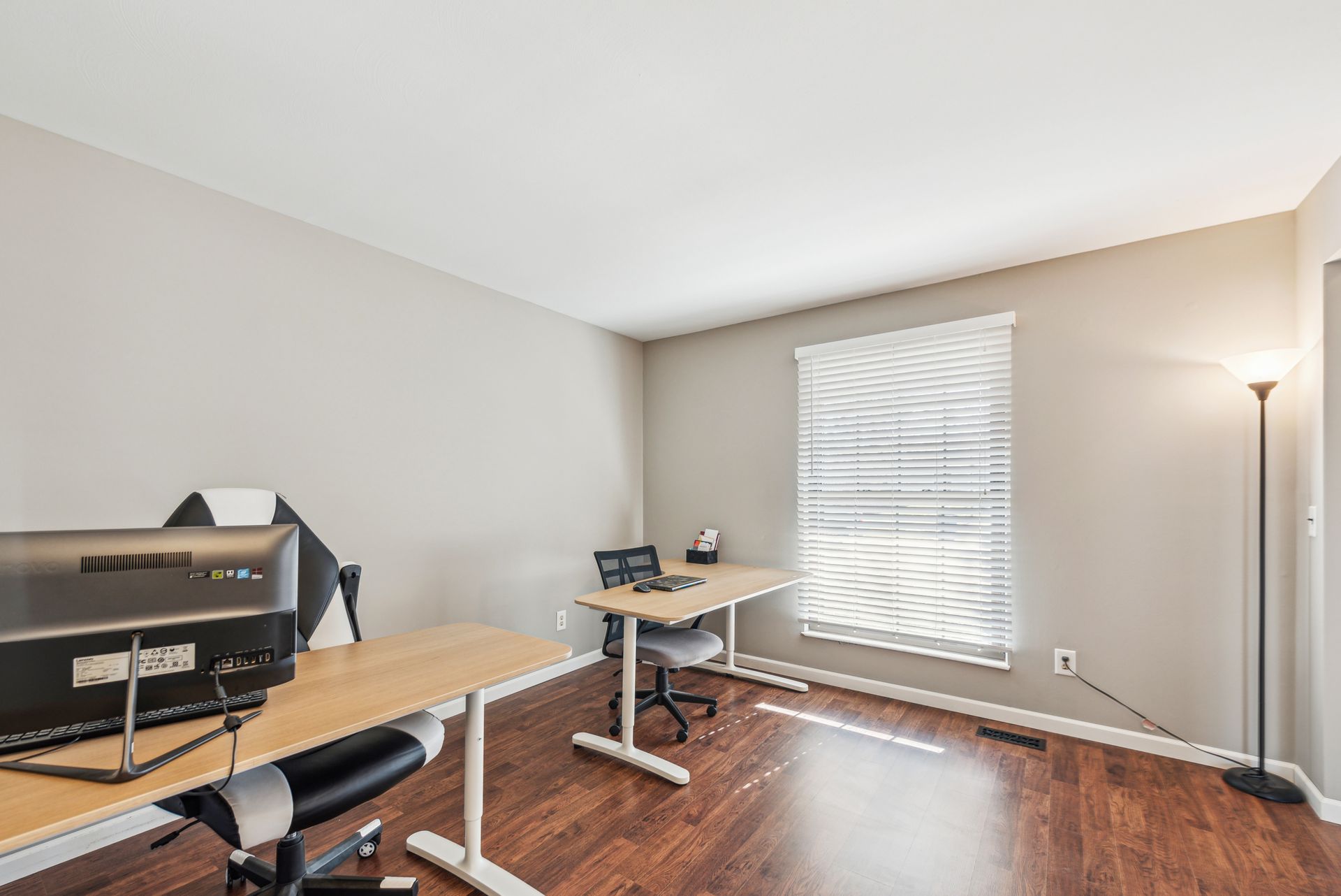 This beautiful 3 bedroom, 2.5 bath home is nestled at the end of a cul-de-sac and radiates warmth from the moment you step inside! The main floor features a spacious dining room and a versatile office or den. The generous family room, complete with a cozy wood-burning fireplace, flows into the bright and airy kitchen, which is filled with natural light. Step outside to the low-maintenance deck, great for enjoying views of the huge, fenced backyard. Upstairs, you'll discover a large, luxurious primary suite, with a walk-in closet and a beautifully updated bath with tiled floors, walk-in shower, and double vanity. The secondary bedrooms are spacious, and the second full bath has also been beautifully renovated. The walkout lower level offers a large finished room, ideal for many uses with additional space to finish for even more living area.