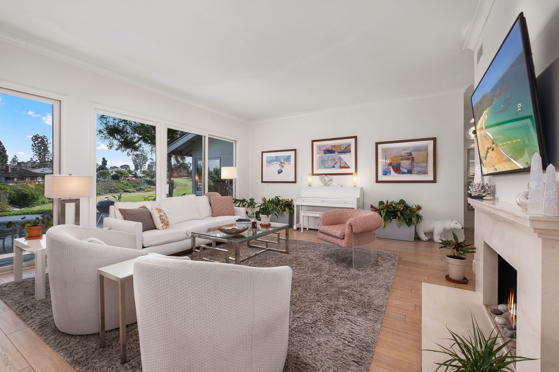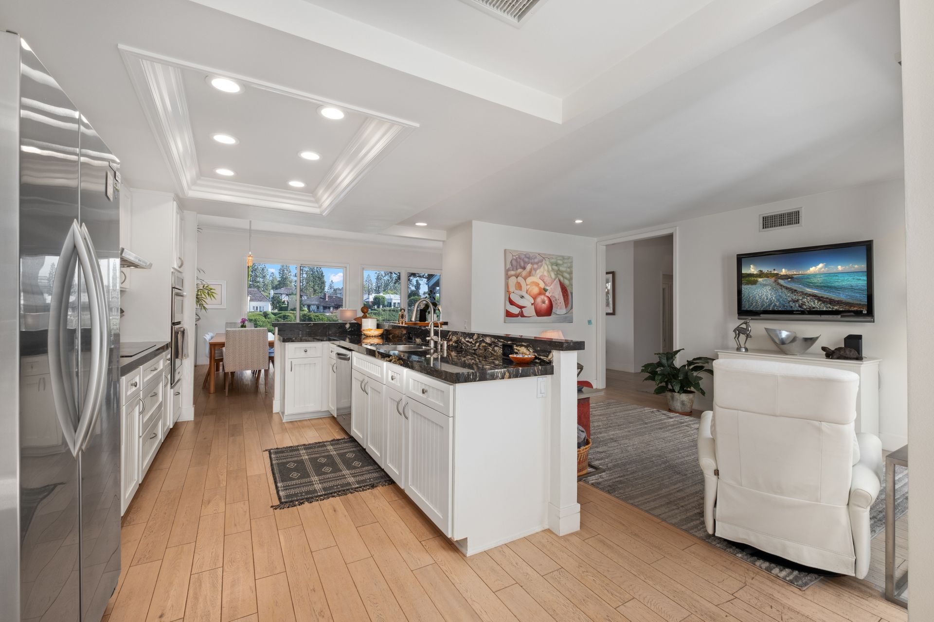 Nestled within the exclusive guard-gated community of Big Canyon, this beautifully renovated single-level home offers breathtaking views of Big Canyon Country Club's iconic 18th fairway, serene lake and green. Featuring two bedrooms and two bathrooms, the residence blends elegance with modern comfort. The gourmet kitchen boasts granite countertops, stainless steel appliances, and custom cabinetry, seamlessly flowing into the den and cozy breakfast nook. The living room, dining area, and primary suite all showcase stunning golf course vistas, creating a picturesque and tranquil setting. Ideally located in the heart of Newport Beach, this home is just moments from pristine beaches, world-class shopping at Fashion Island and the convenience of John Wayne Airport.