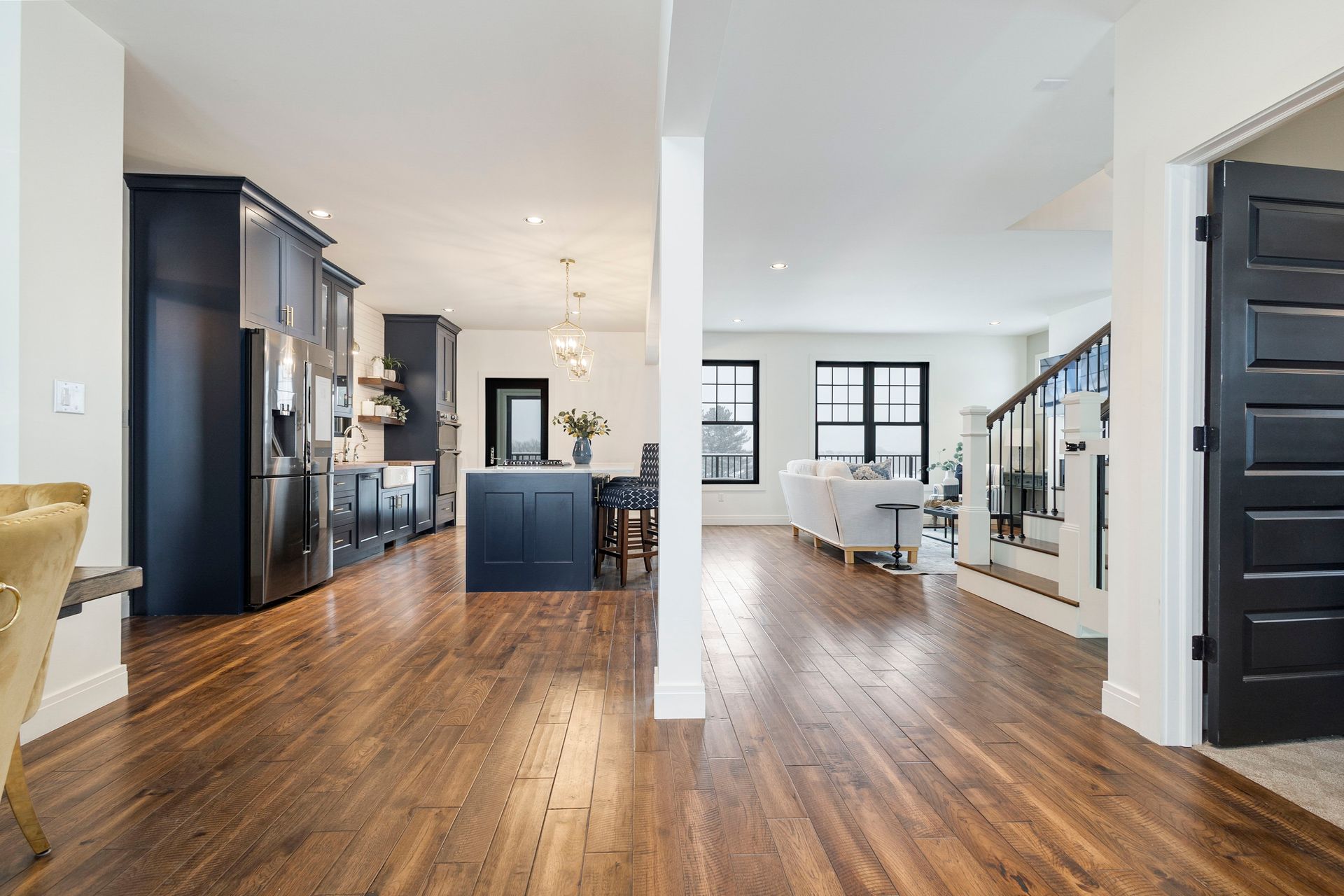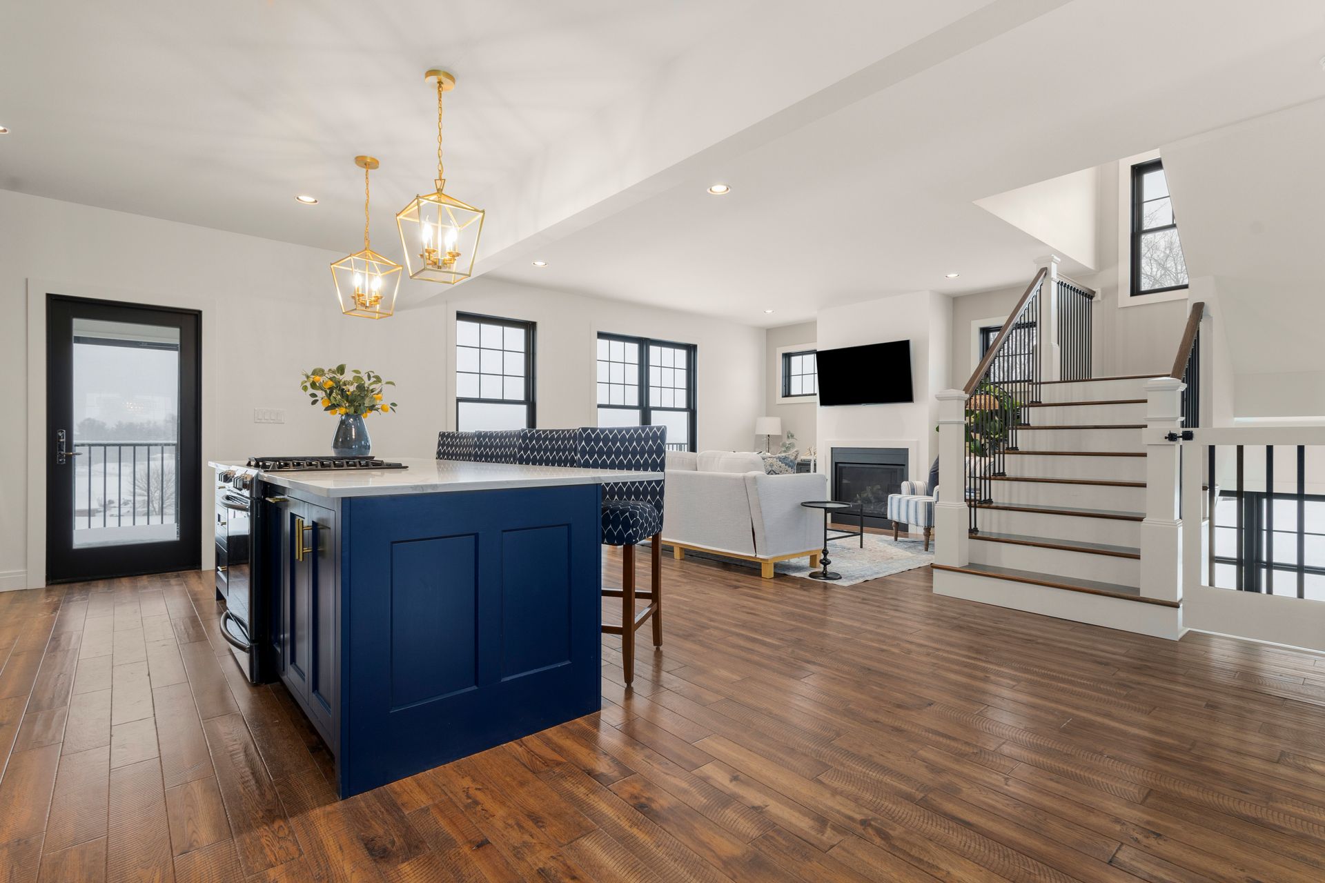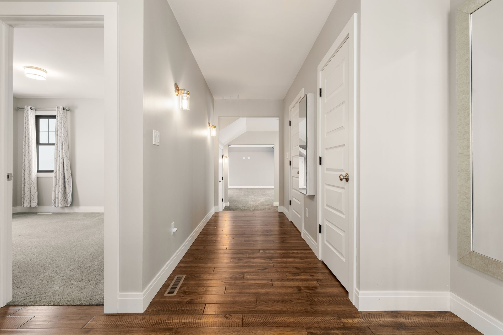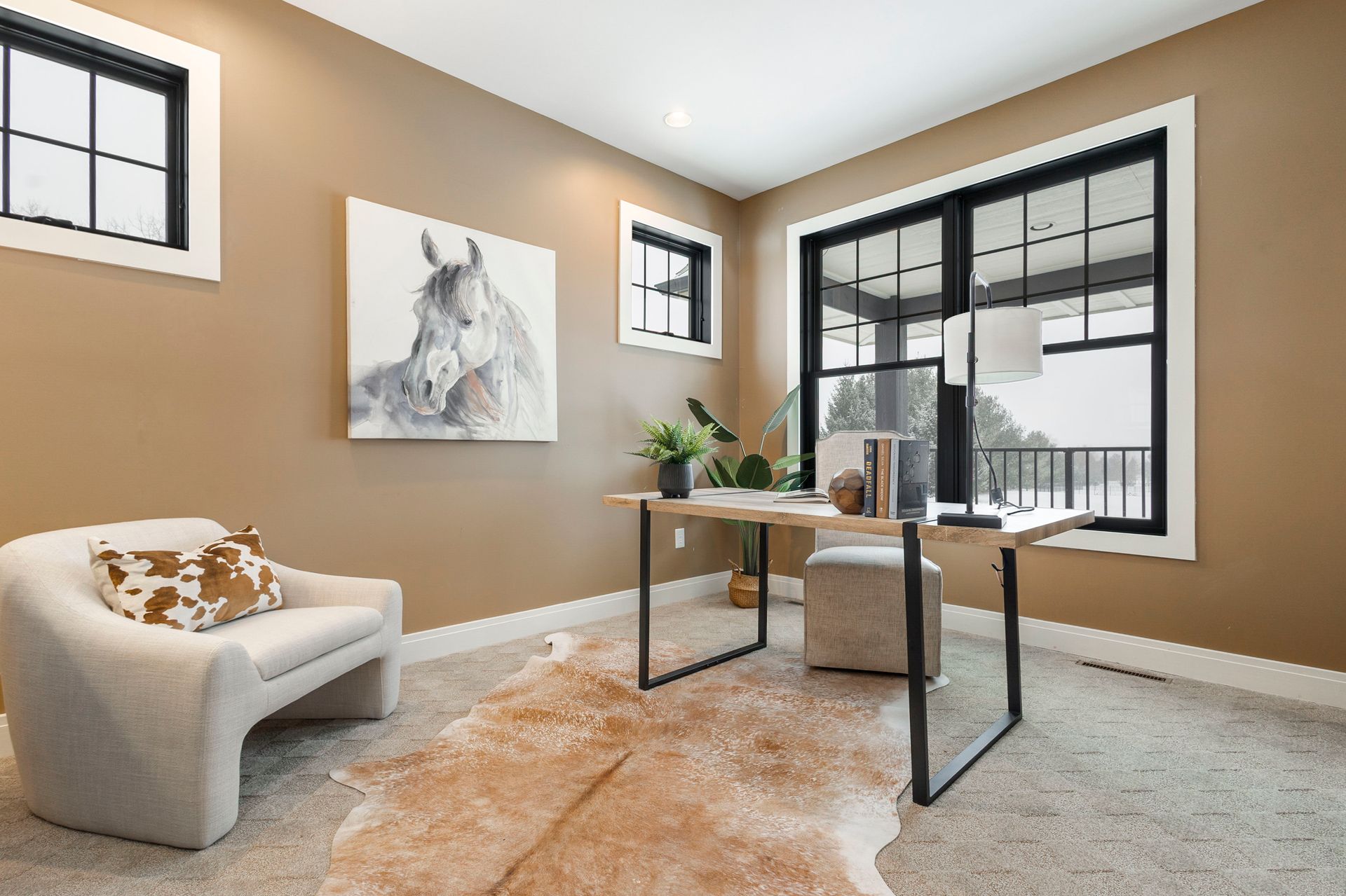 A showcase of quality construction and thoughtful design, this like-new 2018 custom home offers 4 bedrooms, 3.5 baths on 1+ acre with sweeping countryside views—minutes to New Buffalo and Lake Michigan beaches. Enjoy sunsets on the AZEK front porch and sunrises from the rear AZEK deck over a serene backyard. Premium finishes include LP SmartSide siding, aluminum-clad wood windows, quartz countertops, and a wood front door. The open-concept main level features a light-filled living room with gas fireplace and kitchen with custom maple cabinetry, double ovens, and an island. From the kitchen, step to the rear deck and a covered, screened porch—ideal for indoor-outdoor entertaining. A sound-insulated den, mudroom, half bath, and access to the oversized attached garage complete the main floor. Upstairs, the primary suite offers dual walk-in closets, double vanity, and tiled glass-enclosed shower. Two additional bedrooms share a double-sink bath; a large bonus room above the garage adds flexibility. Second-floor laundry includes a utility sink and built-in ironing station. The finished walkout basement provides a bright family room, a fourth bedroom, a new ¾ bath, ample storage, and a rough-in for a kitchen or wet bar—ideal for entertaining or secondary living. A 29x26 attached garage with 12' ceiling, wall-mounted door, and a heat-ready gas line pairs with an 882-sq-ft detached outbuilding (2023) with a vaulted retreat on the main level and a workshop below; both levels heated and cooled. Includes stainless sink, a powered garage door, and its own 200-amp service, complementing the home's 200-amp service for a rare 400-amp total. Extras: whole-house Generac generator, tankless water heater, Kinetico water system with reverse osmosis, whole-house humidifier, 9' ceilings, iron railing and wood staircase, gas line for a patio fireplace, and dedicated subpanel with level ground ready for a future, sun-filled pool. This home exceeds expectations at every turn!