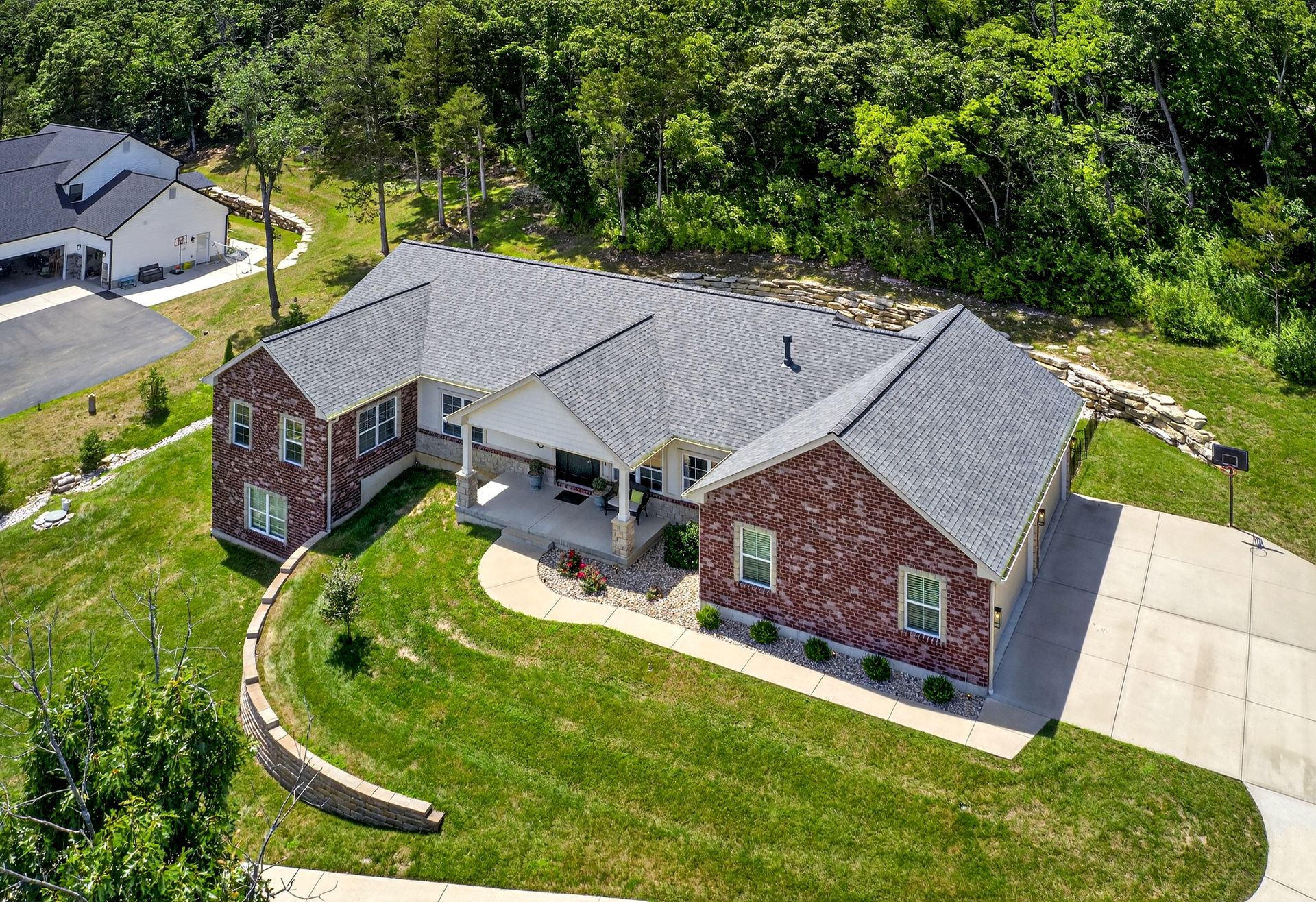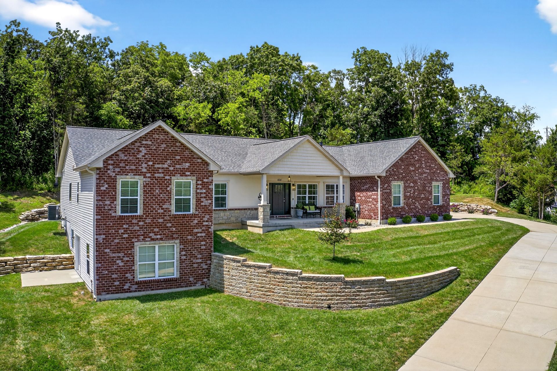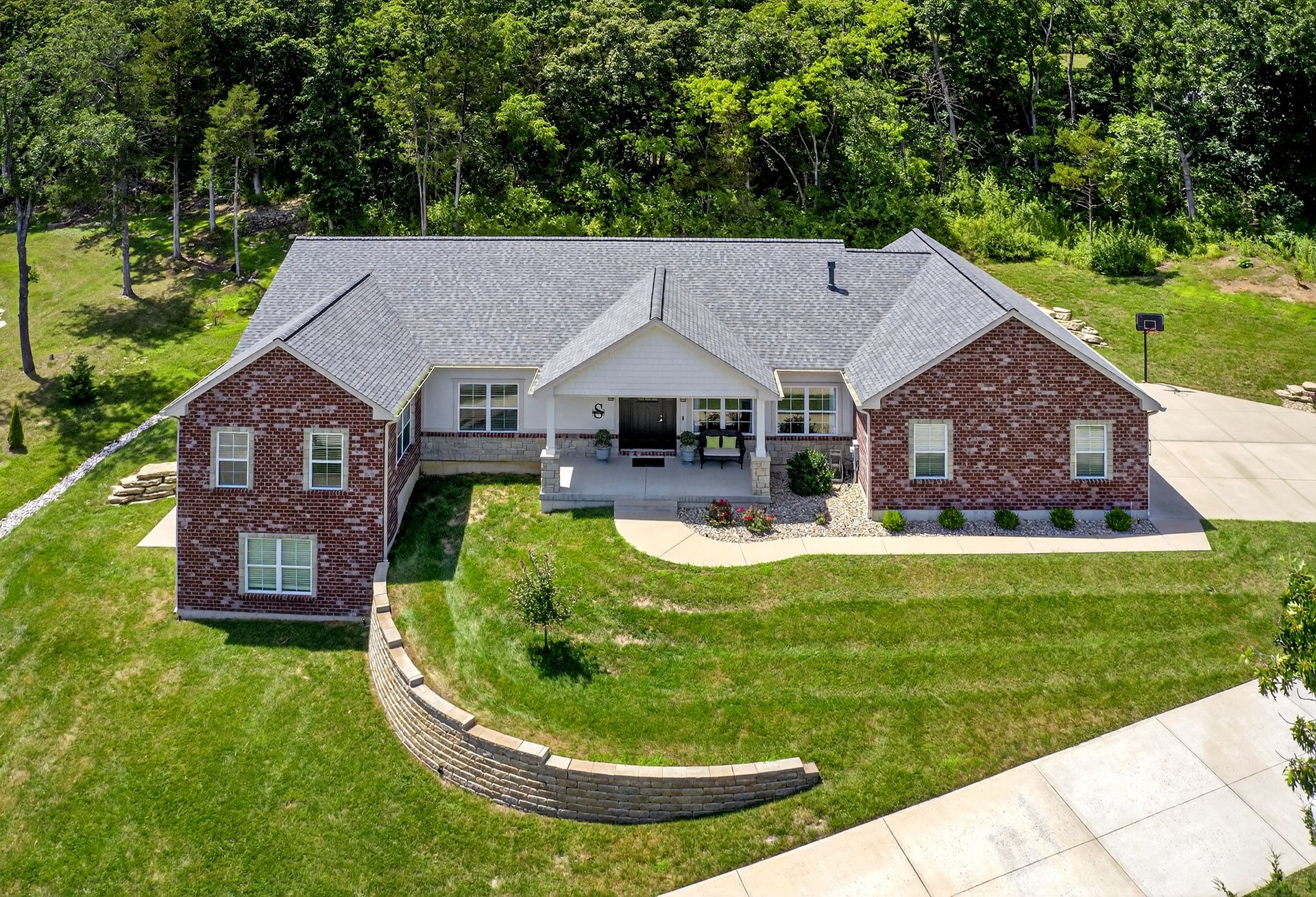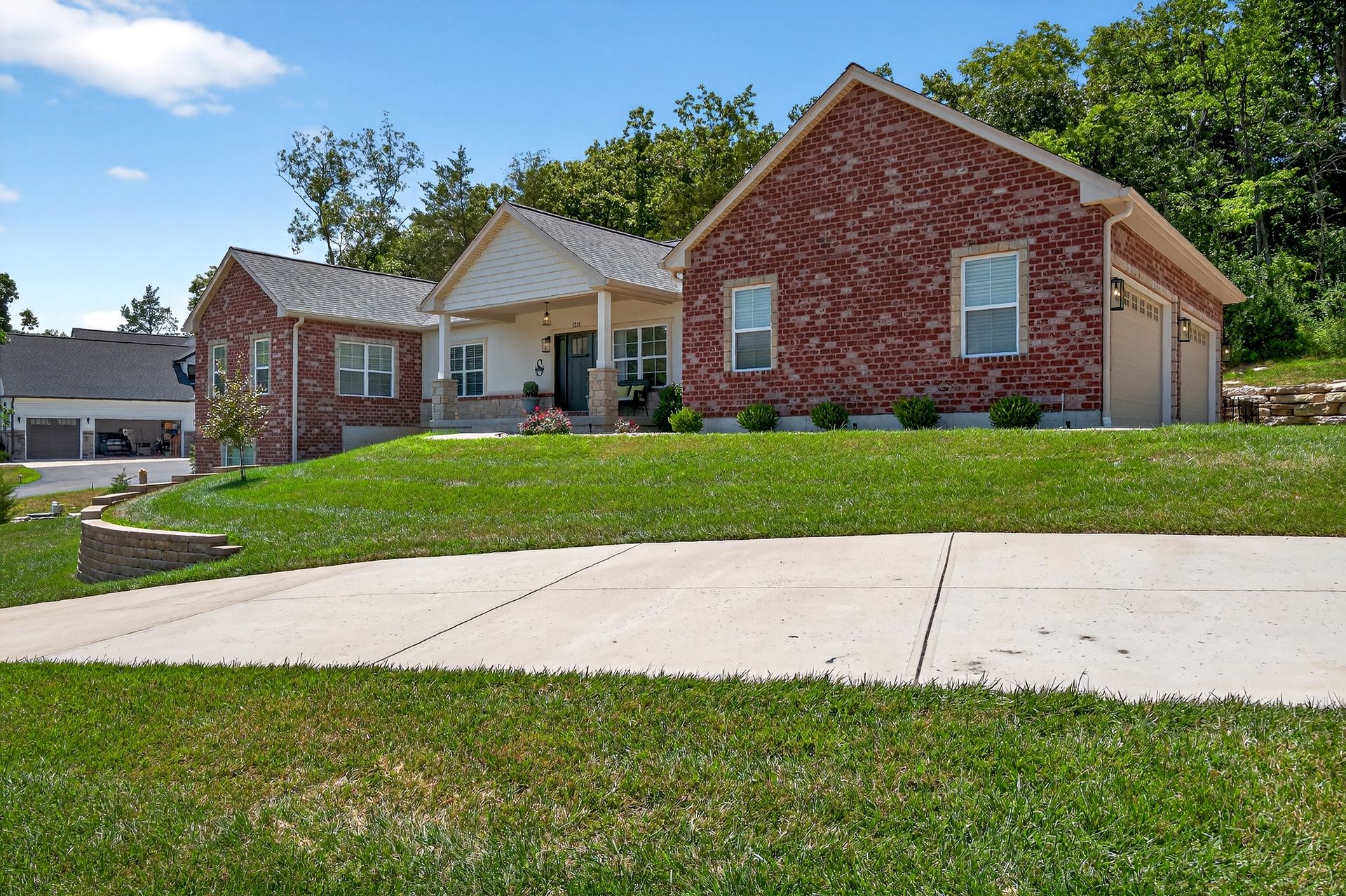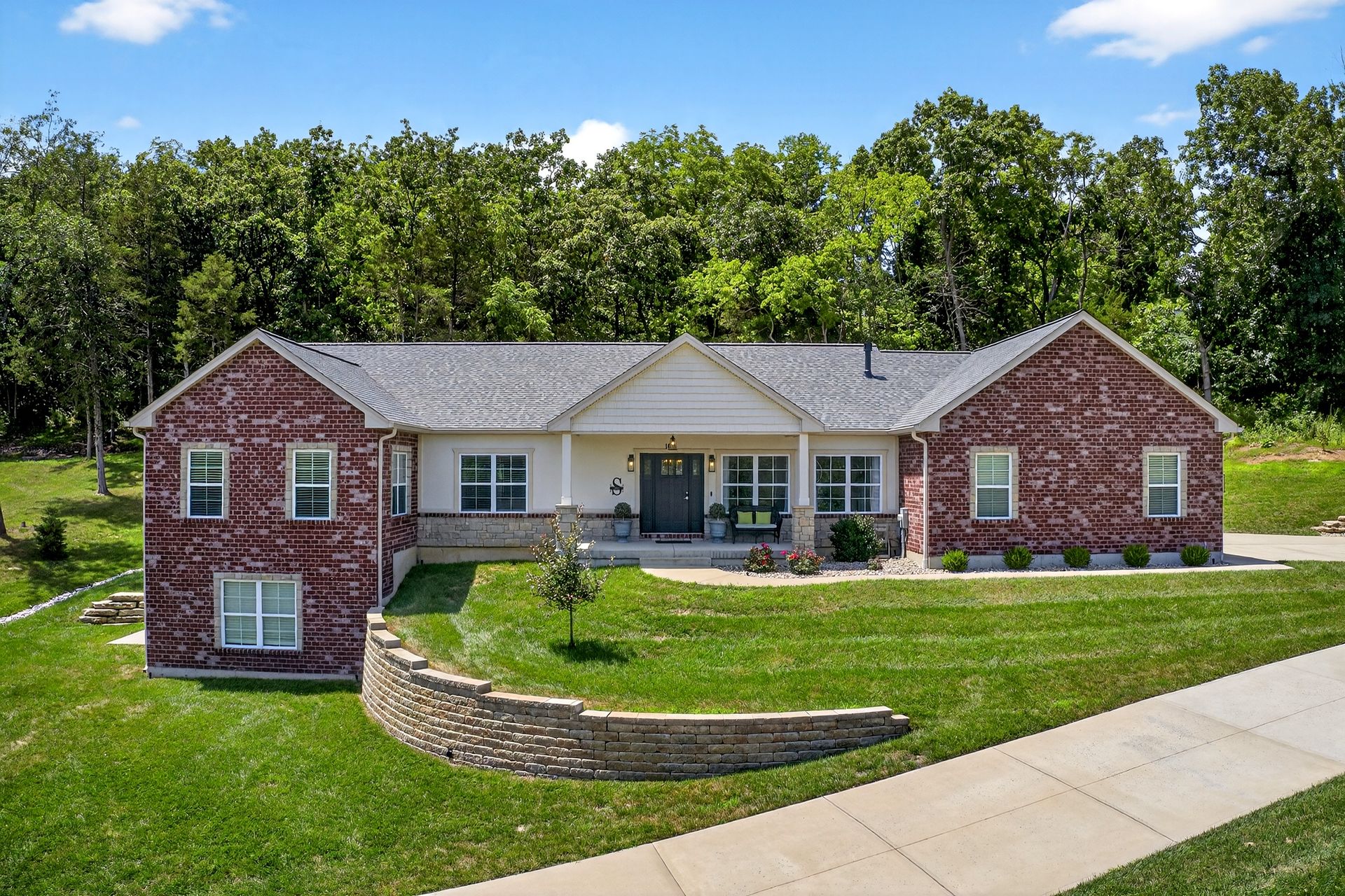 Stop the Car—This One Has It All! Welcome to this stunning ranch-style home nestled on 1.07 acres, in a highly sought-after neighborhood, offering 4 spacious main-level bedrooms, 2.5 baths, and a fully finished oversized 4-car garage—perfect for car enthusiasts or extra storage. Step inside and you’ll immediately notice the like-new feel, with rich wood flooring throughout the main level (excluding bathrooms). The custom kitchen is a chef’s dream, featuring 42" soft-close cabinetry, a large center island, granite countertops, and a 6-burner range—ideal for entertaining or everyday cooking. The primary suite is a true retreat, boasting a vaulted ceiling, an expansive walk-in closet with built-in shelving, and a luxurious en-suite bath that will inspire you to start each day refreshed and energized. Out back, enjoy peaceful privacy with views of woods and stacked stone landscaping, a fenced yard, and a stamped concrete patio—perfect for same-level outdoor entertaining. The full basement includes a 5th bedroom, side walk-out, rough-in plumbing, and framed walls, giving you a head start to finish the space exactly how you envision it. With a brick and stone exterior, this home blends modern elegance with cozy country charm. I almost forgot the irrigation system. Located in the Seckman/Fox C-6 School District, this home checks all the boxes!