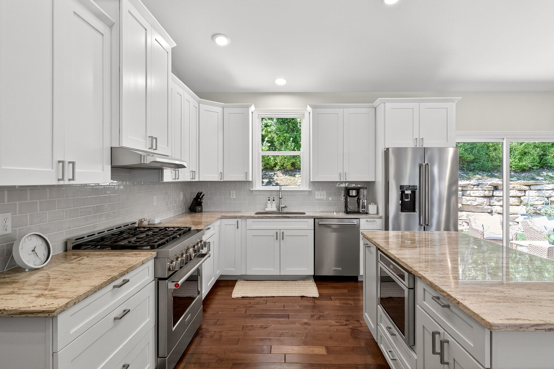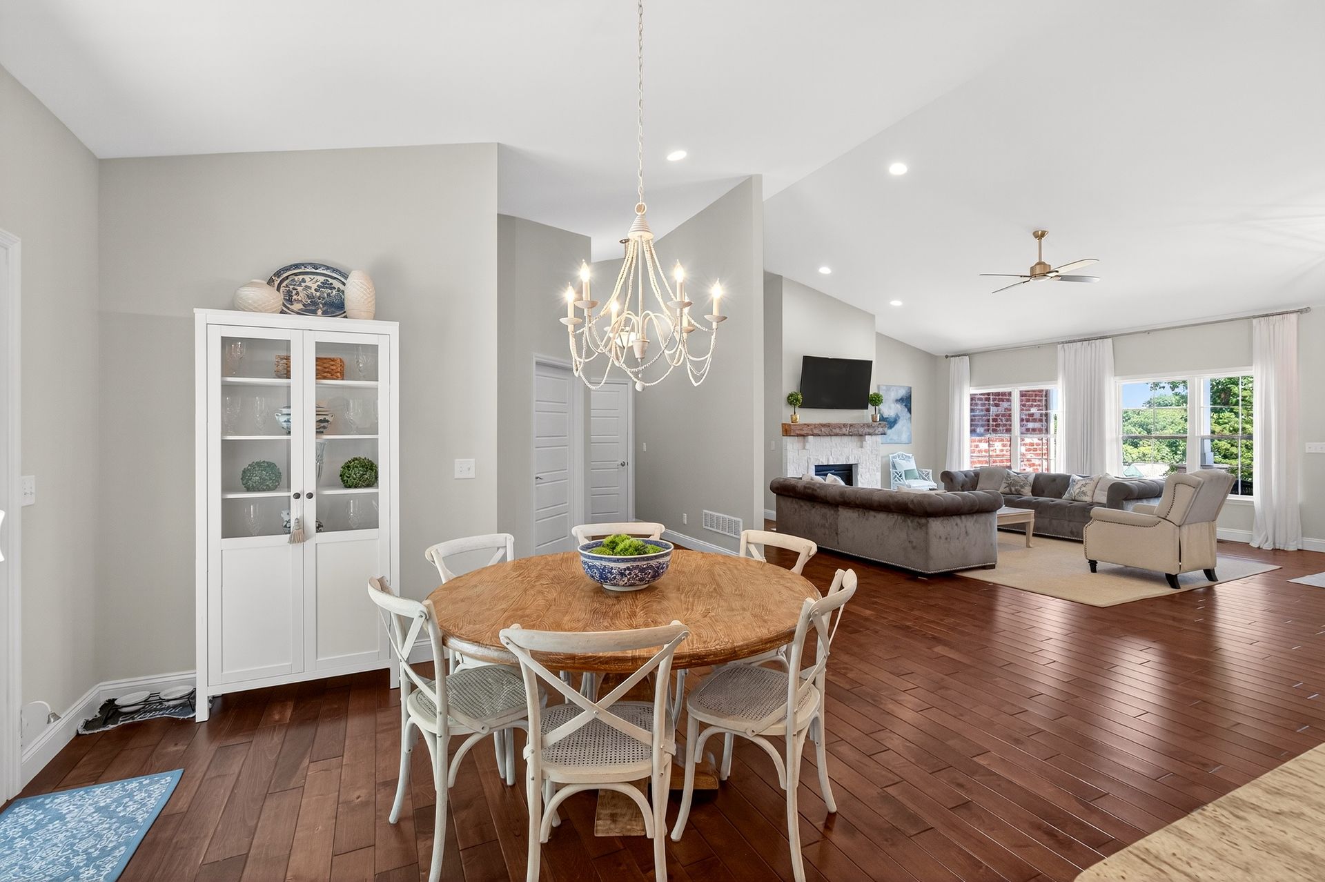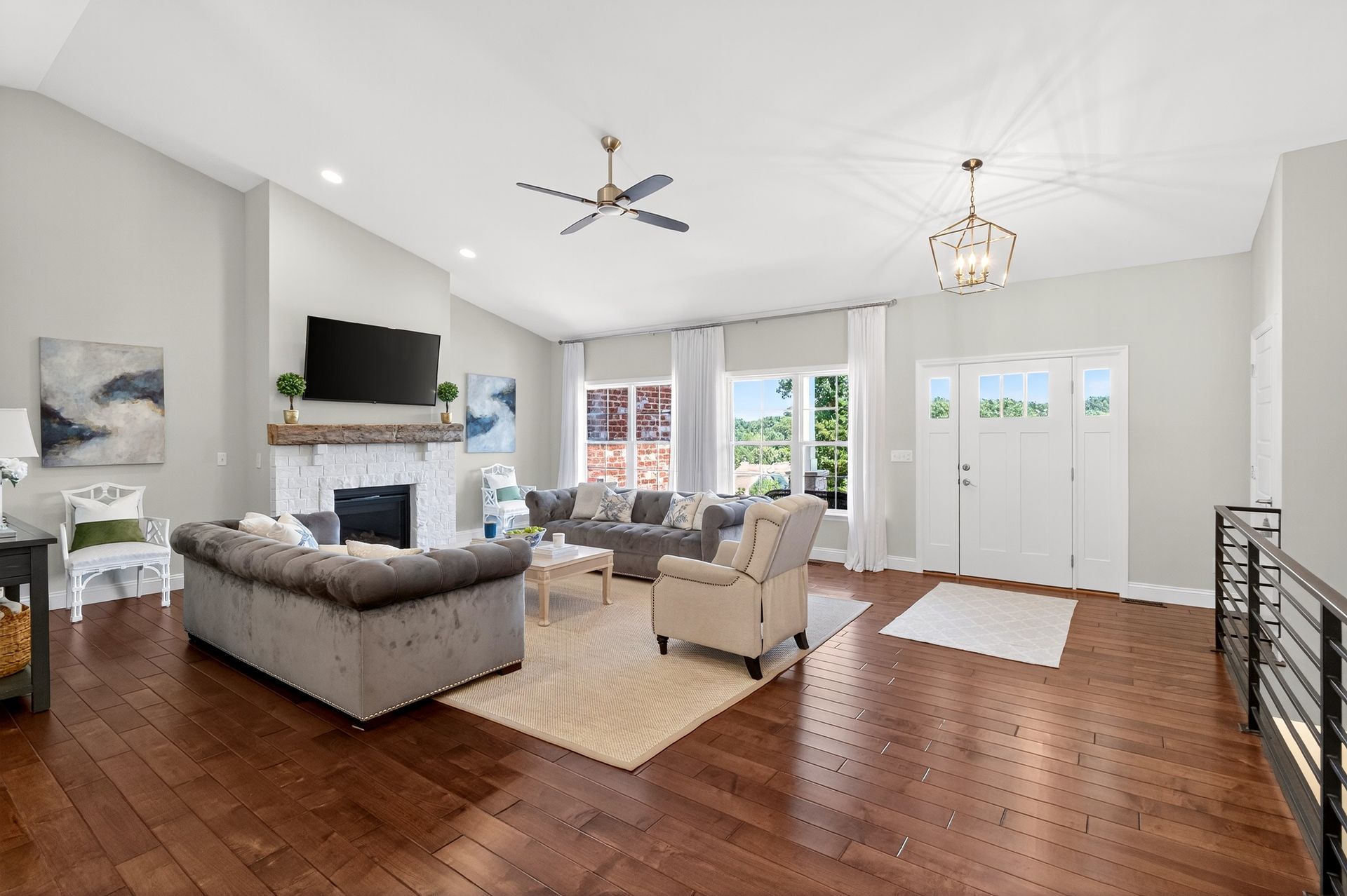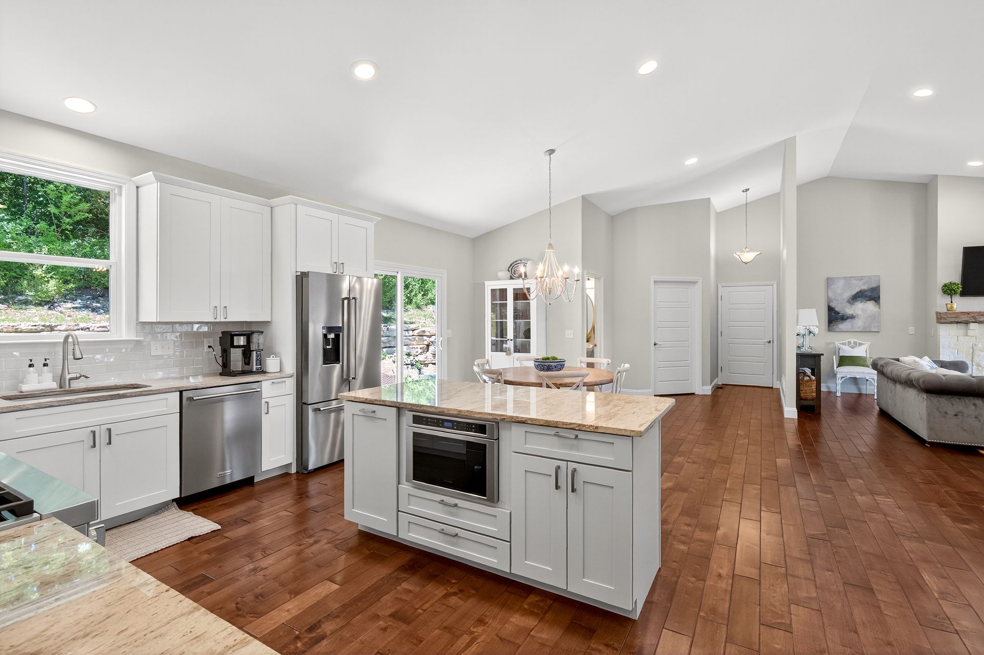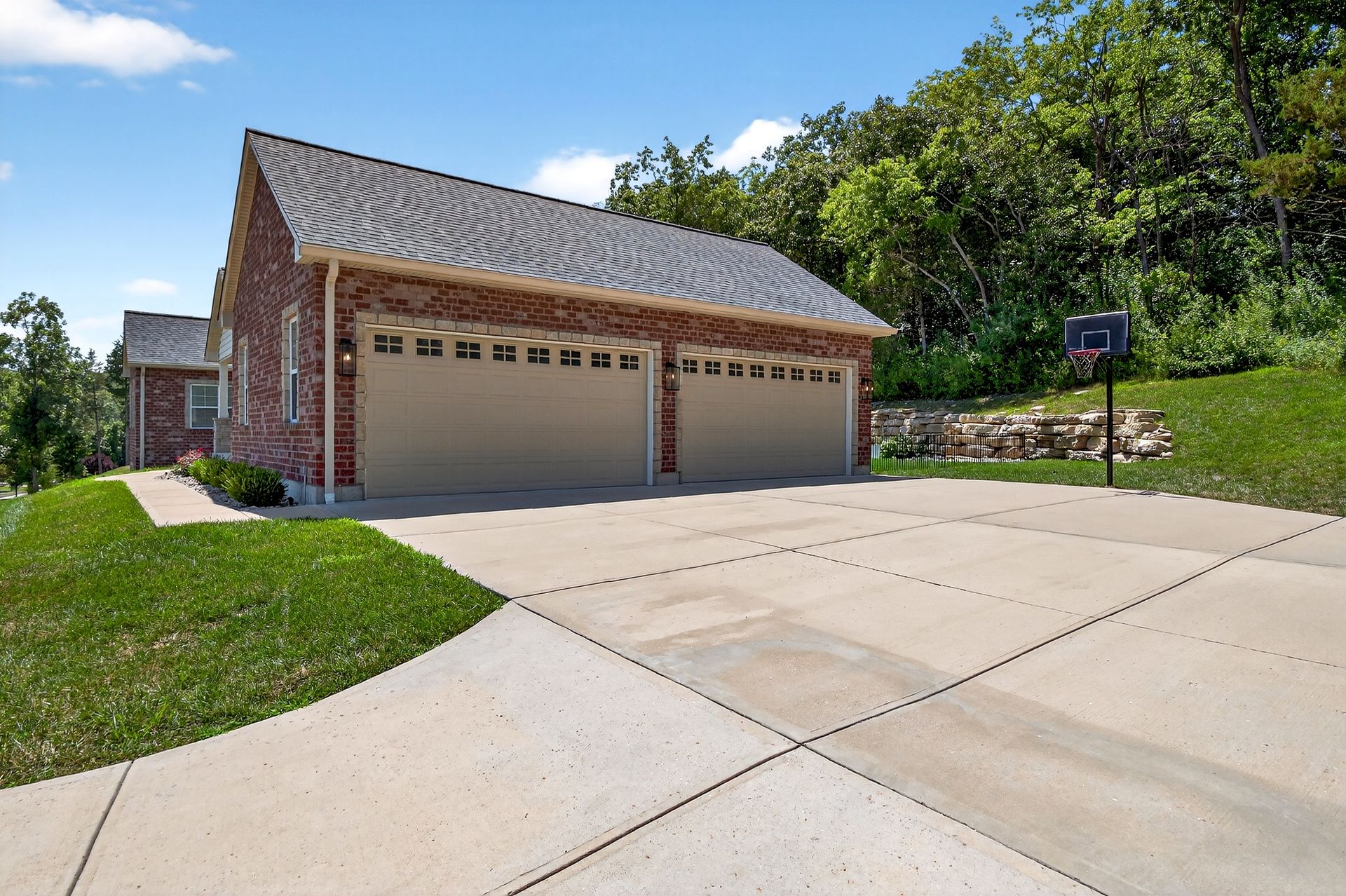 Stop the Car—This One Has It All! Welcome to this stunning ranch-style home nestled on 1.07 acres, in a highly sought-after neighborhood, offering 4 spacious main-level bedrooms, 2.5 baths, and a fully finished oversized 4-car garage—perfect for car enthusiasts or extra storage. Step inside and you’ll immediately notice the like-new feel, with rich wood flooring throughout the main level (excluding bathrooms). The custom kitchen is a chef’s dream, featuring 42" soft-close cabinetry, a large center island, granite countertops, and a 6-burner range—ideal for entertaining or everyday cooking. The primary suite is a true retreat, boasting a vaulted ceiling, an expansive walk-in closet with built-in shelving, and a luxurious en-suite bath that will inspire you to start each day refreshed and energized. Out back, enjoy peaceful privacy with views of woods and stacked stone landscaping, a fenced yard, and a stamped concrete patio—perfect for same-level outdoor entertaining. The full basement includes a 5th bedroom, side walk-out, rough-in plumbing, and framed walls, giving you a head start to finish the space exactly how you envision it. With a brick and stone exterior, this home blends modern elegance with cozy country charm. I almost forgot the irrigation system. Located in the Seckman/Fox C-6 School District, this home checks all the boxes!