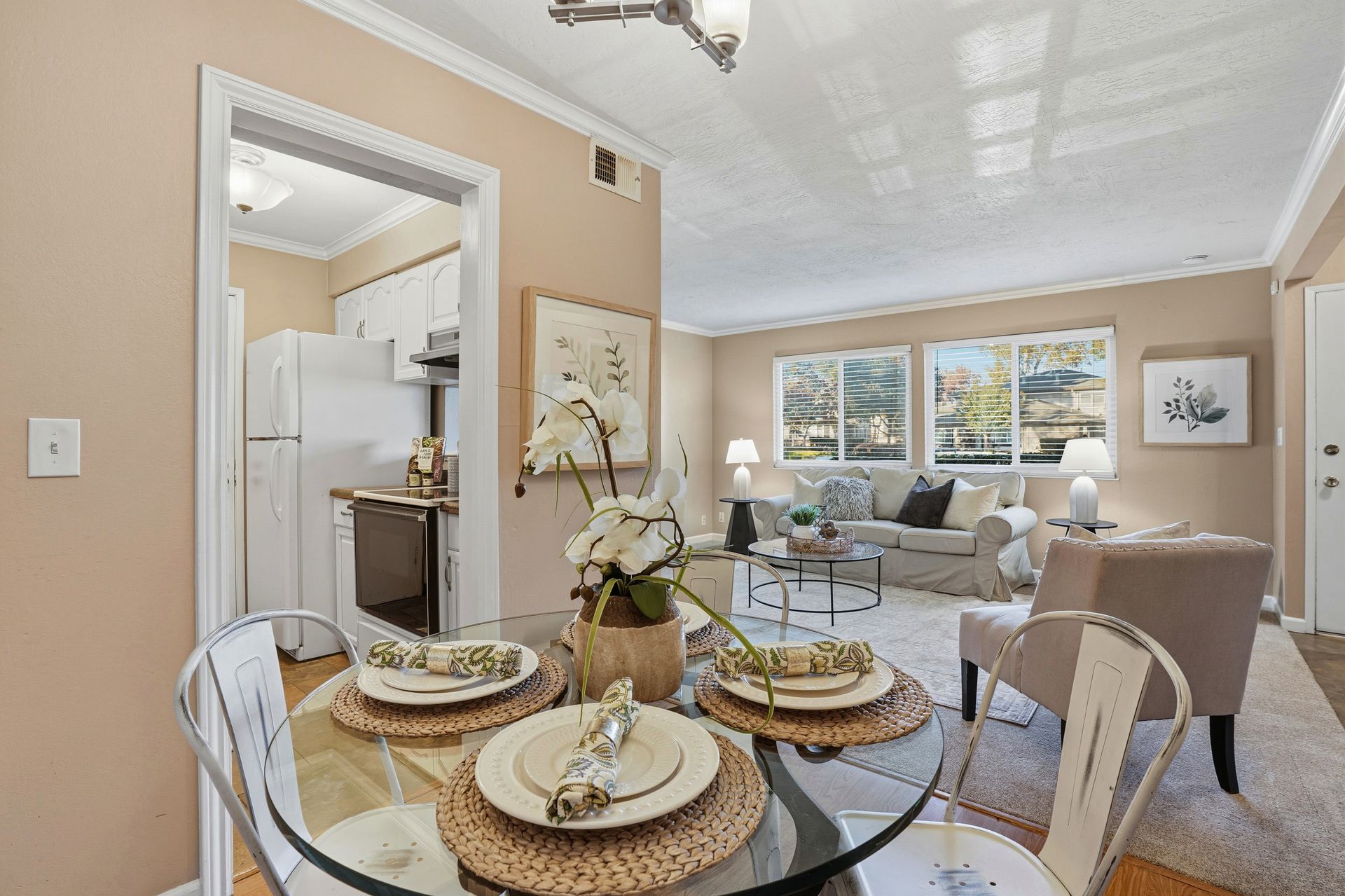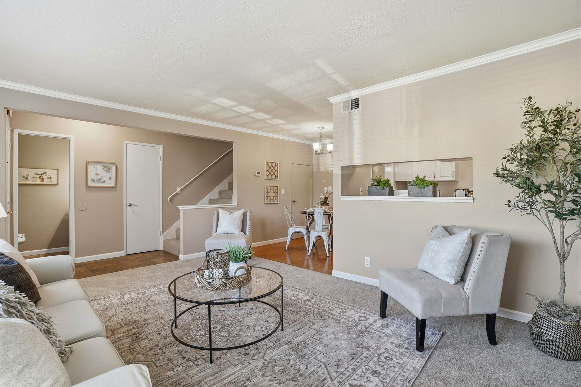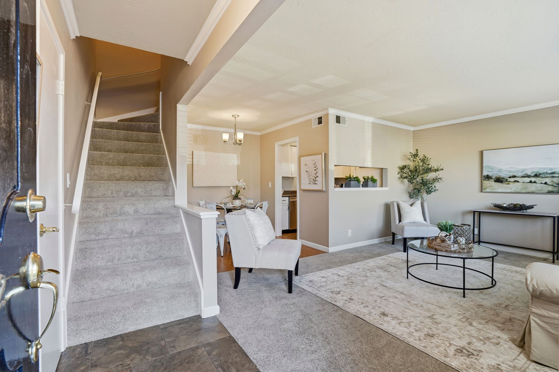 Welcome to Concord’s desirable Del Rio Court community, where this charming two-story condo offers approximately 880 sq. ft. of comfortable living space. This 2-bedroom, 1.5-bath home features no neighbors above or below and a functional layout with thoughtful updates throughout. The stylish kitchen includes solid-surface countertops, updated cabinetry, a stainless dishwasher, and direct access to the attached garage with convenient onsite laundry. Both bathrooms have been tastefully refreshed, and the home features brand-new carpeting and energy-efficient vinyl windows. Upstairs, two generously sized bedrooms with neutral tones create a peaceful retreat. Parking includes one garage space plus an additional tandem spot behind. Del Rio Court offers a community pool and landscaped, park-like grounds, with HOA dues covering water and trash service. Ideally located near shopping, dining, schools, parks, and major commuter routes, this move-in-ready home blends comfort and convenience in a prime Concord location.
