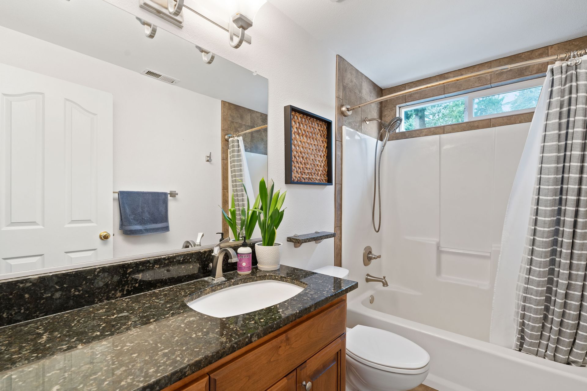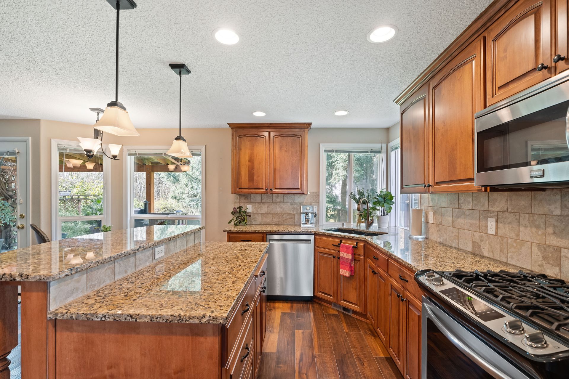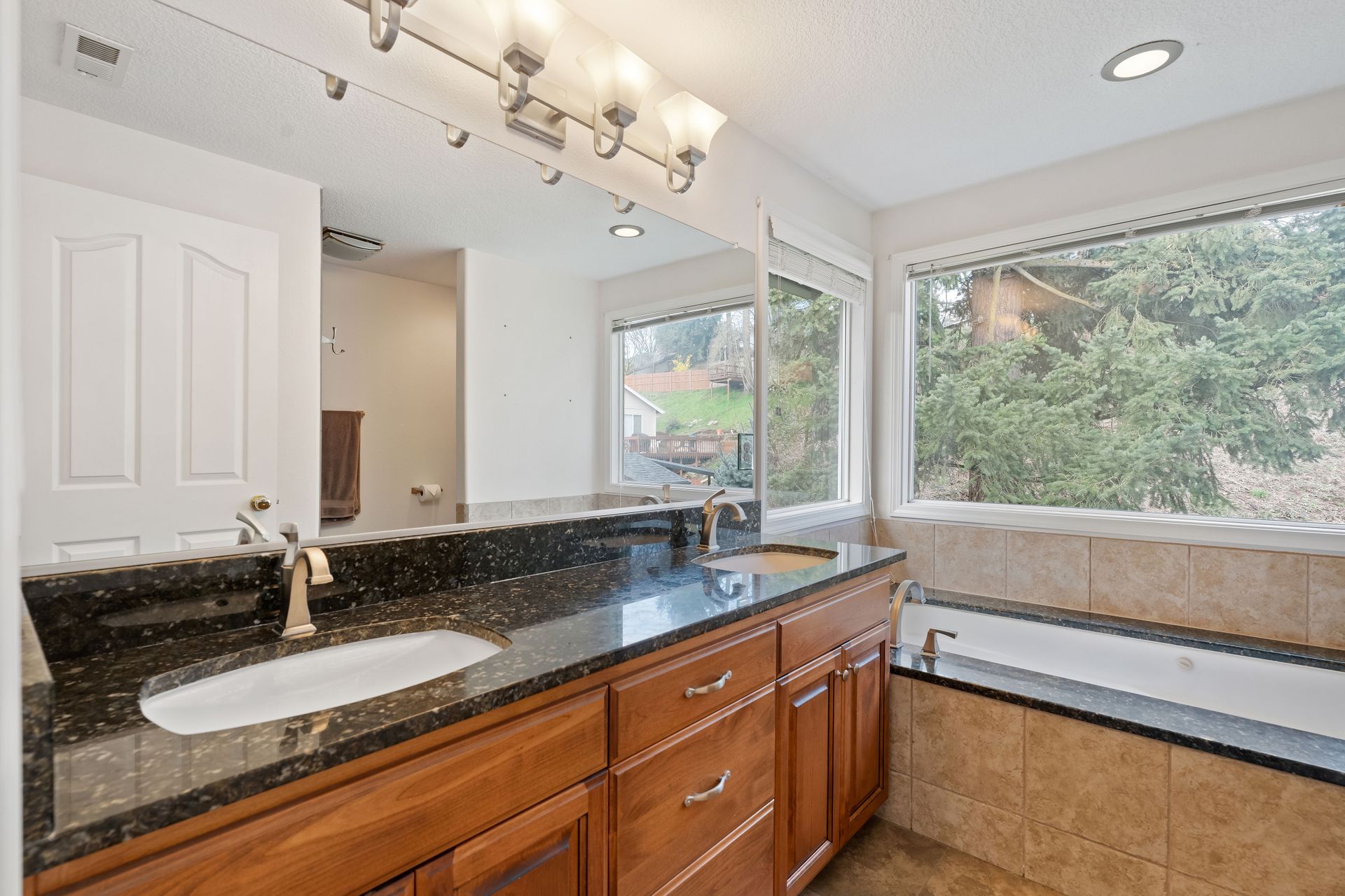 The home offers approximately 2,588 square feet of living space, providing ample room for comfortable living. The primary bedroom includes a jetted tub and steam shower; offering a luxurious spa-like experience. Residents can enjoy the convenience of a large covered deck, perfect for relaxing or entertaining year round.
