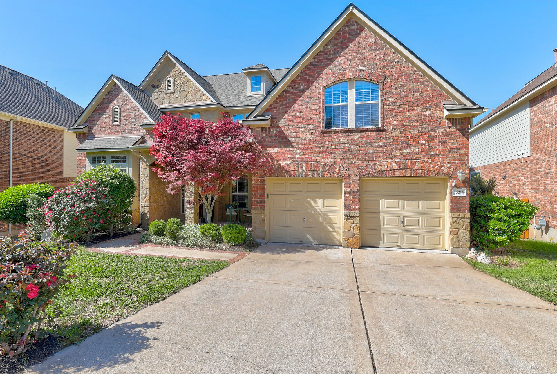 The main floor features a serene primary suite with greenbelt views, while the upper level offers four generously sized secondary bedrooms—perfect for family living or hosting guests. A dedicated study/den at the front of the home provides the ideal work-from-home setup.