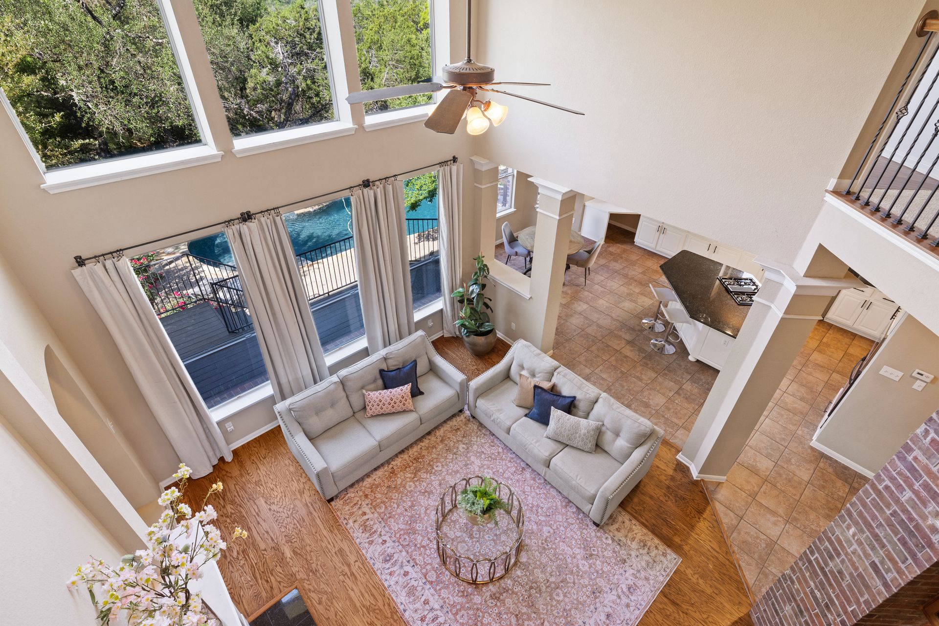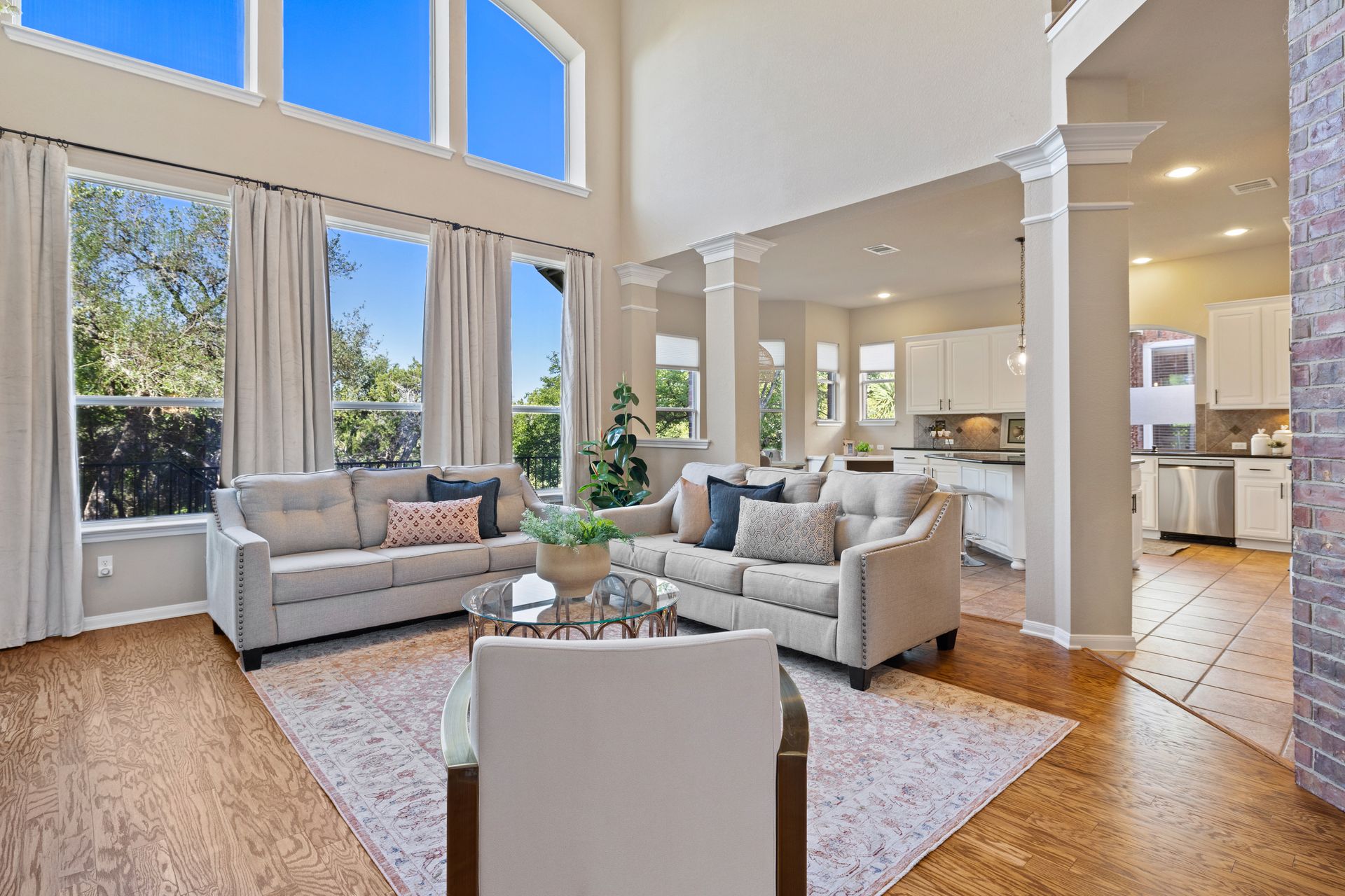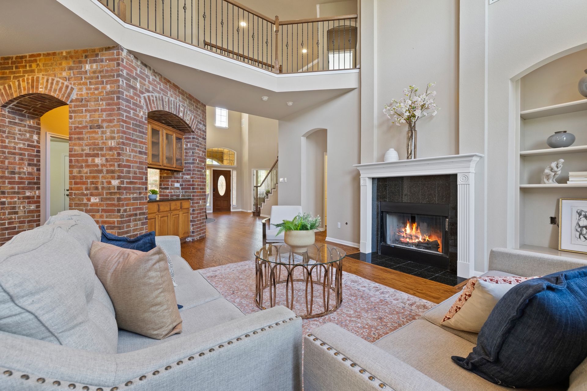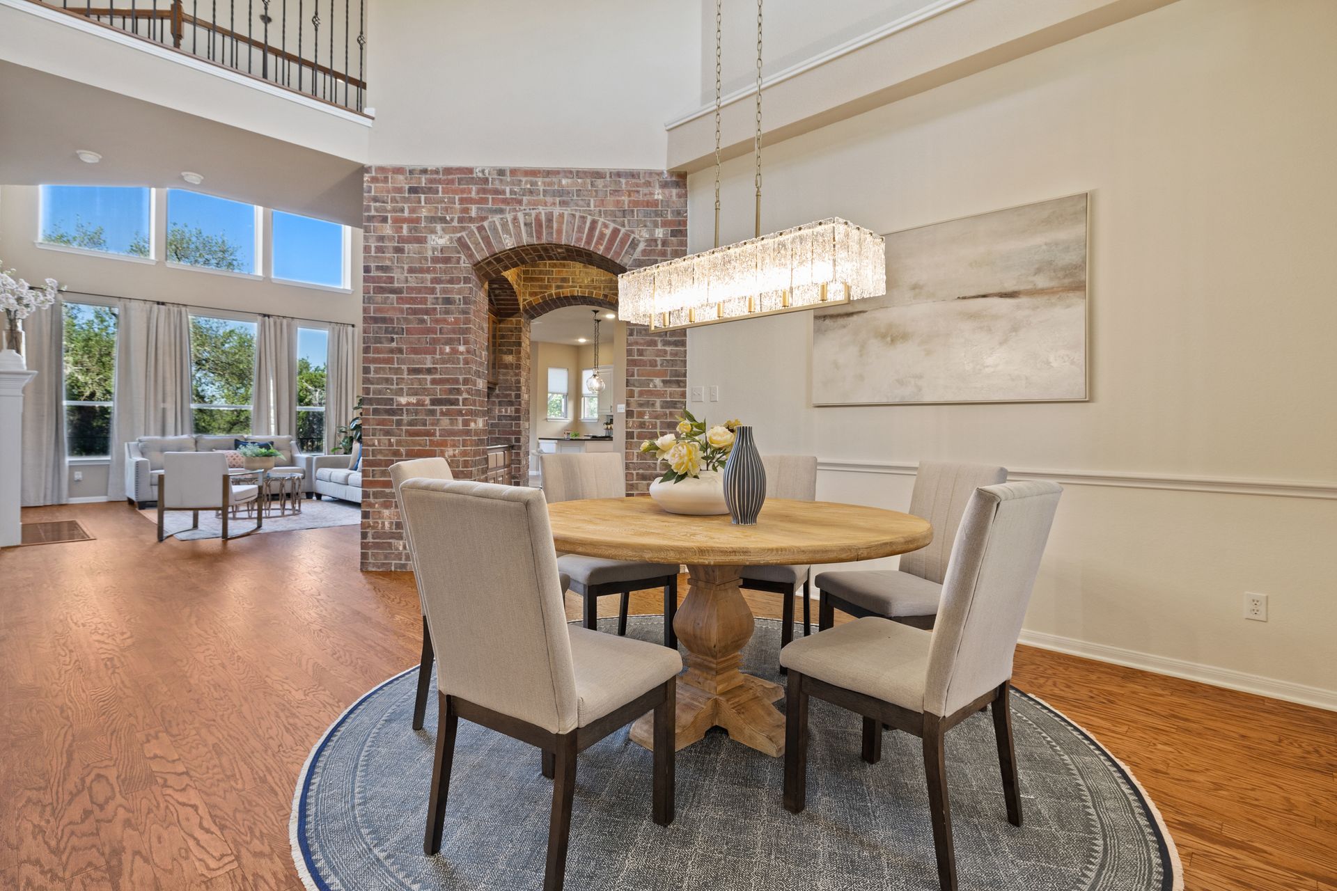 Set on a spacious lot with lush landscaping and mature trees, the classic brick exterior creates a warm, inviting curb appeal. Inside, rich refinished hardwood flooring flows throughout the open-concept main level, where abundant natural light enhances the home’s bright and airy atmosphere.
