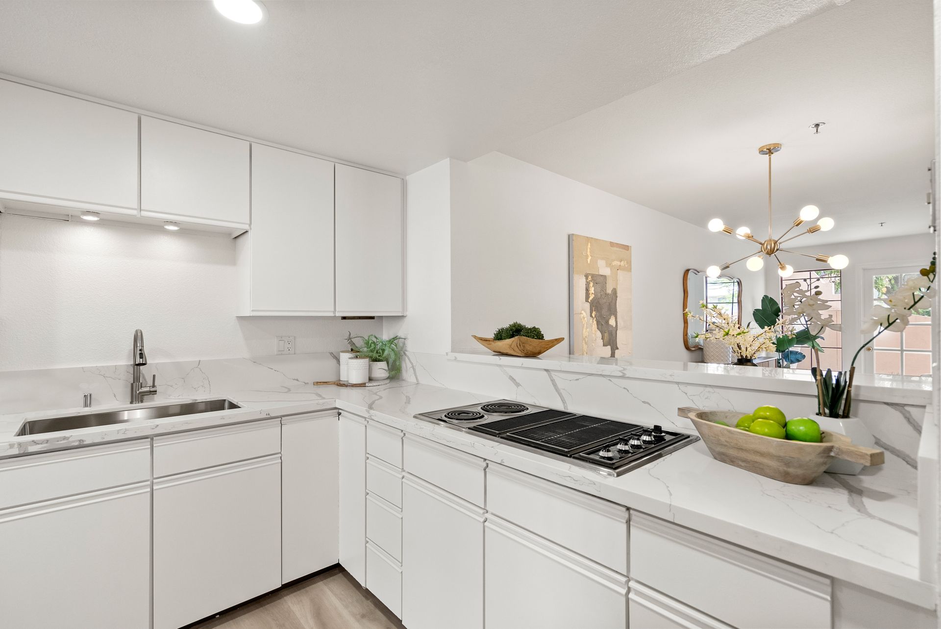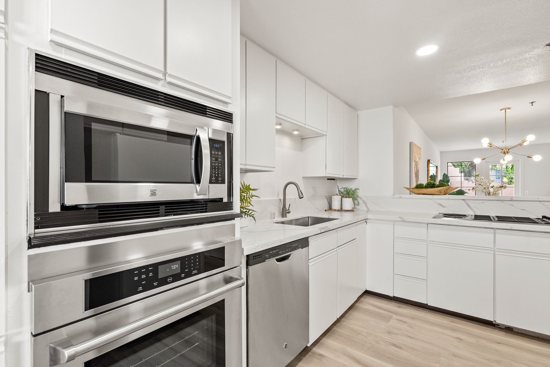 Welcome to this spacious and light-filled one-bedroom condo in the heart of Cupertino! Recently updated, this stylish home features newly installed flooring and an open layout that flows seamlessly from the living room to the kitchen. The kitchen is beautifully upgraded with sleek quartz countertops, a newly installed oven, and modern faucet. The bathroom is equally updated with a newly installed quartz vanity countertop, vanity light fixture, and faucet. Enjoy the convenience of an in-unit washer and dryer, plus a chic wet bar and private front and back patios. A tandem garage and a private storage room for added convenience. The community features a pool, hot tub, and serene pond. Ideally situated across from the Cupertino Library and within the highly acclaimed Cupertino school district. Just minutes from Apple Headquarters, De Anza College, Whole Foods, and a wide variety of shops and restaurants, with easy access to highways 280 and 85. HOA fee: $607/Monthly