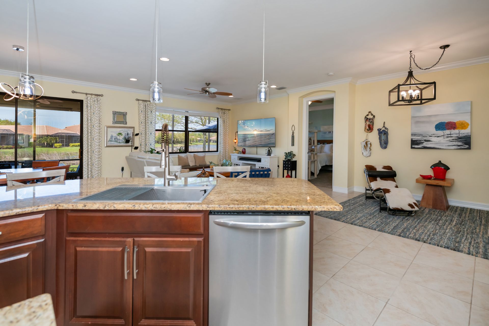 Welcome to this beautifully maintained 3-bedroom, 2-bath home in the gated picturesque community of Calusa Park in Nokomis. Ideally located adjacent to the Legacy Biking Trail and just minutes from Gulf beaches, shopping, dining, I-75, and Sarasota Memorial Hospital, this home offers both convenience and tranquility. Enjoy serene pond views and frequent wildlife sightings from the kitchen, living room, and extended screened lanai—perfect for relaxing or entertaining. With desirable western exposure, you’ll also enjoy stunning sunset views over the water. The light-filled open floor plan features tray ceilings and crown molding, creating an elegant yet comfortable living space. The kitchen is well appointed with granite countertops, upgraded stainless steel appliances, a spacious island, closet pantry, solid wood cabinetry with pull-out shelving for added functionality. A split-bedroom layout provides privacy, with the primary suite offering a custom closet, ensuite bath, and peaceful nature views. Additional updates include a new AC system installed in 2024. Calusa Park offers a maintenance-free lifestyle with a community pool, while low HOA fees include lawn care. Enjoy Florida living in a prime Nokomis location—close to everything yet peacefully tucked away. Call to schedule your viewing.