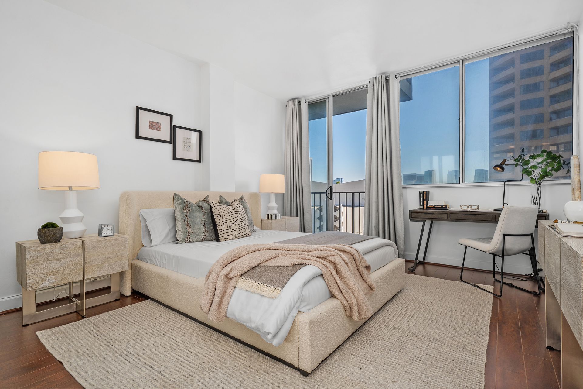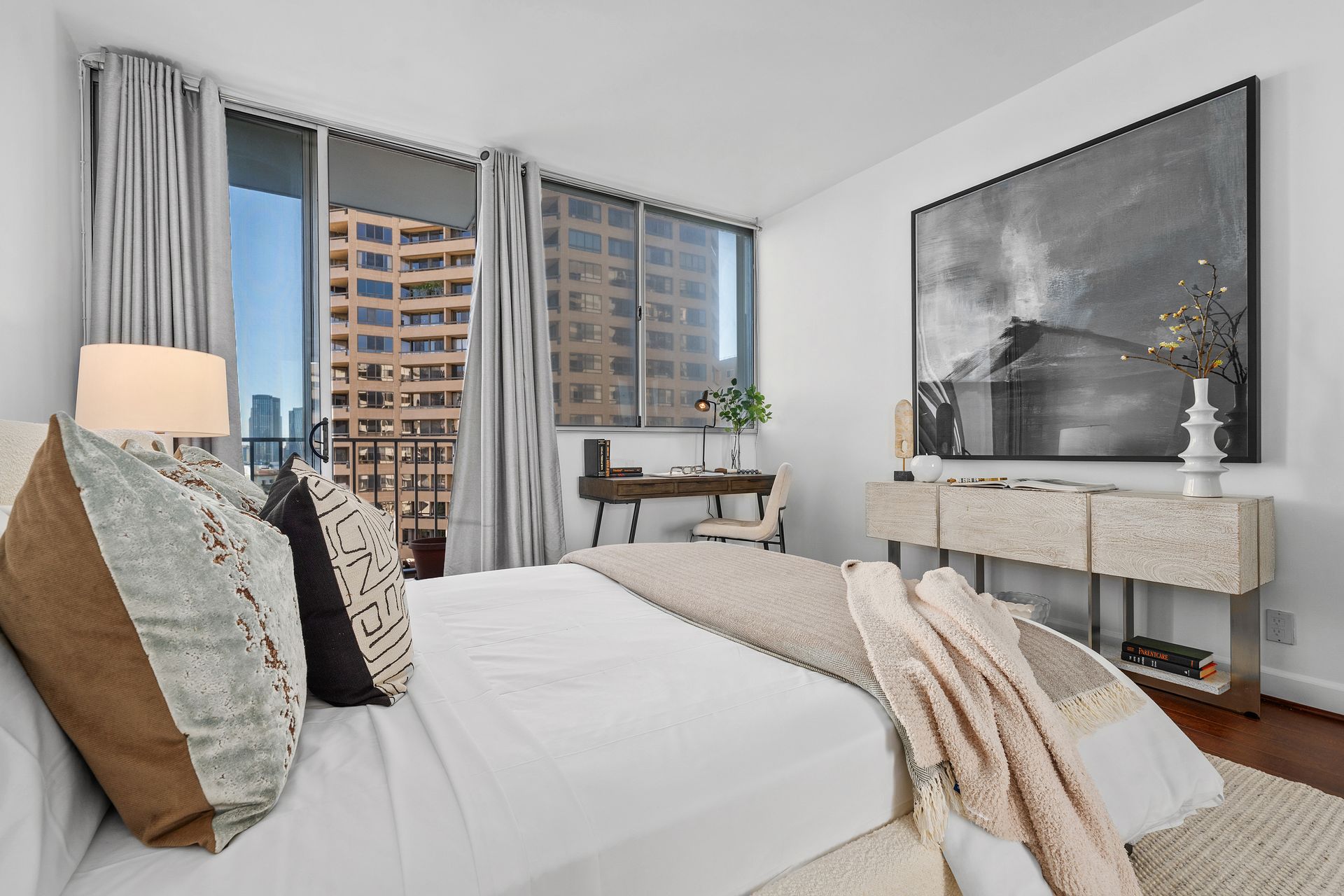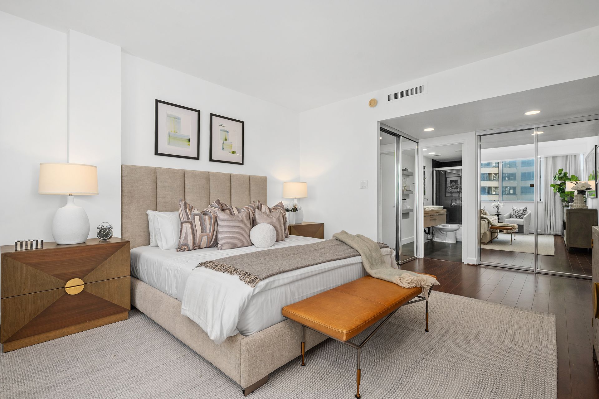 The spacious yet intimate floor plan features a large dining area and an entertainer’s kitchen thoughtfully appointed with granite countertops, stainless steel appliances, high-end designer finishes and abundant cabinet space—ideal for hosting guests or enjoying a peaceful meal at home. Both bedrooms offer generous proportions, ample closet and storage space and a true sanctuary-like experience. The primary suite is complete with custom built-ins and a beautifully updated bathroom featuring dual vanities. Residents enjoy effortless valet access off Lindbrook along with full-service amenities including a luxury lobby, doorman, concierge, pool, fitness center and 24-hour services. HOA dues include all utilities. Ideally located near Westfield Century City Mall, Holmby Park, Beverly Hills and Westwood, this exceptional residence offers the ideal blend of sophistication, comfort and convenience—a wonderful place to call home.