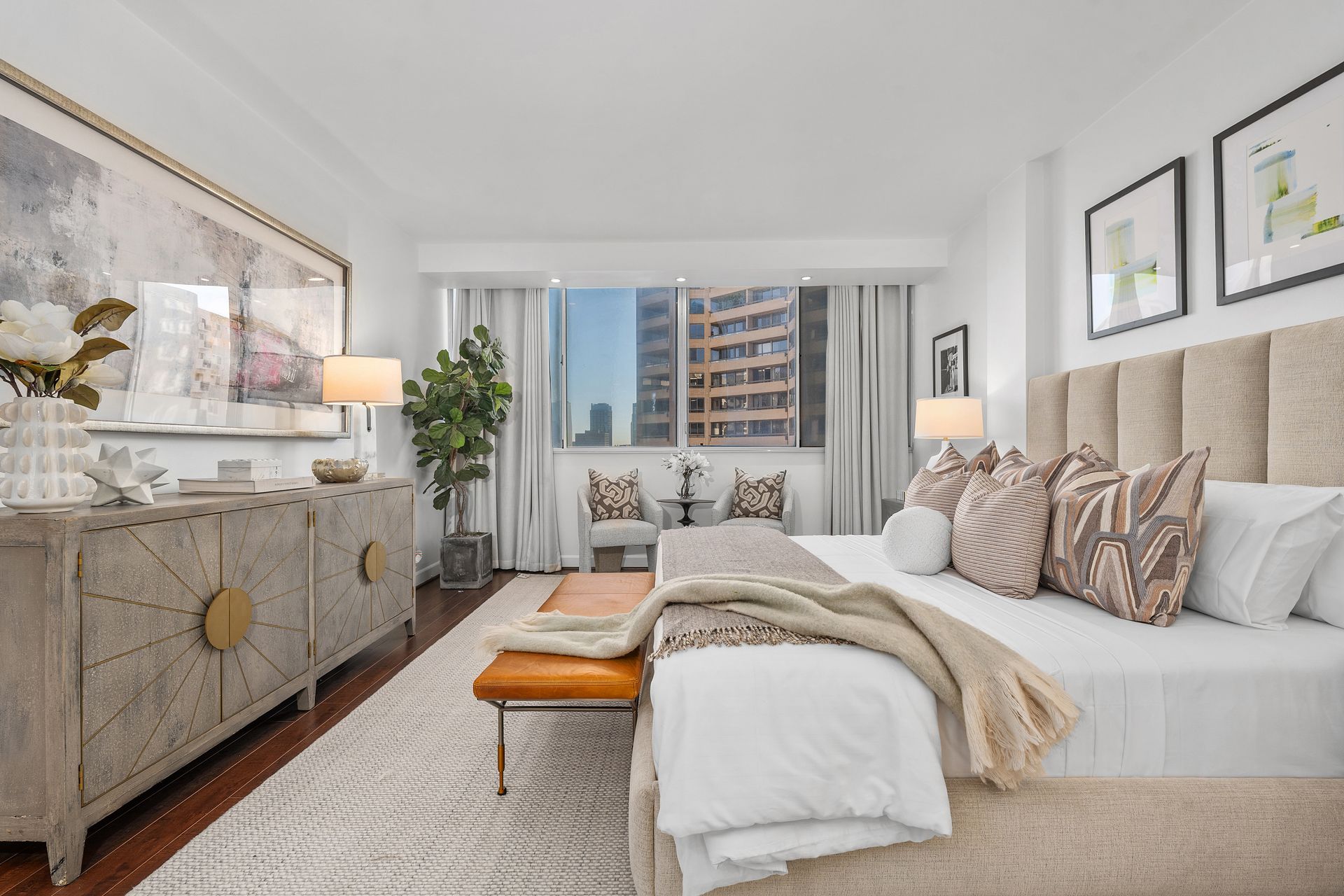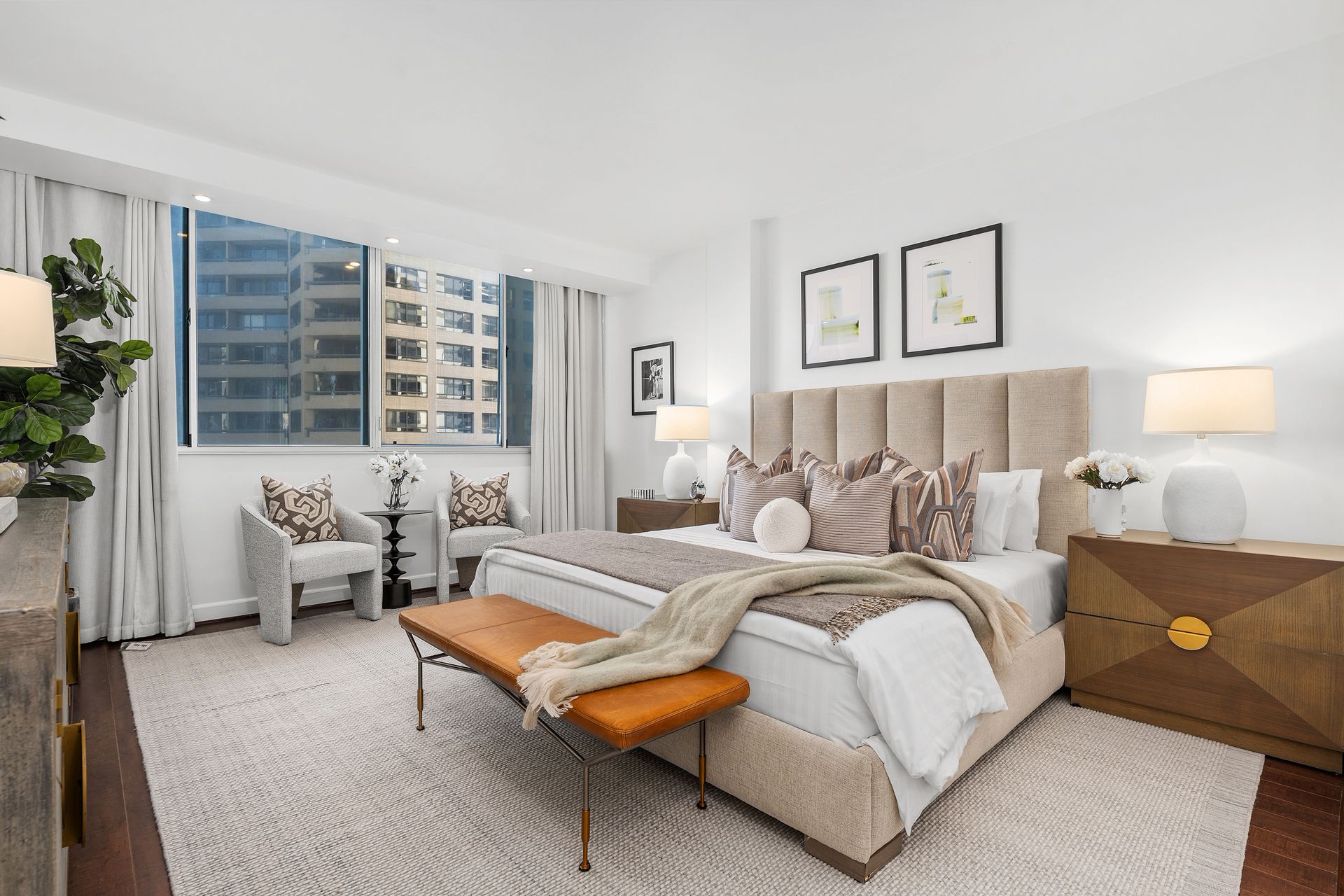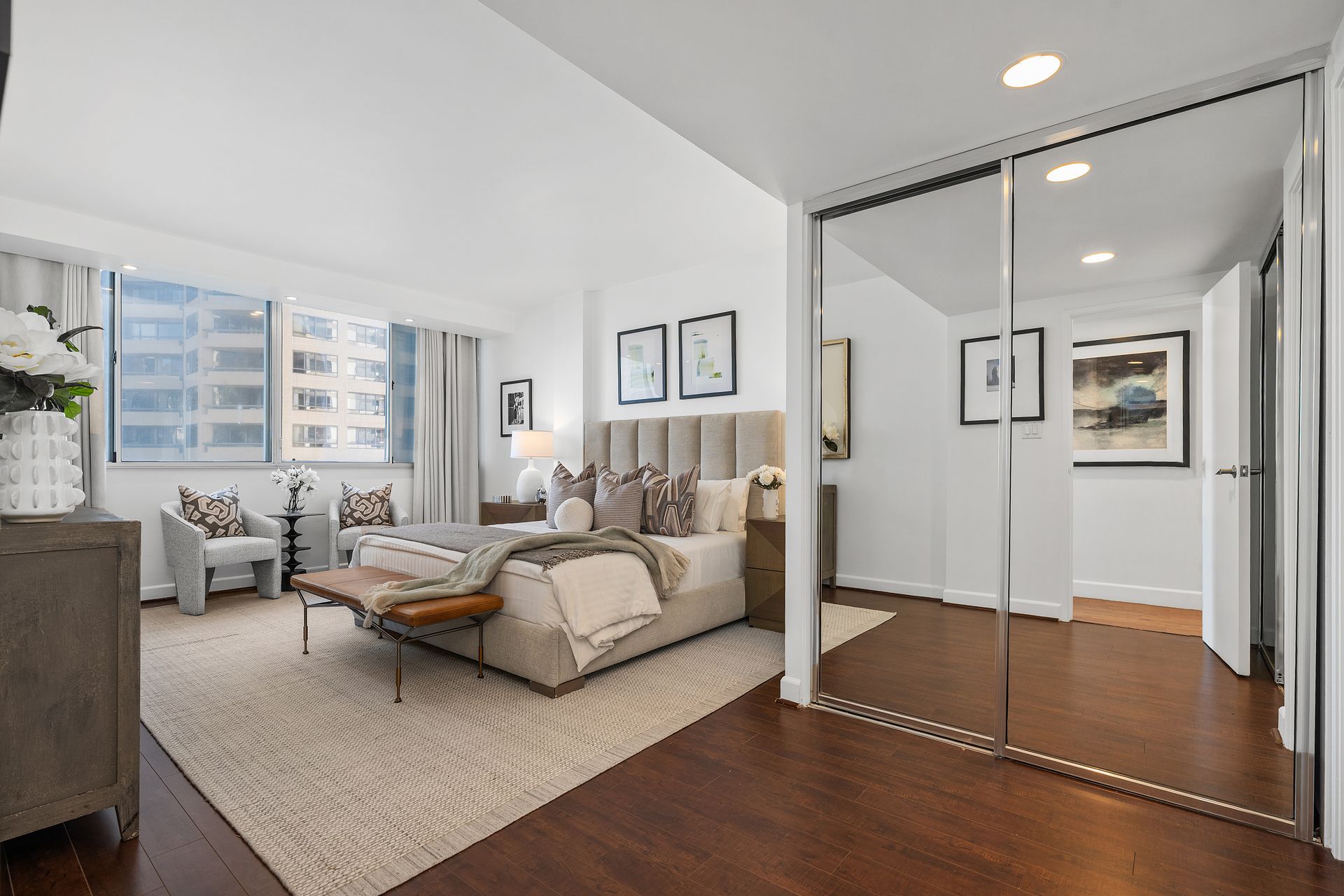 The spacious yet intimate floor plan features a large dining area and an entertainer’s kitchen thoughtfully appointed with granite countertops, stainless steel appliances, high-end designer finishes and abundant cabinet space—ideal for hosting guests or enjoying a peaceful meal at home. Both bedrooms offer generous proportions, ample closet and storage space and a true sanctuary-like experience. The primary suite is complete with custom built-ins and a beautifully updated bathroom featuring dual vanities. Residents enjoy effortless valet access off Lindbrook along with full-service amenities including a luxury lobby, doorman, concierge, pool, fitness center and 24-hour services. HOA dues include all utilities. Ideally located near Westfield Century City Mall, Holmby Park, Beverly Hills and Westwood, this exceptional residence offers the ideal blend of sophistication, comfort and convenience—a wonderful place to call home.