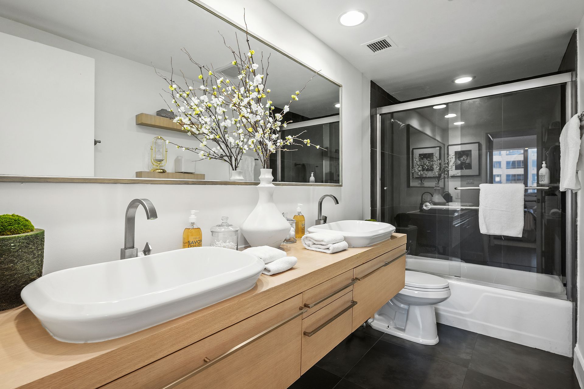 Luxury living awaits at the full-service Wilshire Holmby, where breathtaking, head-on south-facing city views capture an expansive skyscape, lush treetops and views toward Century City. Tall windows and sliding glass doors flood the home with natural light and open to expansive balconies, enhancing the bright, open feel of the living areas and second bedroom. Upon entry, you’re immediately welcomed by impressive views, soaring ceilings and a generously sized living room that sets the tone for this elegant two-bedroom, two-and-a-half-bath residence.