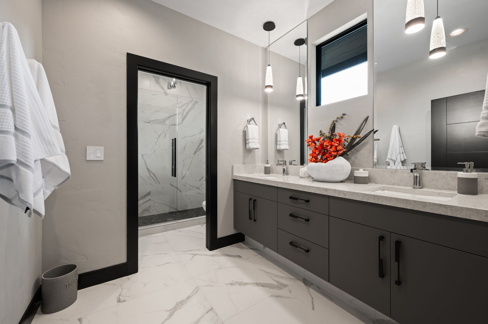 The home also offers a rare 37-foot RV garage + an extended two-car garage with epoxy floors and EV charging, and smart home technology throughout for convenience and control.