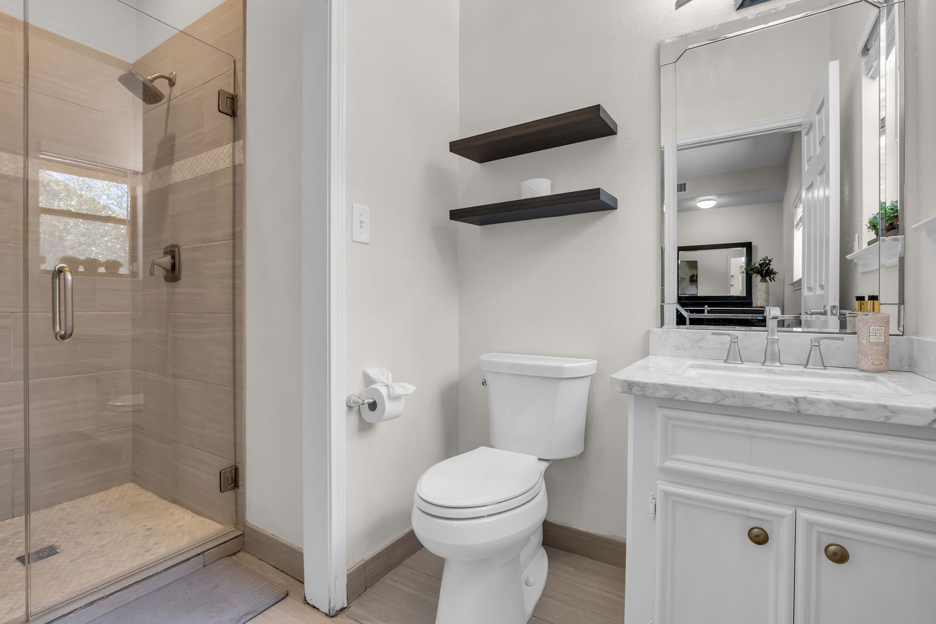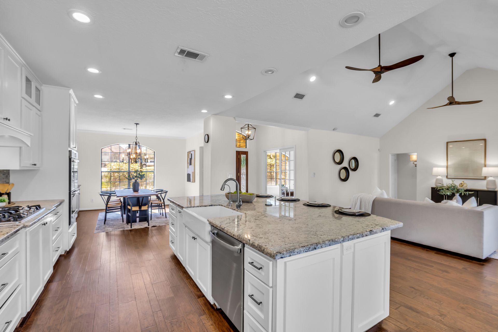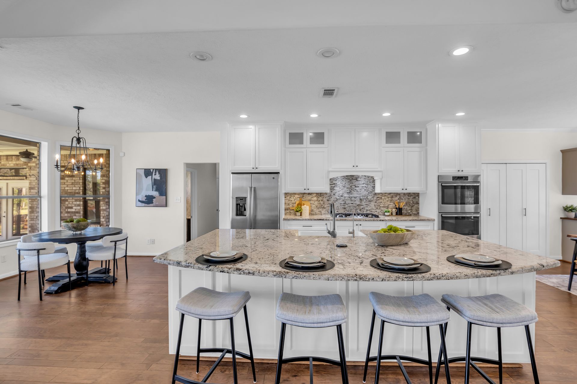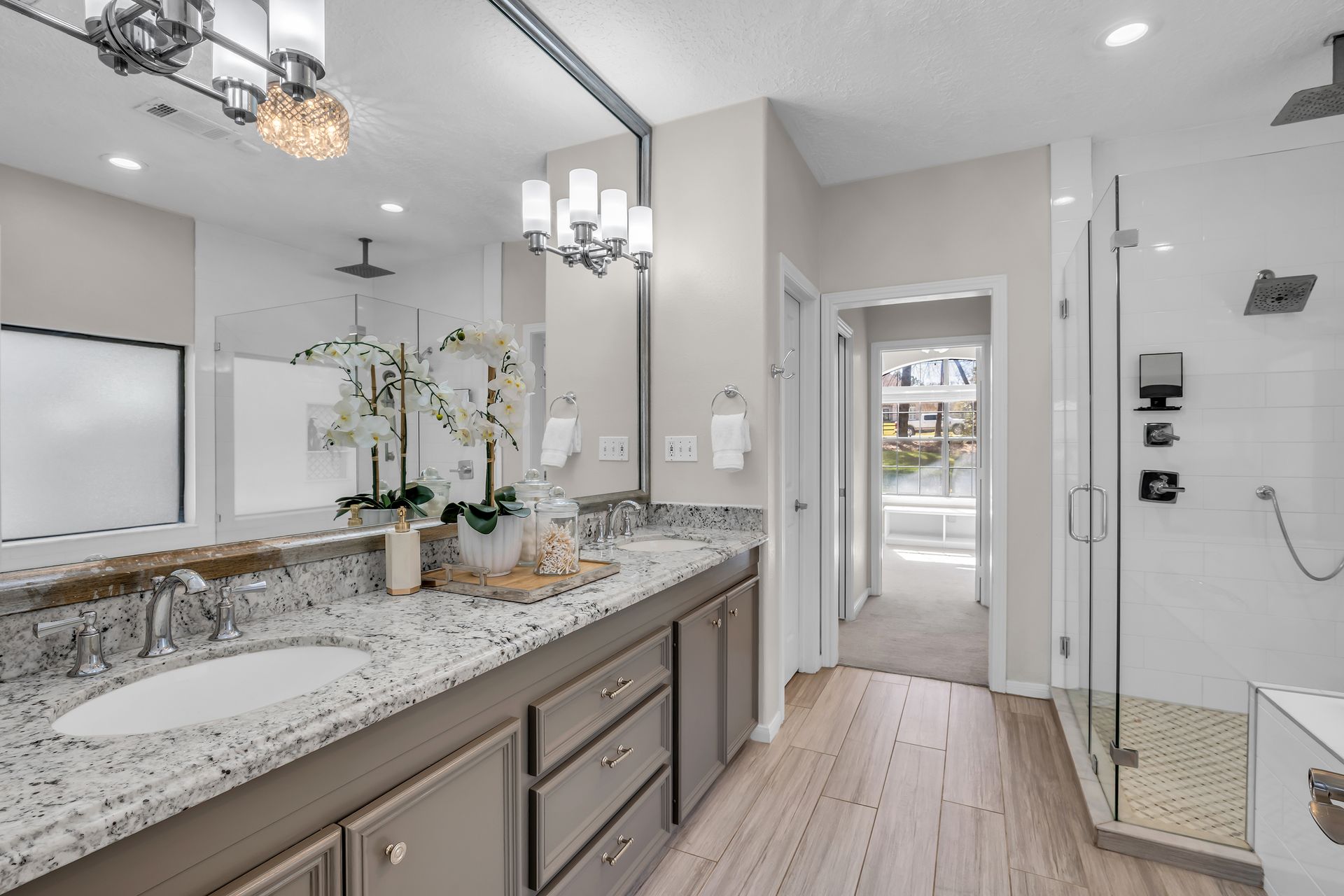 Exceptional lakefront living in Lake Windcrest. This beautifully updated seven-bedroom estate offers rare first-floor amenities, including a serene primary suite with a fireplace, custom closet, and private access to the backyard. Two additional first-floor guest suites, one ideal for multigenerational living, provides comfort and privacy. Enjoy dining spaces, a dedicated office, and a chef’s kitchen with double ovens, an oversized island with storage, a farmhouse sink, a pot filler, and a five-burner gas cooktop. Upstairs features four bedrooms, a game/flex room, and stunning views. Outdoors, relax by the pool/spa, fire pit, and tranquil lake. Additional highlights include a pool bathroom, water filtration system, central vacuum, and epoxy garage floors with extra storage. A few recent updates include all new paint on the first floor, one A/C unit (2026), one water heater (2026), new blinds downstairs (2026), updated pool equipment (2022), and a roof (2020). Located near trails, lakes, golf, and top-rated schools with easy access to The Woodlands.