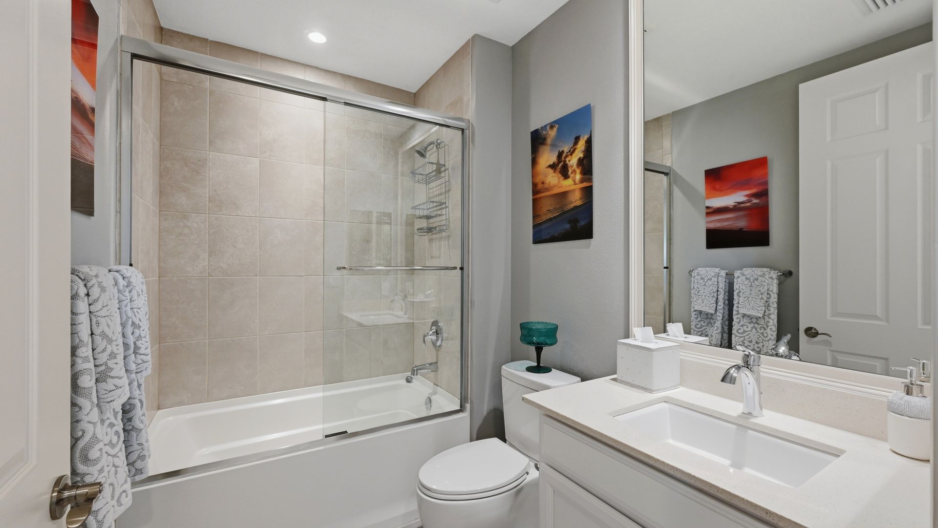 The thoughtfully designed split-bedroom floor plan provides privacy for both owners and guests. The primary suite offers direct lanai access, a walk-in closet, and an en-suite bath with dual vanities and a walk-in shower. The guest bedroom and second full bath are positioned on the opposite side, ideal for visitors or a home office.