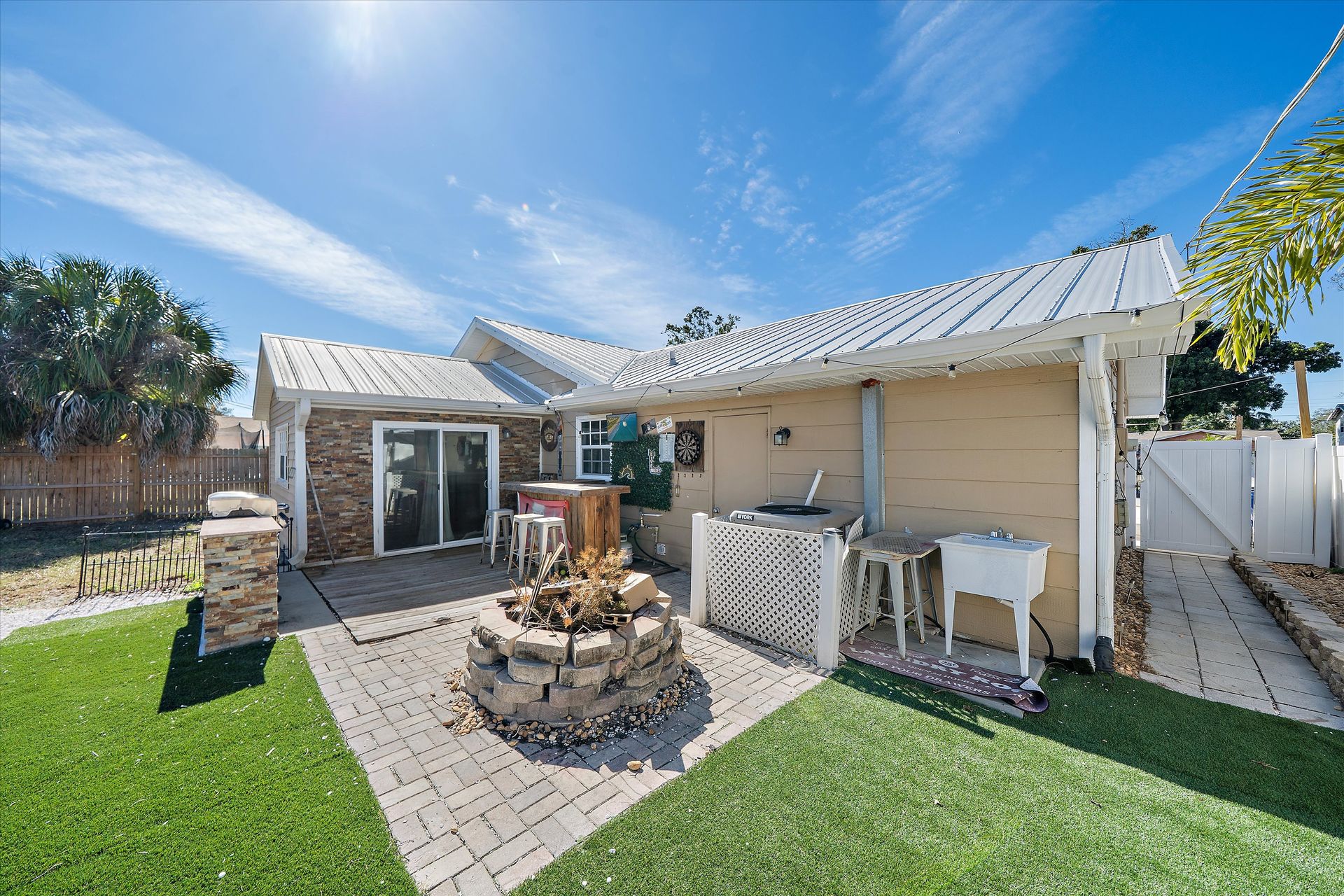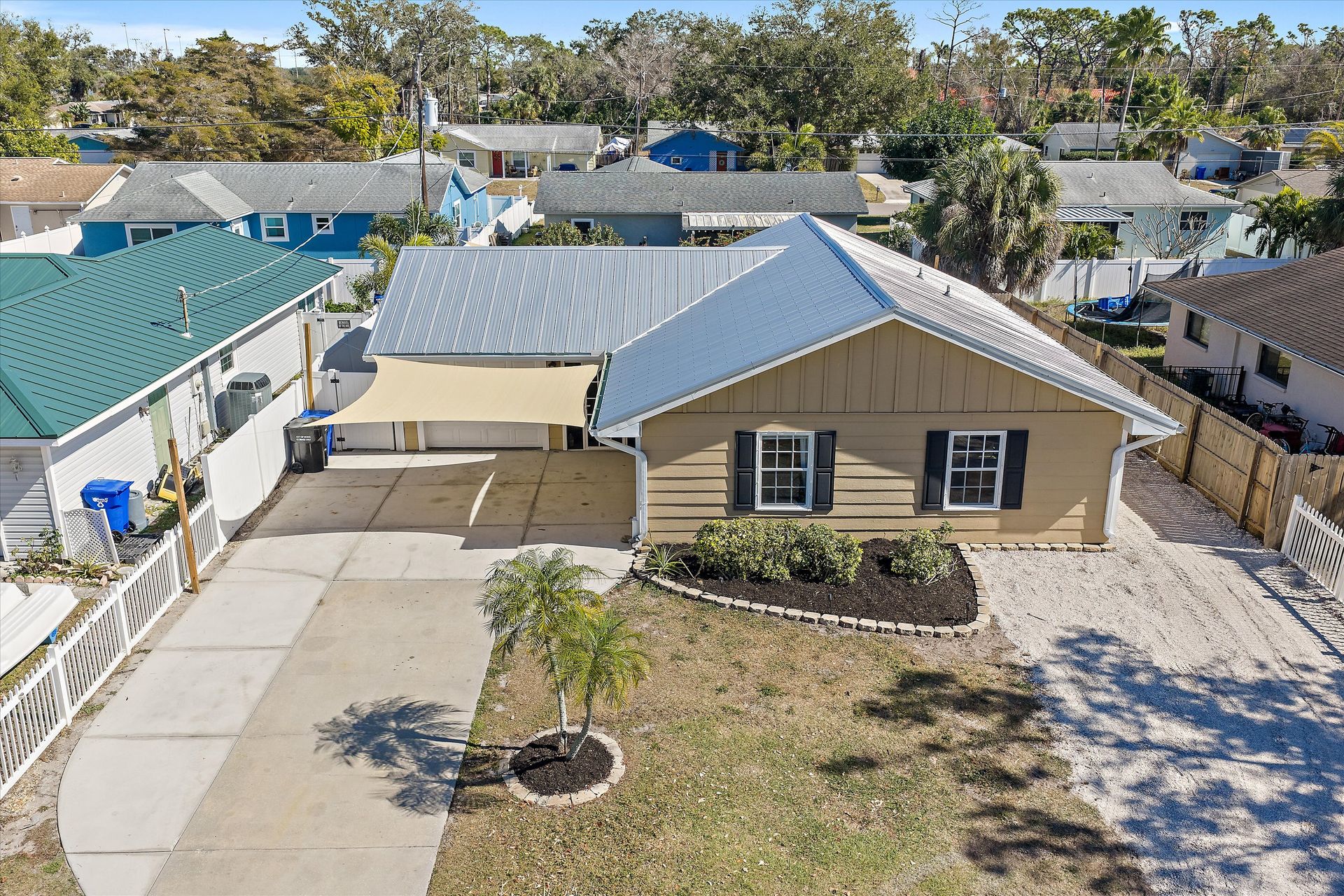 Just 2 miles from the GULF and full of possibilities! This three bedroom, two bath home is nestled in an established neighborhood with NO HOA—bring your boat & your toys and work trailer, plenty of parking. Fully fenced with a newer metal roof (2024) and located in the desirable X flood zone, this home checks all the boxes for Florida living. Inside, you’ll find a kitchen with warm wood cabinetry and a stunning island with wood inlay top and a wine rack. Notice the professionally designed custom floors in two bedrooms and good-sized bathrooms with great storage. One bedroom is currently used as an office. The bonus room could be a dining room, a gamer's den, or a hobby/playroom. The backyard offers a large patio, grilling bar, and low-maintenance yard, even a utility sink —perfect for relaxing, playing catch, or cook-outs. Minutes to beaches, the public boat launch, and quaint downtown Venice. Minutes to -I-75 access, too. A fantastic opportunity for homeowners or investors alike! HVAC replaced in 2022, windows updated, and the electrical panel updated in 2013.