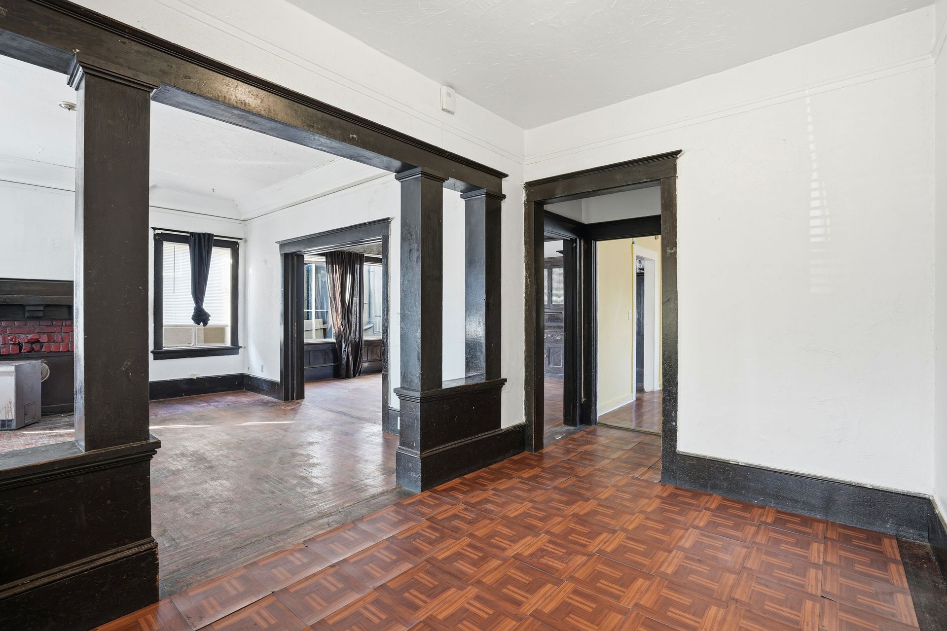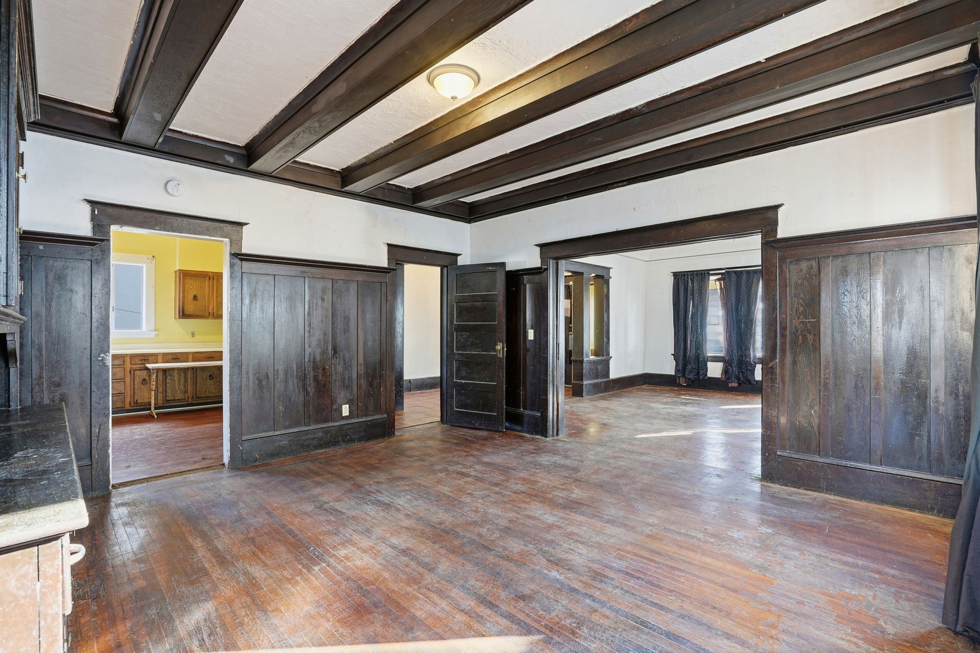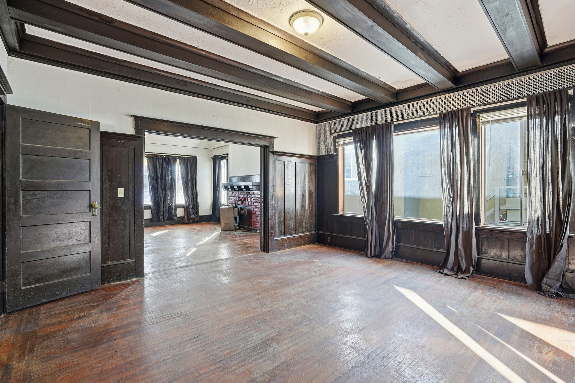 Inside, you’ll find timeless old-world charm, including beautiful box beam ceilings, original built-ins, and classic hardwood floors that speak to the home’s historic character. Both units offer generous layouts with spacious kitchens and bathrooms, large bedrooms, a comfortable living room, and a separate formal dining room, providing an inviting and functional living experience.