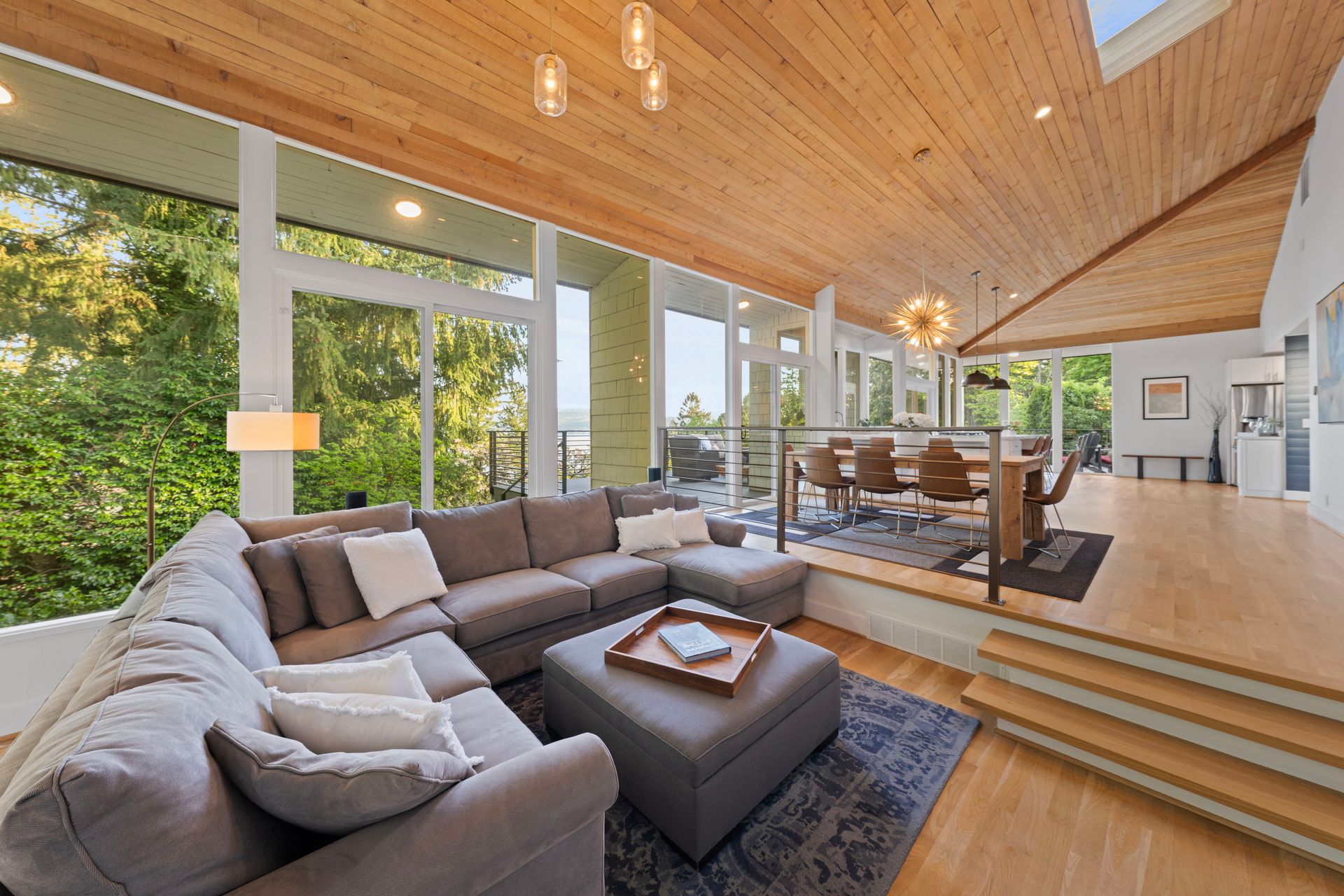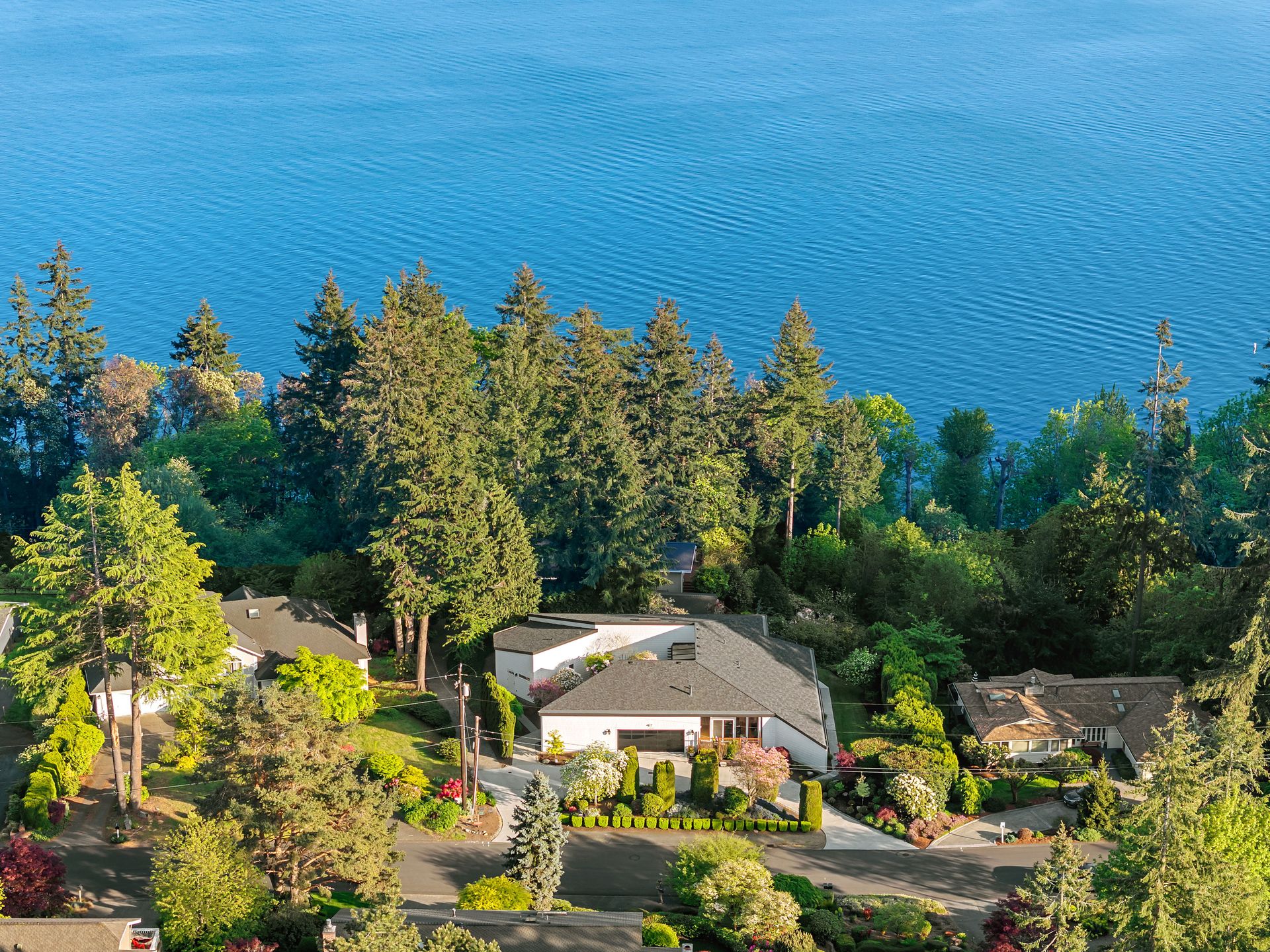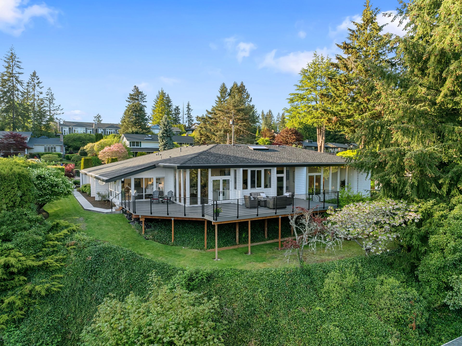 Welcome to this coastal contemporary masterpiece in Tam O’Shanter, where breathtaking views of Lake Sammamish set the stage for resort-style living. This 4-bedroom, 2.75-bathroom home seamlessly blends modern sophistication with timeless architectural flair. Soaring ceilings and gallery-style walls offer the perfect canvas for art lovers, while rich hardwood floors add warmth and luxury throughout. Two primary suites offer exceptional comfort and flexibility. Step onto the spacious deck or unwind in the private courtyard. Nestled on a quiet street with a circular driveway, this home exudes tranquility, yet moments away from Microsoft, Meta & Amazon. Fully updated and move-in ready! Enjoy exclusive amenities including a no-greens-fee golf course, seasonal pool, clubhouse with a restaurant, and a private park with tennis and pickleball. Located within the highly acclaimed Bellevue School District, this is country club living at its finest.