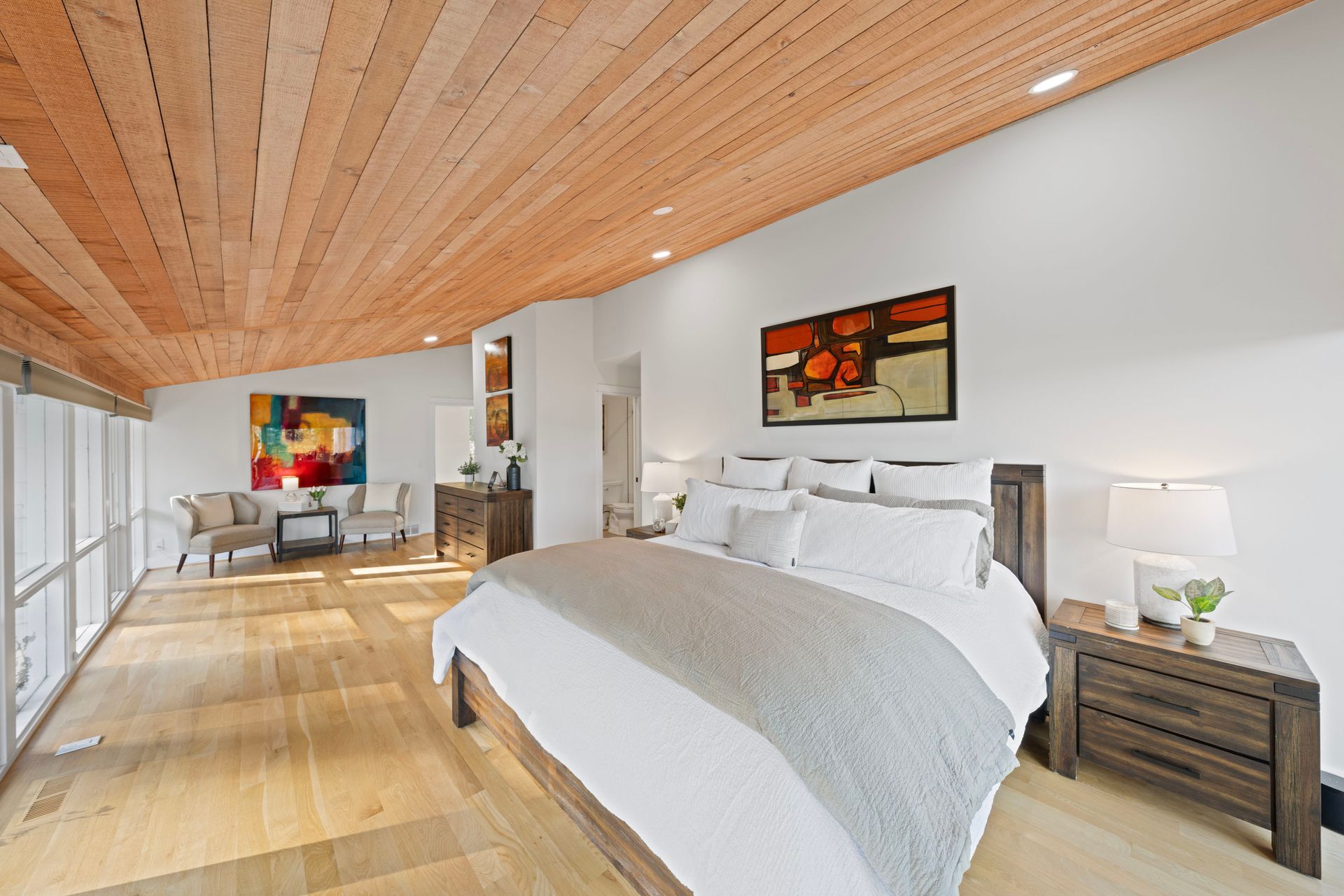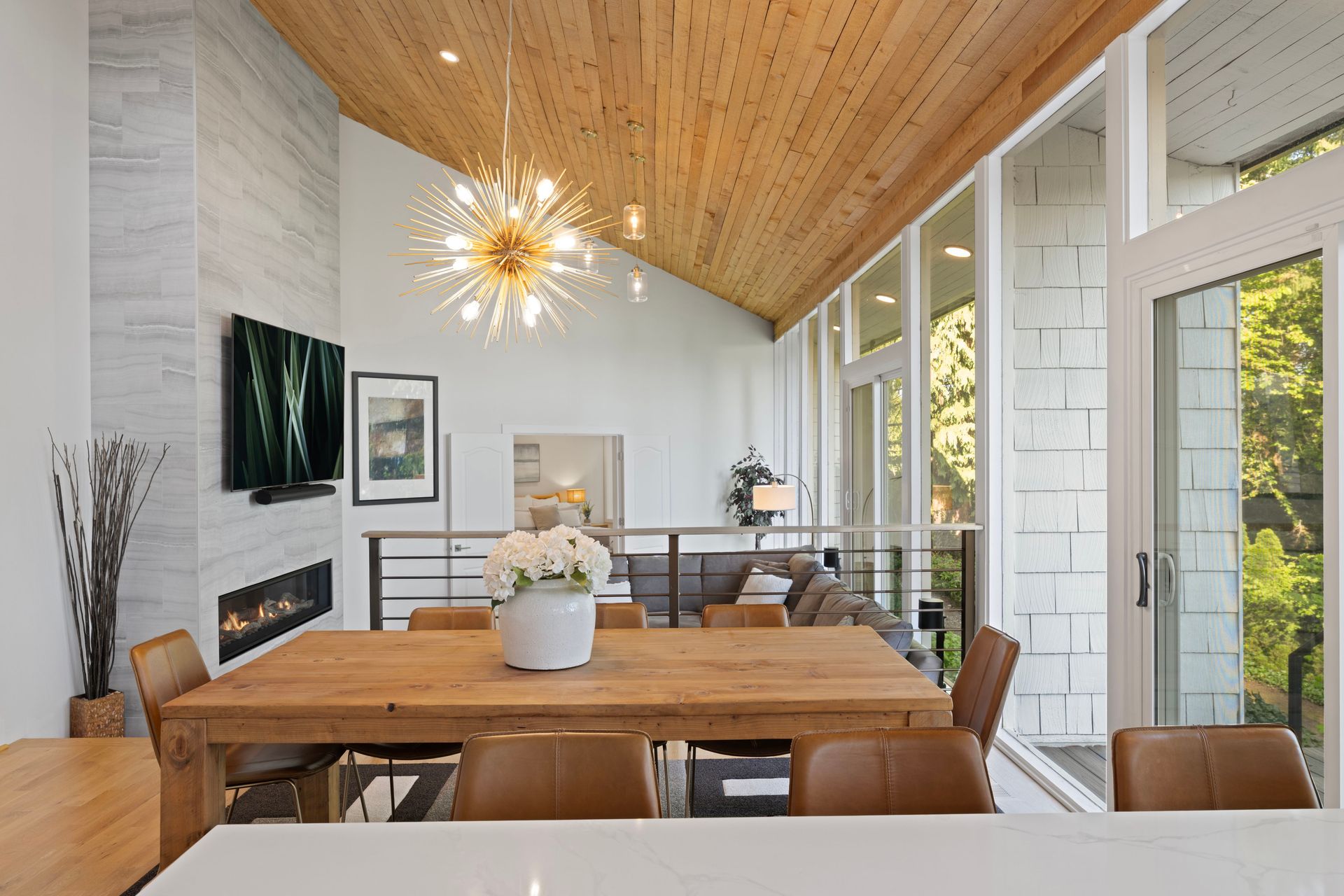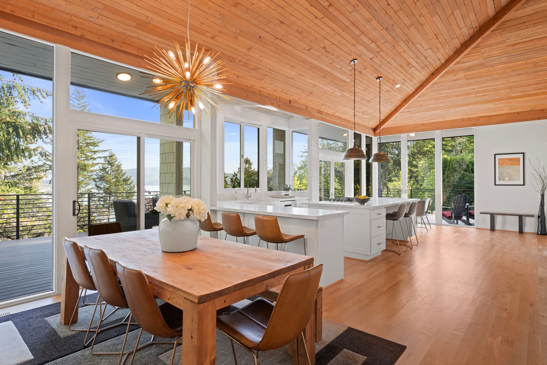 Welcome to this coastal contemporary masterpiece in Tam O’Shanter, where breathtaking views of Lake Sammamish set the stage for resort-style living. This 4-bedroom, 2.75-bathroom home seamlessly blends modern sophistication with timeless architectural flair. Soaring ceilings and gallery-style walls offer the perfect canvas for art lovers, while rich hardwood floors add warmth and luxury throughout. Two primary suites offer exceptional comfort and flexibility. Step onto the spacious deck or unwind in the private courtyard. Nestled on a quiet street with a circular driveway, this home exudes tranquility, yet moments away from Microsoft, Meta & Amazon. Fully updated and move-in ready! Enjoy exclusive amenities including a no-greens-fee golf course, seasonal pool, clubhouse with a restaurant, and a private park with tennis and pickleball. Located within the highly acclaimed Bellevue School District, this is country club living at its finest.