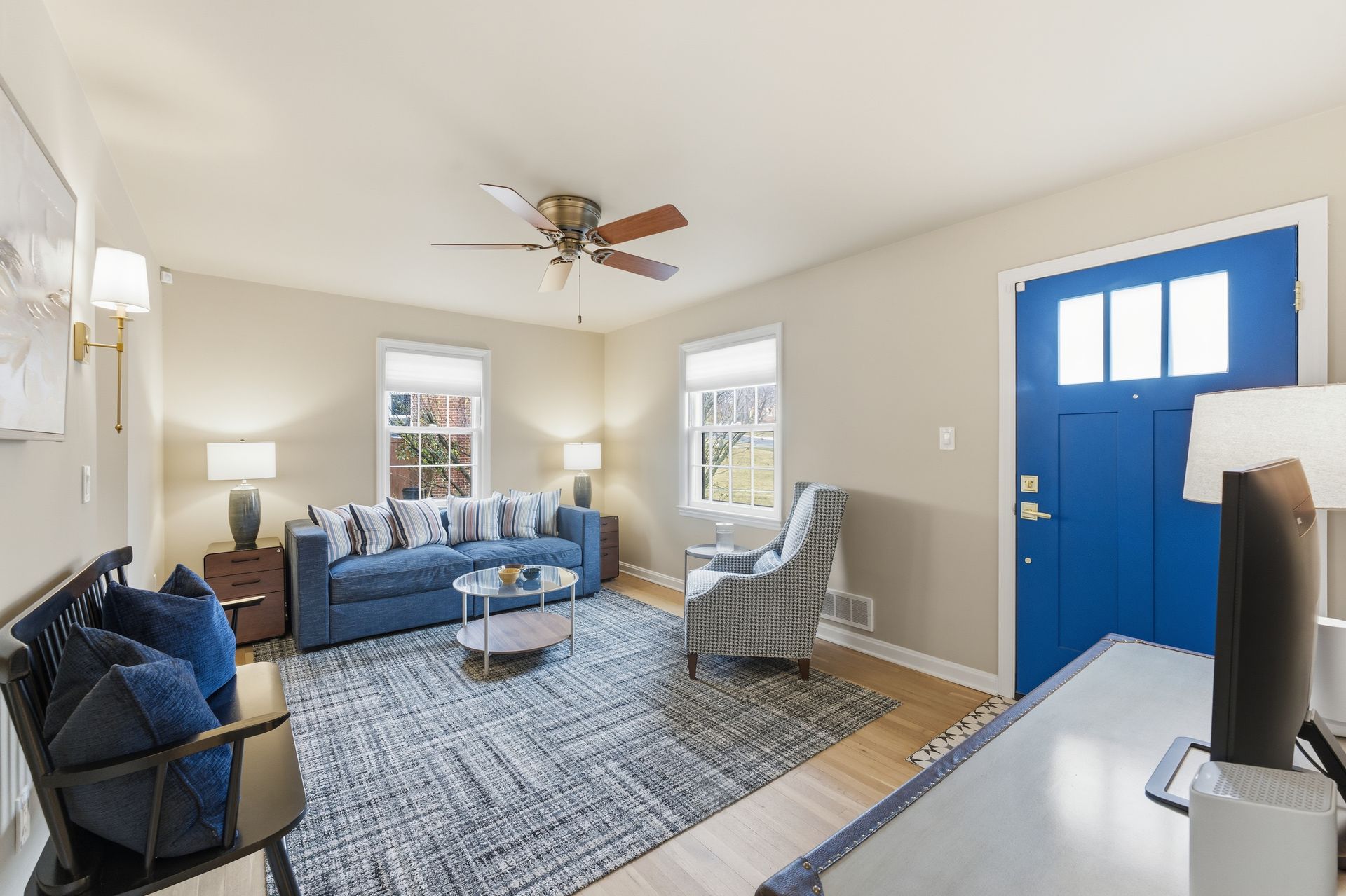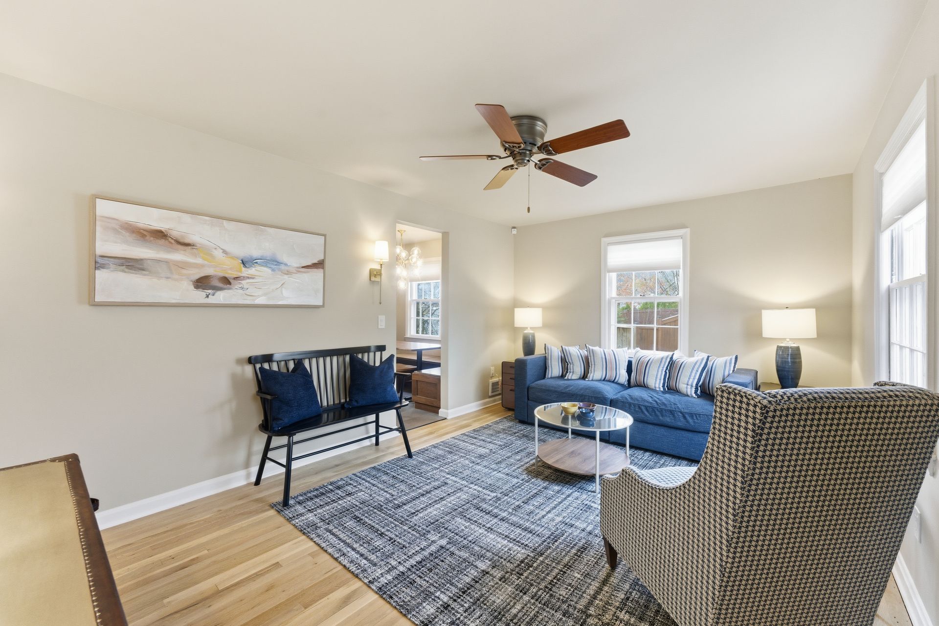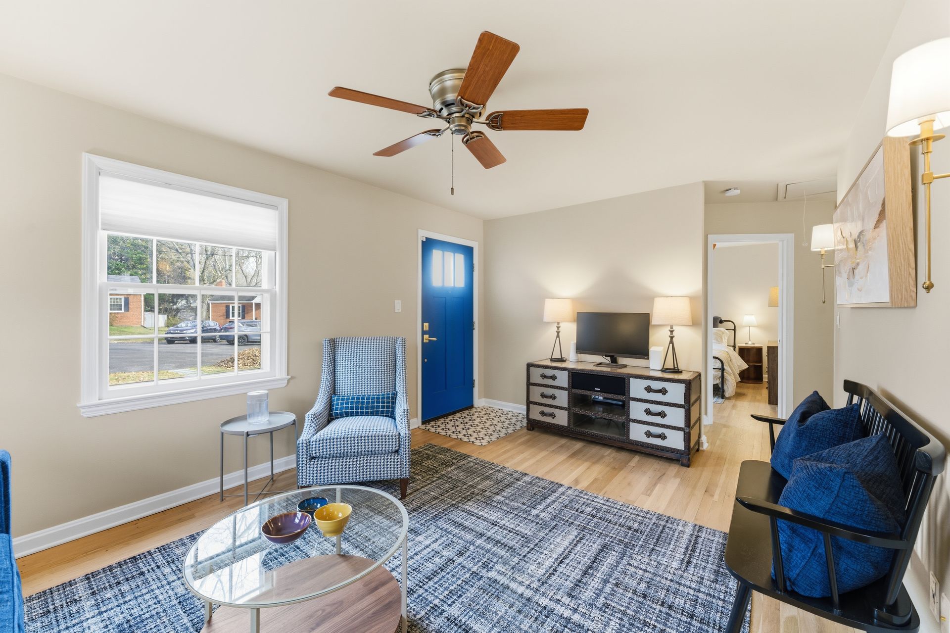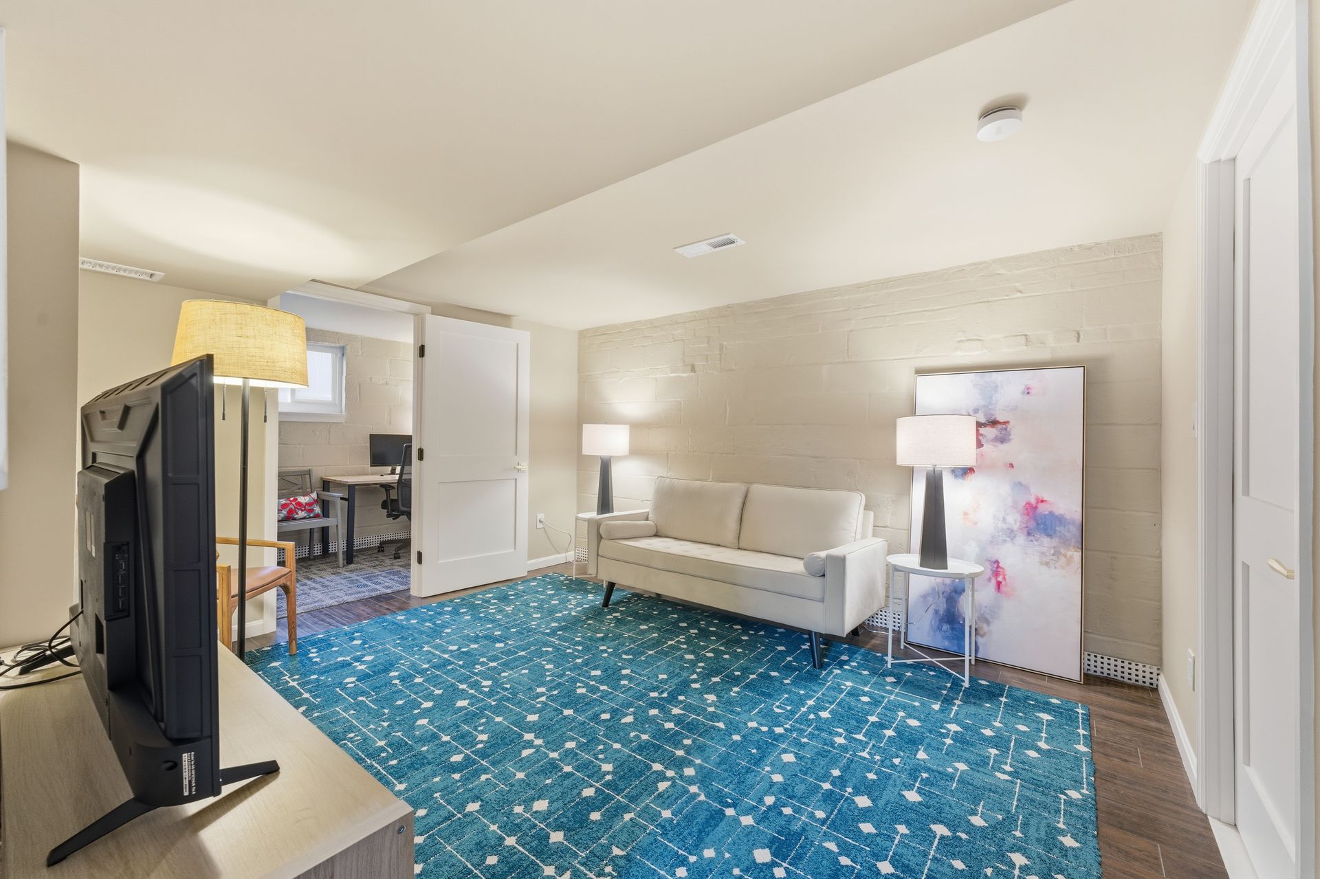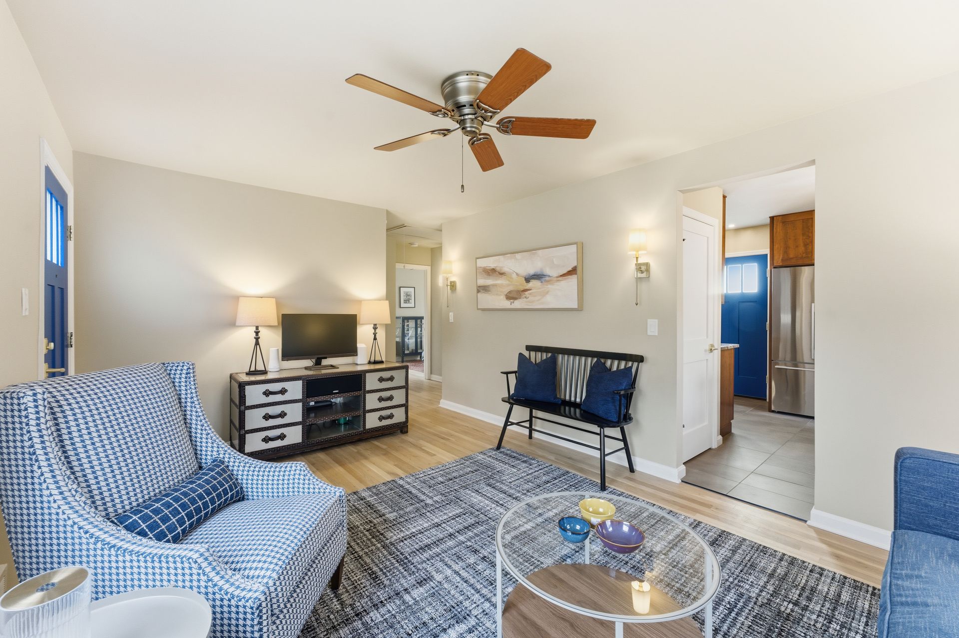 The main level offers two well-appointed bedrooms, a designer-renovated full bath, and a stylishly updated kitchen with abundant storage and contemporary finishes. A bright and welcoming living room sets the stage for the refined updates and attention to detail found throughout the home.