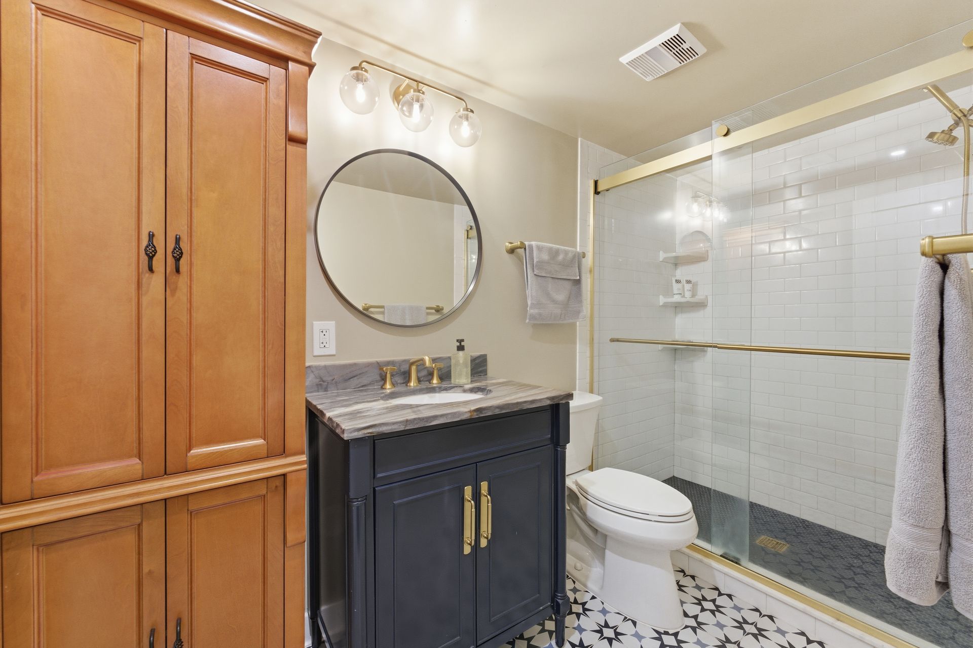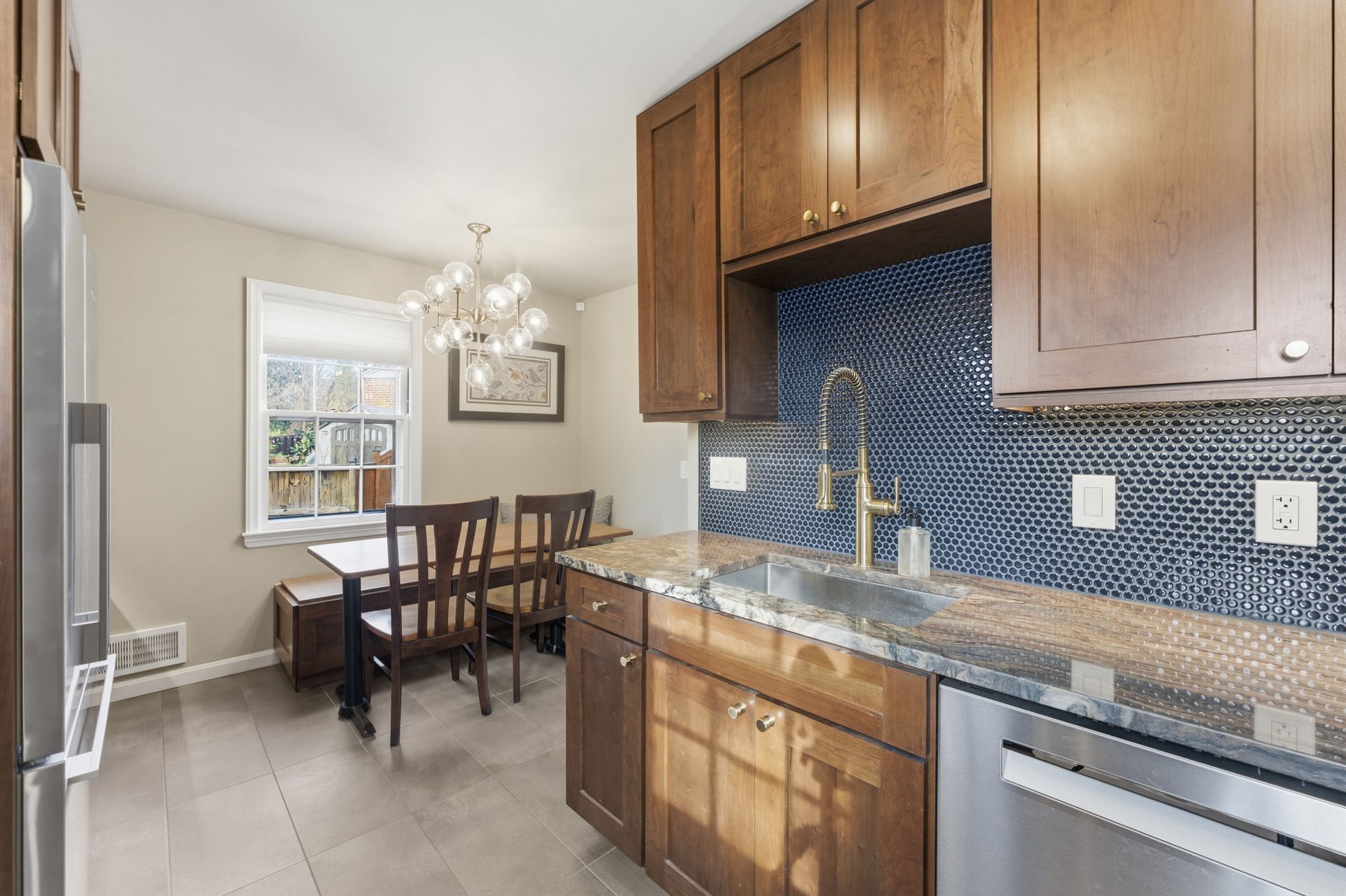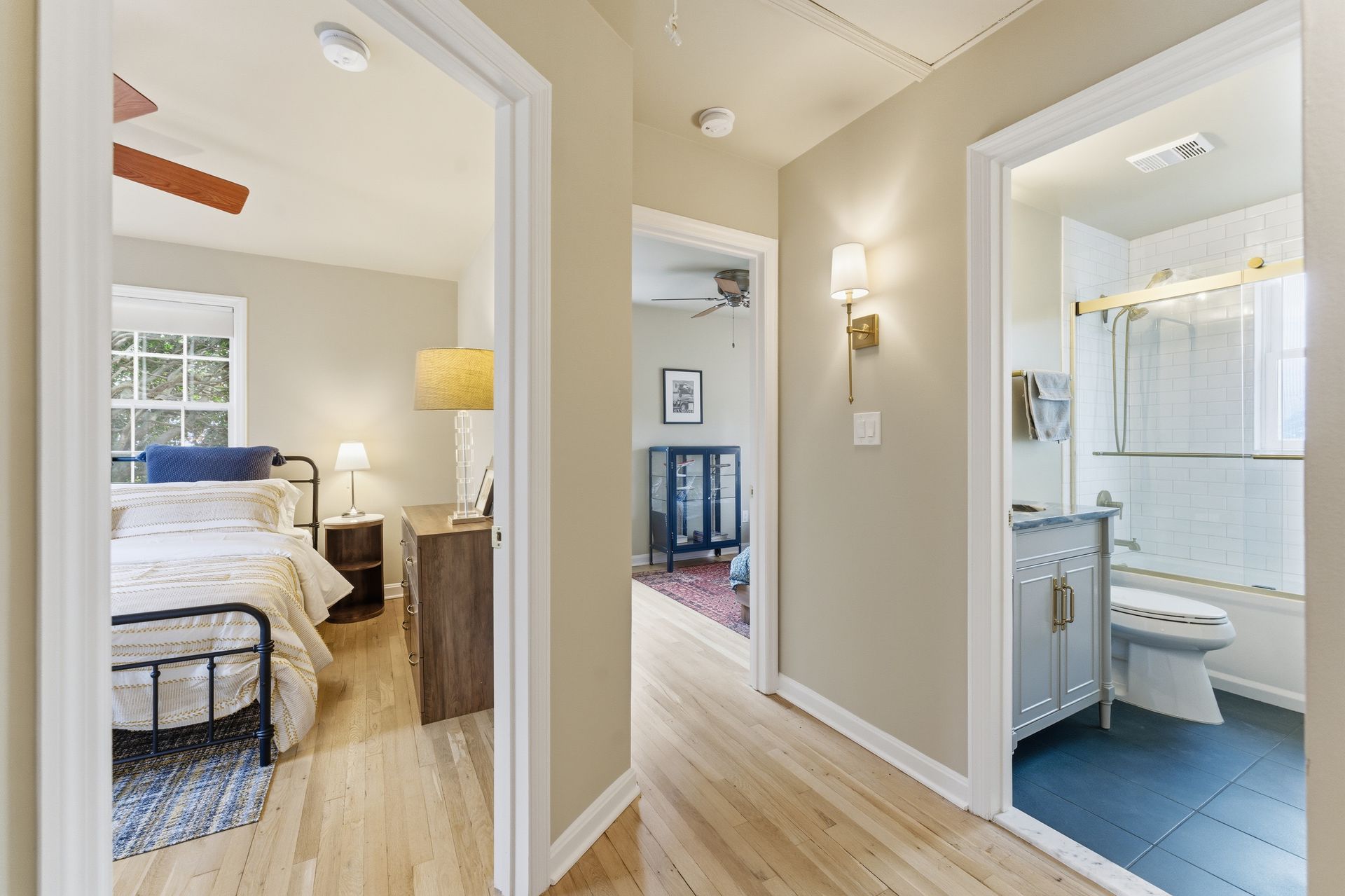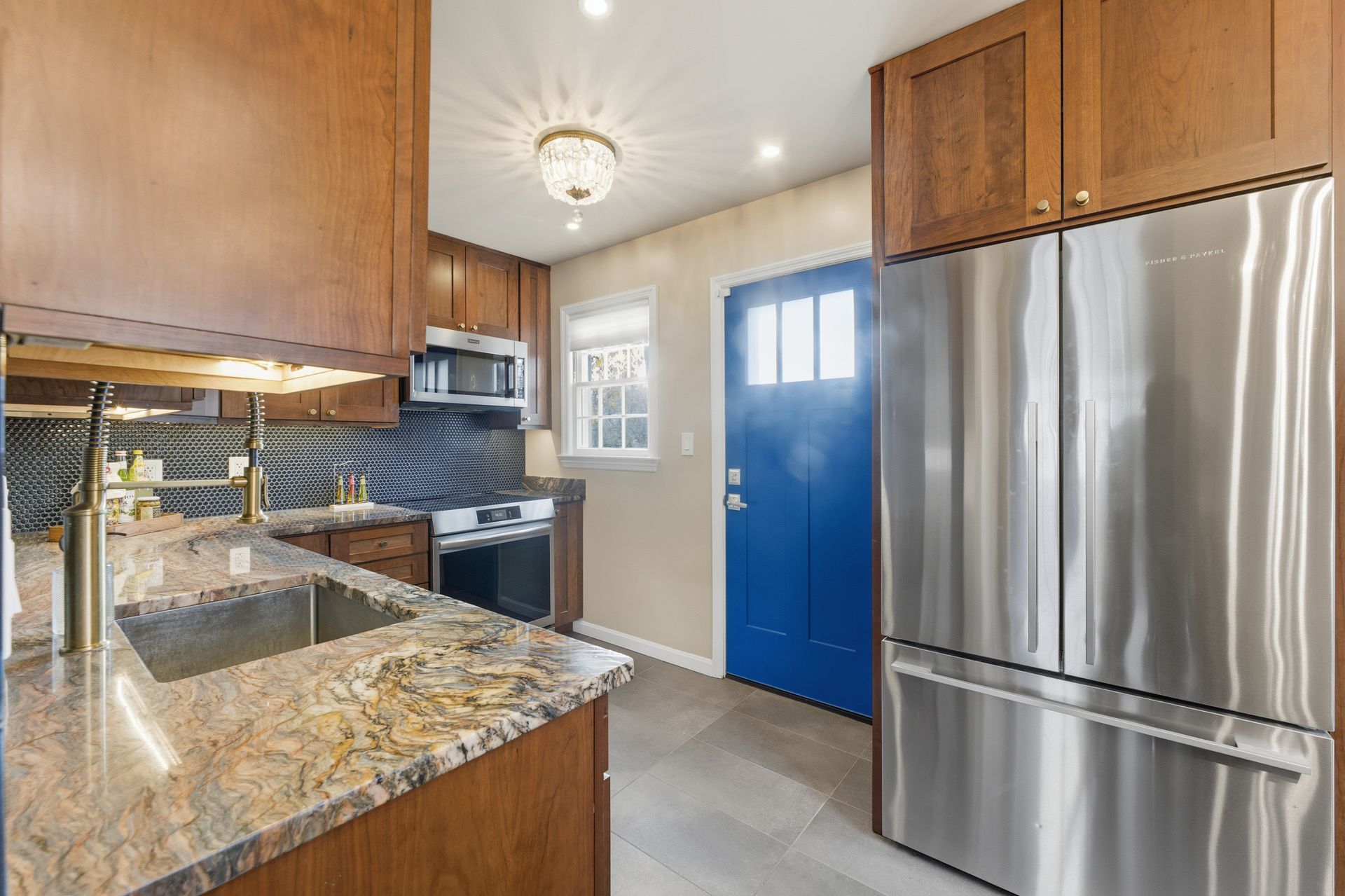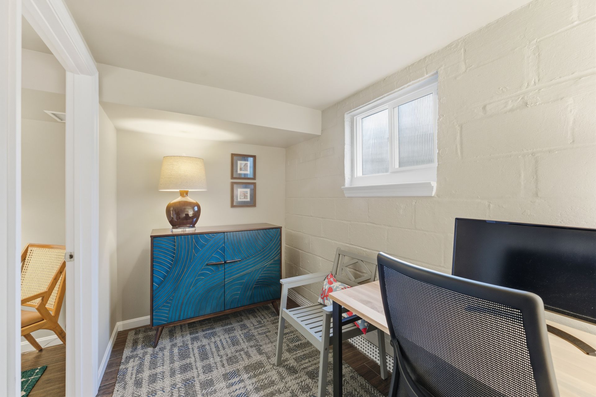 The main level offers two well-appointed bedrooms, a designer-renovated full bath, and a stylishly updated kitchen with abundant storage and contemporary finishes. A bright and welcoming living room sets the stage for the refined updates and attention to detail found throughout the home.