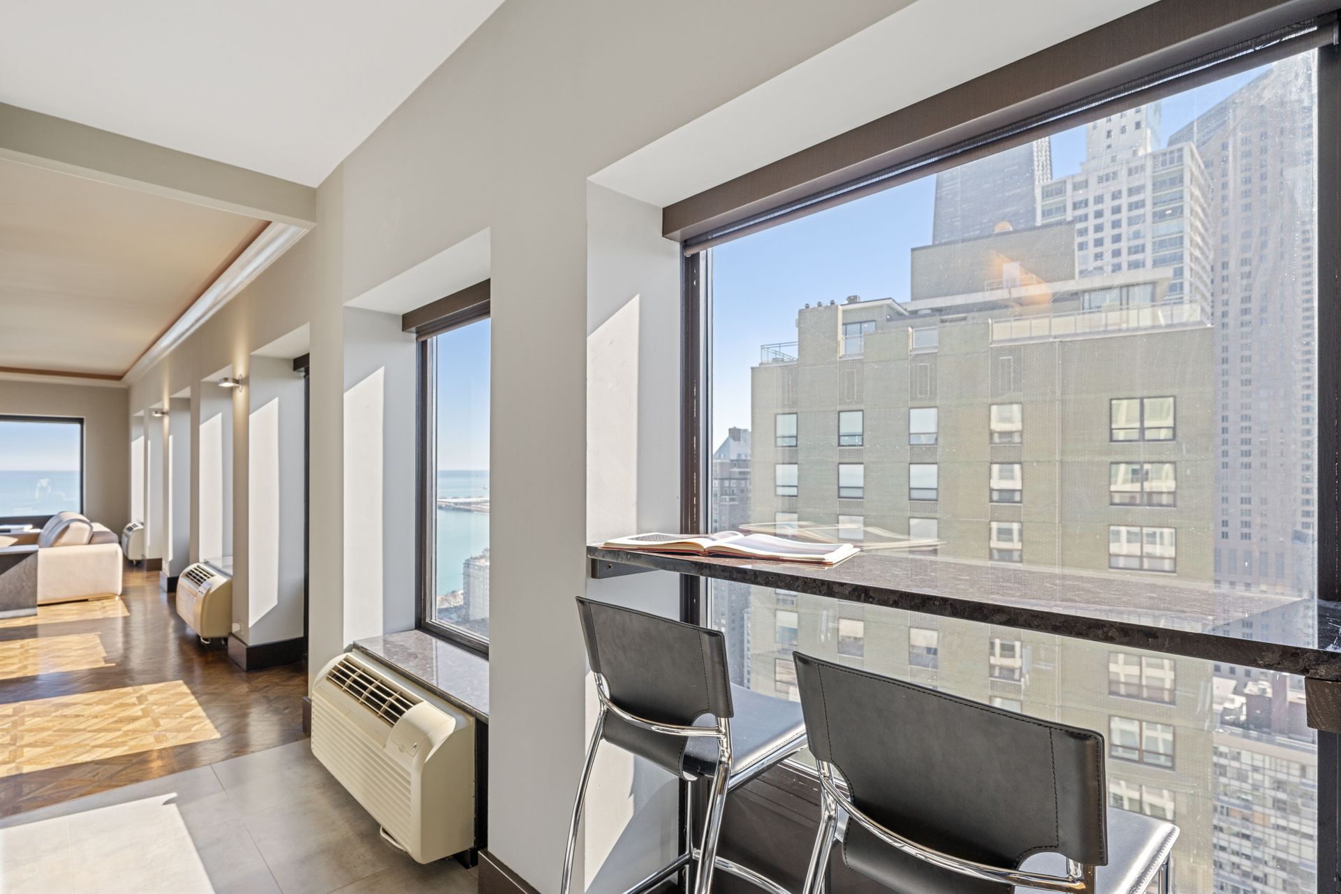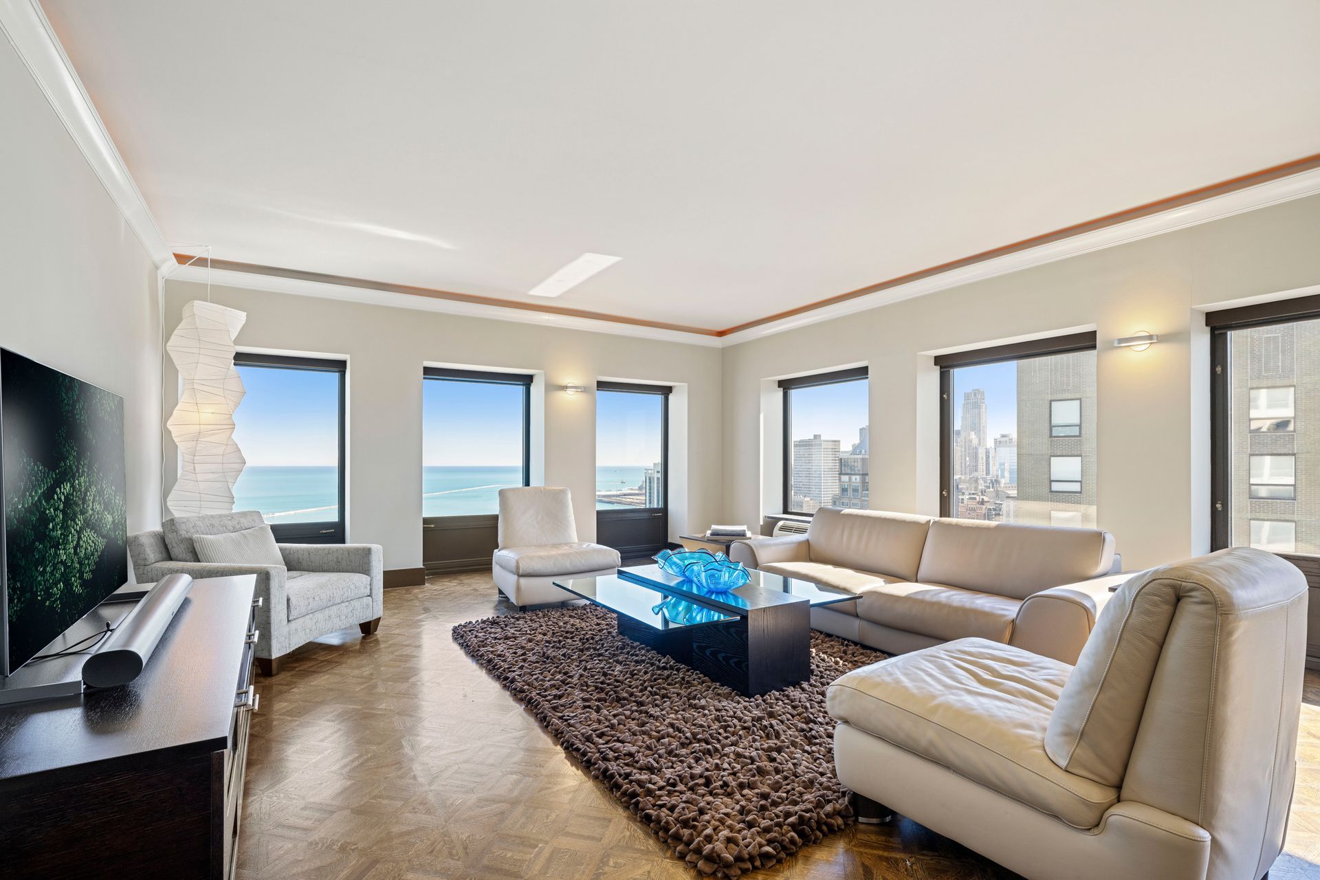 Elegance and tranquility define this two-bedroom-plus-den urban retreat, featuring breathtaking lake and city views. Located on prestigious Lake Shore Drive, steps from Michigan Avenue in the historic Gold Coast, this corner unit offers refined, easy living.