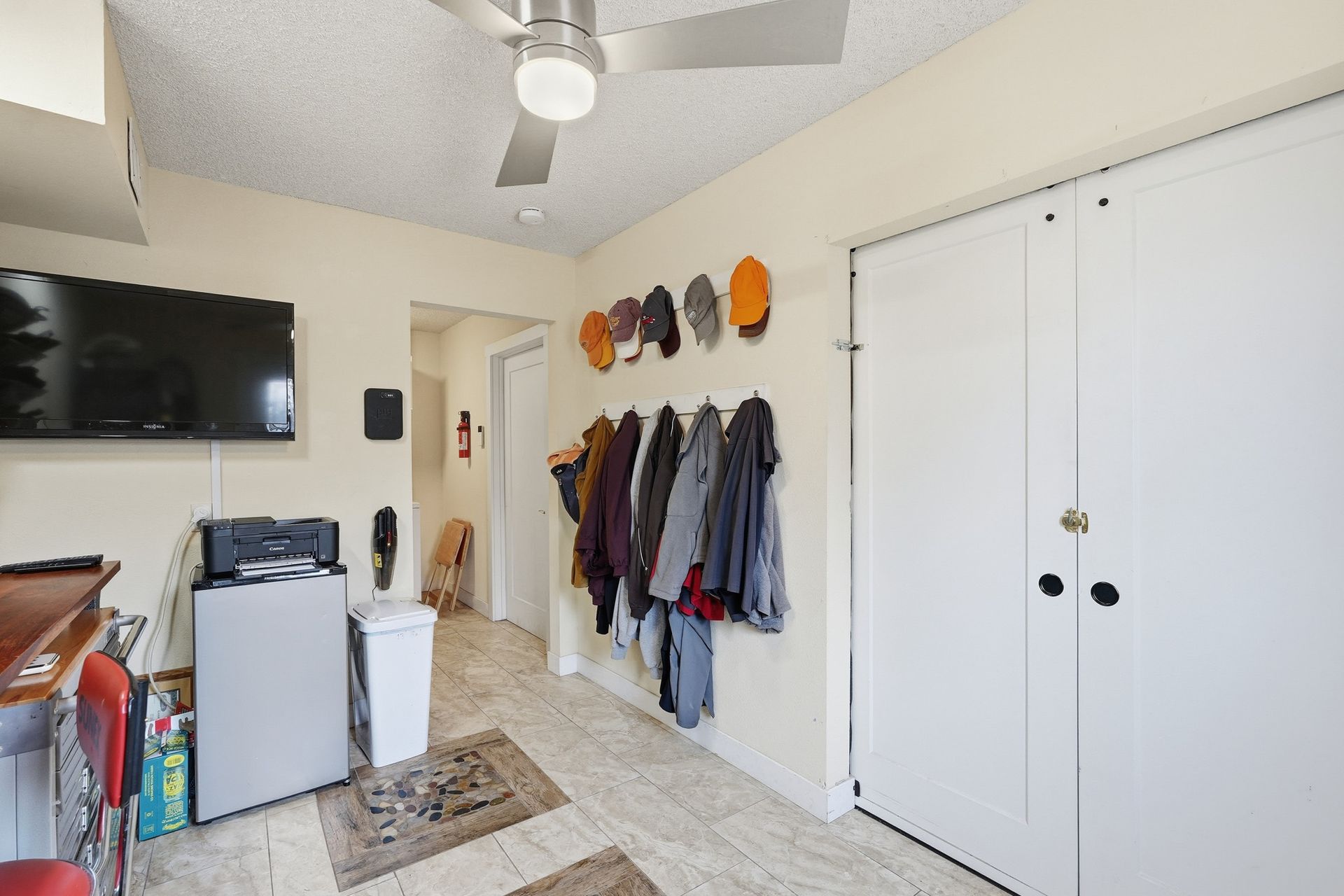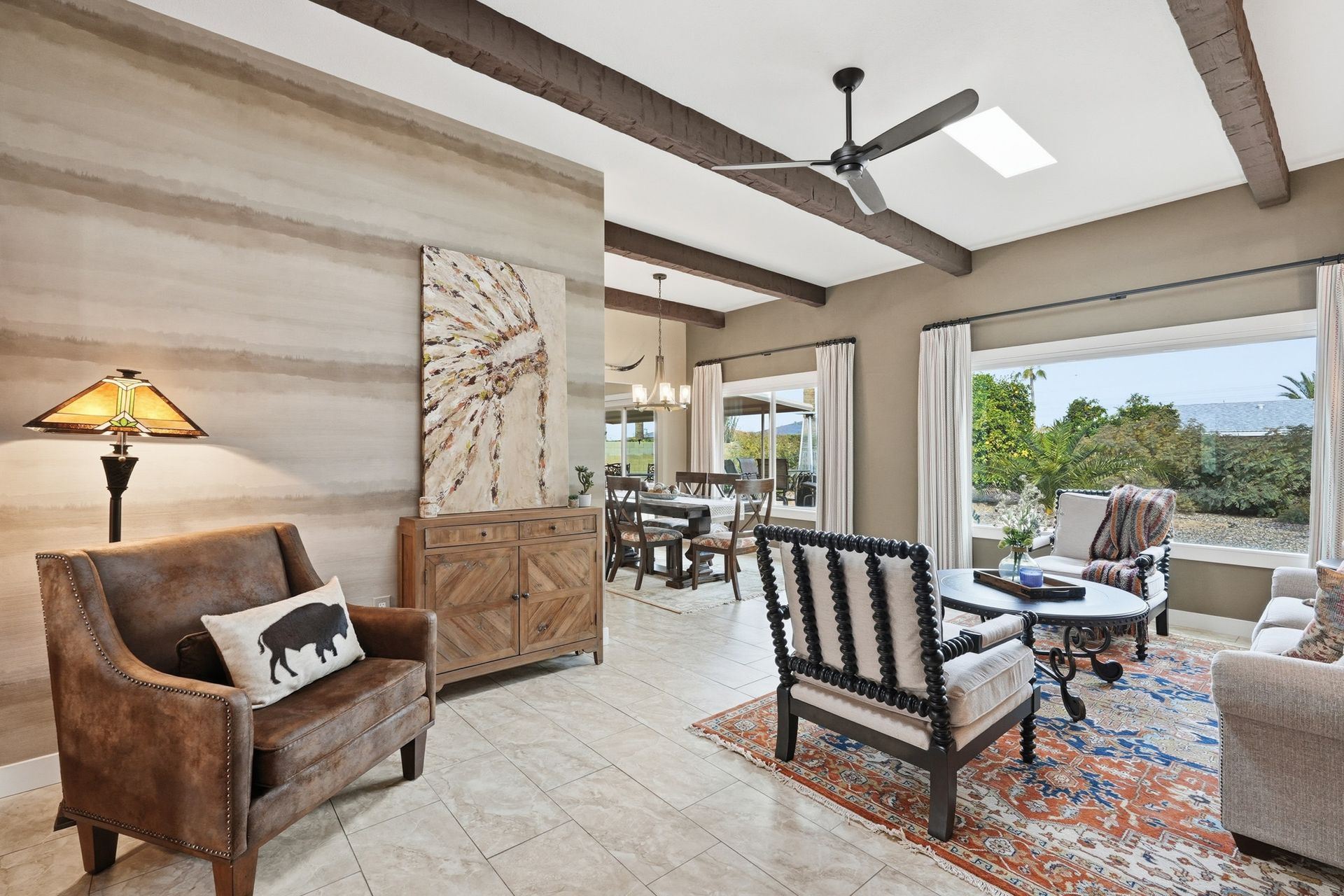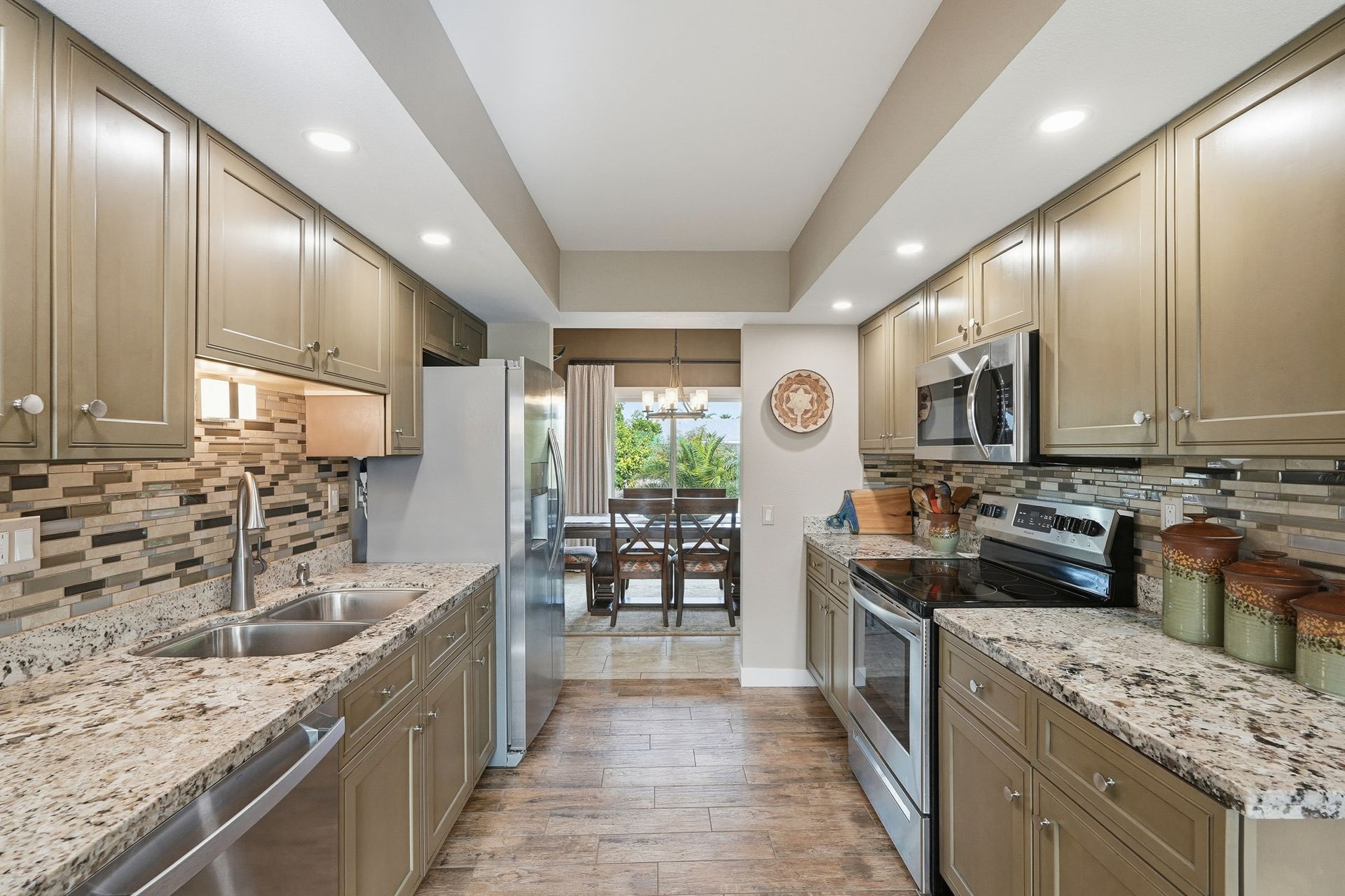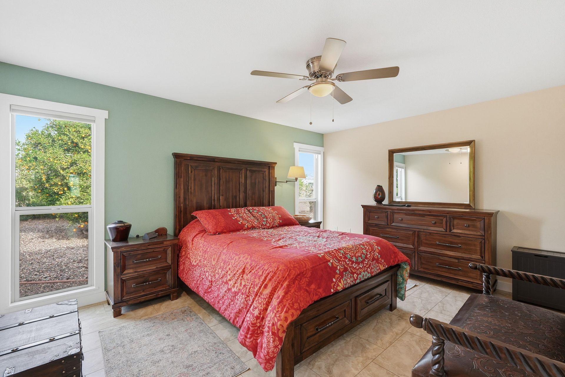 This immaculately maintained two-bedroom, two-bath home boasts approximately 1,600 square feet of living space with an extended garage/workshop on a large private lot. The interior features custom curtains and blinds, and new interior paint applied in 2021. This home has been tastefully updated throughout, including a new garage door, custom front lighting, and a custom front door and interior door. The primary bedroom and bath have been thoughtfully designed with dual sinks and a tile and stone walk-in shower. The additional bedroom has a Murphy bed and a second updated bathroom for guests. The backyard is a true oasis, featuring a stamped concrete-covered patio that is perfect for outdoor relaxation and entertainment. The property also includes several fruit trees, including an Arizona Sweet Orange tree, a pomegranate tree, a pink grapefruit tree, and a variegated pink lemon tree, adding to the lush and natural ambiance. For added security and convenience, the home is equipped with an owned security system. Other updates include stainless steel appliances, recessed kitchen lighting, a new A/C unit installed in 2022, and a new roof in 2021, ensuring energy-efficiency and well-maintained comfort. This property offers a wonderful opportunity to enjoy a comfortable and updated living experience located near stores, hospitals, and much, much more. Sun City has seven recreation centers that include golf, recreation, swimming, sports, arts/crafts, and numerous clubs to keep you engaged year-round. Welcome Home!