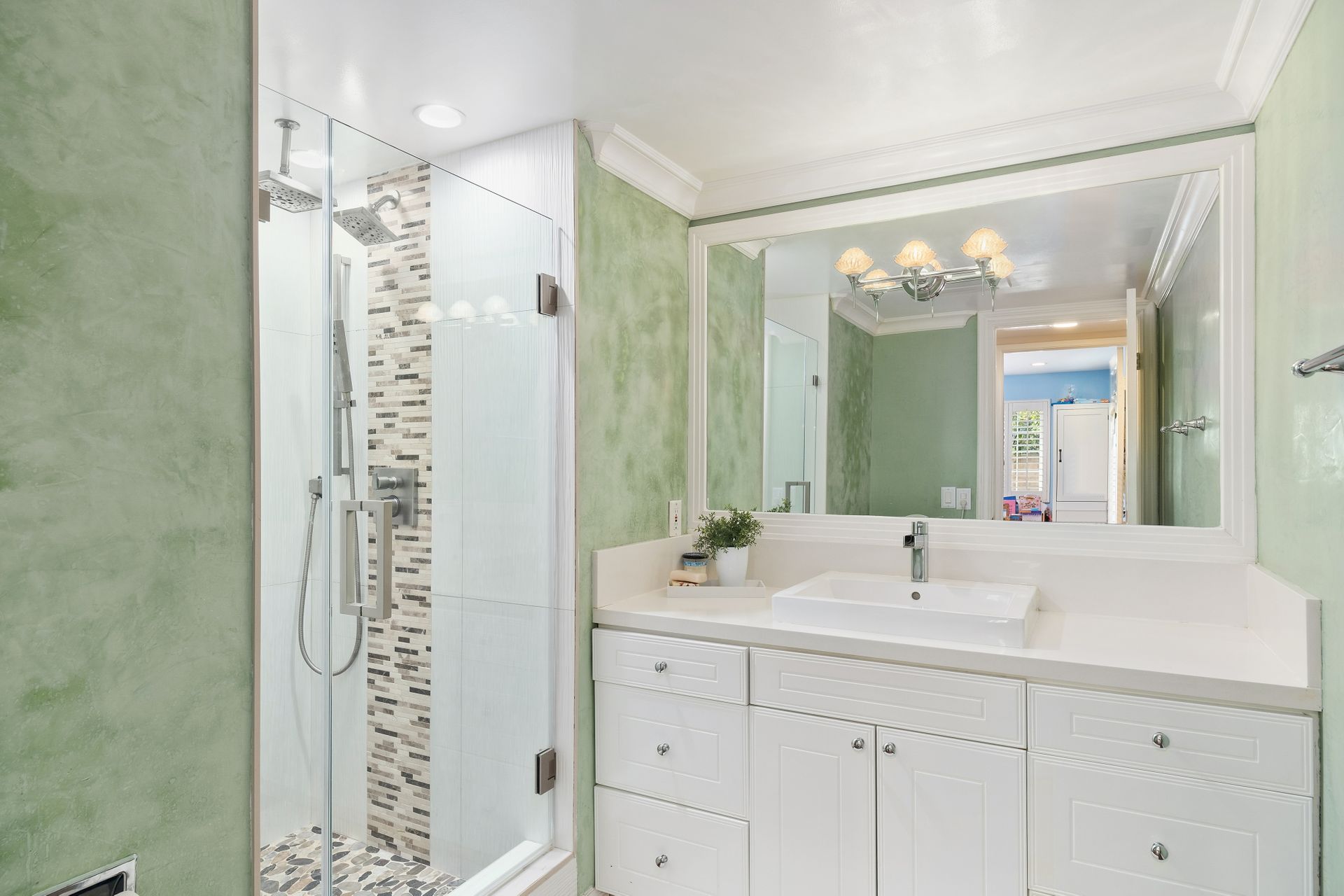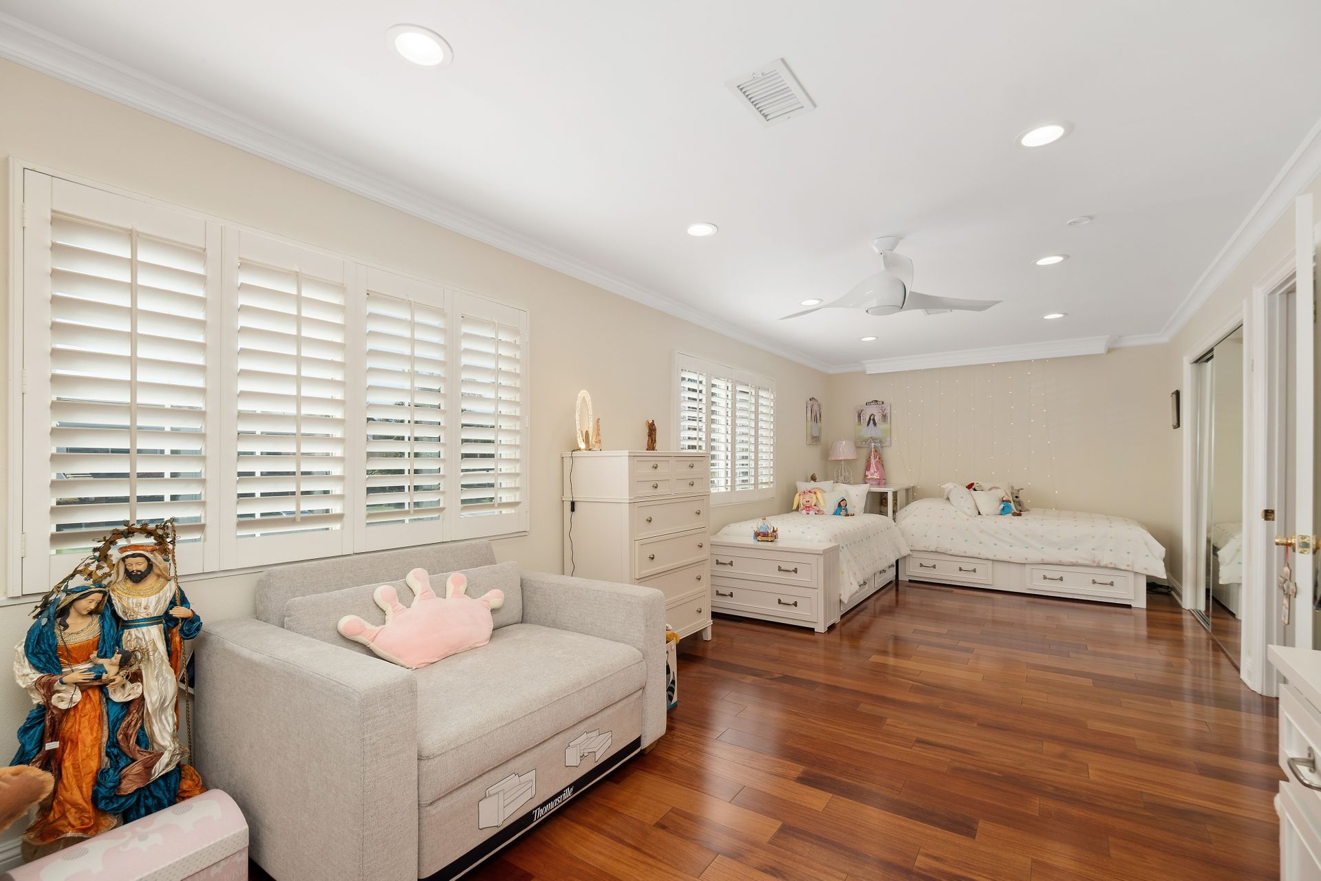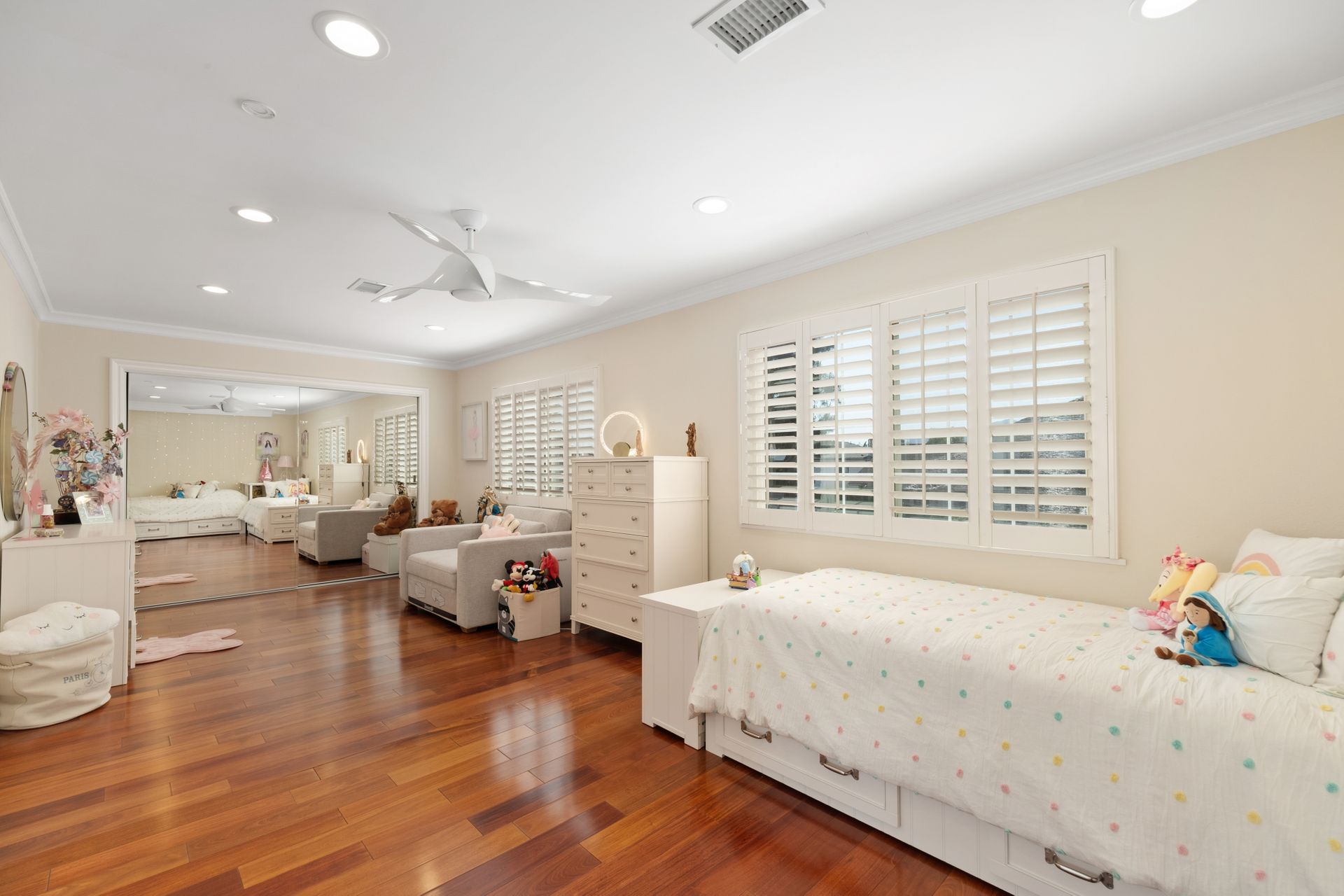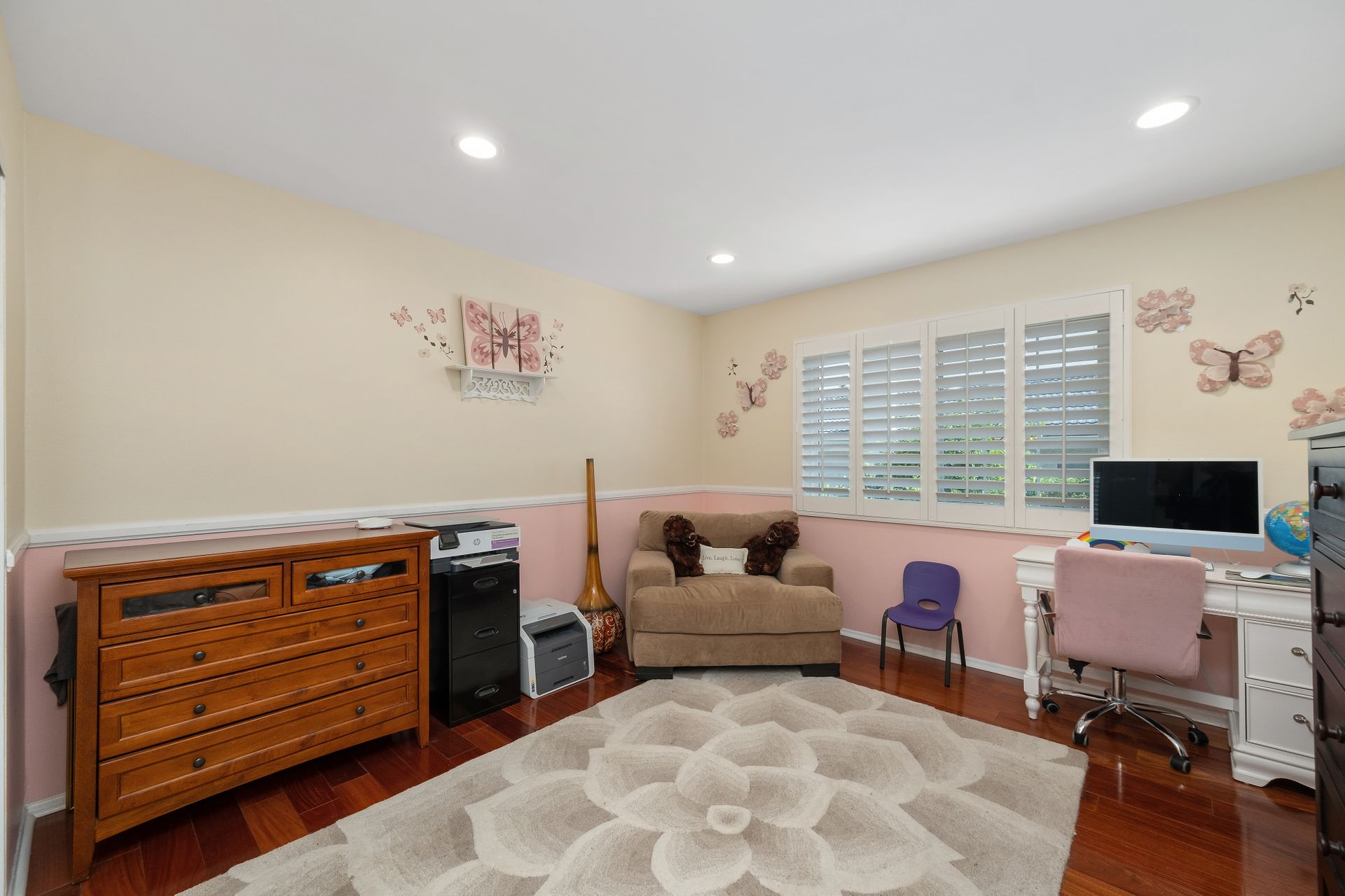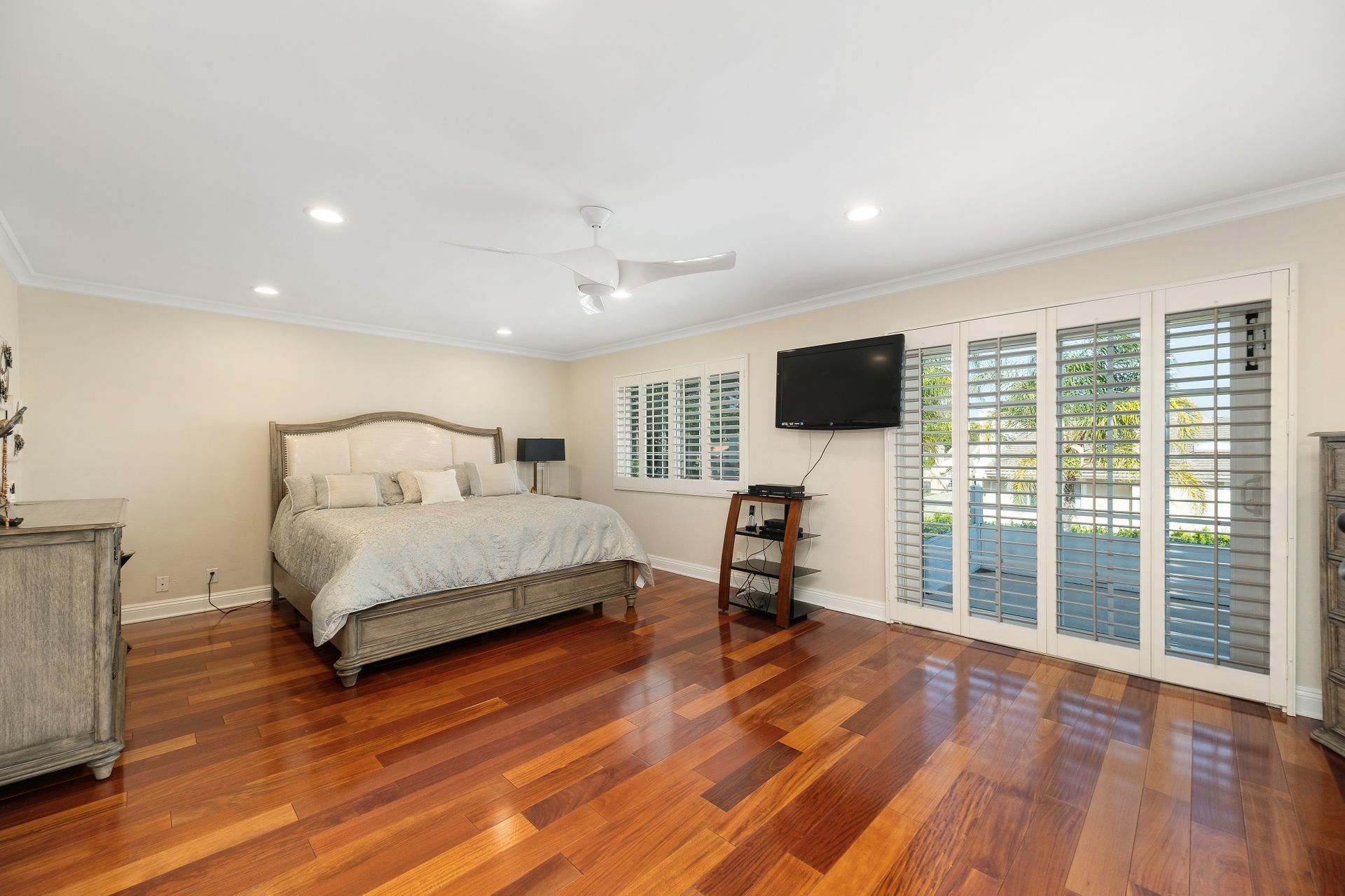 • Recessed lighting, dual-pane windows, and elegant plantation shutters throughout