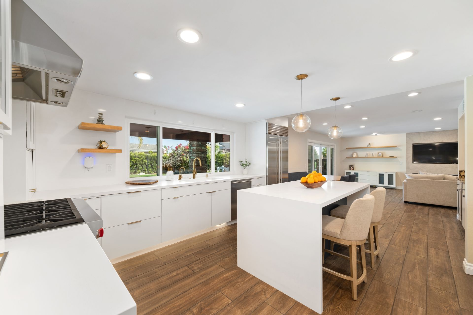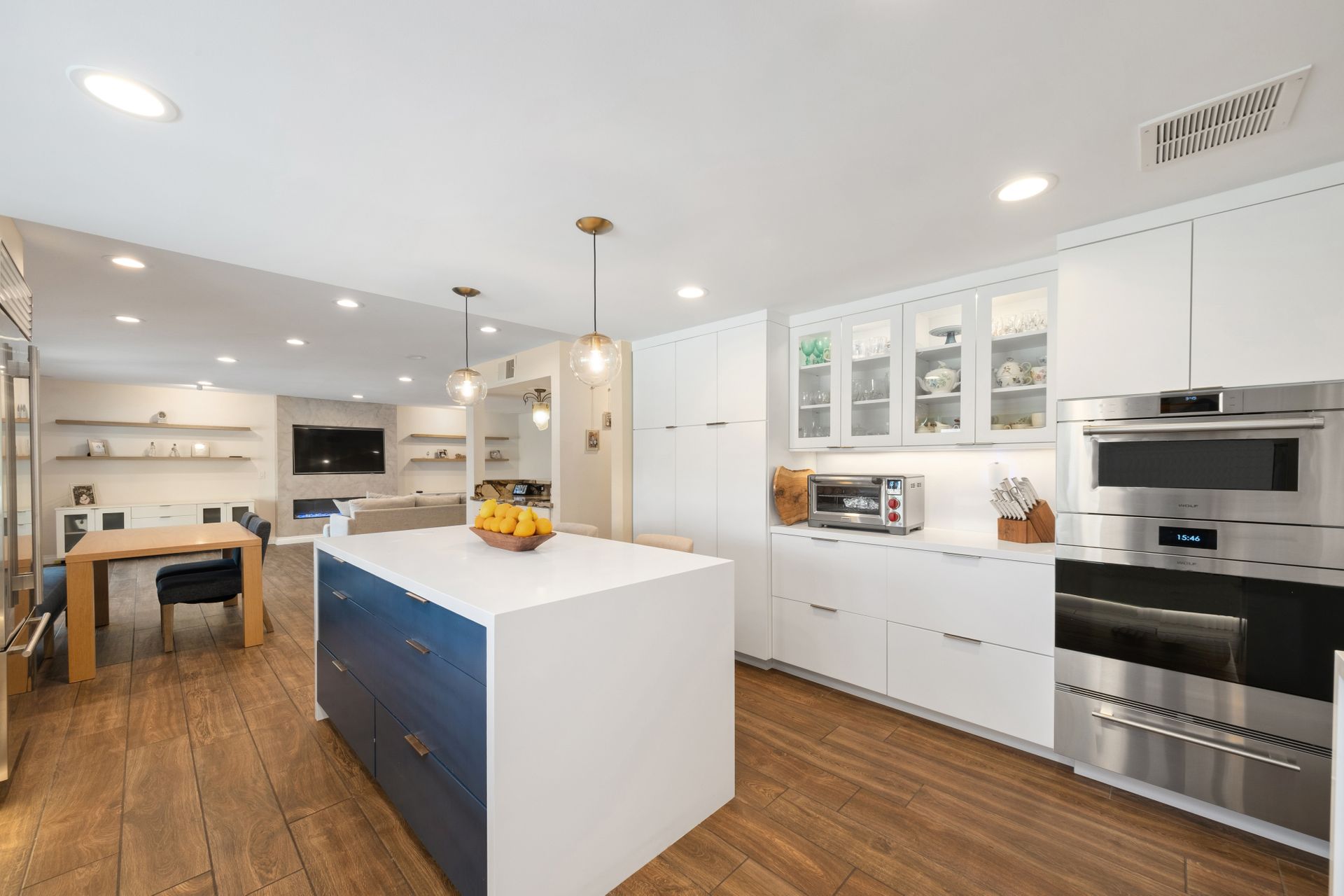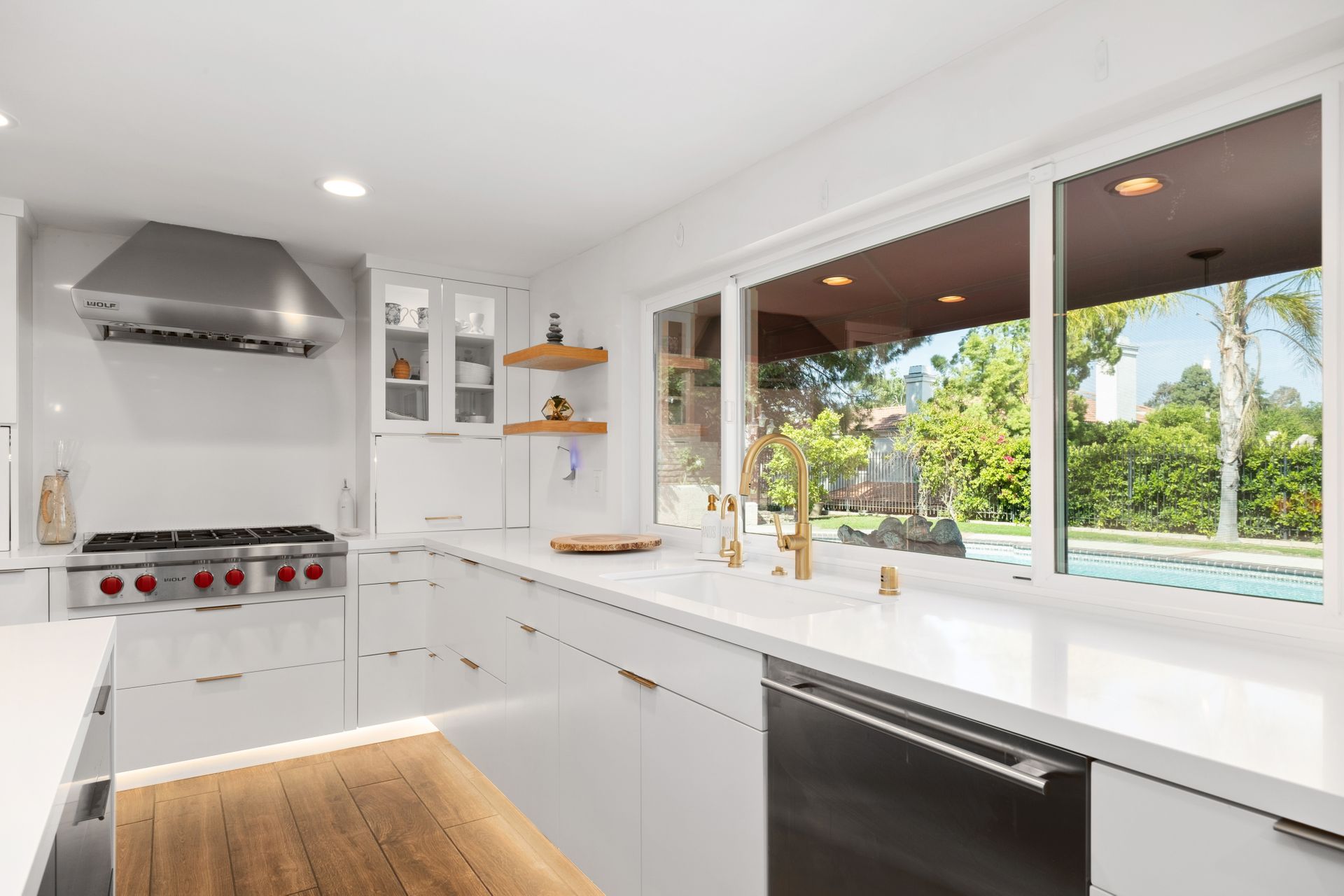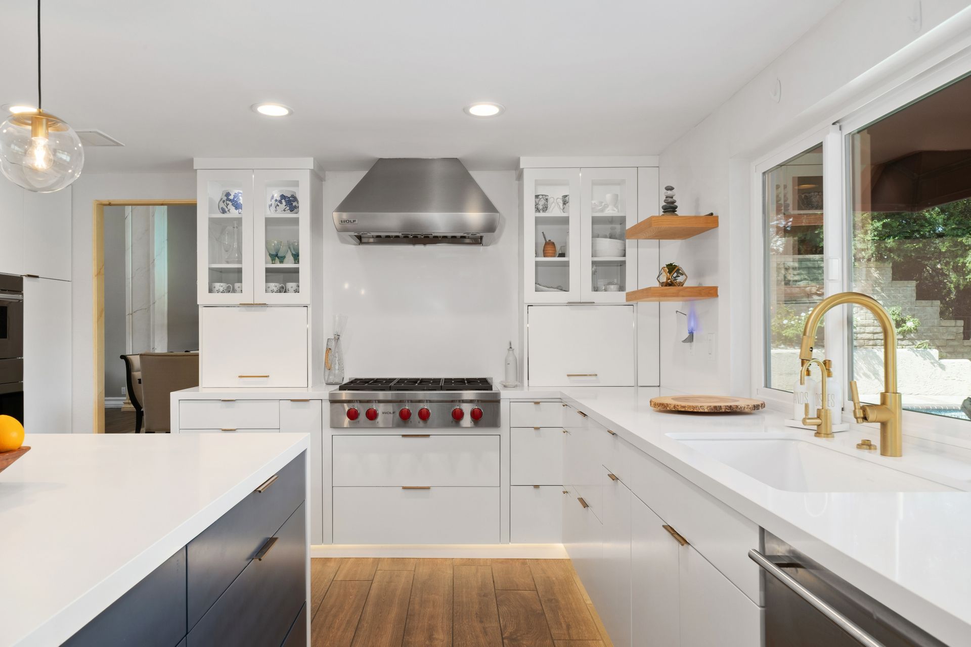 • All top-tier Wolf appliances: gas range, dishwasher, steamer, warming drawer, and Subzero refrigerator.