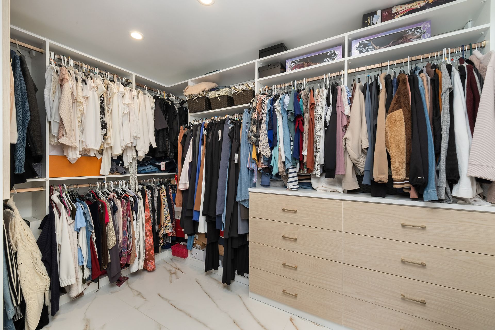 • Custom maple cabinets with Blum soft-close drawers