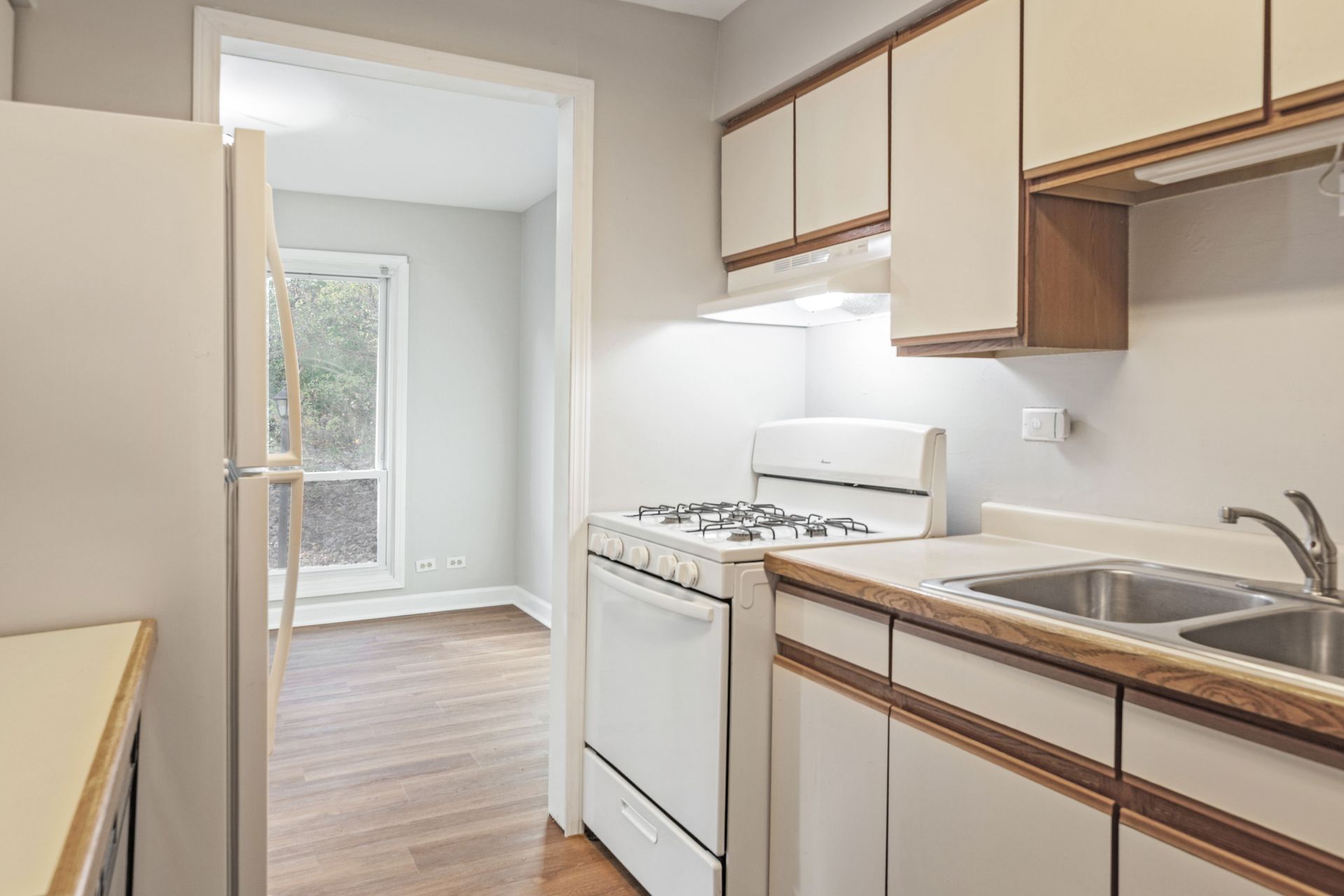 This bright and inviting 3-bedroom, 1.5-bath end-unit townhome offers the perfect blend of comfort, style, and convenience. Enjoy scenic wooded views along with freshly painted interiors and new flooring throughout-luxury vinyl on the main level, hardwood upstairs, cozy carpet in the basement and refinished wood flooring on staircase. On the main level the kitchen offers plenty of cabinet space, a new refrigerator, new range hood, new faucet/shut off valves and newer oven/range. The adjacent dining room is open to the spacious living room with sliding glass doors to a private patio and fenced backyard-perfect for relaxing or entertaining. The powder room is also conveniently located on the main level with a new subfloor, vinyl tile and new toilet shut off valve. Upstairs are three nice size bedrooms and a shared bathroom with new vinyl tile, new tub water spout, newer vanity, new bathroom sink faucet, pop up drain and trap. The finished basement adds valuable living space and includes a versatile bonus room, ideal for a home office, gym, or hobby area.Two assigned parking spaces provide added convenience. Community amenities include an outdoor pool, clubhouse, and park, all just steps from your door. Ideally located minutes from the Bartlett and Hanover Park Metra stations, and close to shopping, dining, entertainment, and expressways. You'll love the welcoming neighborhood and the great lifestyle this home has to offer.