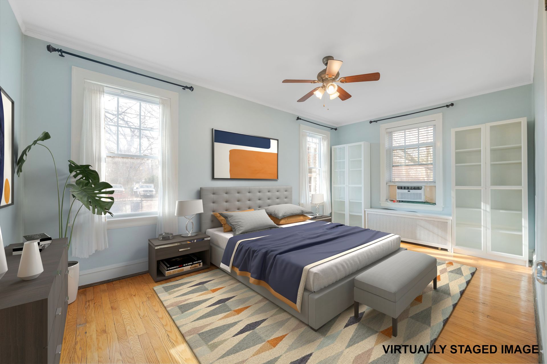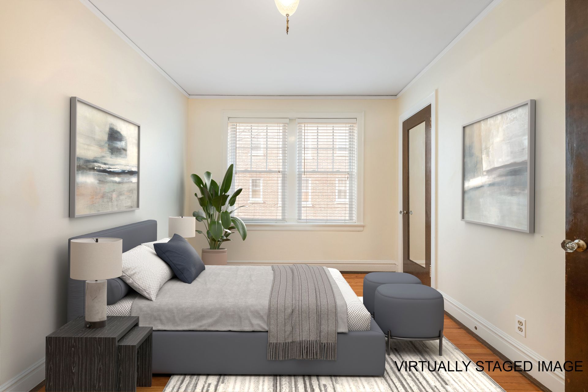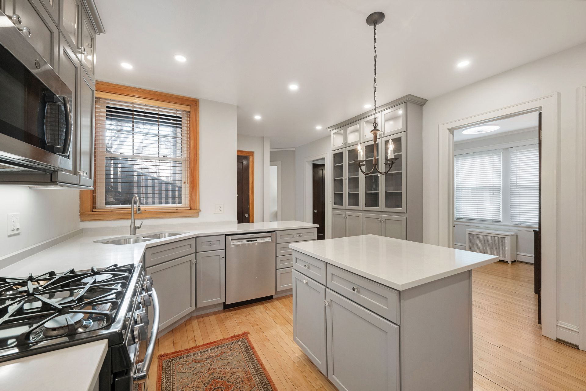 This spacious and well laid out Evanston landmark condominium combines vintage charm with modern updates which accentuate the landmark status of the property. The front foyer opens to a separate living room and dining room which seamlessly flow together using an arched pass through. The foyer also opens to a hallway that flanks the kitchen and extends to the three bedrooms and two full bathrooms logically situated towards the rear of the unit. Plenty of natural light flows throughout the property with a blend of traditional and bay windows, complimented with eight foot plus ceilings and hardwood floors. The kitchen area was renovated in 2019 and features custom cabinetry, island, stainless steel appliances and removed sidewall which maximizes space and maneuverability. Common shared elements of the four-unit building include a large wraparound partially fenced yard with beautiful garden, basement dedicated storage, and basement laundry area with your own washer / dryer. Close proximity to parks, schools and public transportation. The opportunity is here to own your own share of this 1927 Riflemanor Architectural Landmark!!
