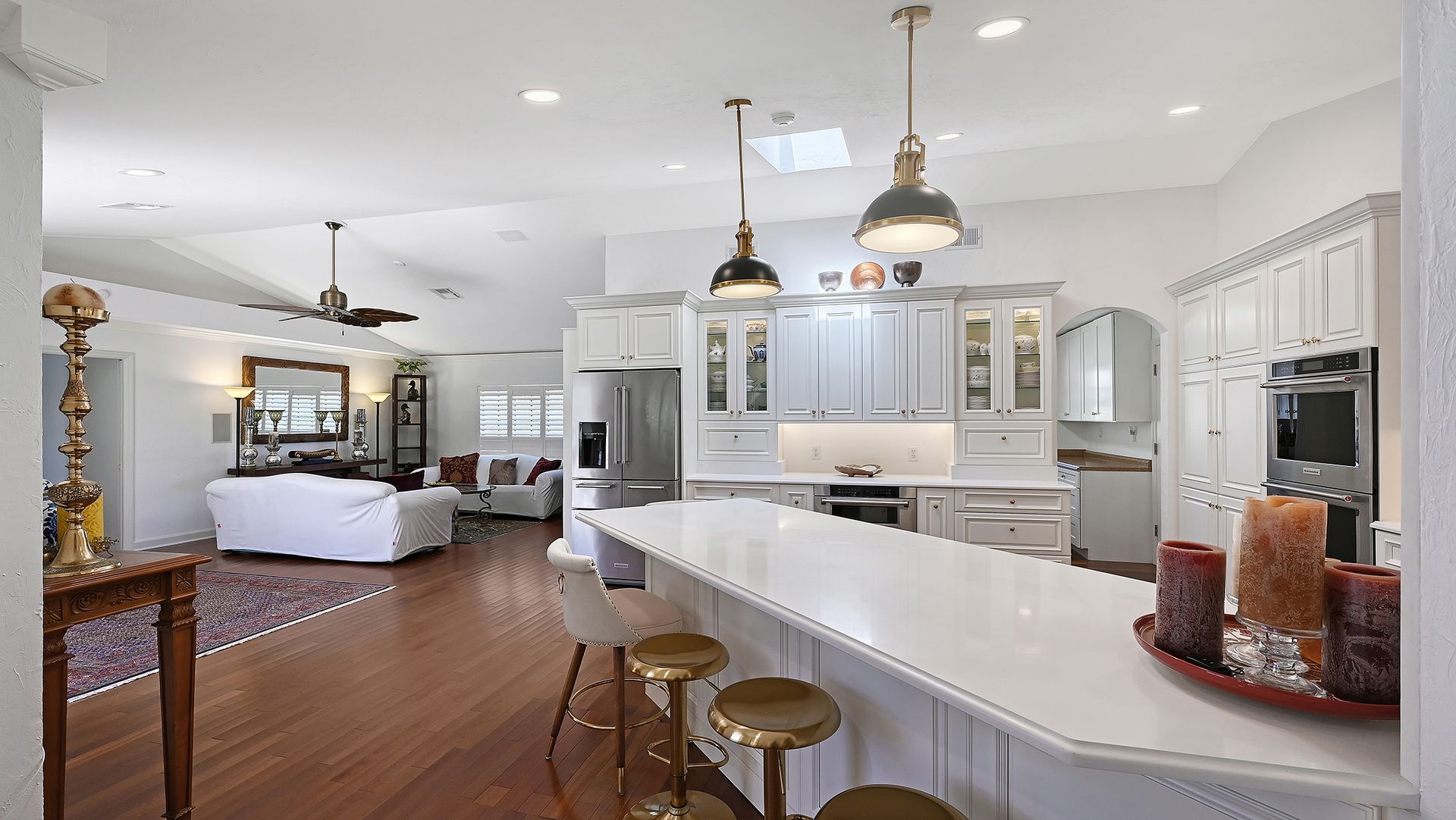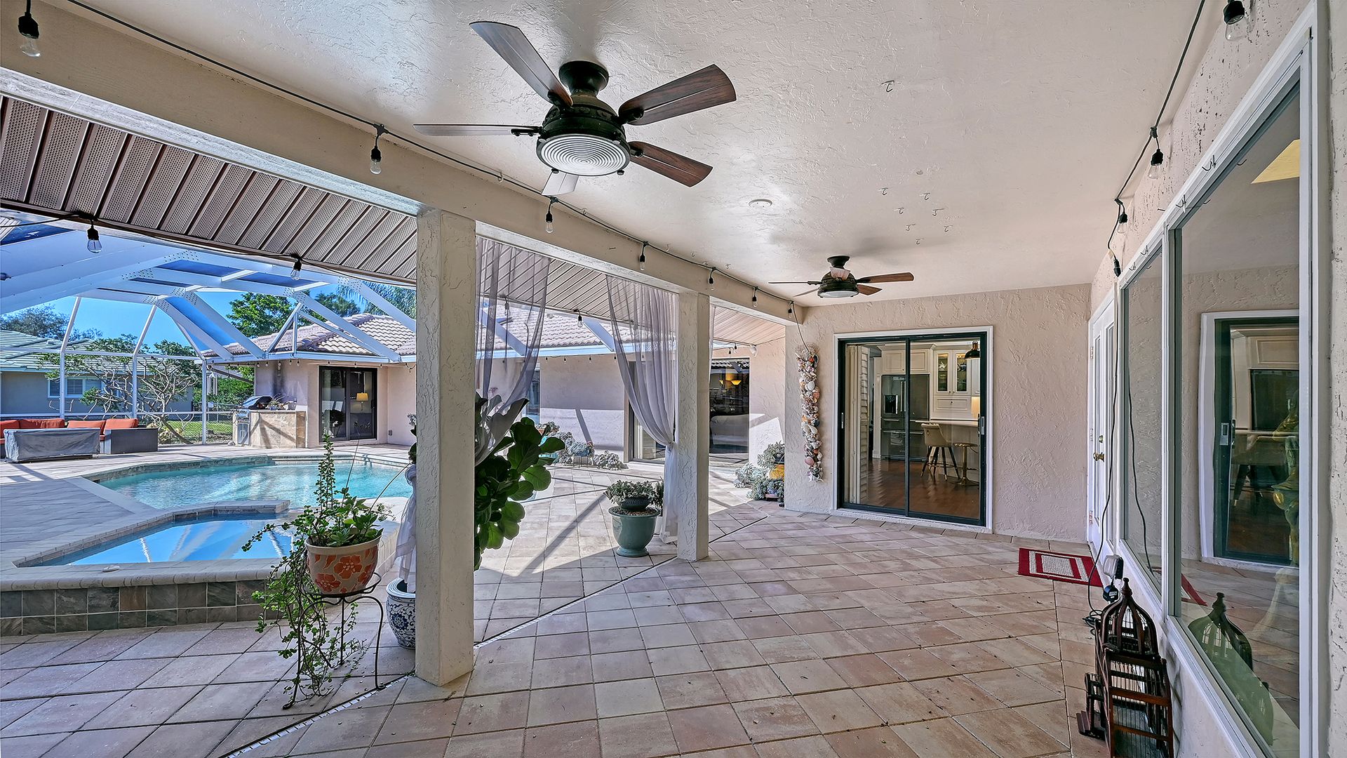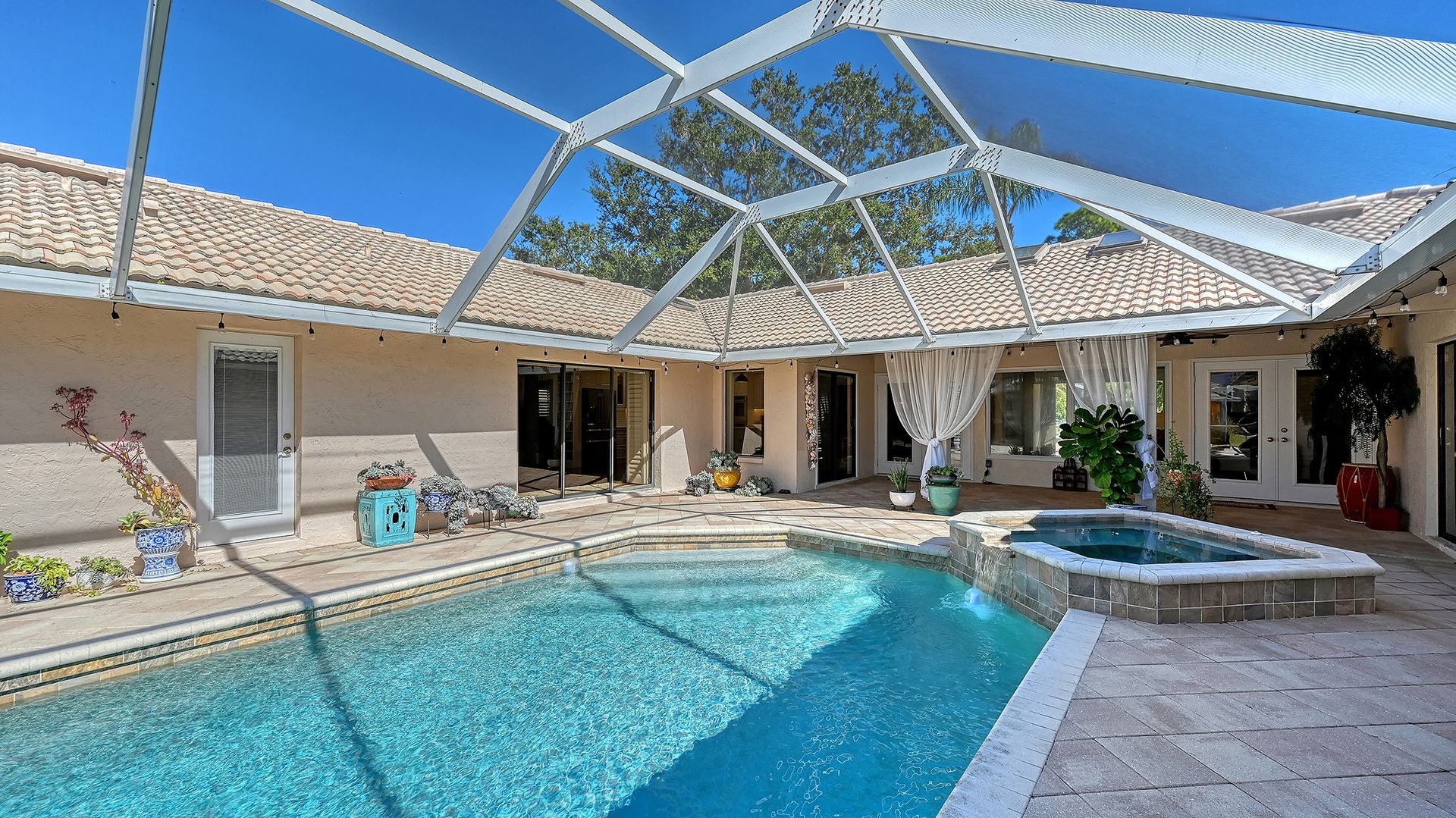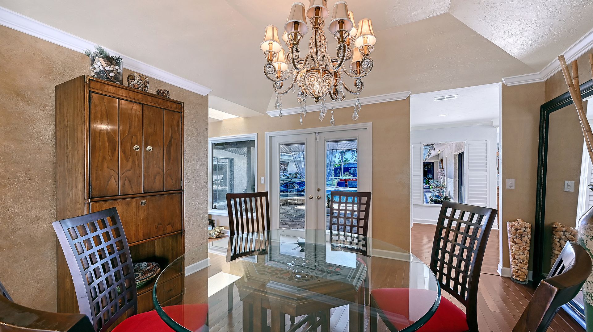 Step into refined coastal living in this beautiful residence with OVER $115,000 IN UPGRADES, in COVETED Sorrento Woods, where elegant interiors and exceptional community amenities create a truly elevated lifestyle. This four bedroom, three bathroom home includes an office, pool and boasts open concept living and the guest suite offers options of MULTI-GENERATIONAL LIVING too. A stunning 2024 custom kitchen anchors the home with quartz countertops, pot filler, double ovens, wine fridge, and designer lighting—ideally positioned between the formal dining room and the spacious family room with sliders to the lanai. The formal living room impresses with a tray ceiling, crown molding, plantation shutters, French doors, and an in wall sound system. The primary suite offers a serene retreat with custom built-ins, lanai access, and a spa inspired ensuite wrapped in granite, featuring a rain shower, wavy cut glass doors, built in shelving, bidet, and skylight. A second primary/guest suite with its own ensuite and skylight provides ideal multigenerational flexibility. Guest bedrooms include custom closets, crown molding, and plantation shutters, while the cabana bath offers pool access, granite counters, and a rain shower. Additional highlights include cherry hardwood flooring in the foyer, hardwood in the dining room, recessed lighting throughout, a custom cabinet office, a spacious laundry room with utility sink and wood flooring, and a plywood reinforced attic offering exceptional storage. The screened lanai and resurfaced pool create a private outdoor oasis perfect for entertaining. Sorrento Woods elevates the lifestyle with a PRIVATE COMMUNITY BOAT RAMP and day dock on a scenic canal—placing the Gulf and Intracoastal Waterway just minutes away. Low HOA, NO CDD, and a central location close to the new SMH Venice Hospital, Nokomis and Venice Beaches, Legacy Trail, shopping, dining, and A rated schools make this an unmatched opportunity in Sarasota County.