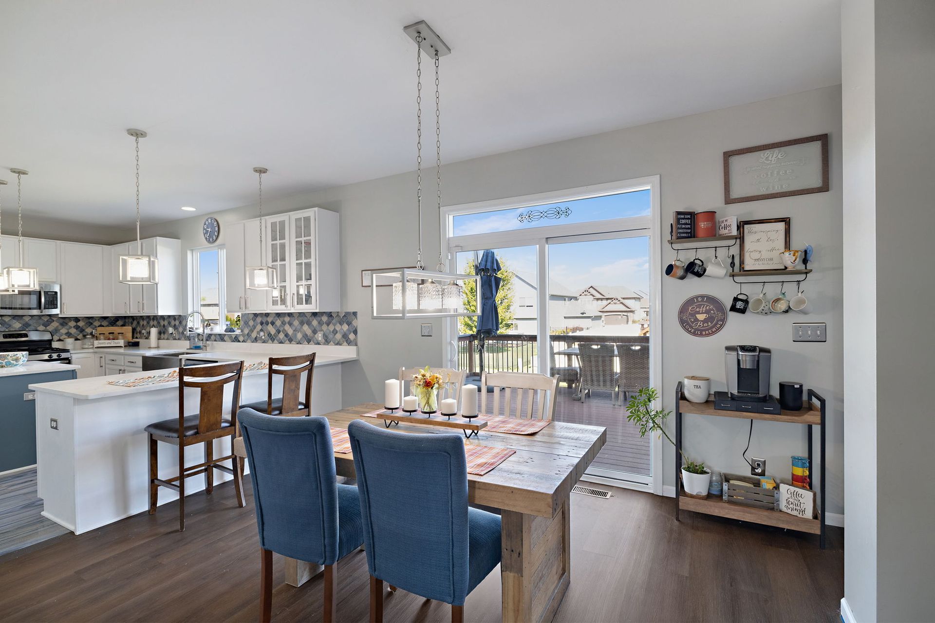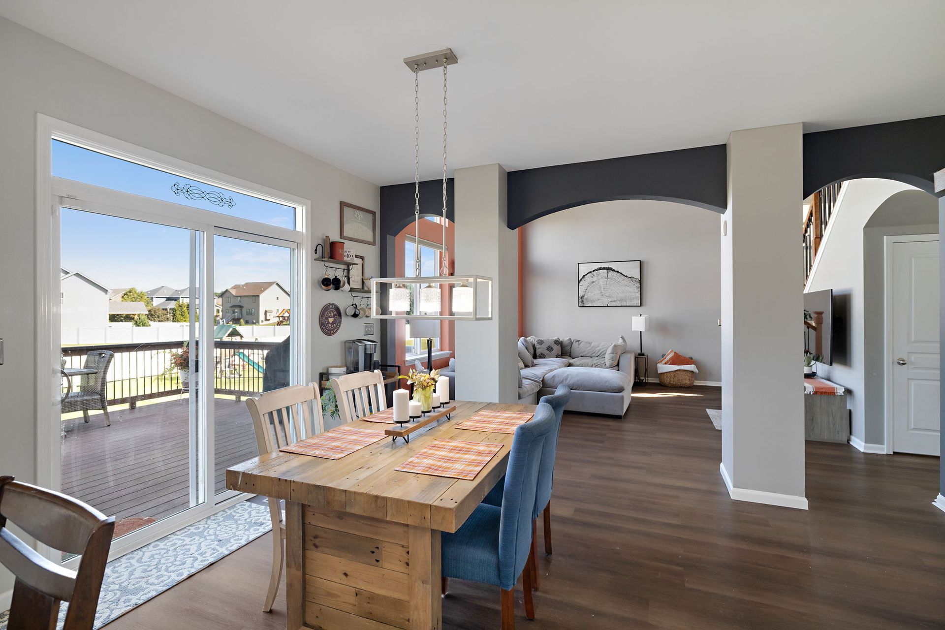 This five-bedroom, four-bathroom home offers over 3,600 square feet of living space. The upgraded kitchen features custom cabinetry, ample counter space, pantry, and SS appliances, creating a functional and inviting space for meal preparation. The two-story great room with large windows allows natural light to flood the open-concept living area, providing a bright and airy atmosphere. The finished daylight basement adds versatile square footage, potentially accommodating a variety of uses, such as a media room, home gym, or additional living space. Located in the Ellendale Farm community, this property benefits from a desirable location, offering convenience and access to local amenities.