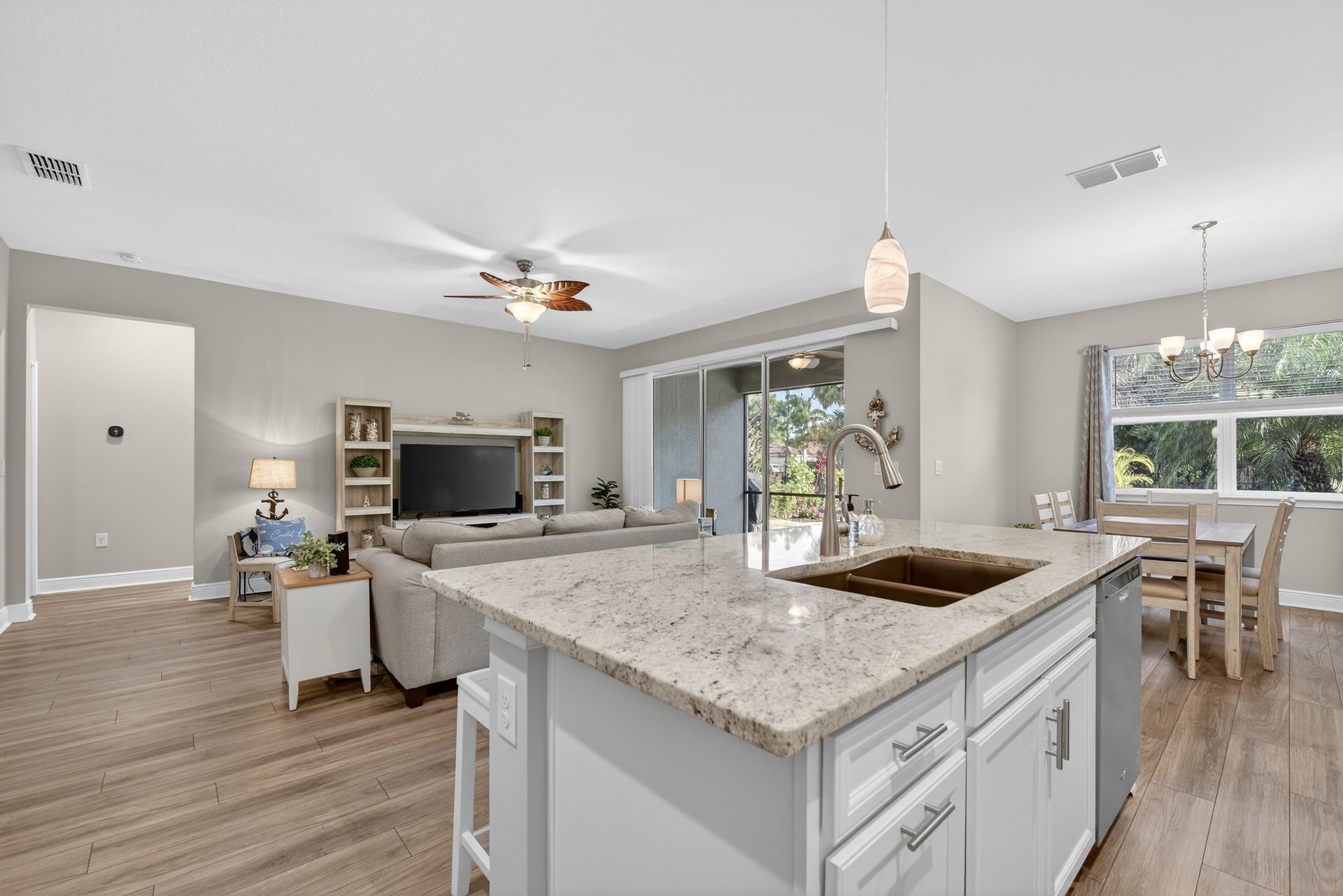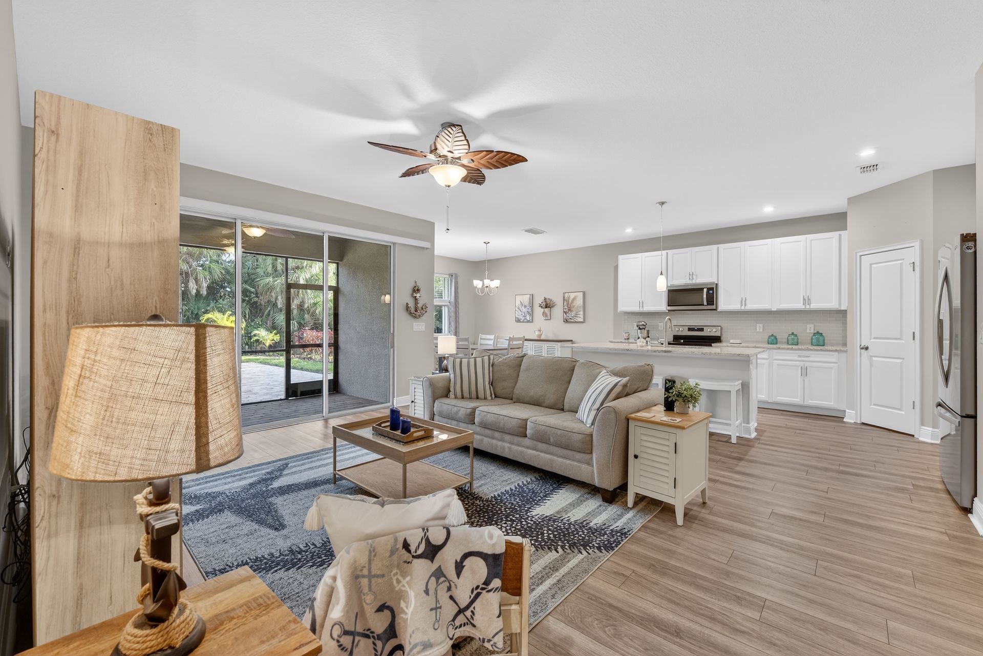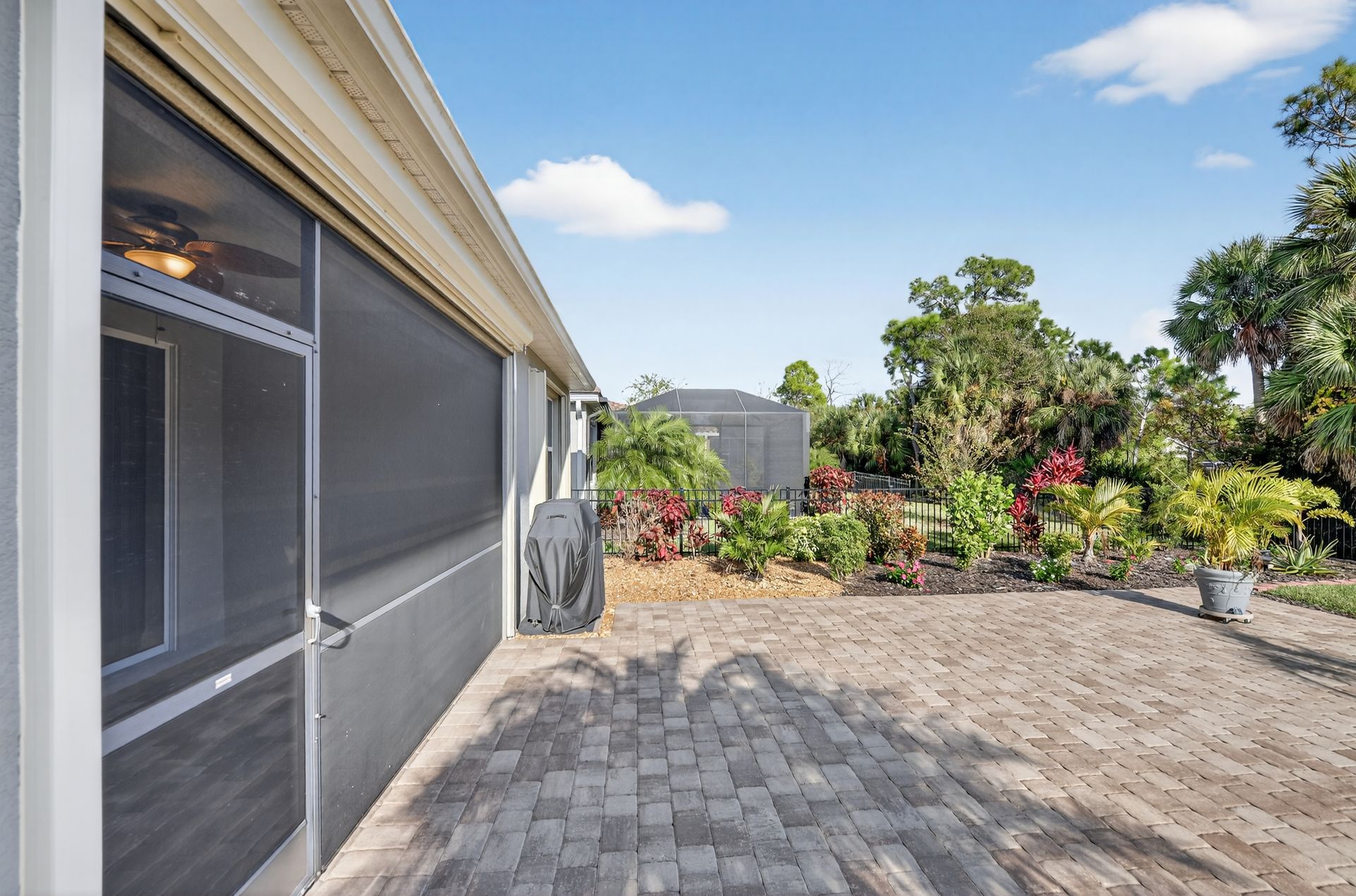 Welcome to this beautifully maintained Dawn model located at 11695 Alessandro Lane in the desirable Renaissance community. Offering approximately 1,839 square feet, this 2-bedroom, 2-bath home with a versatile den blends comfort, style, and privacy. Luxury LVP flooring flows throughout the main living areas, complemented by tile flooring in both bathrooms. The primary suite features a tile-to-the-ceiling walk-in shower, while the guest bath offers a tub/shower combination also tiled to the ceiling. Upgraded lighting and ceiling fans throughout enhance both style and everyday comfort. The kitchen is thoughtfully designed with granite countertops, a glass tile backsplash, ample cabinetry, and a separate dining area, making it ideal for both casual meals and entertaining. Enjoy outdoor living with a covered lanai featuring a roll-down hurricane shutter, plus an additional paver patio, all overlooking a fully fenced backyard with a tranquil preserve view. Accordion shutters on windows provide added storm protection and peace of mind. Additional highlights include pre-wiring for a Secure Pro home security system and an X-shaded flood zone designation. This move-in-ready home offers an exceptional combination of quality finishes, functional living space, and private outdoor surroundings. Renaissance at West Villages offers exceptional, resort-style amenities including a heated pool and spa, tennis and pickleball courts, bocce, state-of-the-art fitness center, and activities director. Enjoy scenic nature trails leading to the Blue Heron Dog Park or take a short drive or walk to Downtown Wellen Park for dining, shopping, and lakeside events. Sports enthusiasts will love being minutes from CoolToday Park, spring training home of the Atlanta Braves. Don’t miss your opportunity to own this stunning home in one of Wellen Park’s most vibrant communities—schedule your private tour today and start enjoying the Renaissance lifestyle.