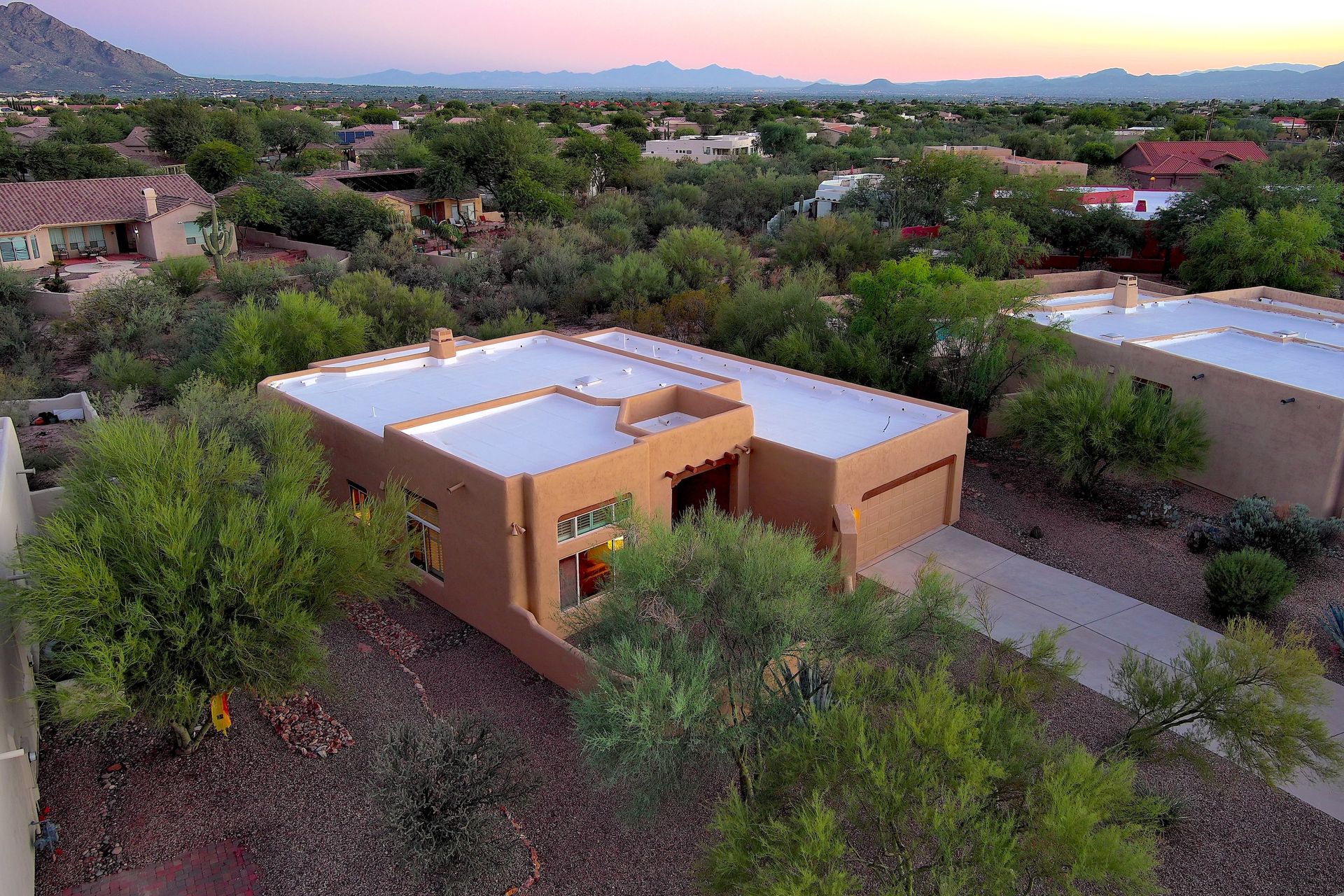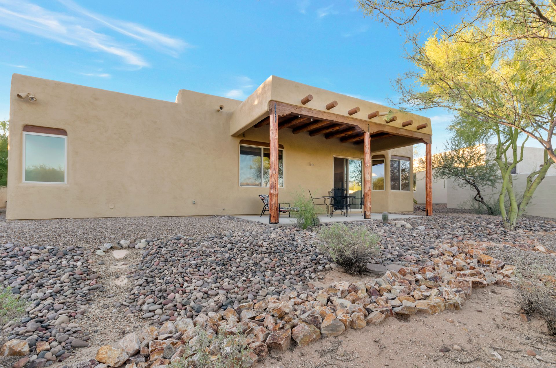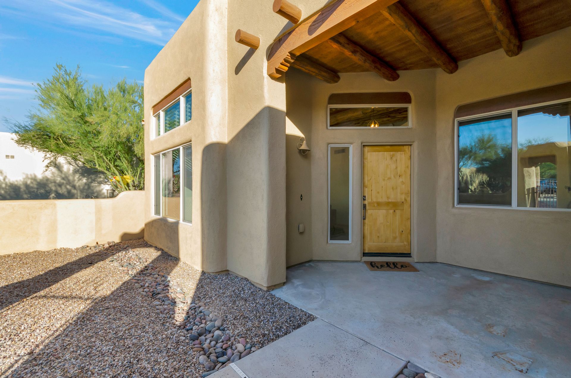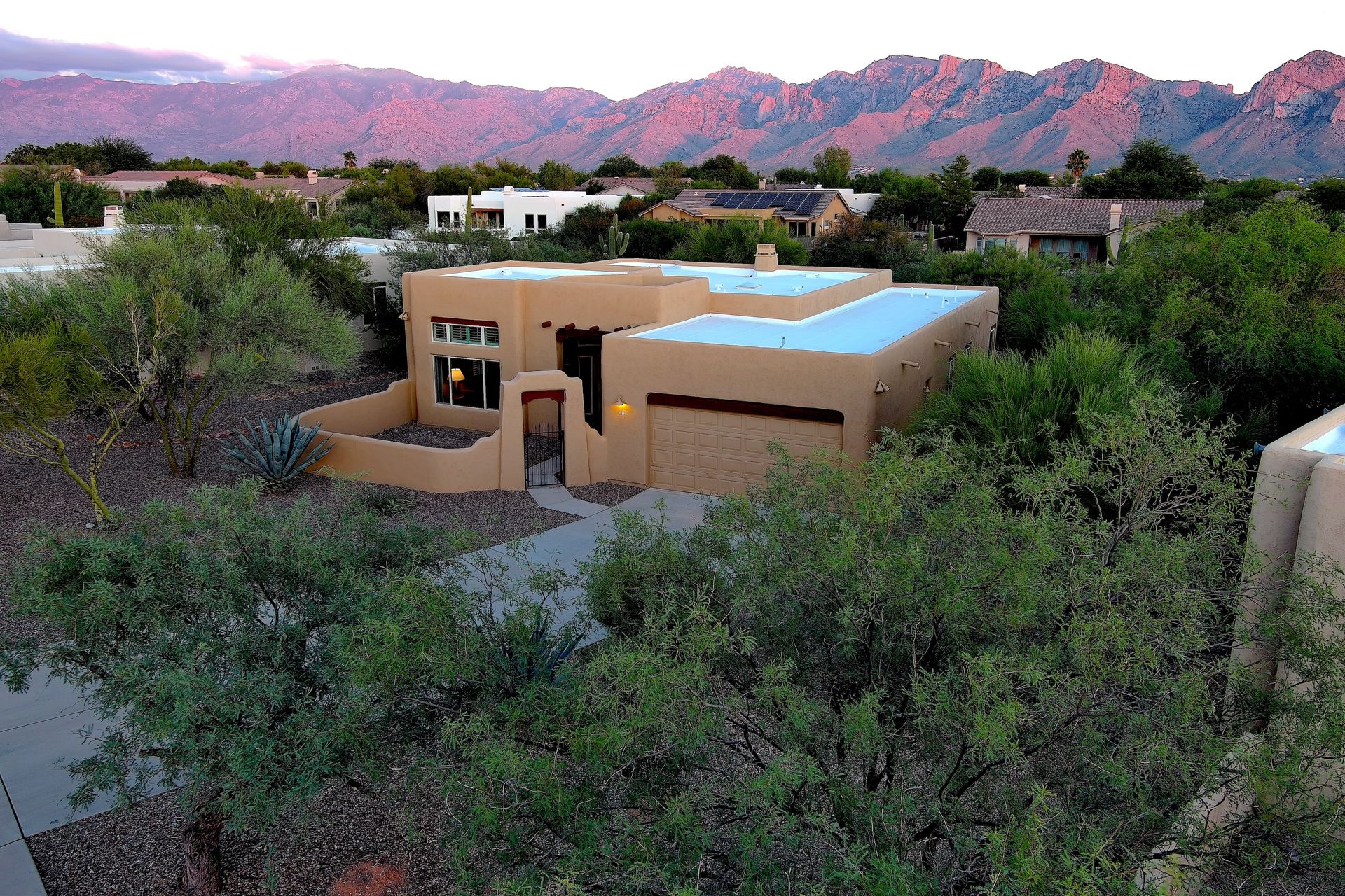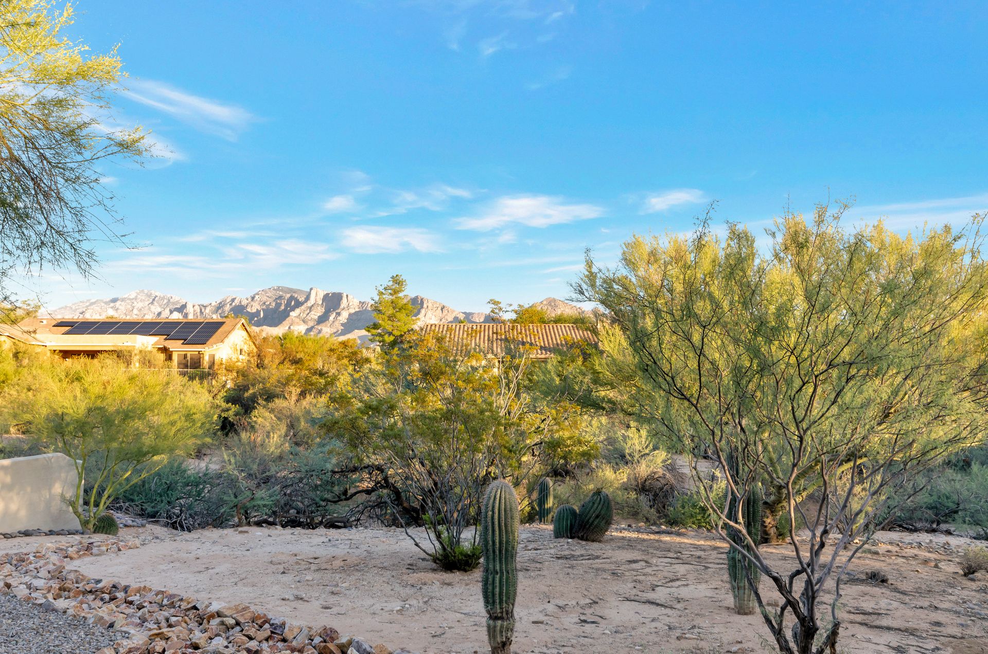 Welcome to Oro Valley (Tucson), Arizona living as it was designed to be enjoyed. This exquisite 4 Bed/2 Bath Tucson Spanish Pueblo Styled home sits on .35 acres of natural desert landscape. You will beam with pride knowing you own a TJ Bednar Custom Built Home. Enjoy a private driveway, gated front courtyard with rustic iron features, and groomed Palo Verde trees. Delight in custom timber beam vigas as you enter into the 12' ceiling family room with a custom pine door. Savor earth-tone diamond-laid tile, expansive kitchen with remodeled eat-in granite counters, new upper/lower cabinets, sink, and new GE appliances—microwave, oven, gas stovetop, hood vent, and dishwasher. Warm kiva beehive gas fireplace. Newer water heater and newer HVAC system. New exterior paint and wood stain. Bathroom upgrades. Take in the majestic Catalina Mountain views from your expansive backyard patio. True desert oasis. This is HOME!