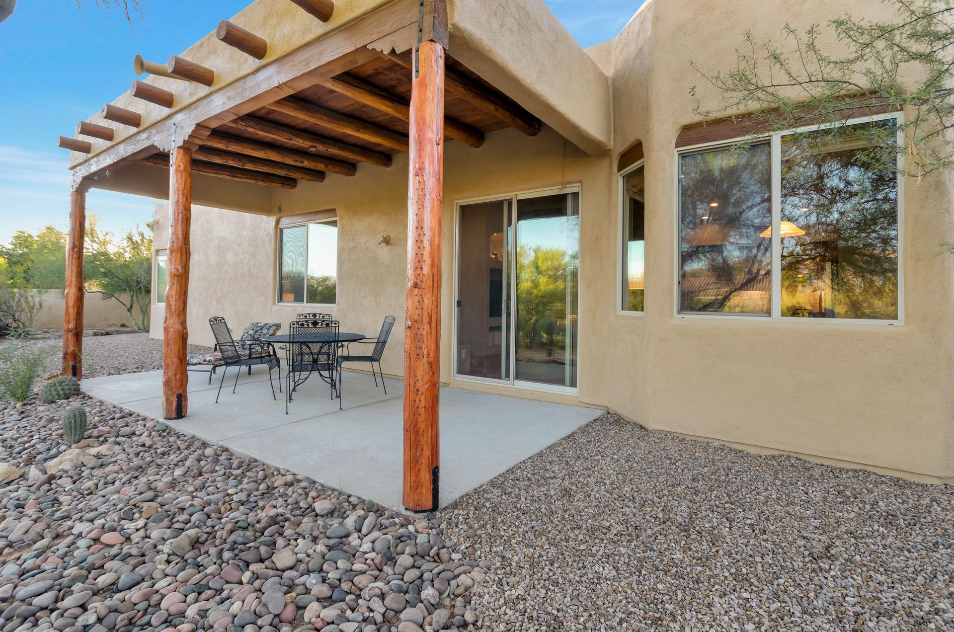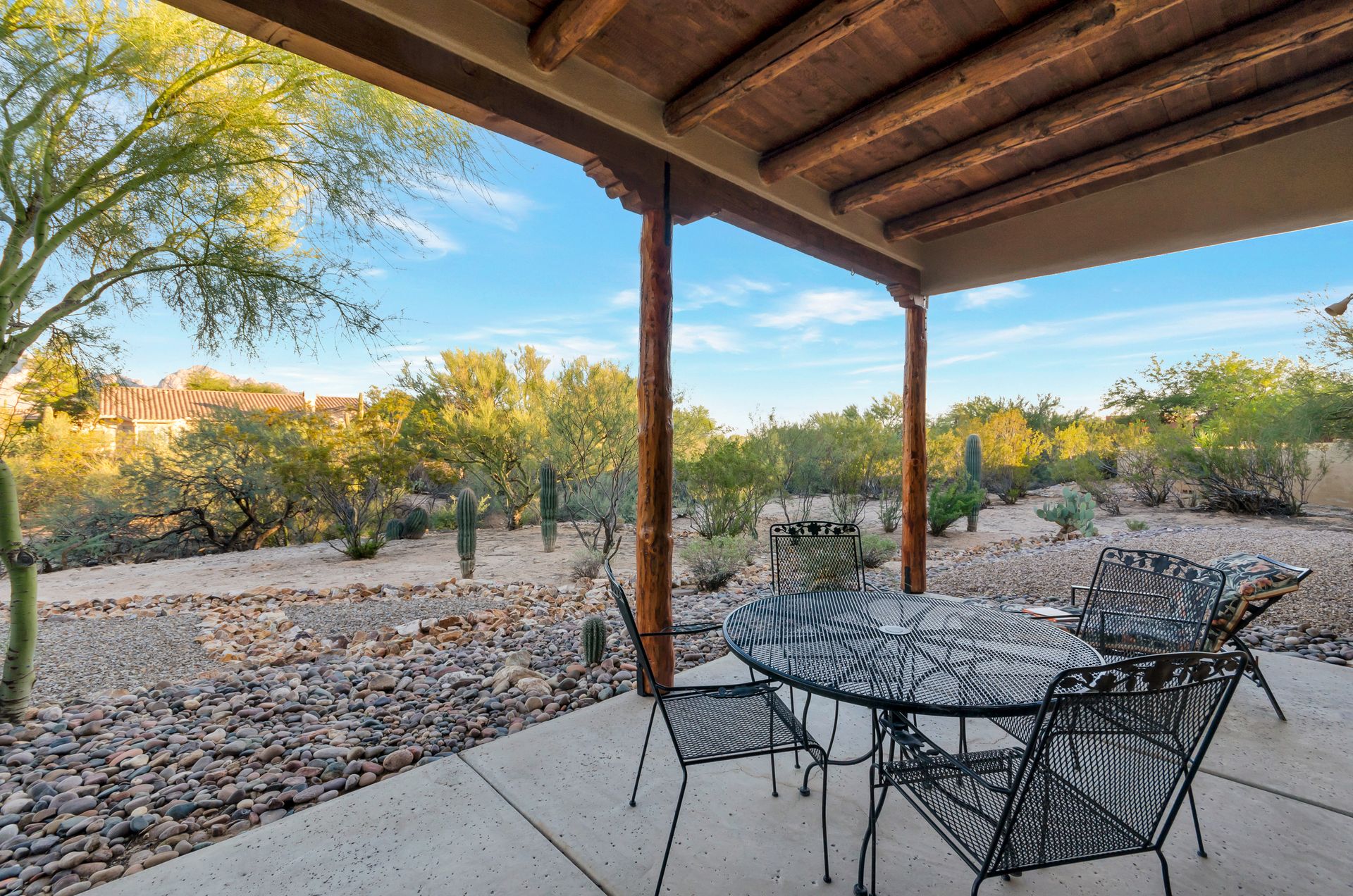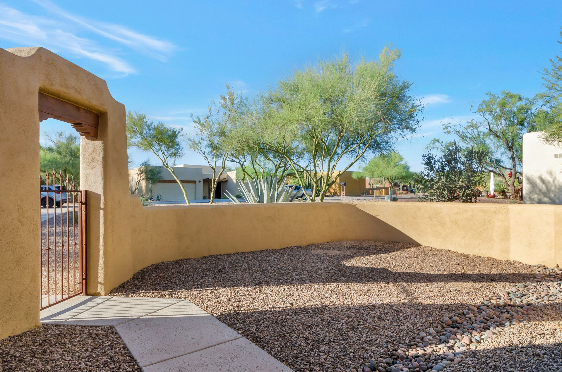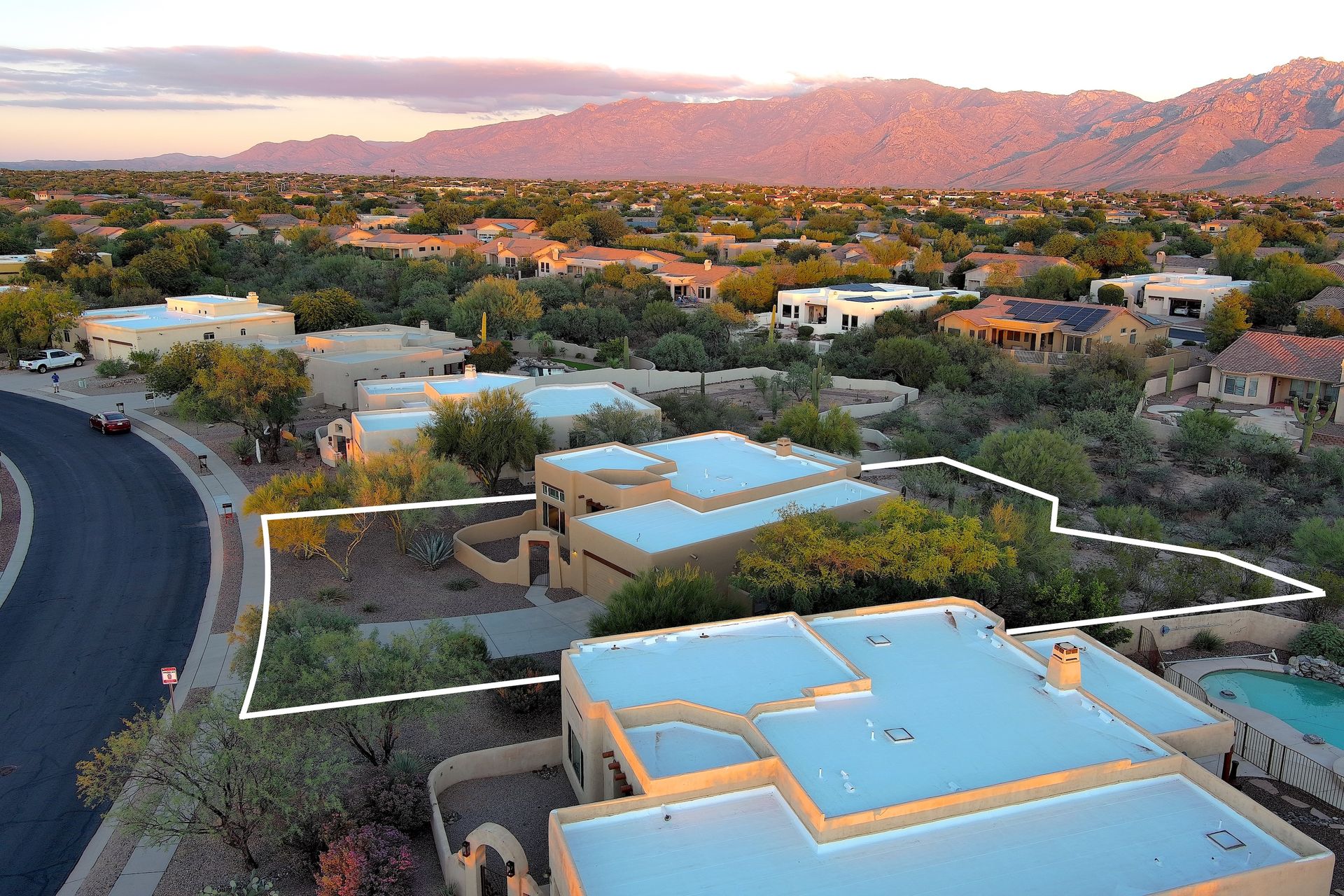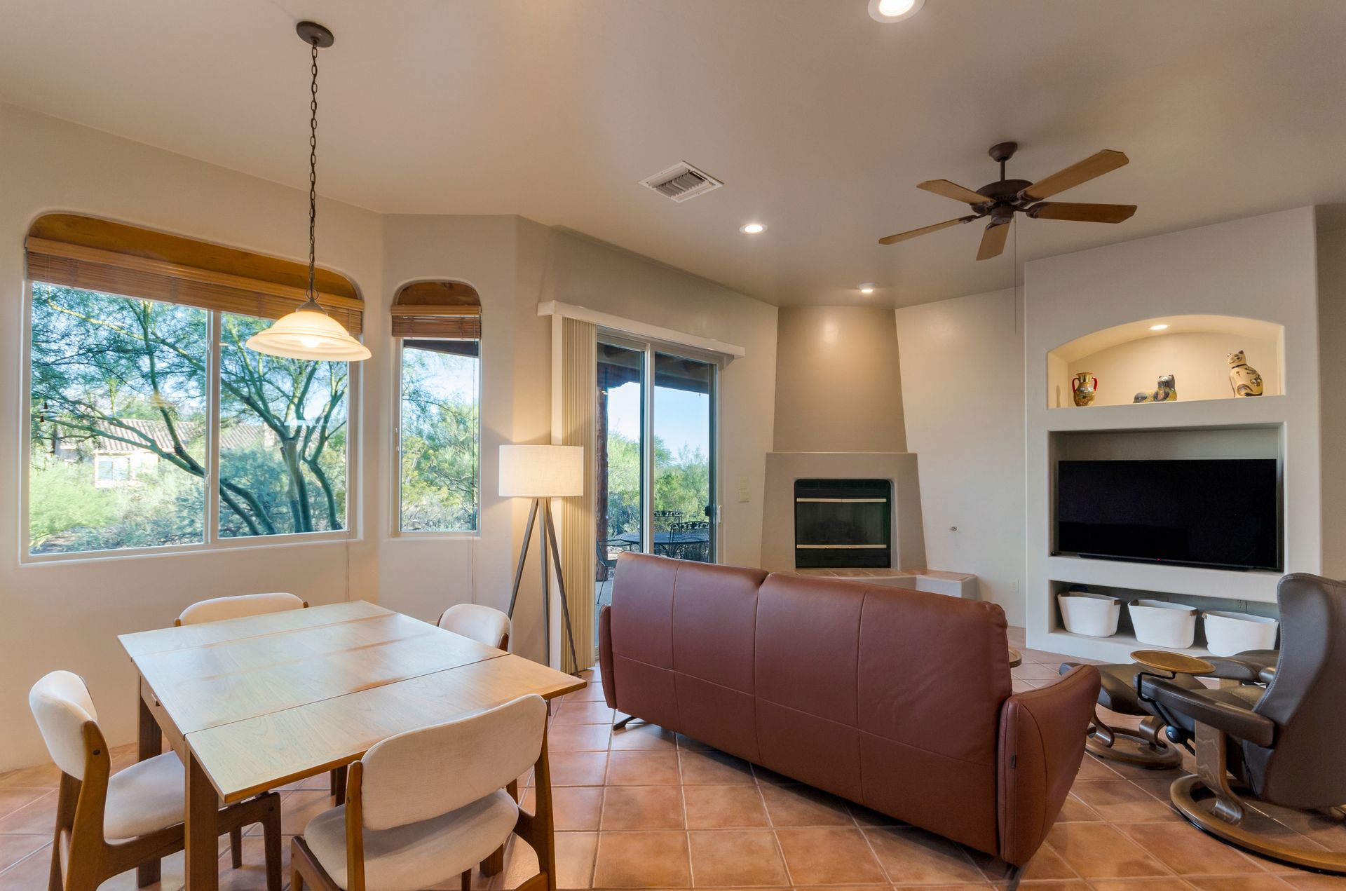 Welcome to Oro Valley (Tucson), Arizona living as it was designed to be enjoyed. This exquisite 4 Bed/2 Bath Tucson Spanish Pueblo Styled home sits on .35 acres of natural desert landscape. You will beam with pride knowing you own a TJ Bednar Custom Built Home. Enjoy a private driveway, gated front courtyard with rustic iron features, and groomed Palo Verde trees. Delight in custom timber beam vigas as you enter into the 12' ceiling family room with a custom pine door. Savor earth-tone diamond-laid tile, expansive kitchen with remodeled eat-in granite counters, new upper/lower cabinets, sink, and new GE appliances—microwave, oven, gas stovetop, hood vent, and dishwasher. Warm kiva beehive gas fireplace. Newer water heater and newer HVAC system. New exterior paint and wood stain. Bathroom upgrades. Take in the majestic Catalina Mountain views from your expansive backyard patio. True desert oasis. This is HOME!