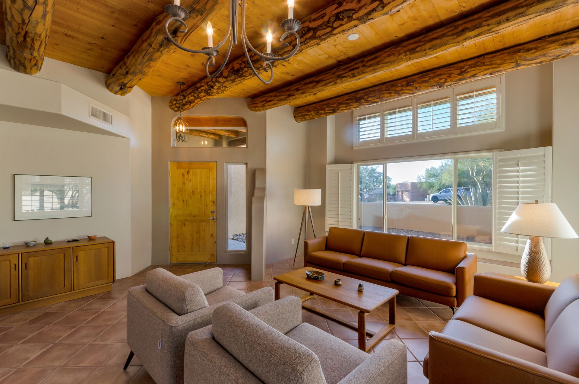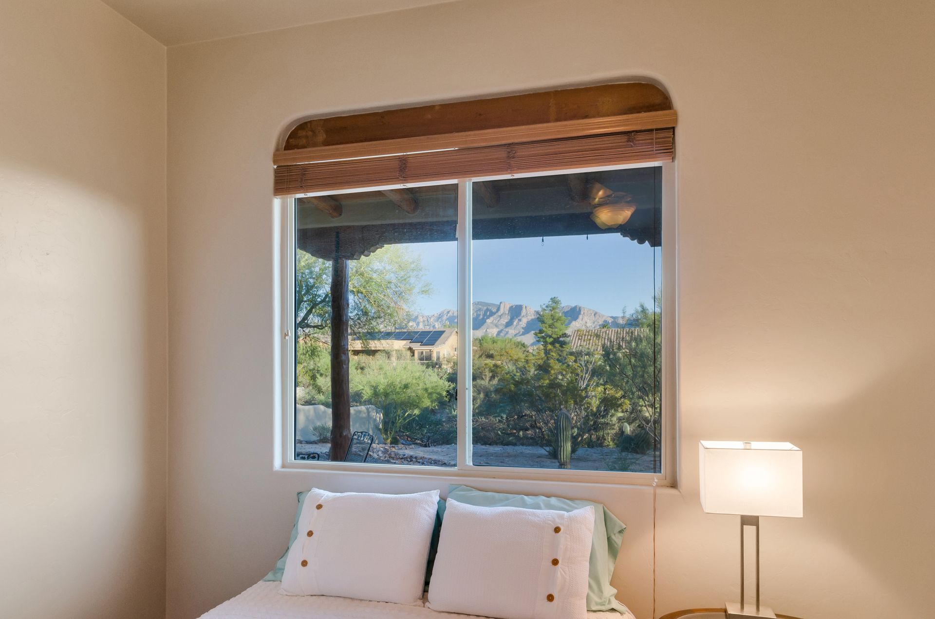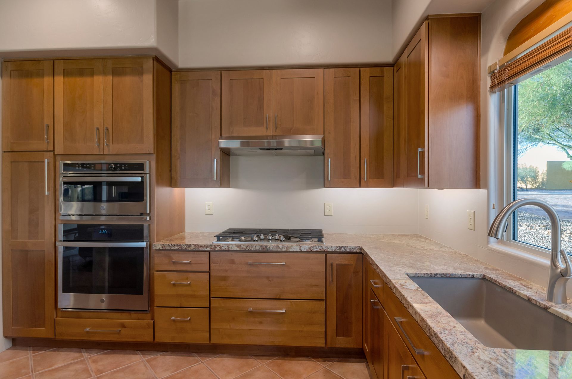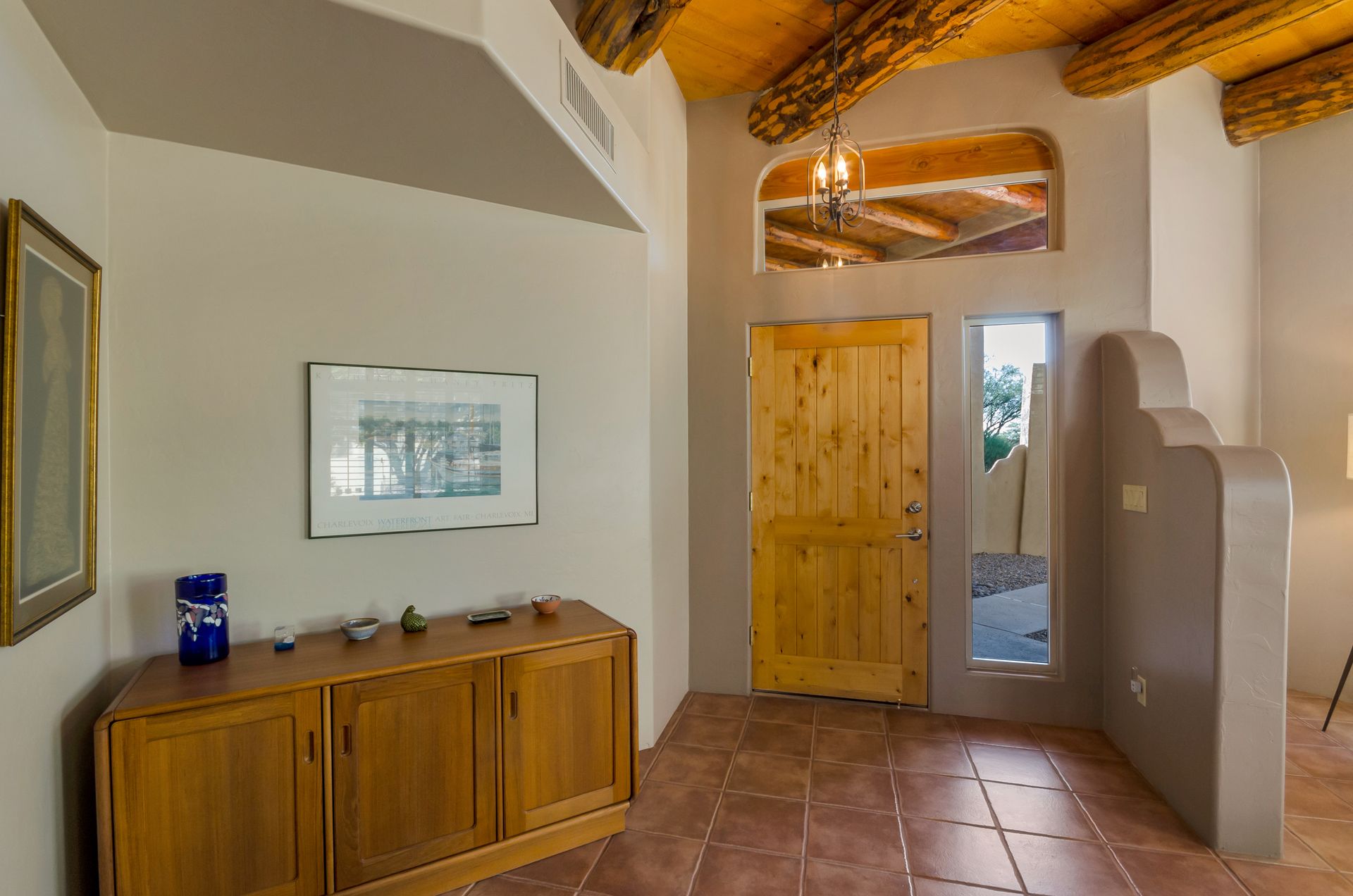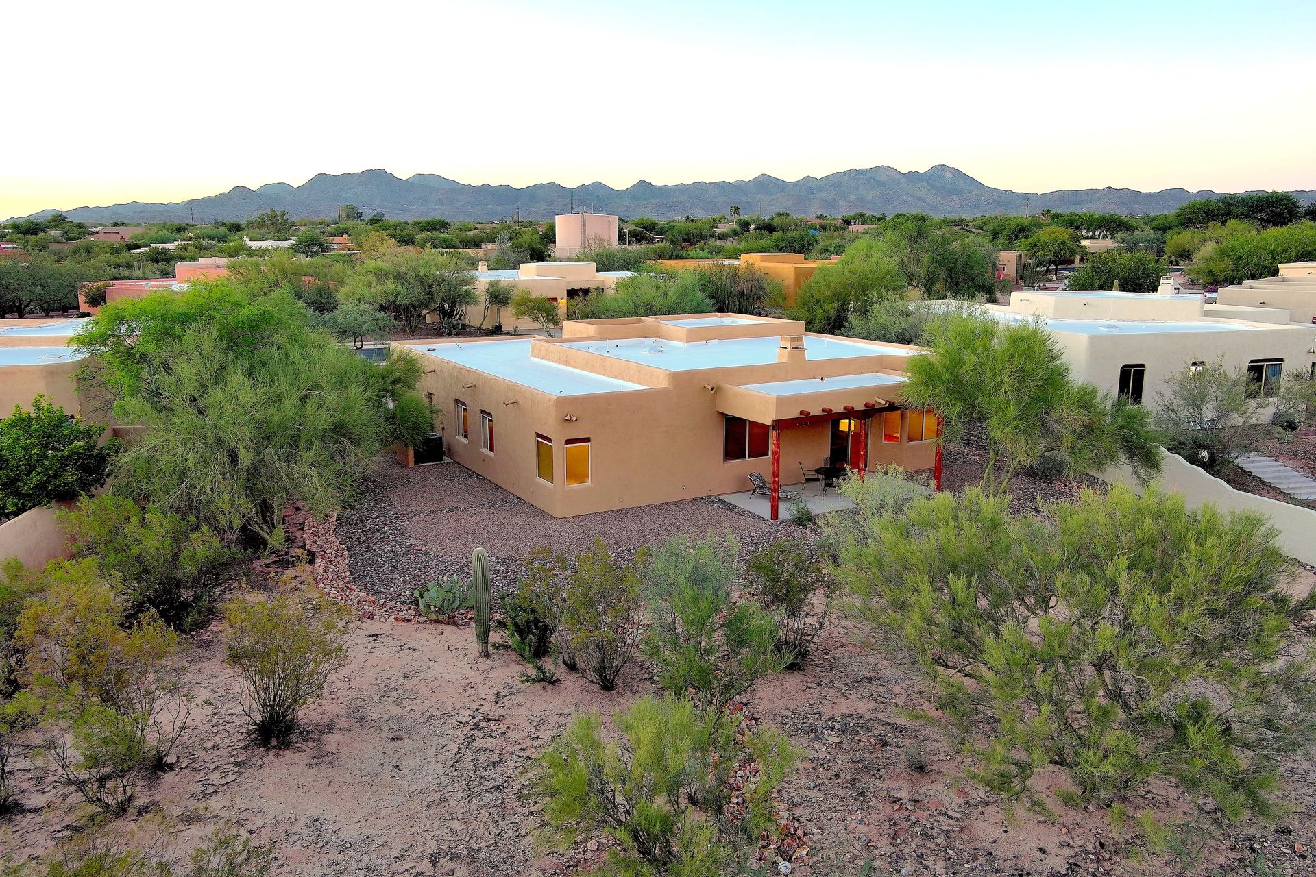 Welcome to Oro Valley (Tucson), Arizona living as it was designed to be enjoyed. This exquisite 4 Bed/2 Bath Tucson Spanish Pueblo Styled home sits on .35 acres of natural desert landscape. You will beam with pride knowing you own a TJ Bednar Custom Built Home. Enjoy a private driveway, gated front courtyard with rustic iron features, and groomed Palo Verde trees. Delight in custom timber beam vigas as you enter into the 12' ceiling family room with a custom pine door. Savor earth-tone diamond-laid tile, expansive kitchen with remodeled eat-in granite counters, new upper/lower cabinets, sink, and new GE appliances—microwave, oven, gas stovetop, hood vent, and dishwasher. Warm kiva beehive gas fireplace. Newer water heater and newer HVAC system. New exterior paint and wood stain. Bathroom upgrades. Take in the majestic Catalina Mountain views from your expansive backyard patio. True desert oasis. This is HOME!