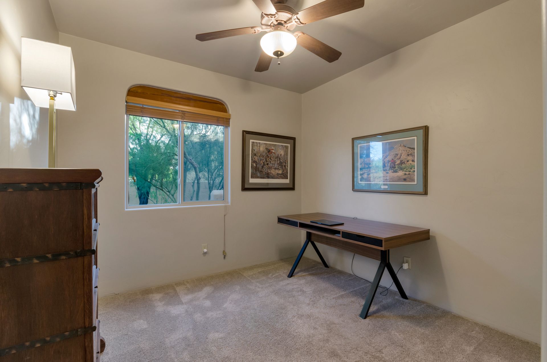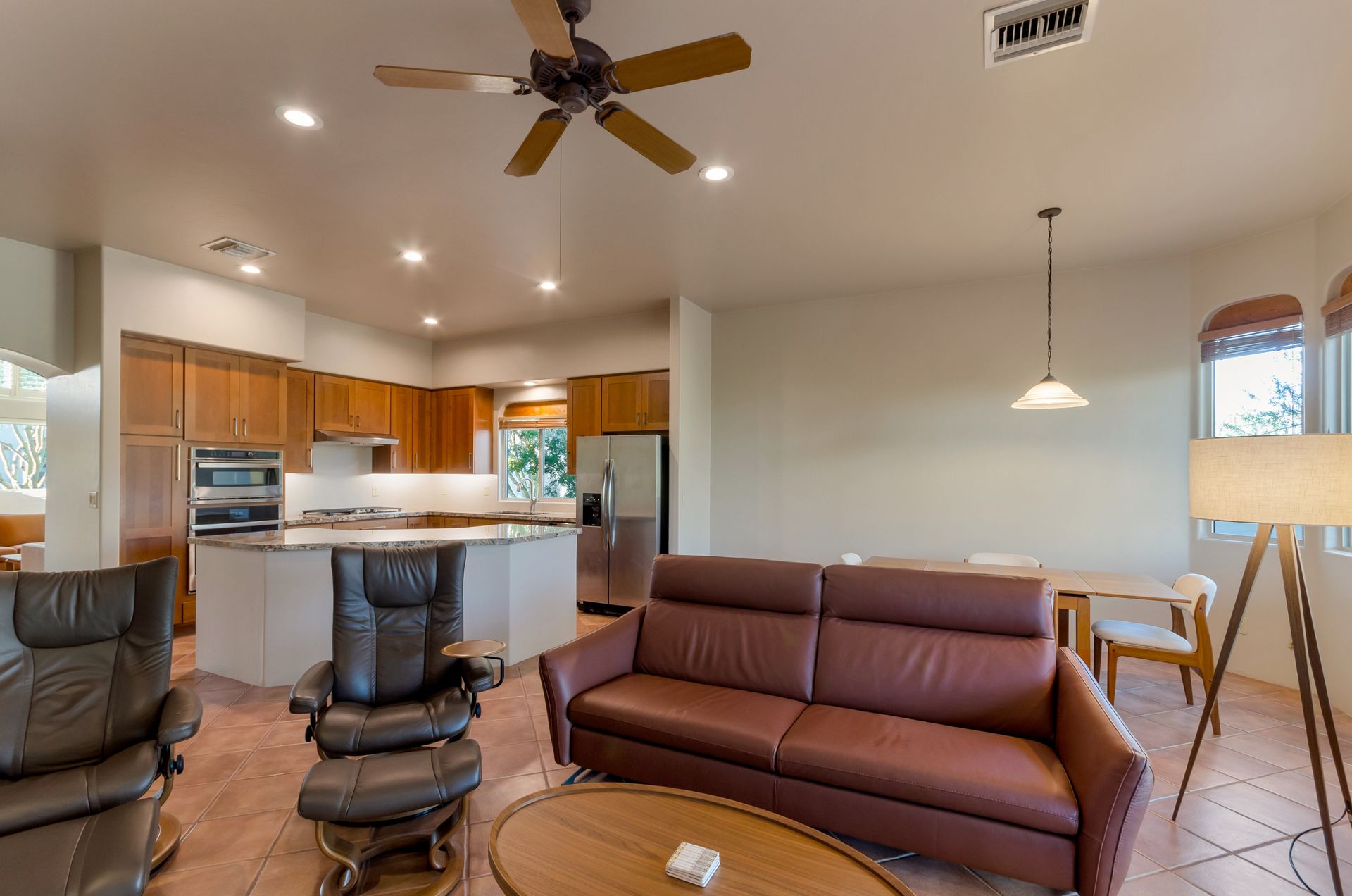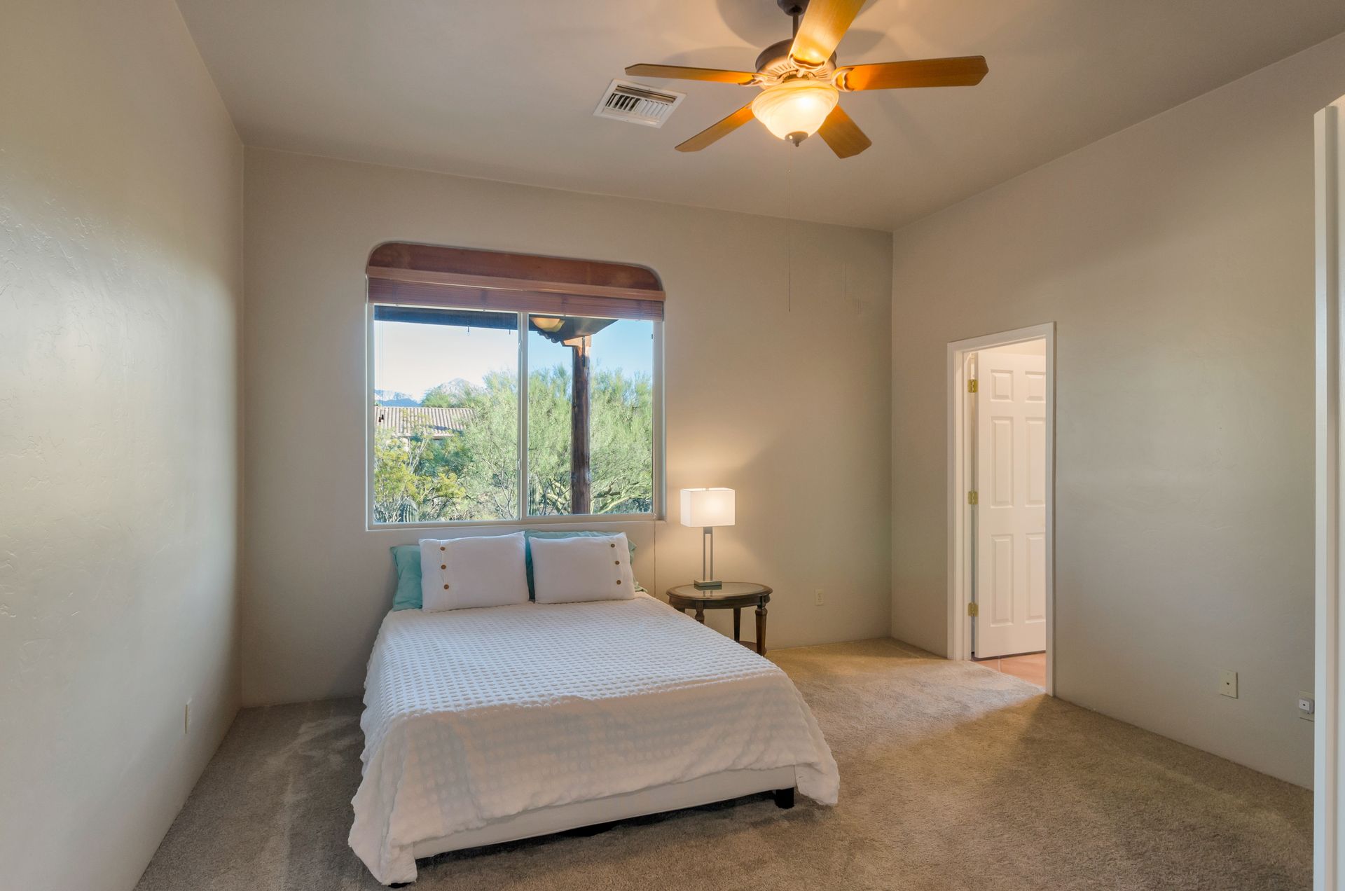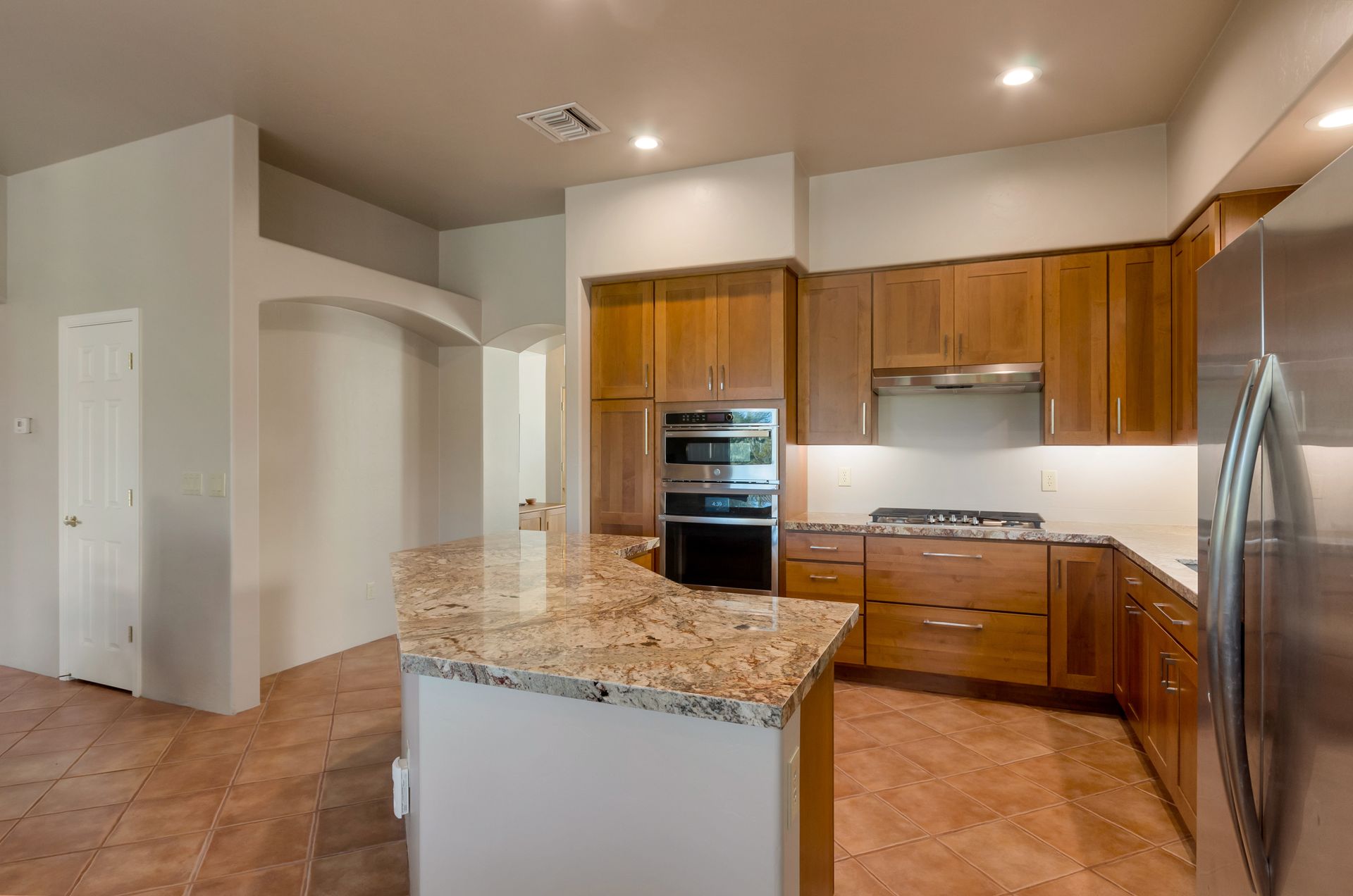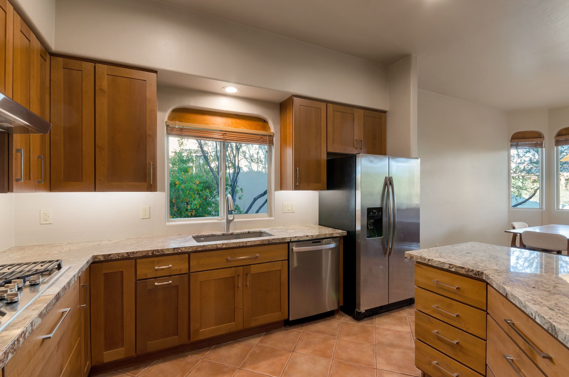 Welcome to Oro Valley (Tucson), Arizona living as it was designed to be enjoyed. This exquisite 4 Bed/2 Bath Tucson Spanish Pueblo Styled home sits on .35 acres of natural desert landscape. You will beam with pride knowing you own a TJ Bednar Custom Built Home. Enjoy a private driveway, gated front courtyard with rustic iron features, and groomed Palo Verde trees. Delight in custom timber beam vigas as you enter into the 12' ceiling family room with a custom pine door. Savor earth-tone diamond-laid tile, expansive kitchen with remodeled eat-in granite counters, new upper/lower cabinets, sink, and new GE appliances—microwave, oven, gas stovetop, hood vent, and dishwasher. Warm kiva beehive gas fireplace. Newer water heater and newer HVAC system. New exterior paint and wood stain. Bathroom upgrades. Take in the majestic Catalina Mountain views from your expansive backyard patio. True desert oasis. This is HOME!