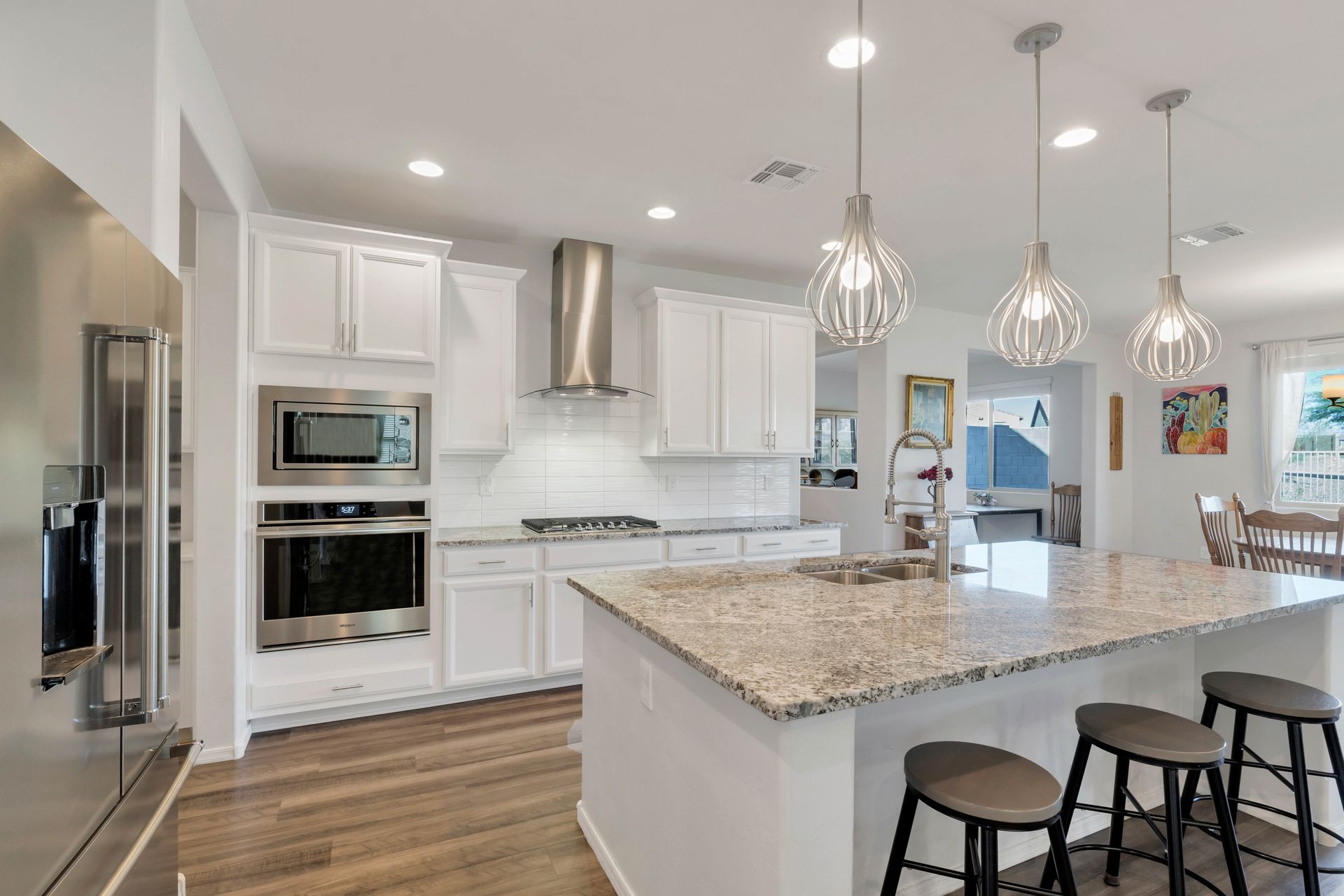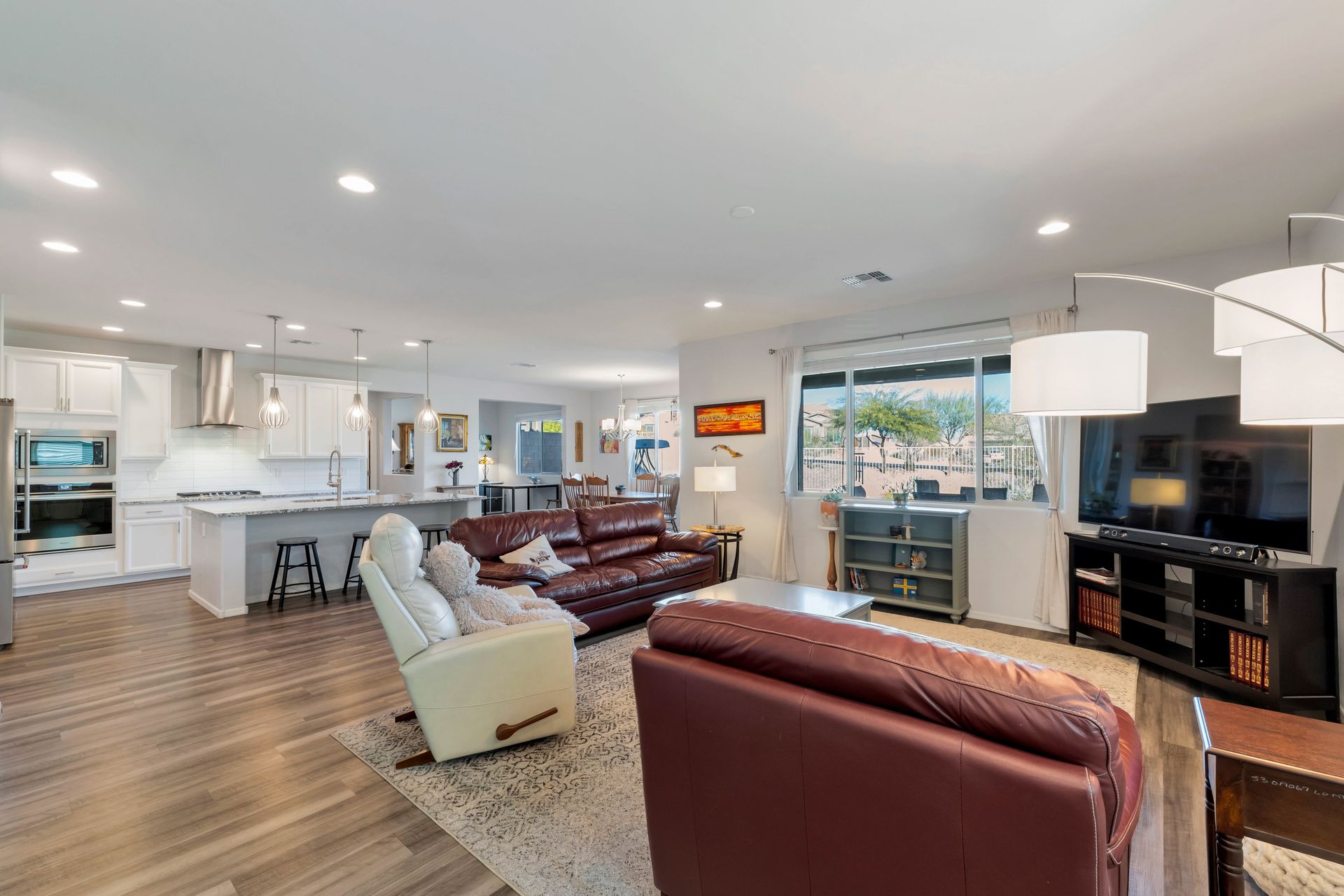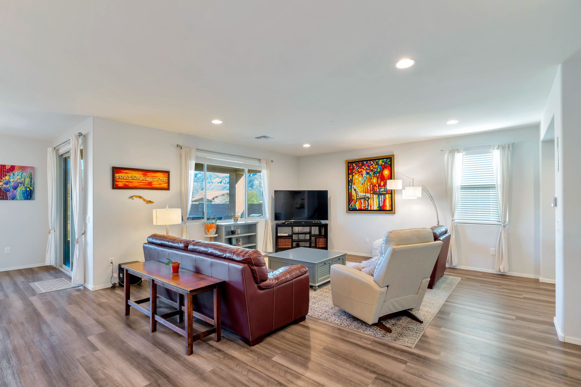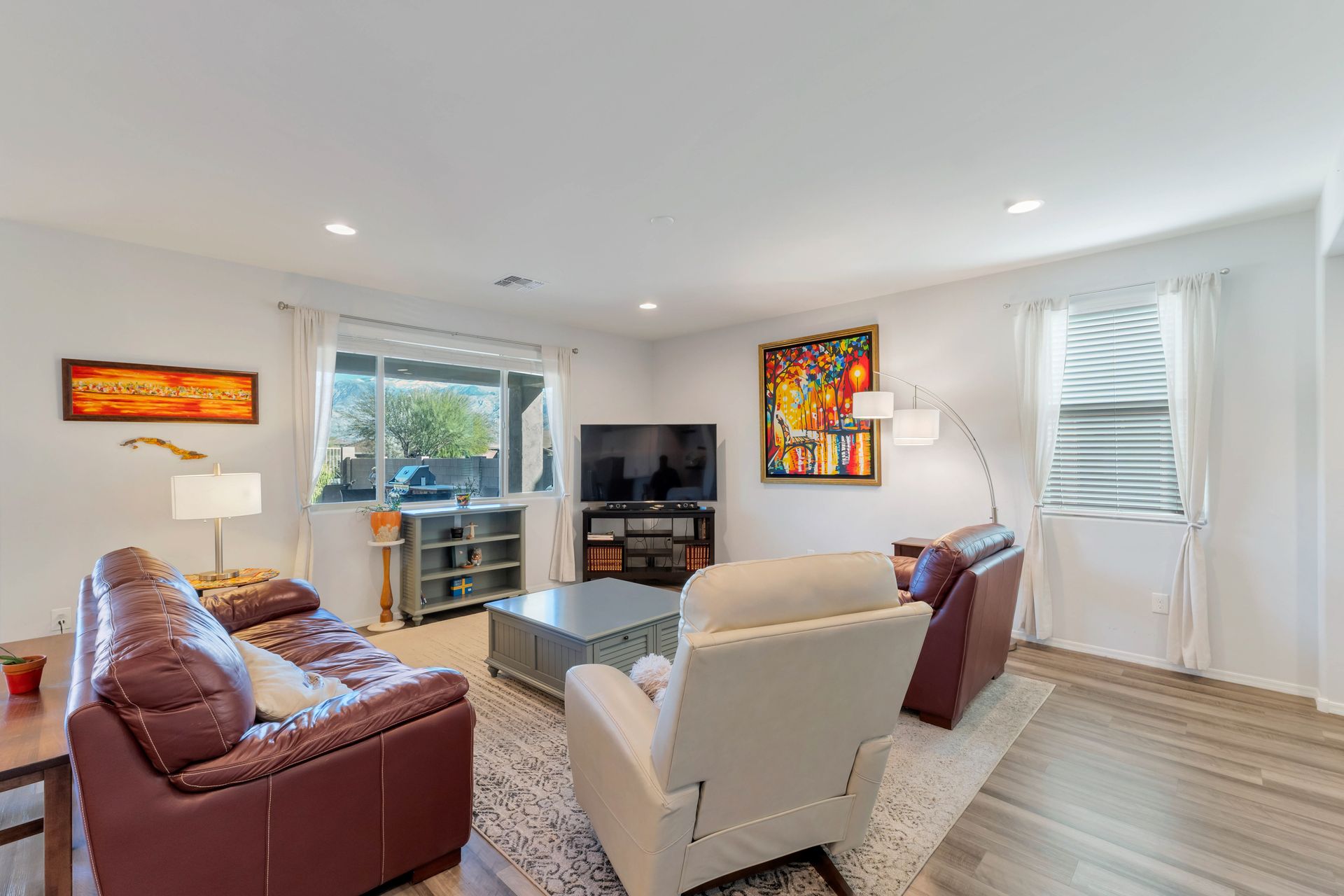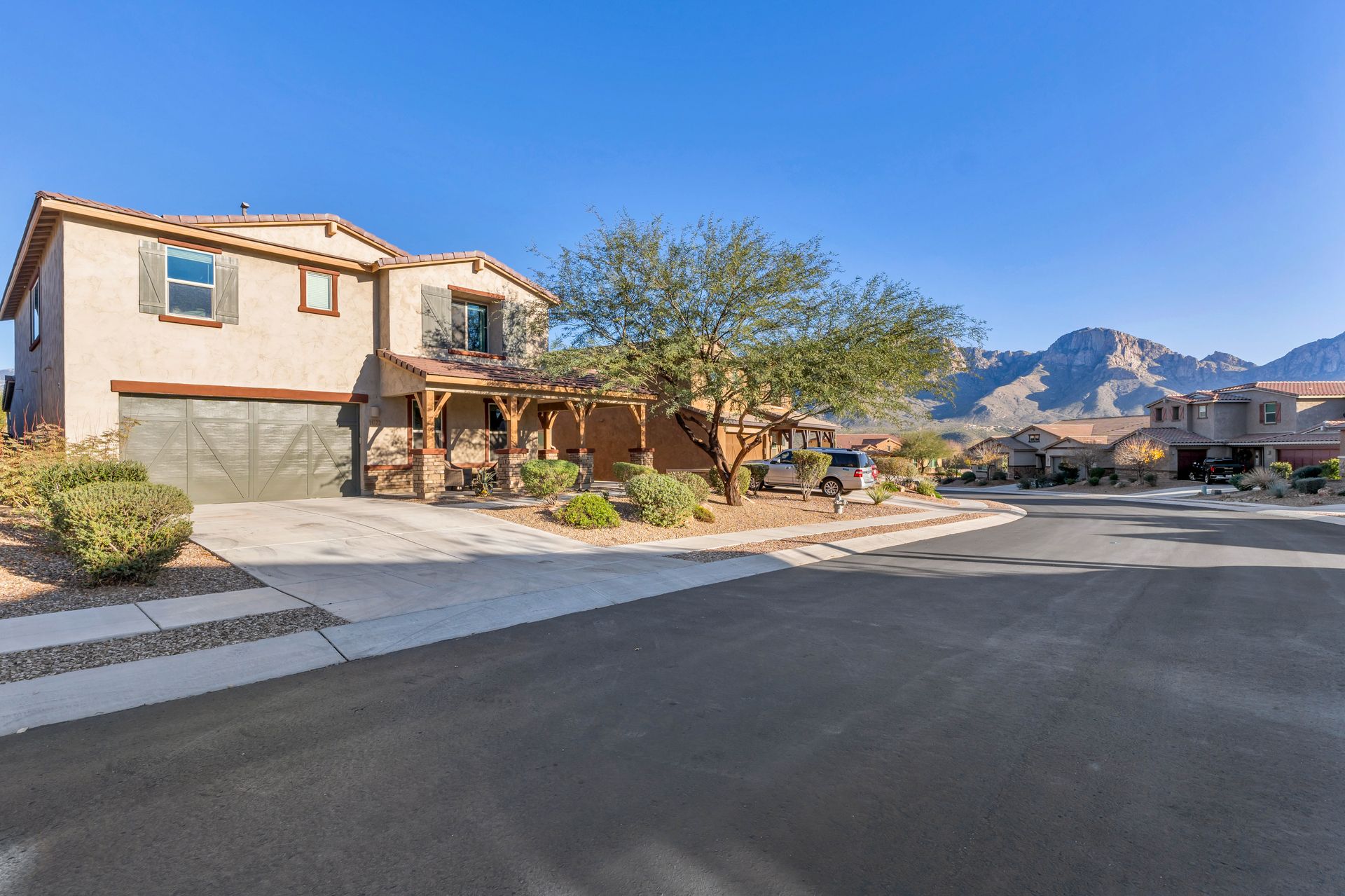 Welcome to Oro Valley (Tucson), AZ, living as it was designed to be enjoyed. This newer energy‑efficient home will exceed expectations. Free and clear solar system with electric vehicle charger. This abode offers a luxurious gourmet kitchen, granite counters, expansive island, pendant lighting, elegant/tiled backsplash, and 42" white cabinets, which open to a large great room and multi‑purpose room. Multi‑purpose room is perfect for hobbies, homework, office, and/or listening to your favorite music. The downstairs 5th bedroom and 4th full bath are perfect for guests, generational living, private office, or that lucky family member. Upstairs lounge/media/game room works for everyone. Mega walk‑in closets galore. The shaded backyard patio, built‑in gas BBQ, custom gas firepit, and luxurious landscaping complement the unobstructed east‑facing Santa Catalina Mountain views. Views for miles! Come enjoy the (4) parks, trails, basketball court, and the quiet and safe neighborhood settings you have been looking for. This is the one. The solar system makes for efficient living. This is HOME!