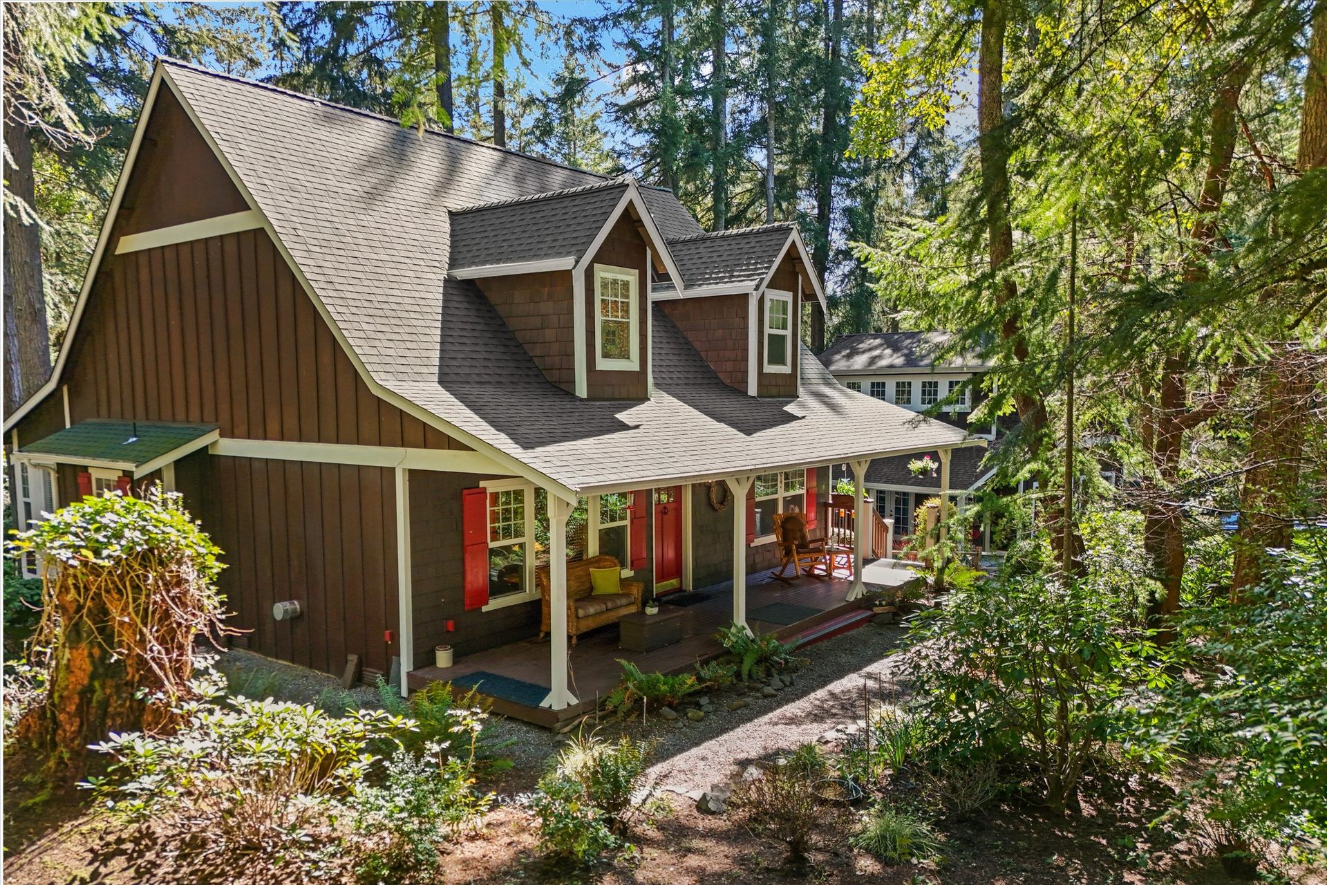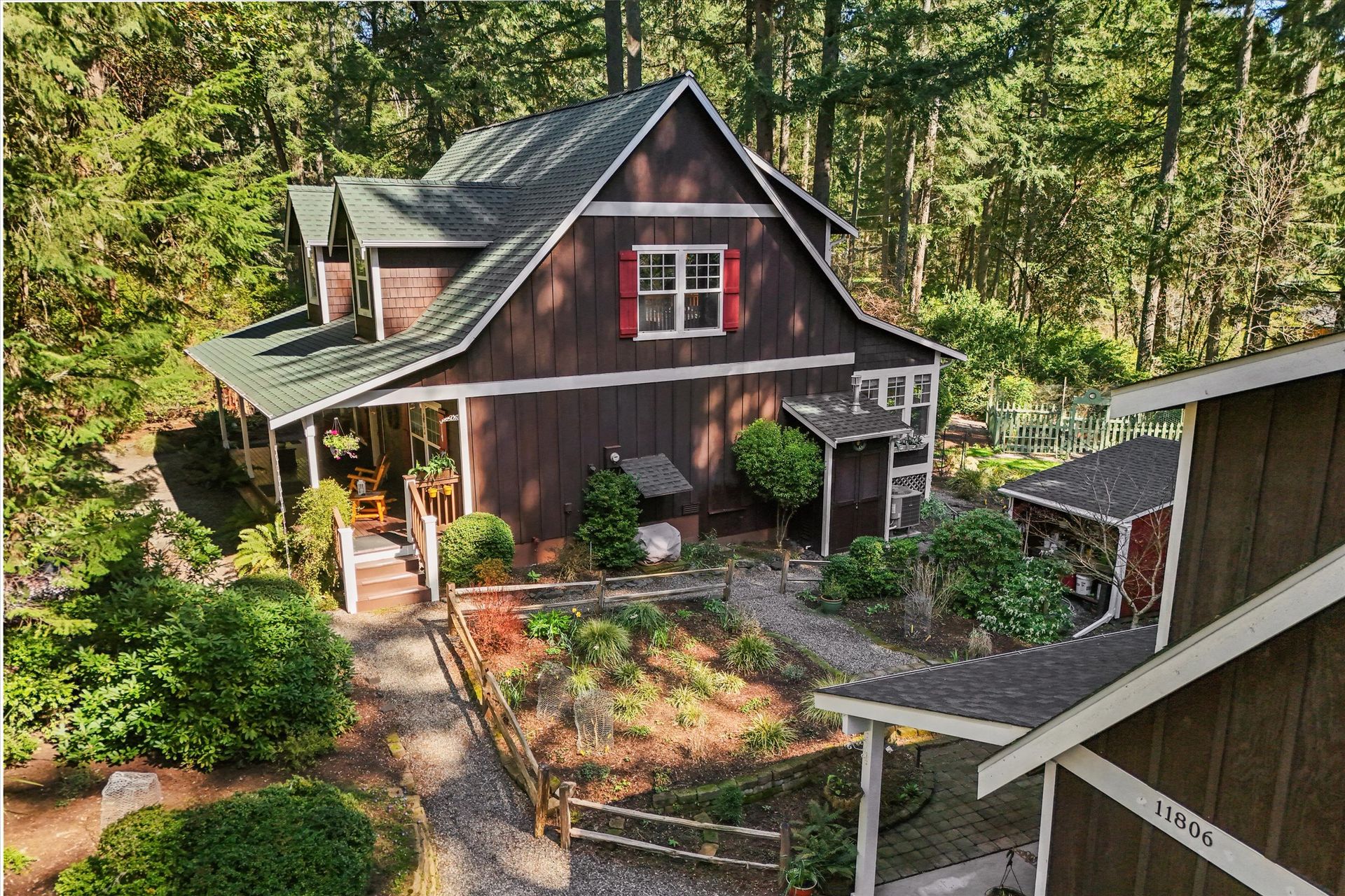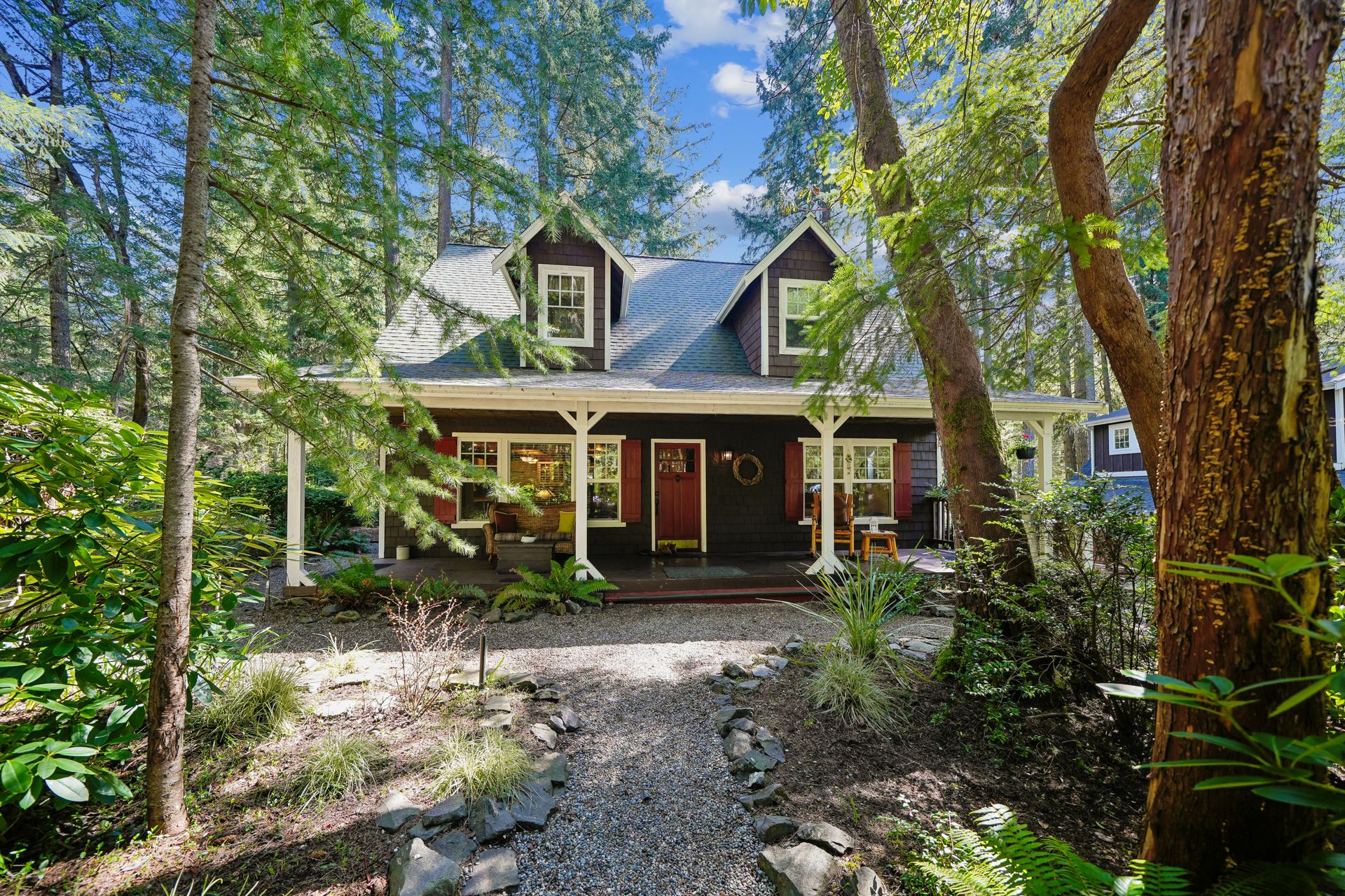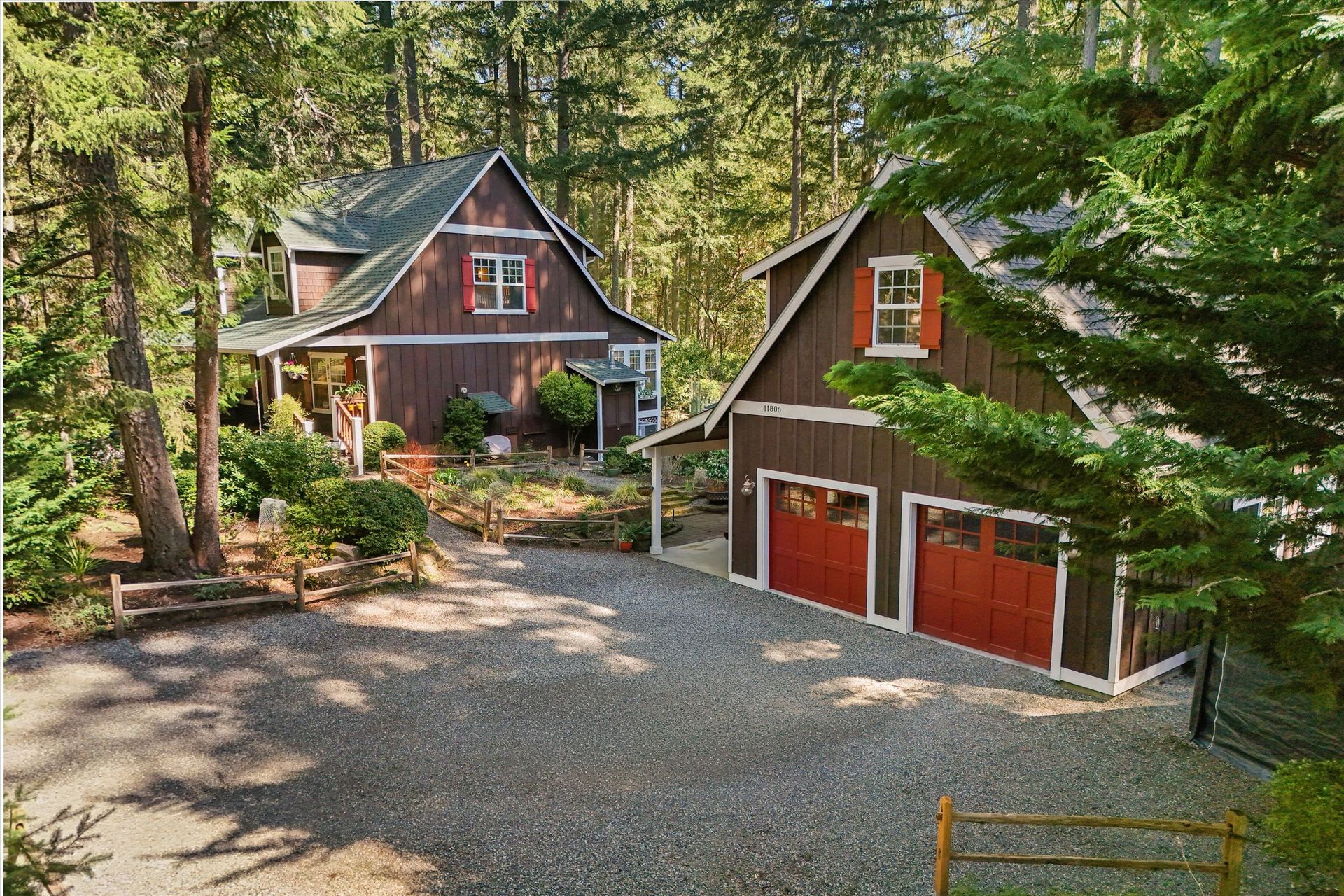 Storybook charm meets island serenity in this Cape Cod Craftsman on Anderson Island. Set on a spacious double lot, this three bed, one and three-quarter bath home offers a rare blend of character, functionality, and quality. The grounds are truly something special—meticulously landscaped to evoke an English garden, creating a peaceful, private retreat where wildlife abounds. A detached two-car garage adds incredible versatility with 258 square feet of loft space for use as an art studio, office, or creative space, along with additional rec area below. French doors lead out to a covered patio/carport for outdoor living, plus two additional outbuildings for shop or storage space. Inside, you'll find a warm and inviting layout with two bedrooms on the main level and an updated full bath. The living area features hardwood floors and a stunning stone gas fireplace, providing convenience and warmth. A light-filled sunroom offers flexible living—ideal for a reading nook, dining area, or just a quiet corner to relax. Upstairs, find a spacious primary and ensuite and loft. Recent updates provide peace of mind, including a newer heat pump, a newer roof, and updated kitchen and bathrooms. As part of the Riviera HOA, enjoy access to a nine-hole executive golf course, restaurant, saltwater marina, parks, tennis and bocce ball courts, and two freshwater lakes. All this is just a scenic 20-minute ferry ride from Steilacoom. Whether you're seeking a full-time residence or a tranquil getaway, this pristine island home is ready to welcome you home!