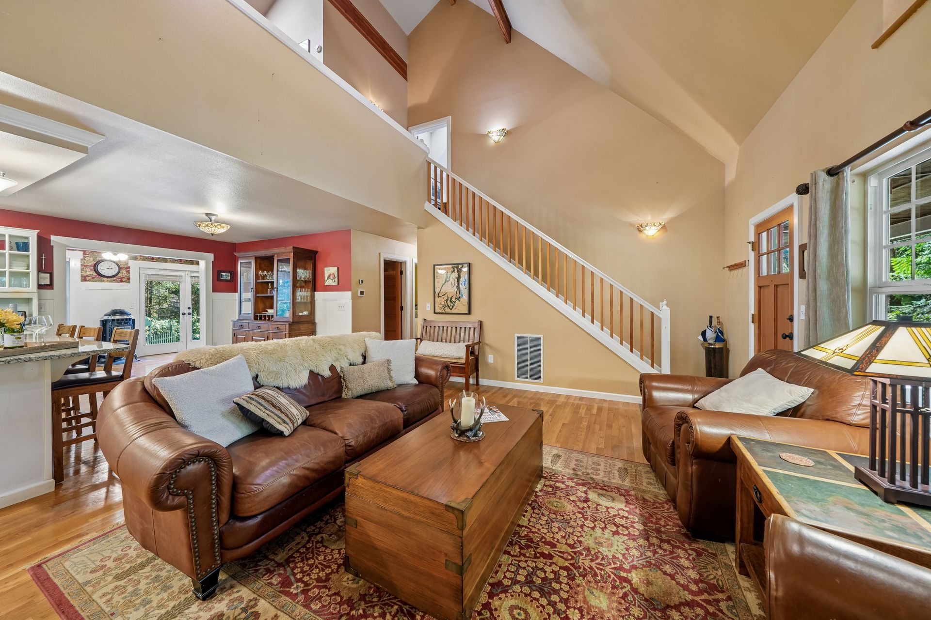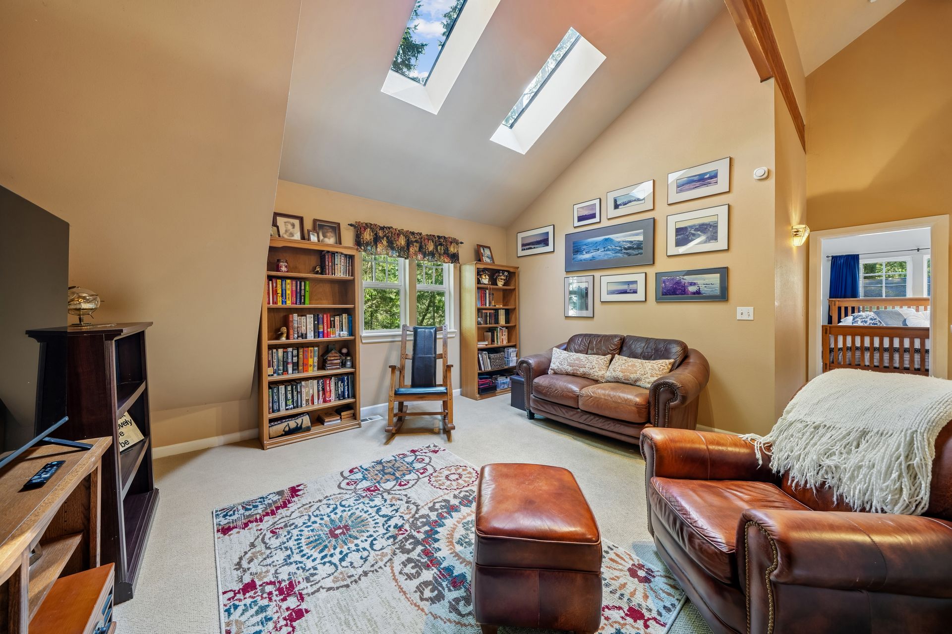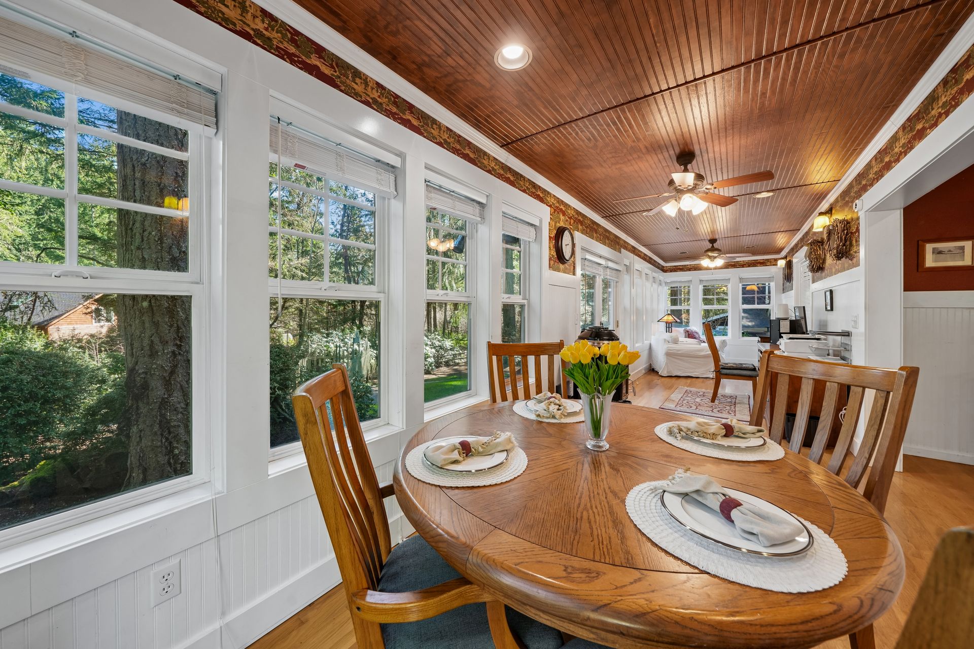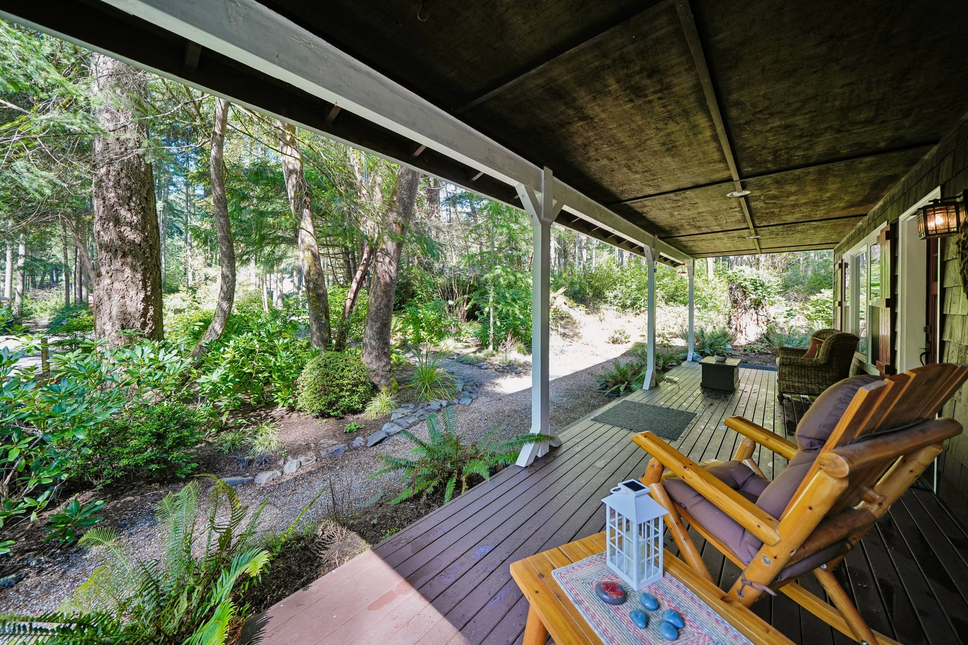 Storybook charm meets island serenity in this Cape Cod Craftsman on Anderson Island. Set on a spacious double lot, this three bed, one and three-quarter bath home offers a rare blend of character, functionality, and quality. The grounds are truly something special—meticulously landscaped to evoke an English garden, creating a peaceful, private retreat where wildlife abounds. A detached two-car garage adds incredible versatility with 258 square feet of loft space for use as an art studio, office, or creative space, along with additional rec area below. French doors lead out to a covered patio/carport for outdoor living, plus two additional outbuildings for shop or storage space. Inside, you'll find a warm and inviting layout with two bedrooms on the main level and an updated full bath. The living area features hardwood floors and a stunning stone gas fireplace, providing convenience and warmth. A light-filled sunroom offers flexible living—ideal for a reading nook, dining area, or just a quiet corner to relax. Upstairs, find a spacious primary and ensuite and loft. Recent updates provide peace of mind, including a newer heat pump, a newer roof, and updated kitchen and bathrooms. As part of the Riviera HOA, enjoy access to a nine-hole executive golf course, restaurant, saltwater marina, parks, tennis and bocce ball courts, and two freshwater lakes. All this is just a scenic 20-minute ferry ride from Steilacoom. Whether you're seeking a full-time residence or a tranquil getaway, this pristine island home is ready to welcome you home!