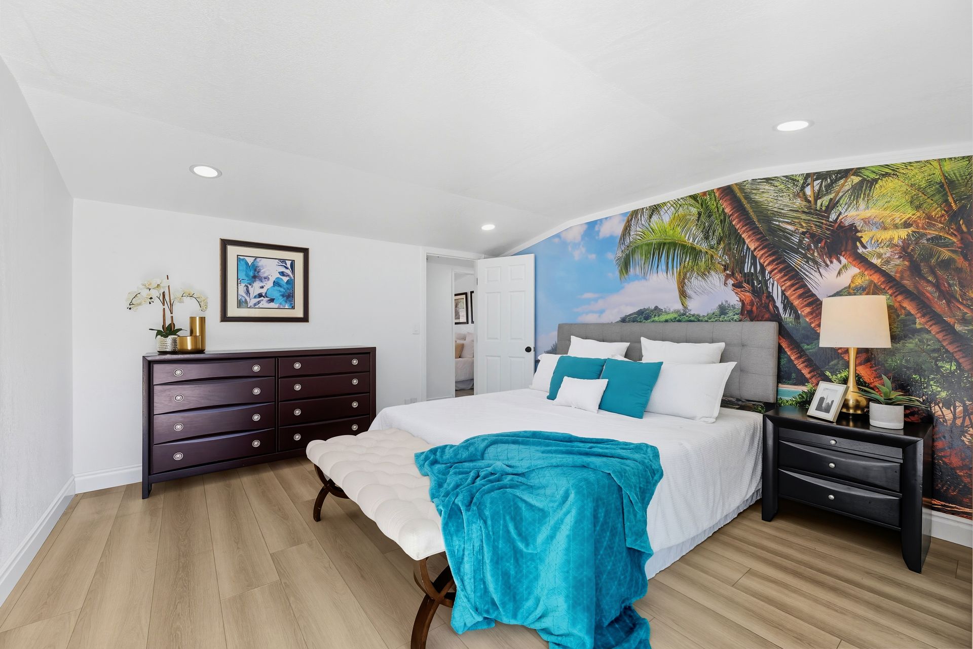 Welcome to this charming and remodeled three-bedroom, two bathroom home located in the heart of Silicon Valley* With approximately 1,108 square feet of livable space, this property offers a cozy and inviting atmosphere set on an expansive approximately 8400 square feet on a huge corner lot* Existing ADU approximately 644 square feet, pending final permit approval. Enter inside to discover an open-concept layout with vaulted ceilings and expansive picture windows that flood the space with natural light* Enjoy the huge Bonus room ideal for entertaining*The serene primary suite faces the spacious backyard. Newly installed luxury vinyl plank flooring and fresh paint inside* All of this is conveniently located just minutes from top tech companies like Google, LinkedIn, Nvidia, AMD, Apple, and many more. Don't miss this rare opportunity to own a beautifully upgraded mid-century modern home. This property is situated within the Sunnyvale Elementary School District with Fremont High School.
